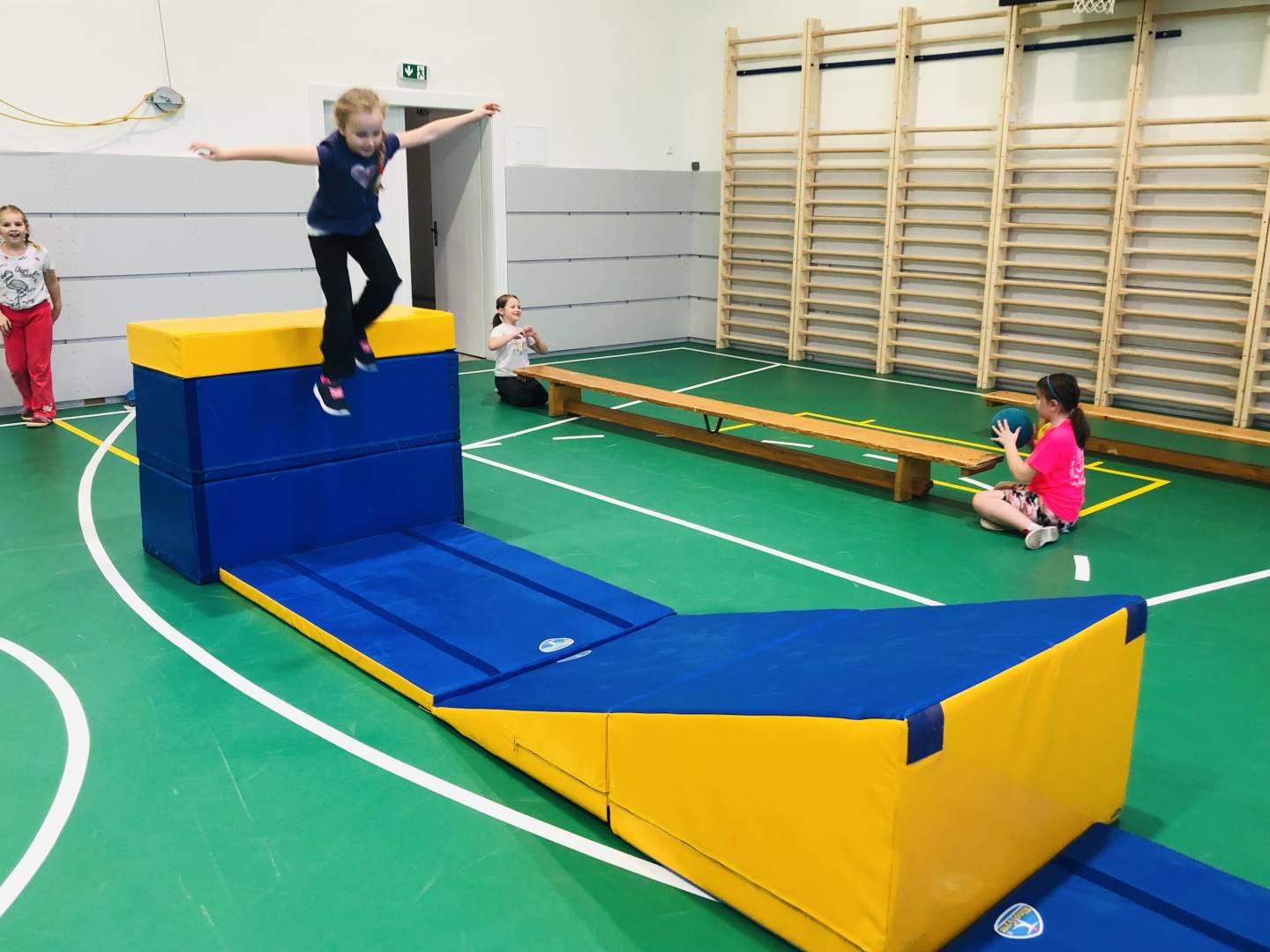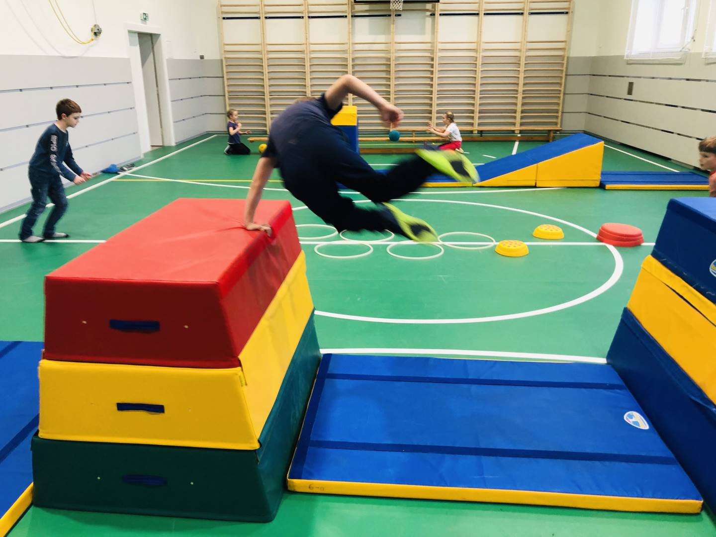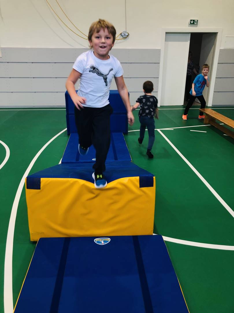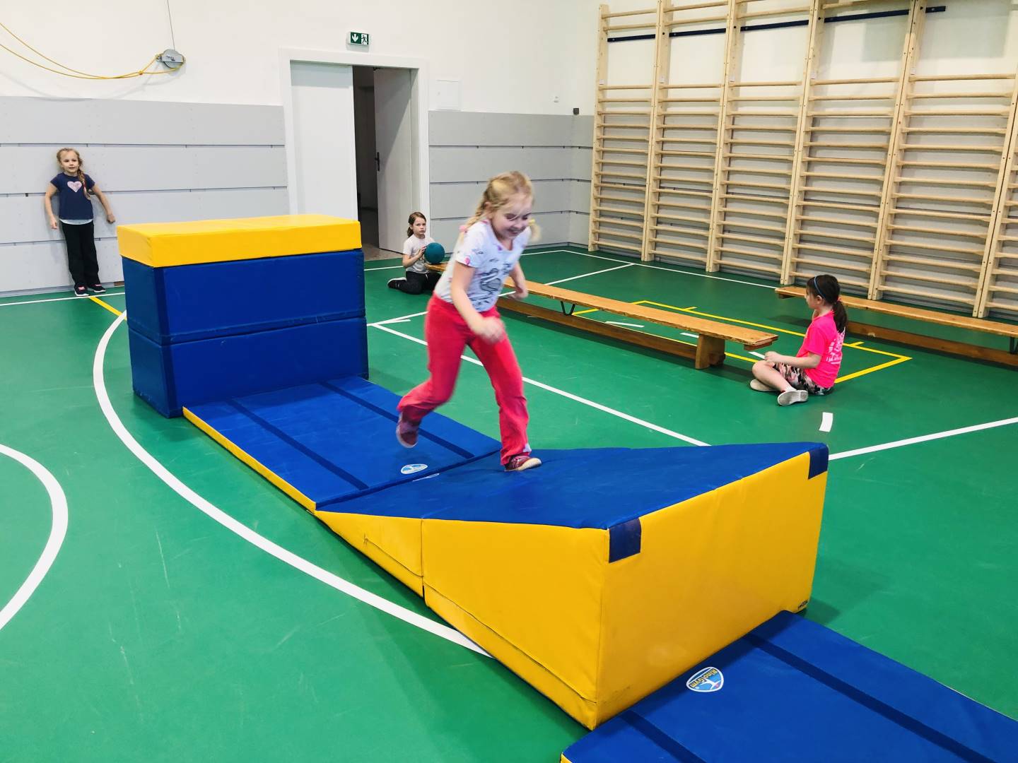 V rámci sportovního rozvoje, se žáci navštěvující družinu, zúčastnili sportovního odpoledne. To probíhalo v naší nově zrekonstruované školní tělocvičně, která je vybavena novými sportovními prvky a náčiními. Děti si tak mohly vyzkoušet parkourové skoky, překonávat nejrůznější překážky, trénovat nové druhy sportů a rozvíjet tak svoje sportovní schopnosti a dovednosti.