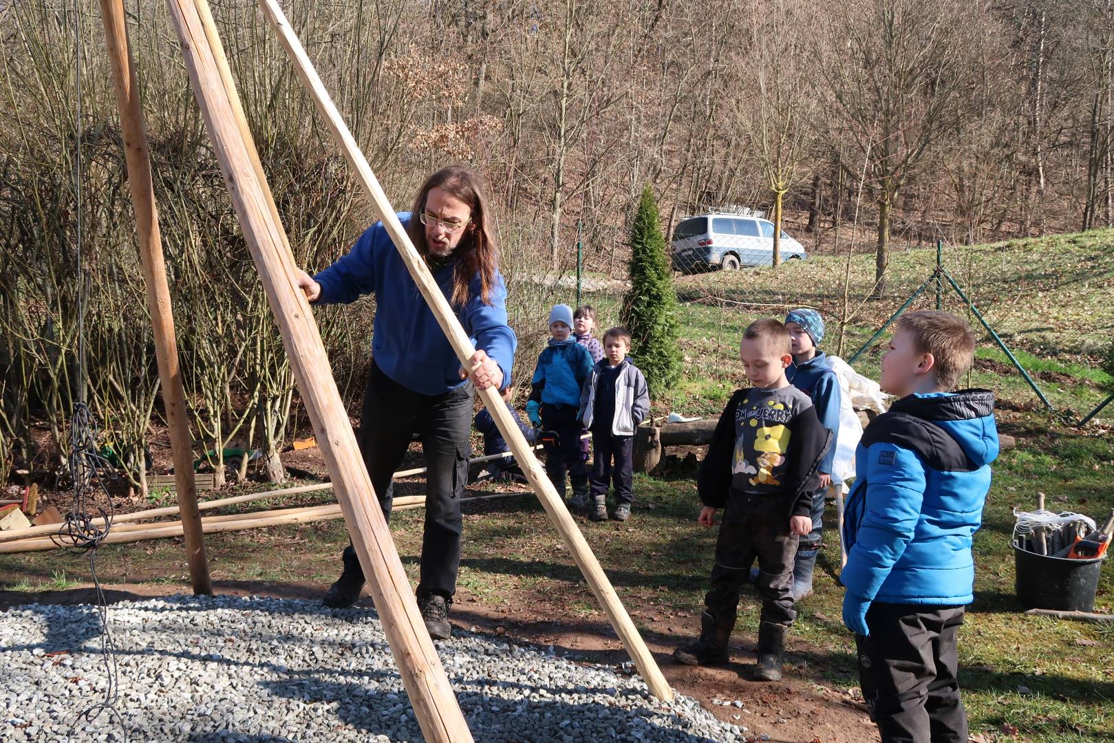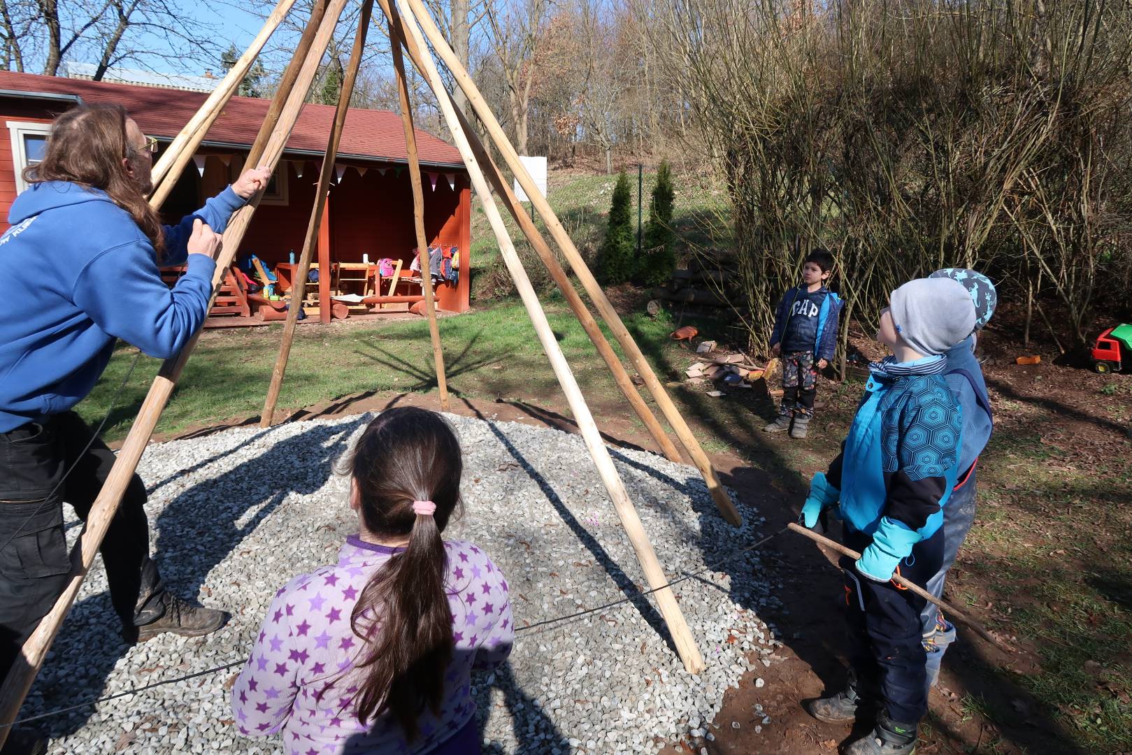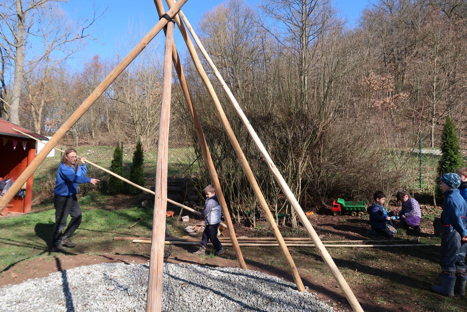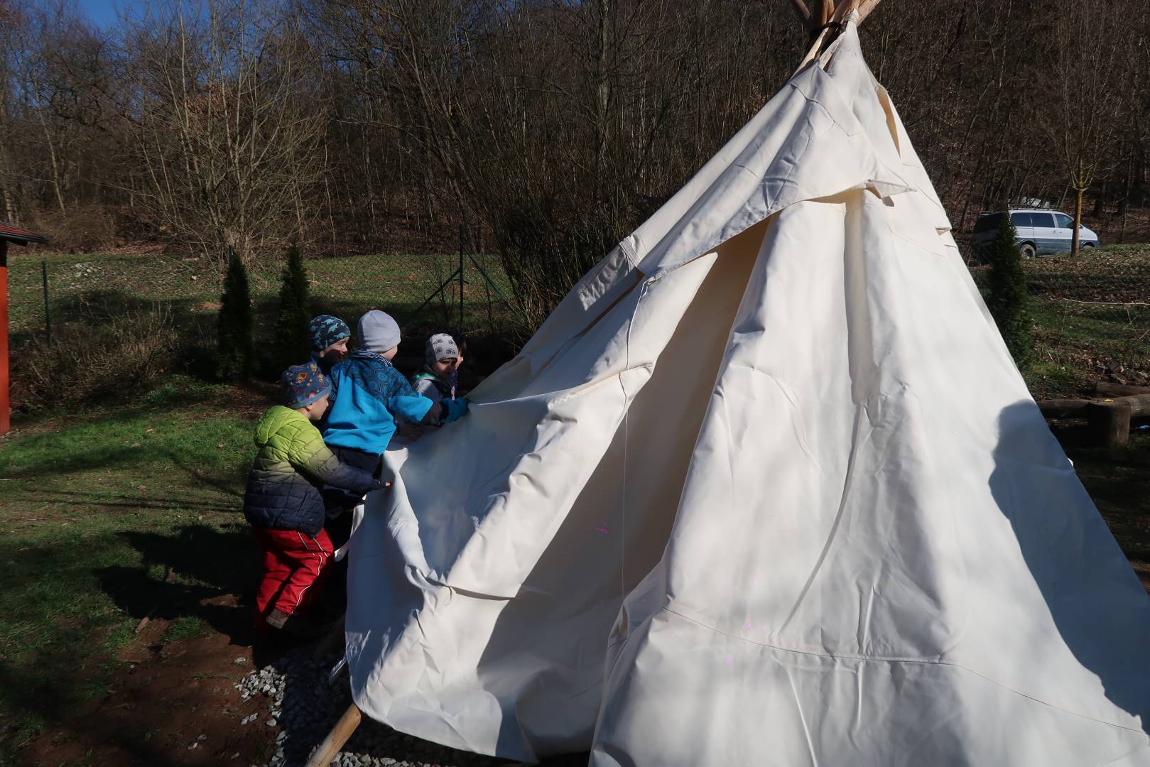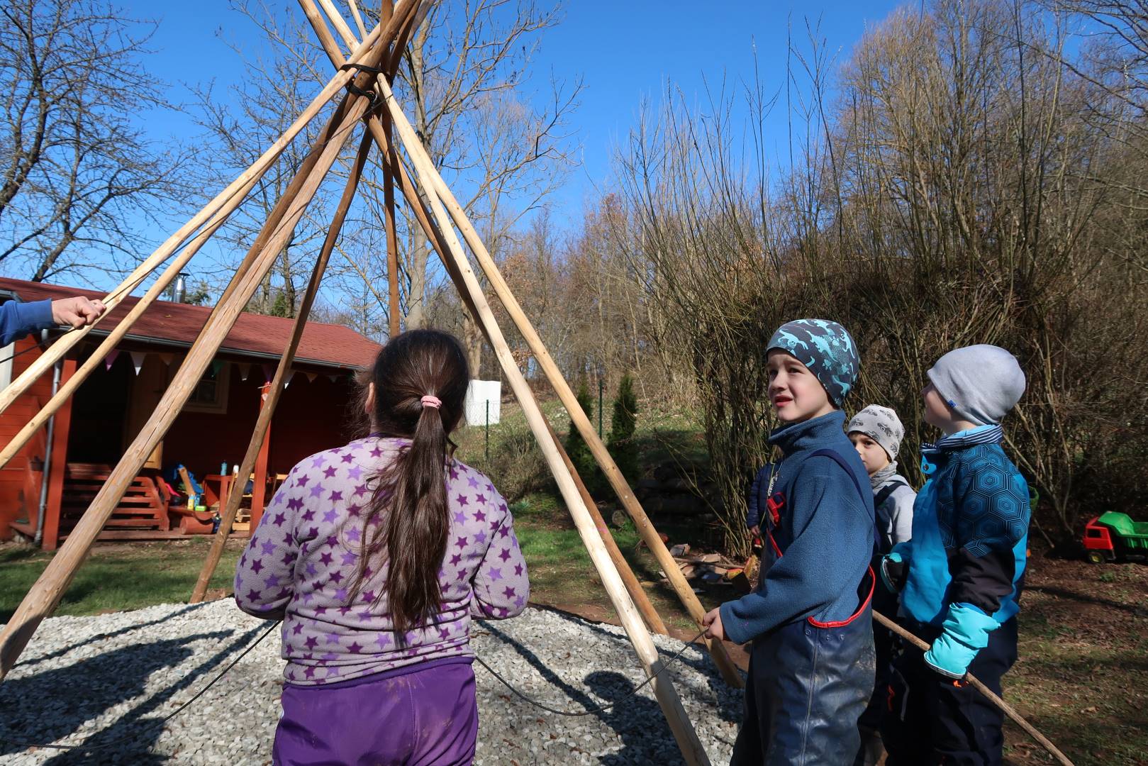 Domů Mateřská škola Aktuality Stavění týpí u maringotky
