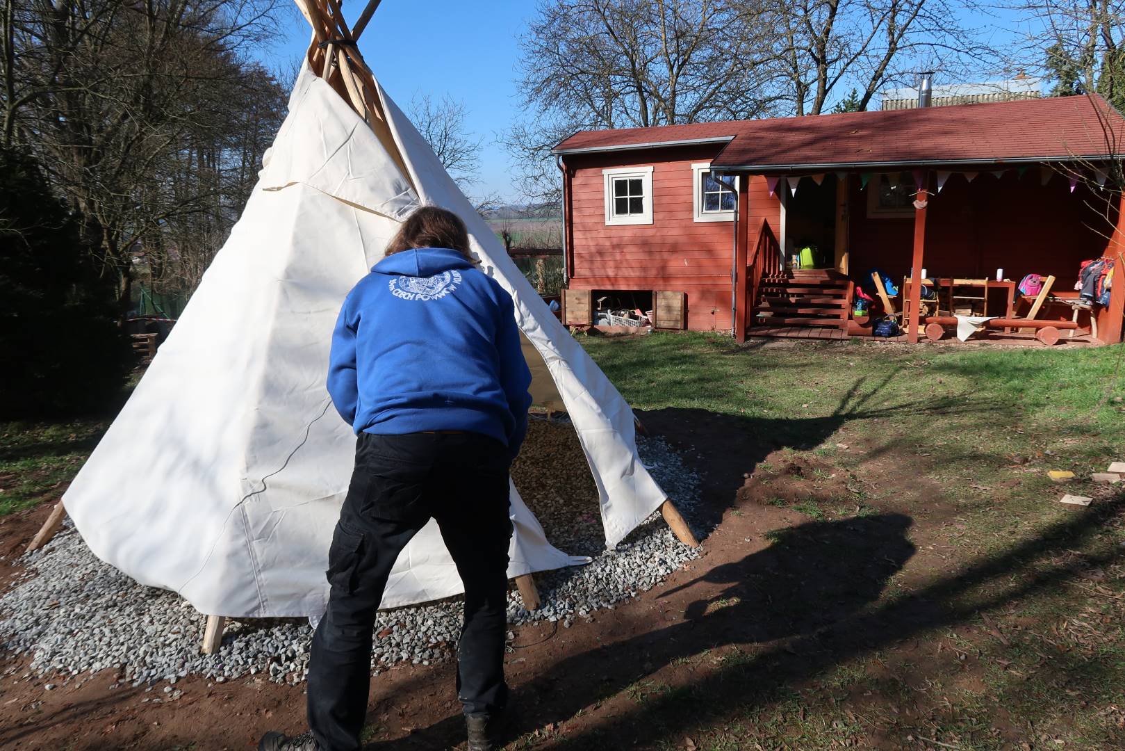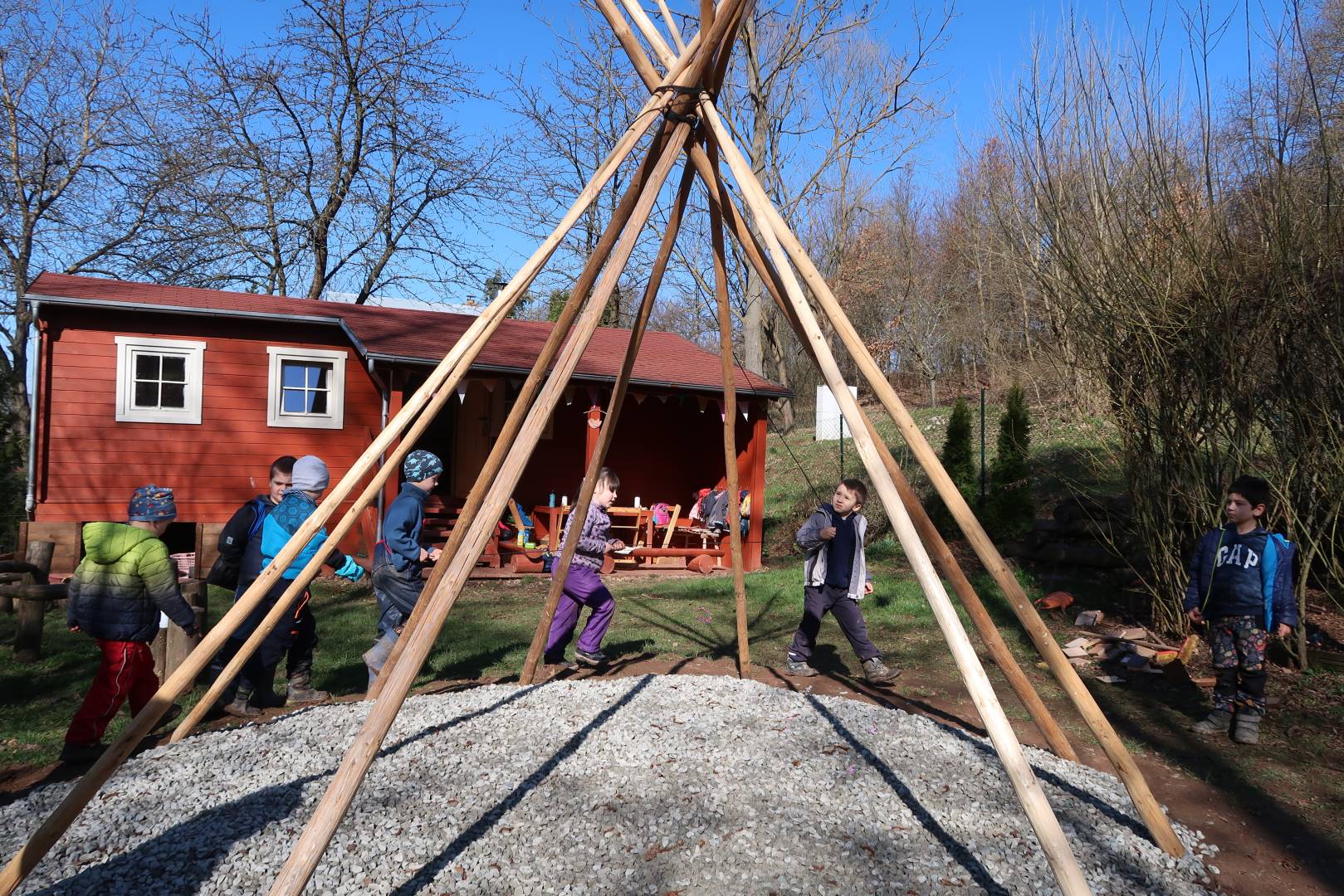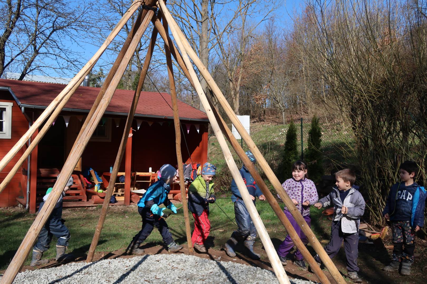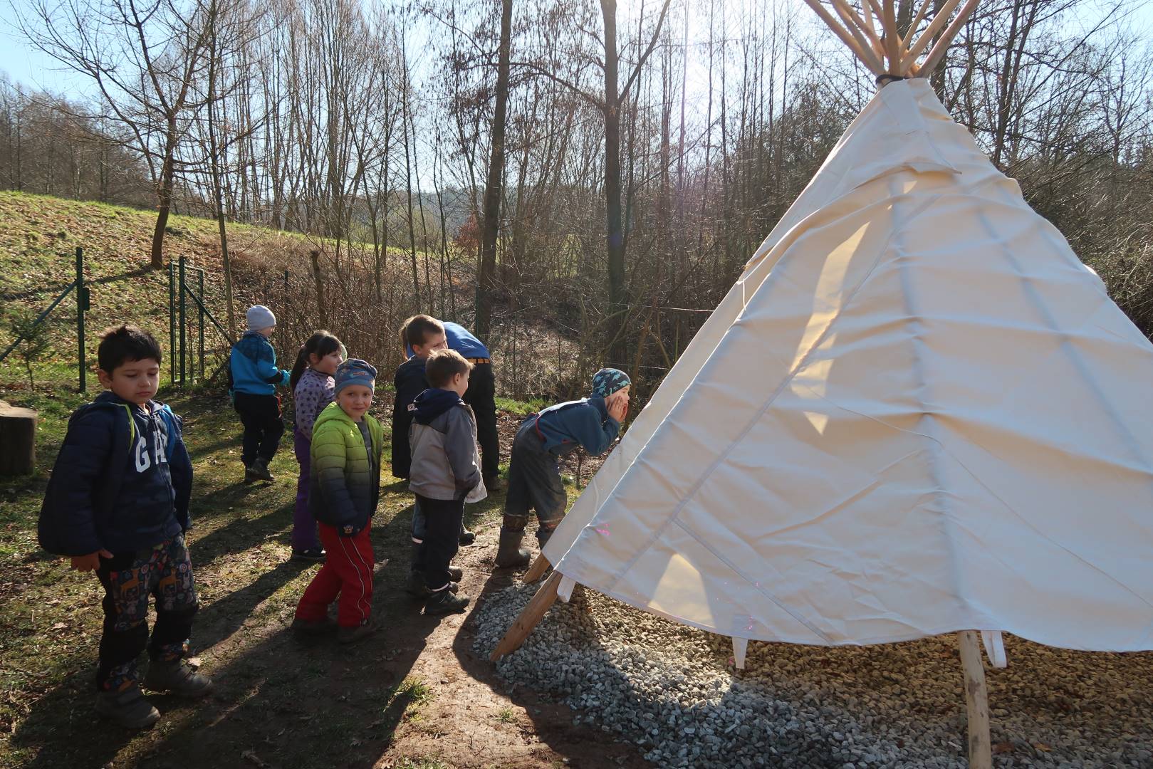 Domů Mateřská škola Aktuality Stavění týpí u maringotky