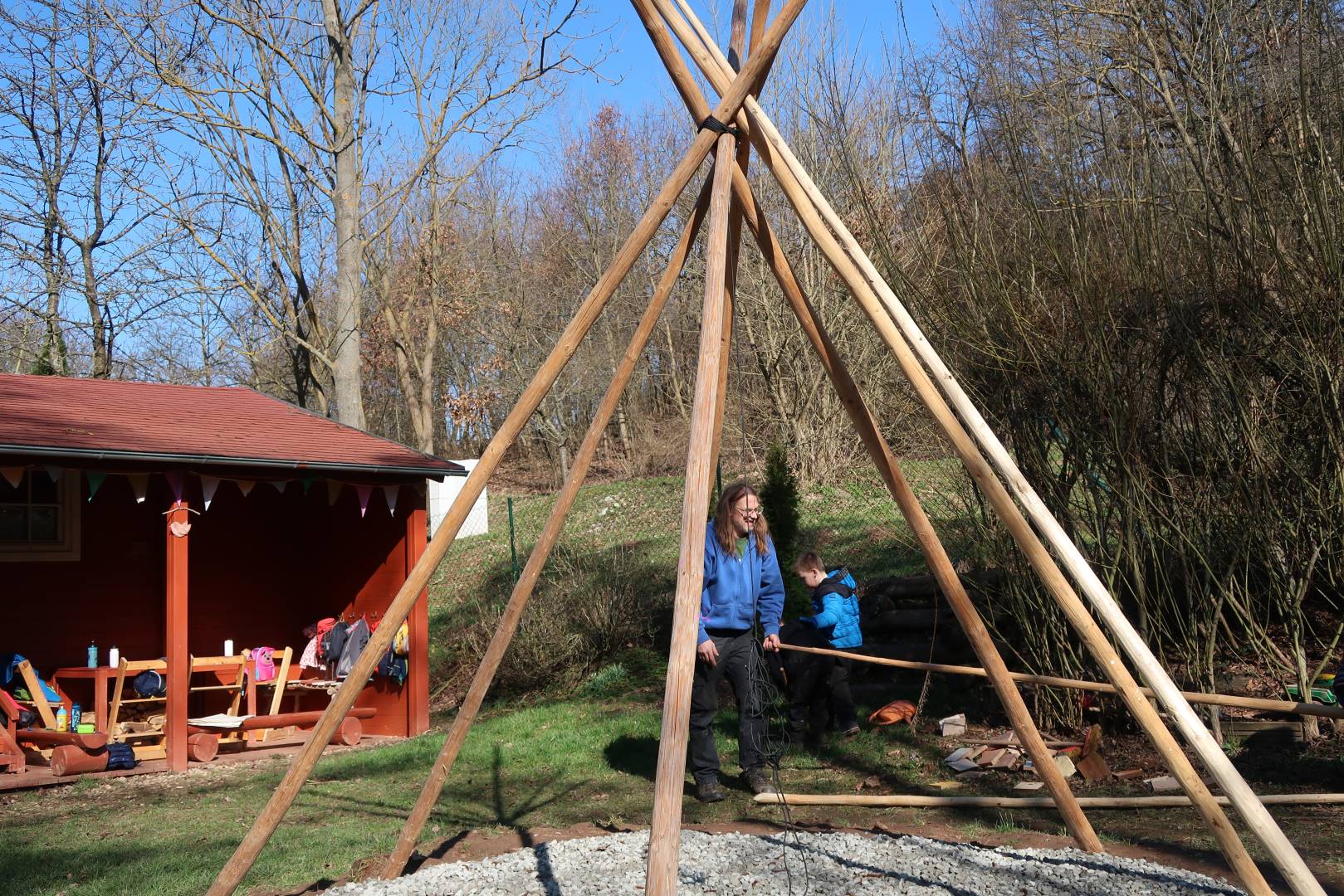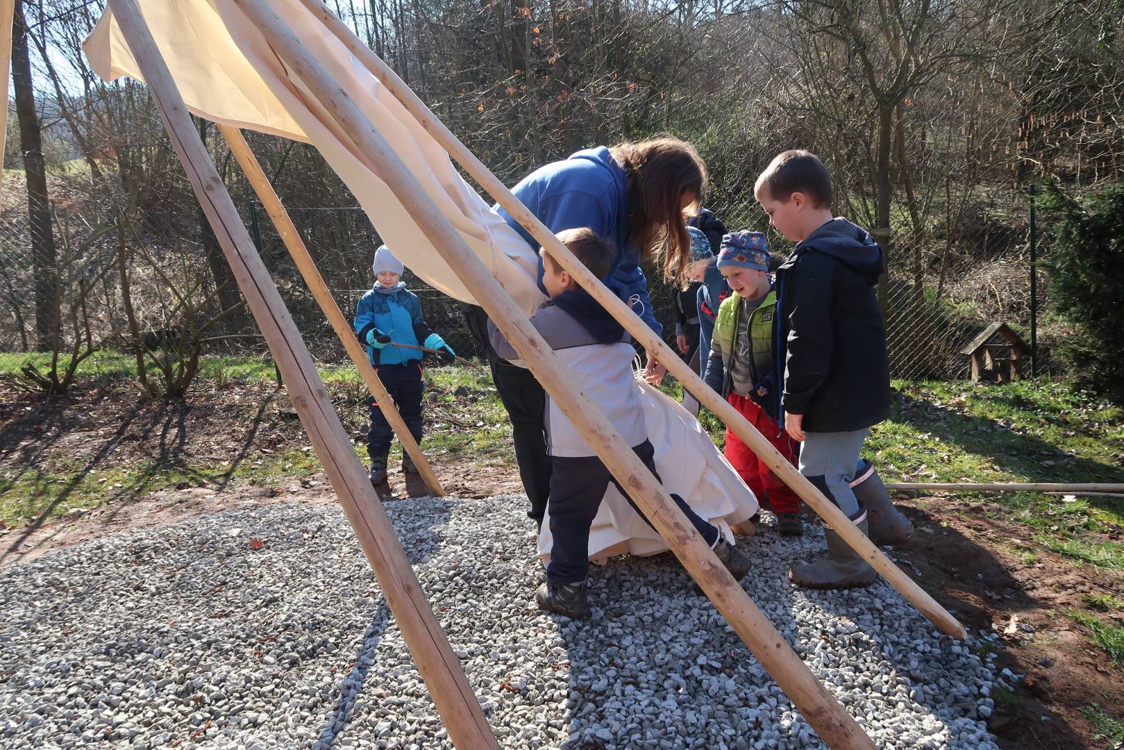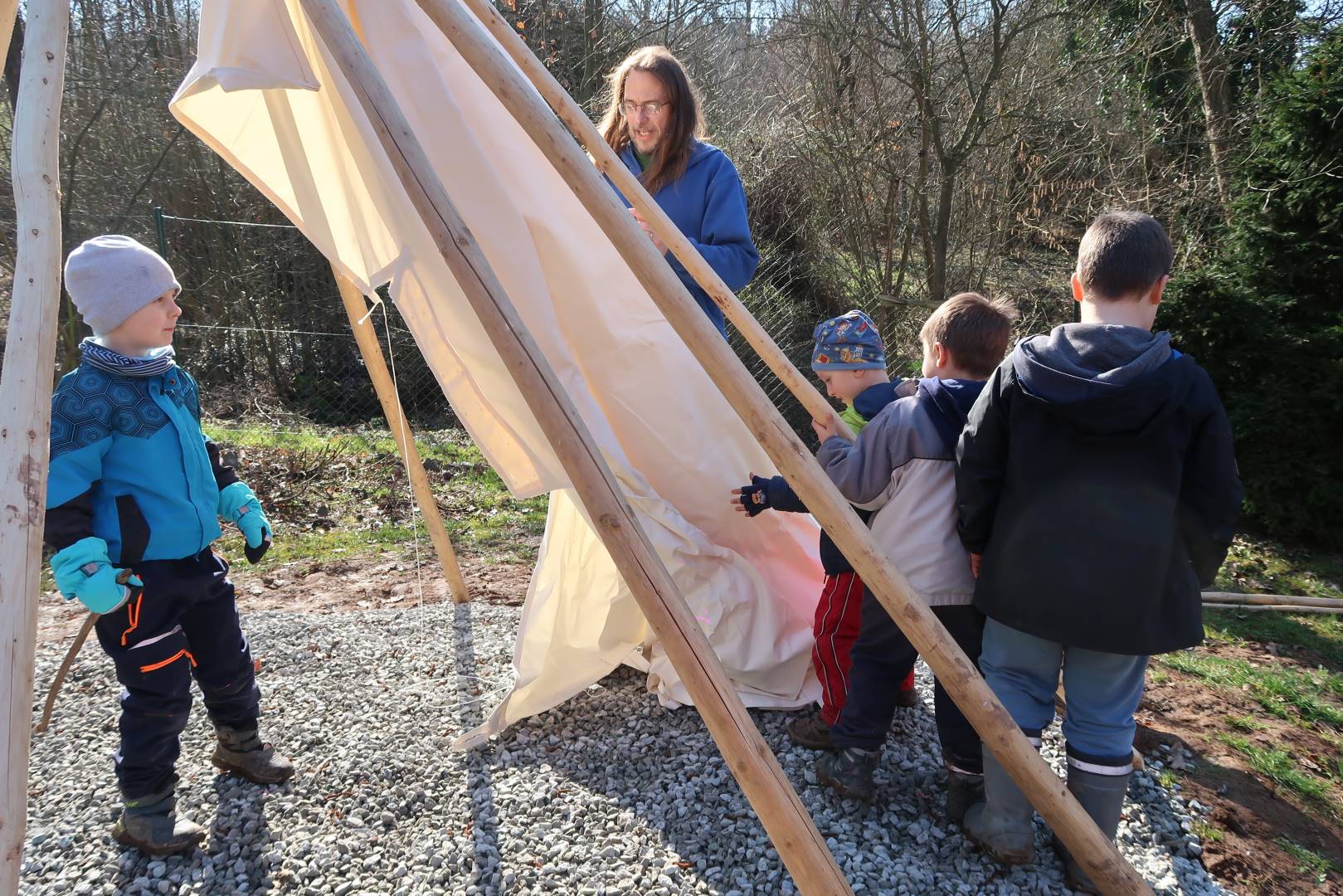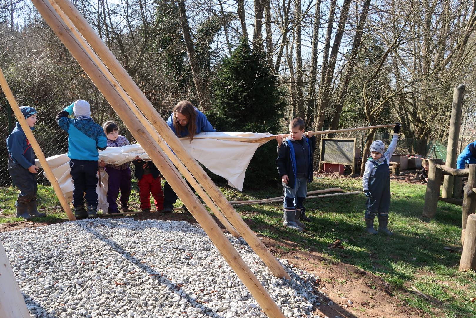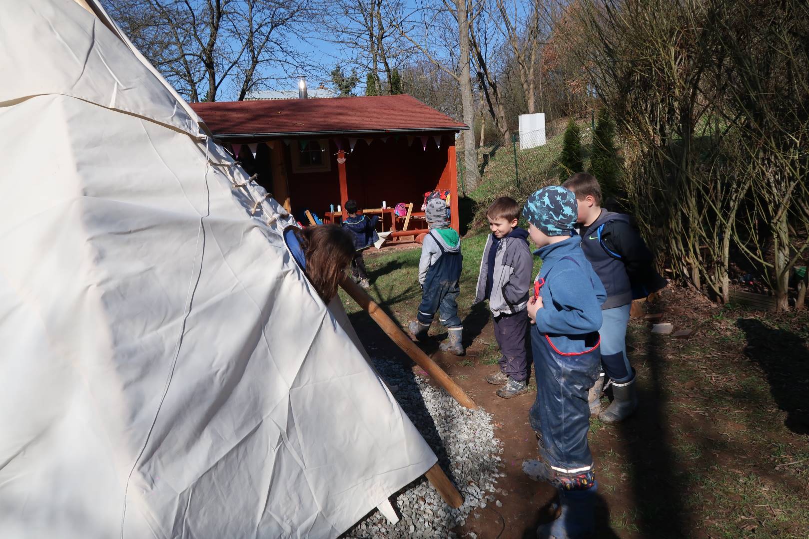 Domů Mateřská škola Aktuality Stavění týpí u maringotky