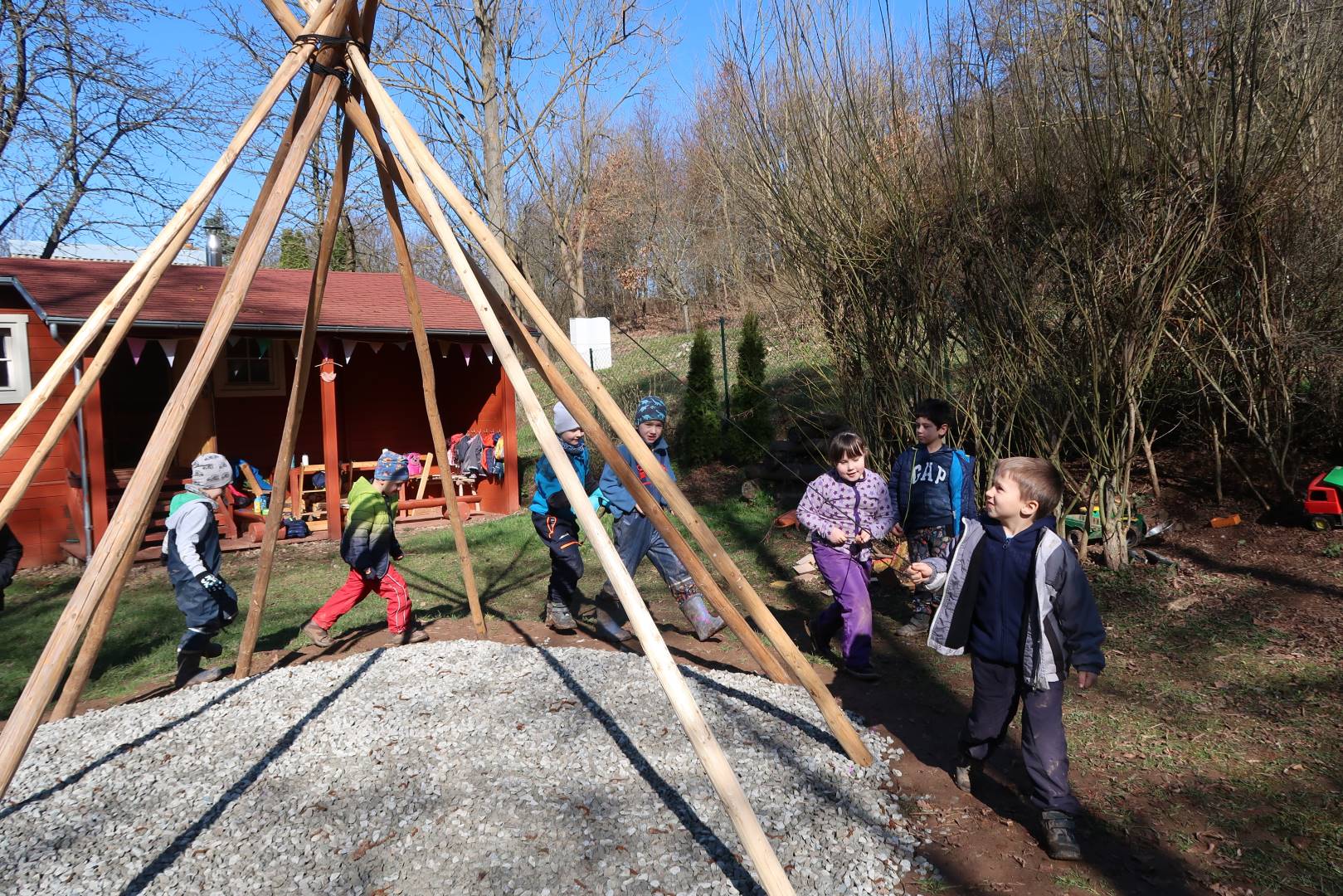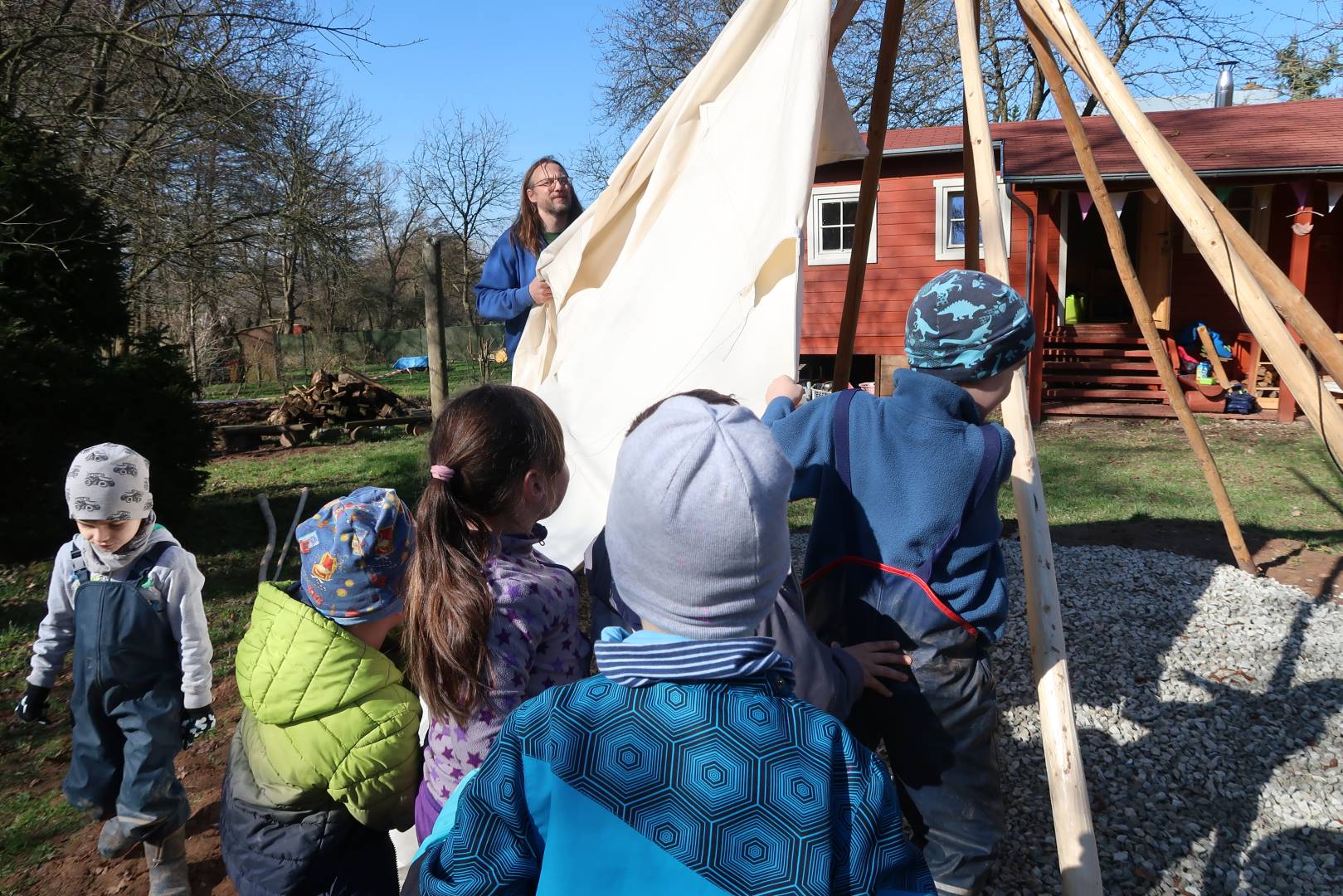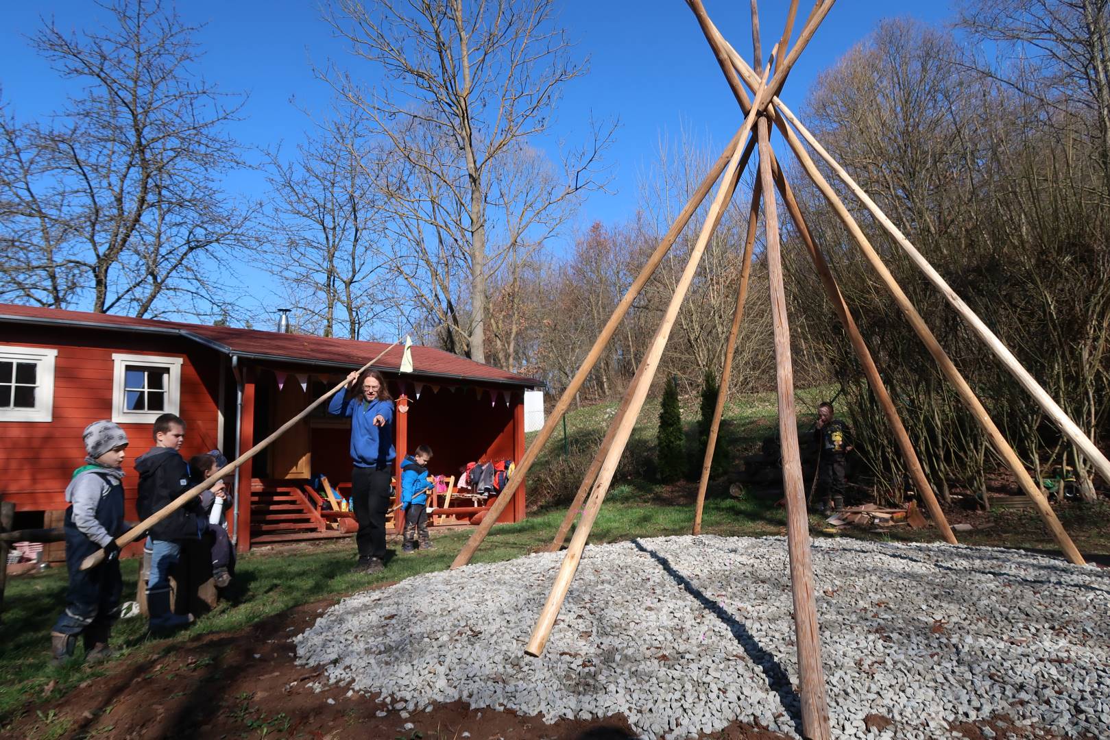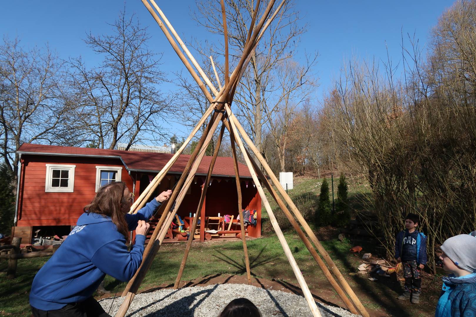 Domů Mateřská škola Aktuality Stavění týpí u maringotky