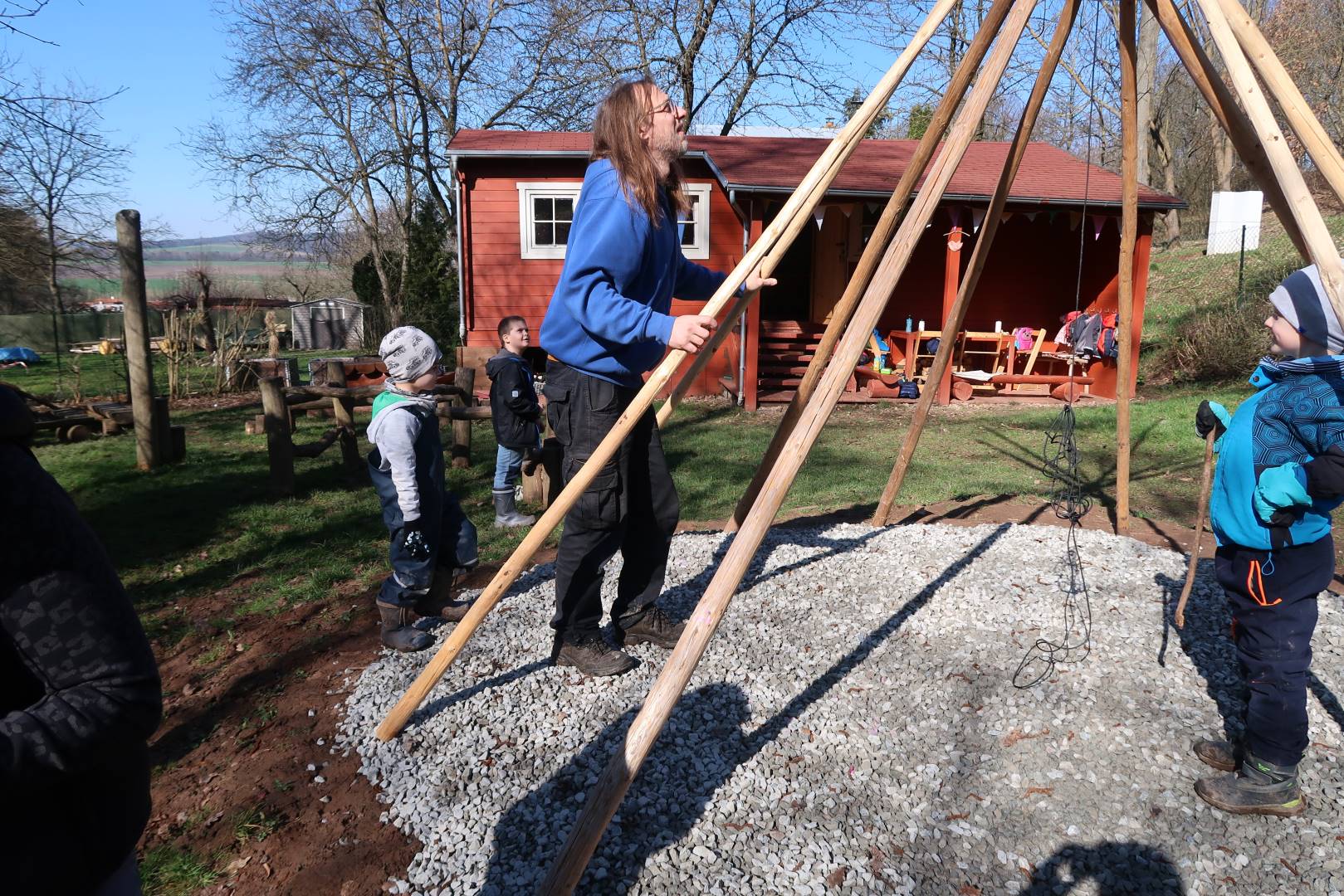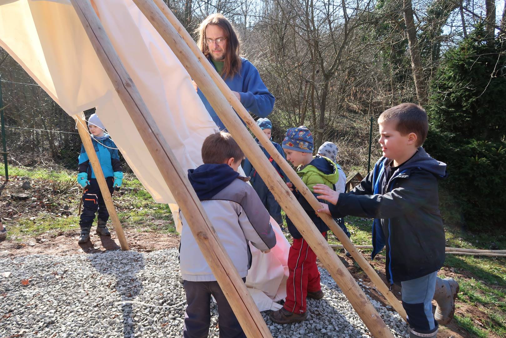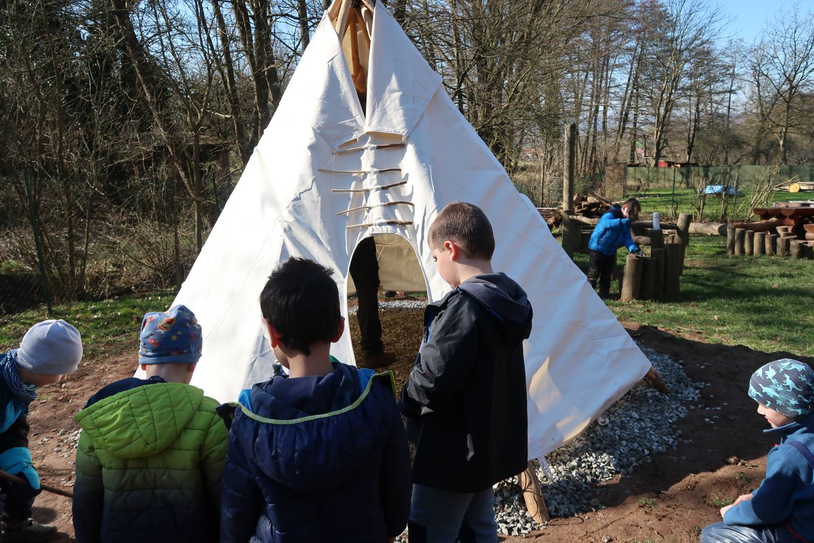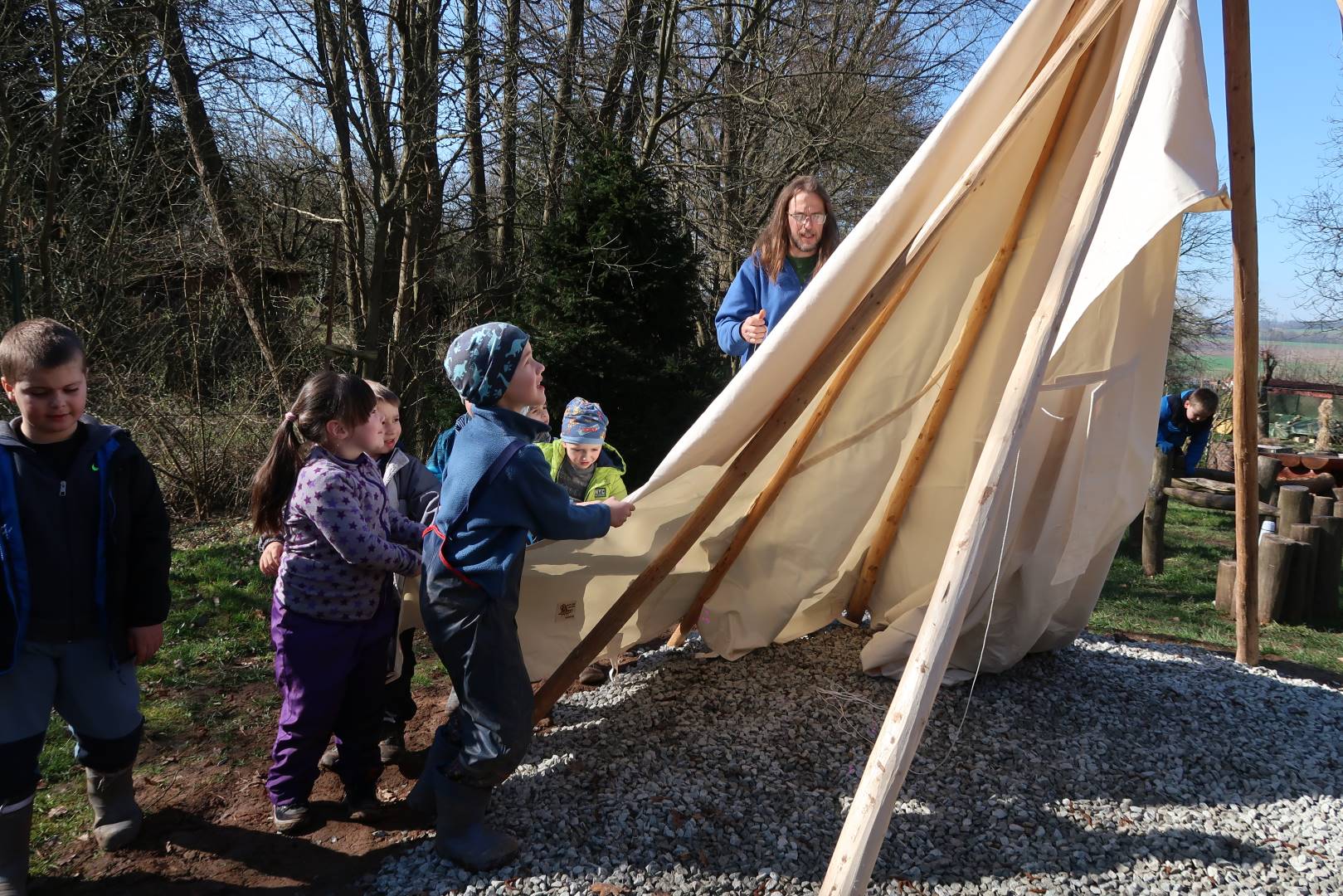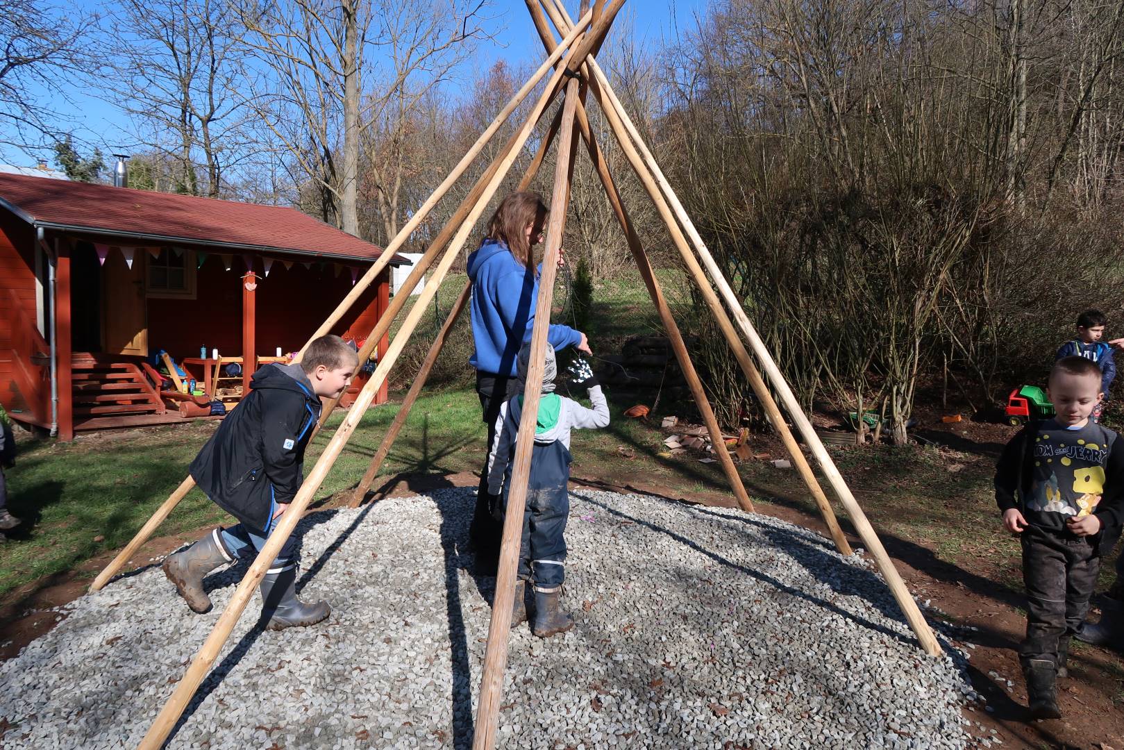 Domů Mateřská škola Aktuality Stavění týpí u maringotky