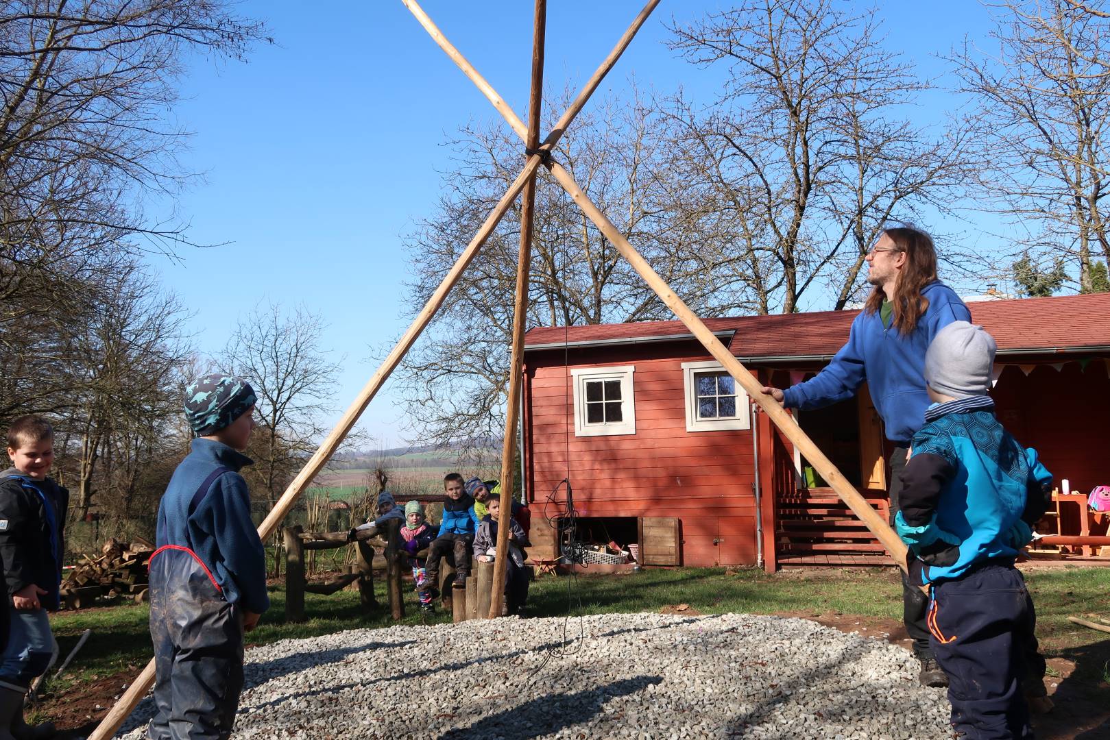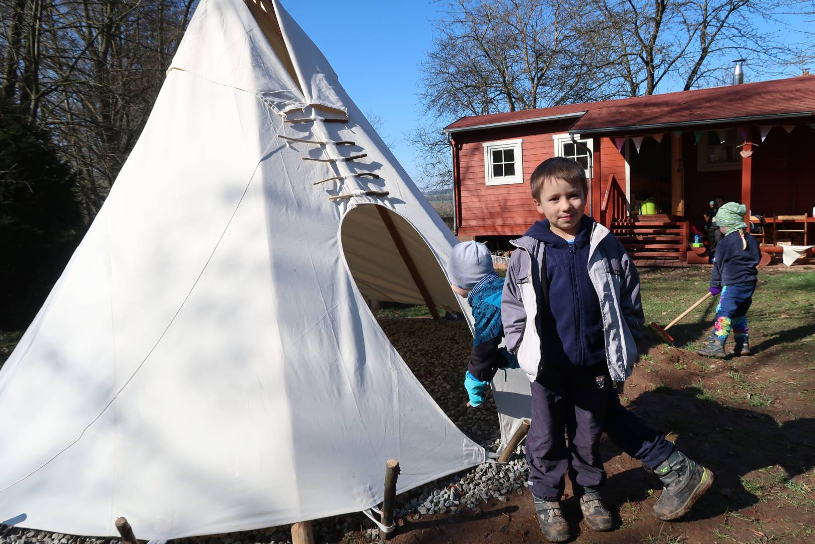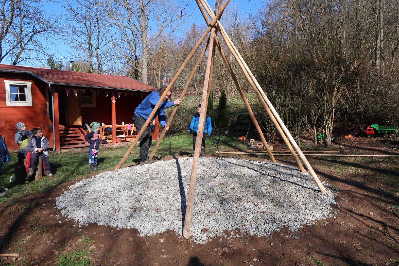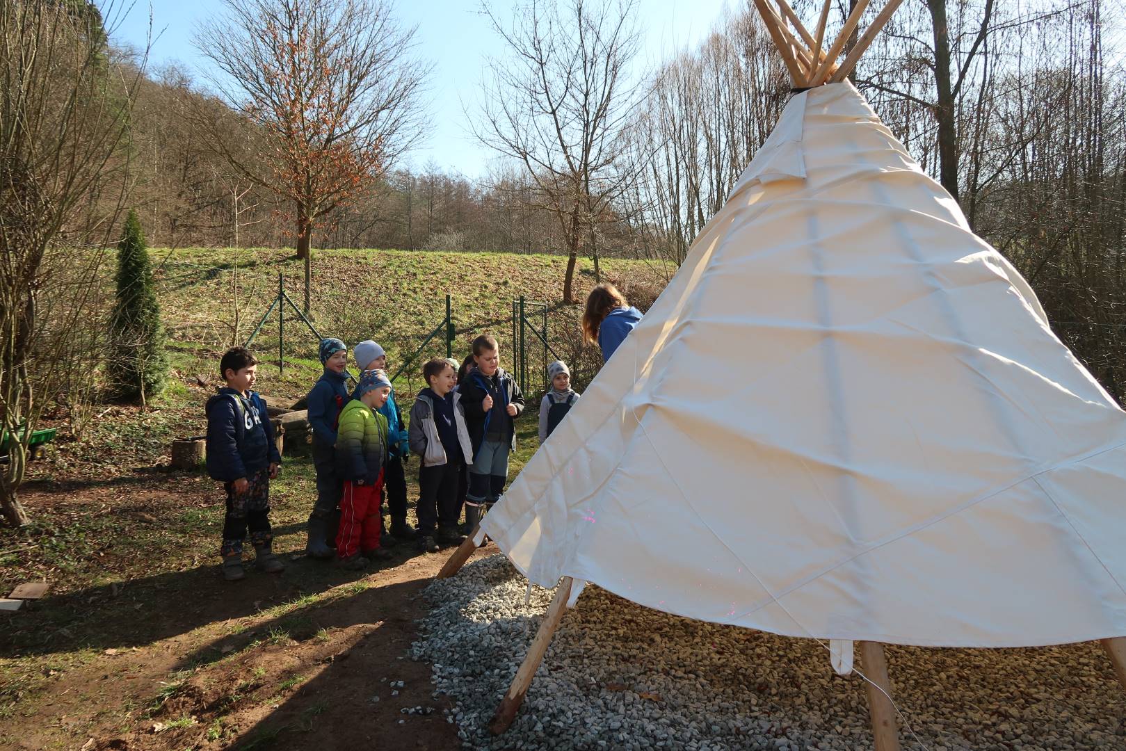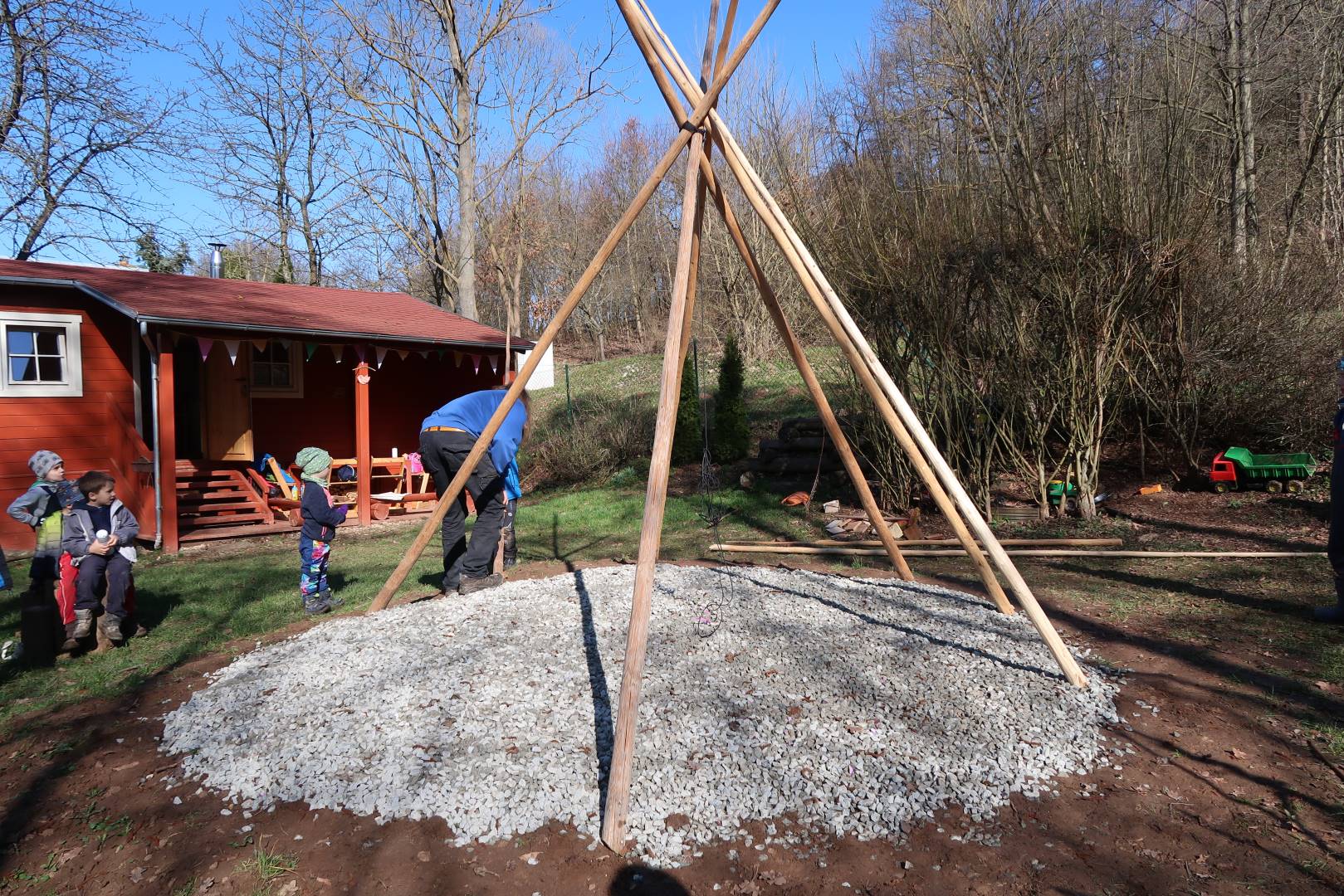 Domů Mateřská škola Aktuality Stavění týpí u maringotky