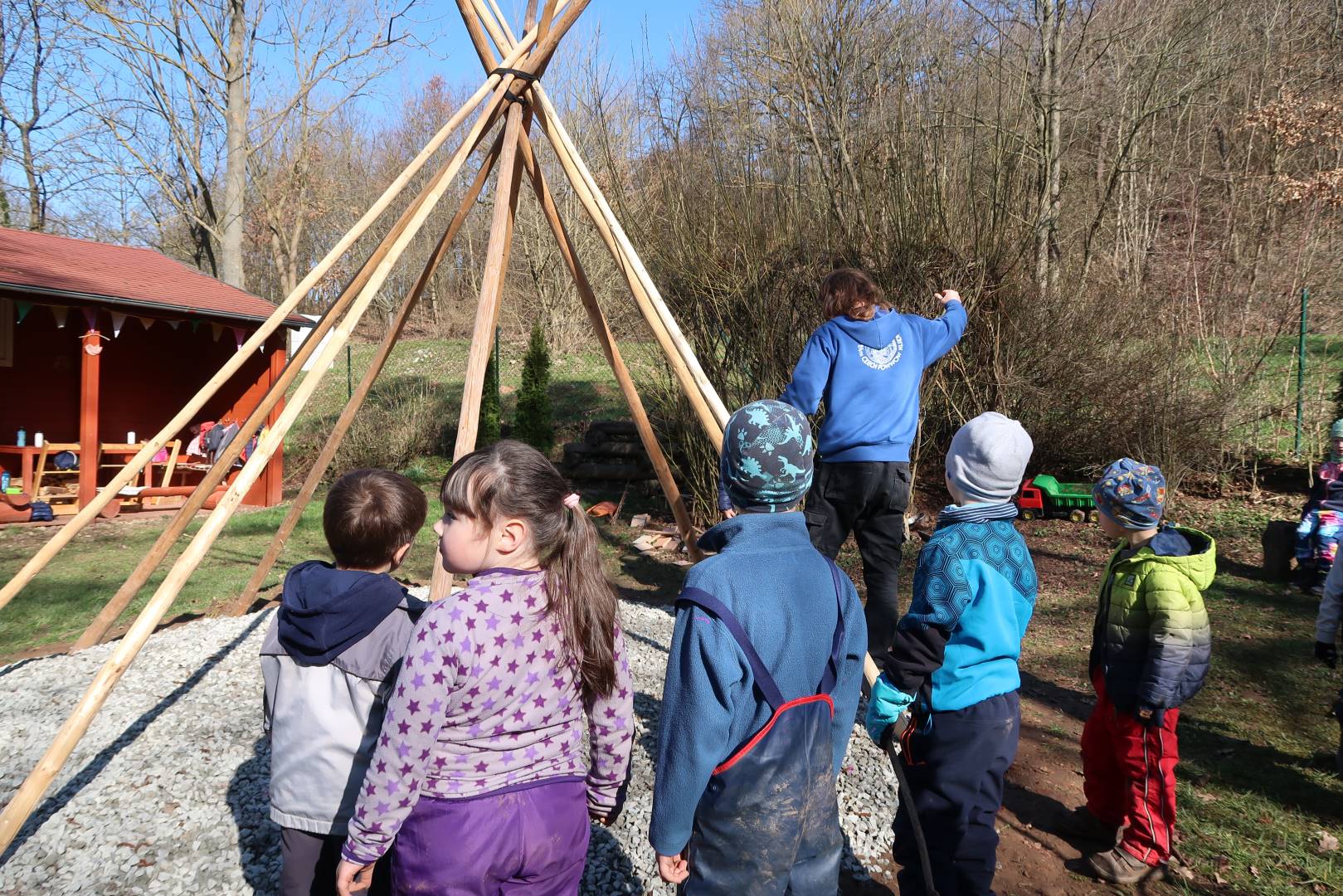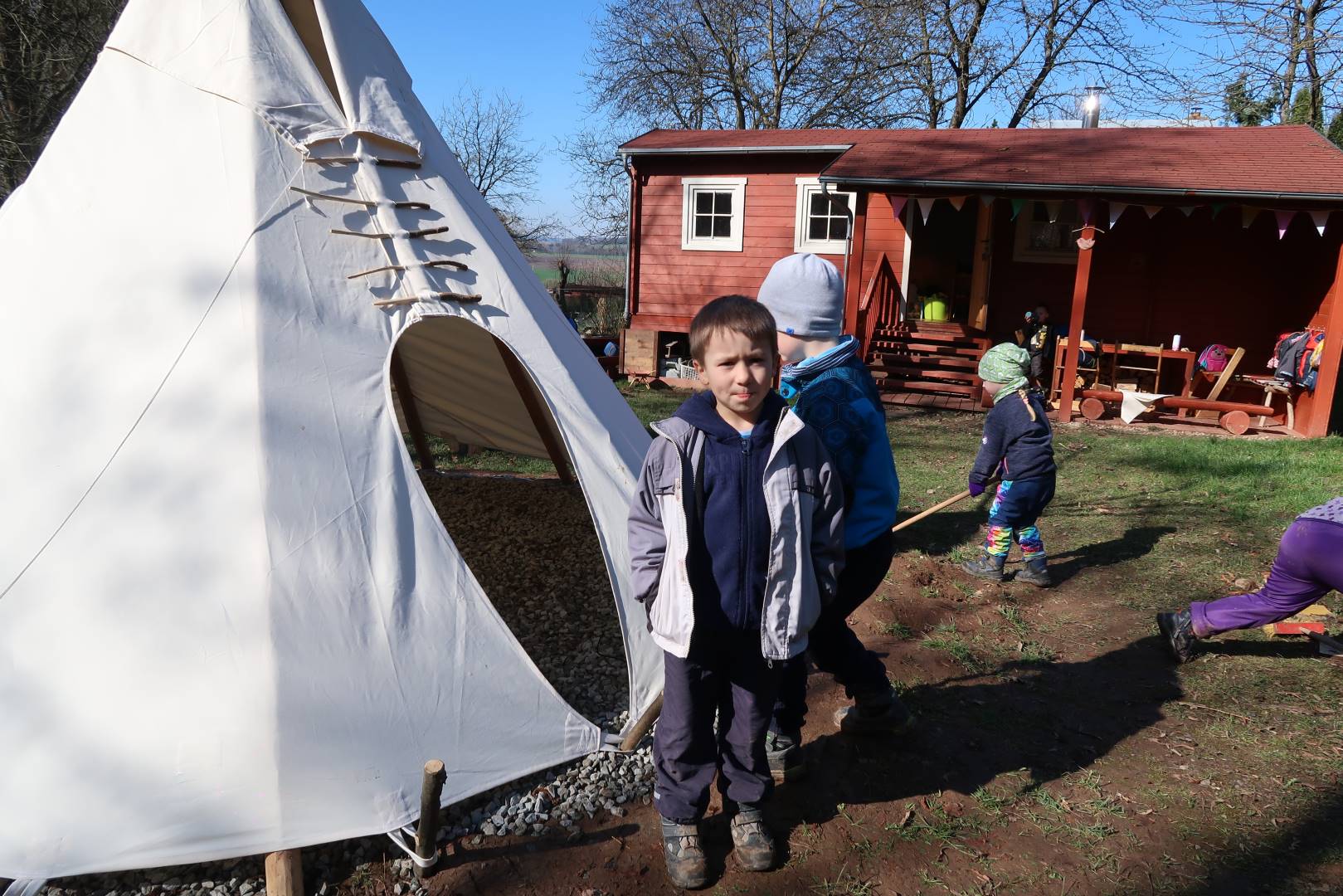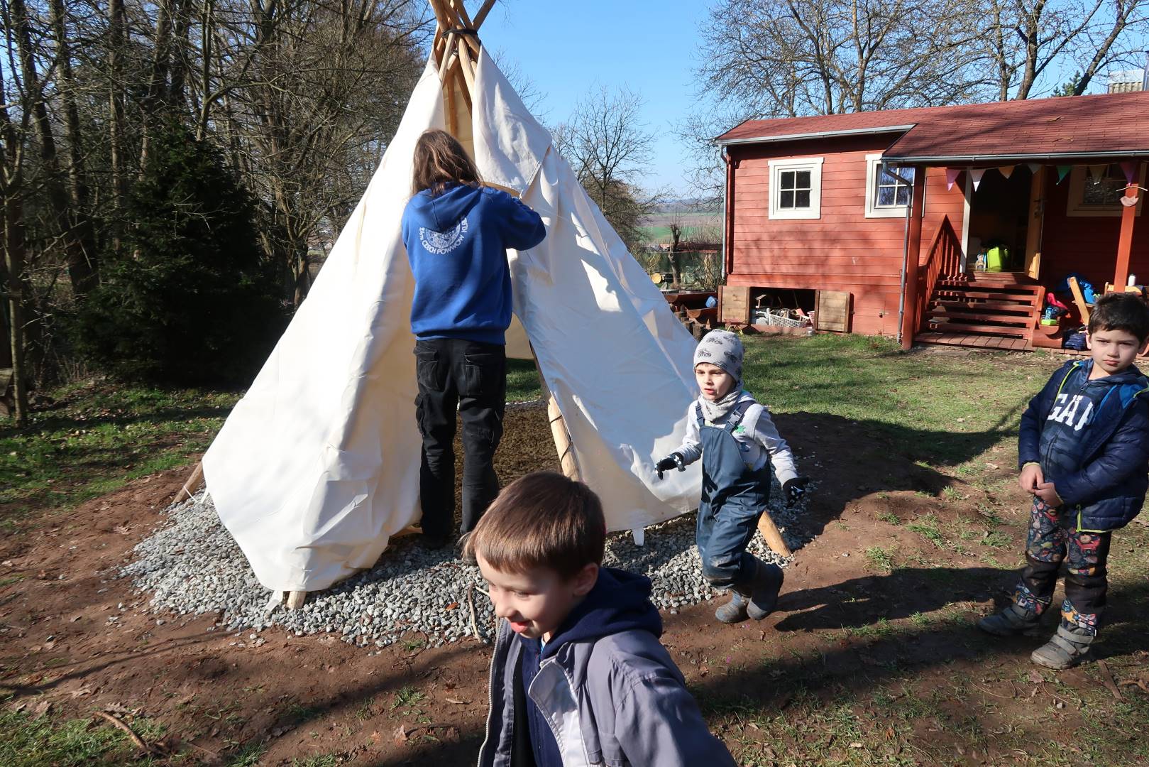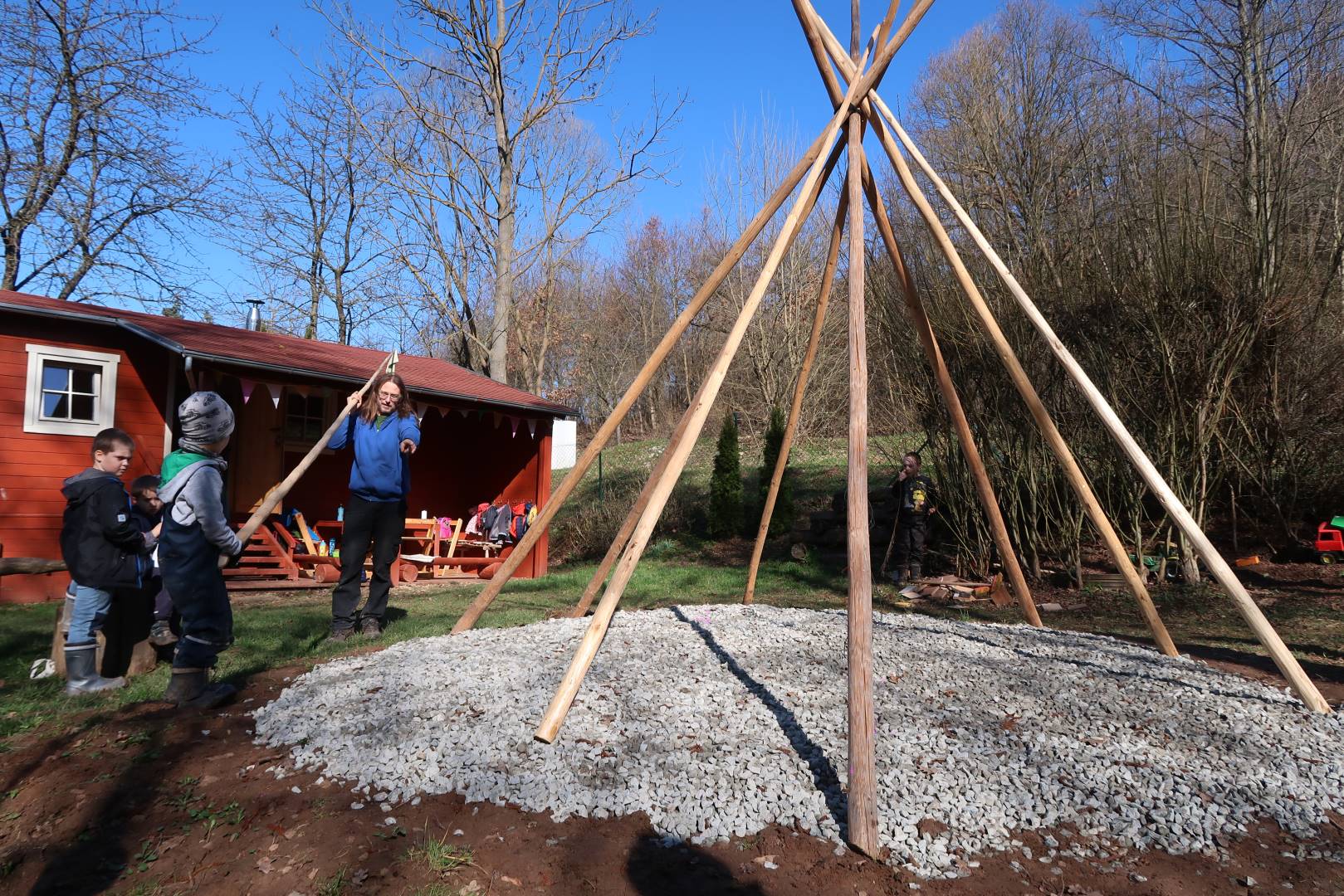 Domů Mateřská škola Aktuality Stavění týpí u maringotky