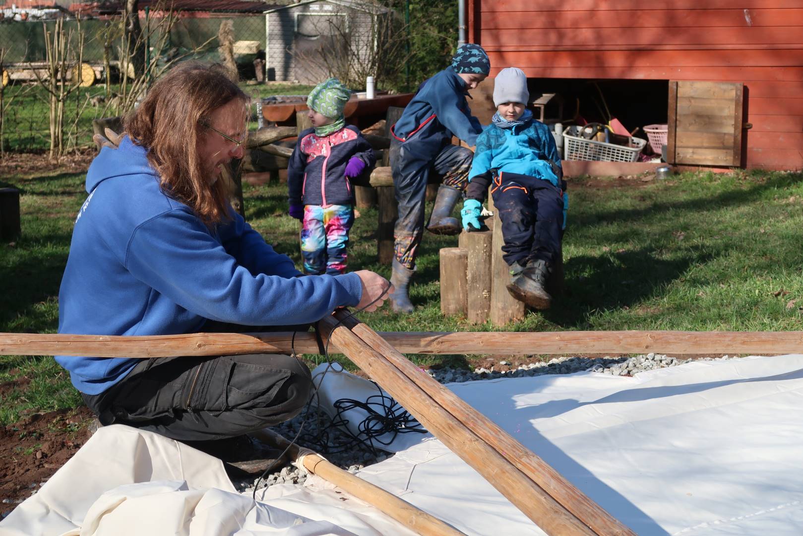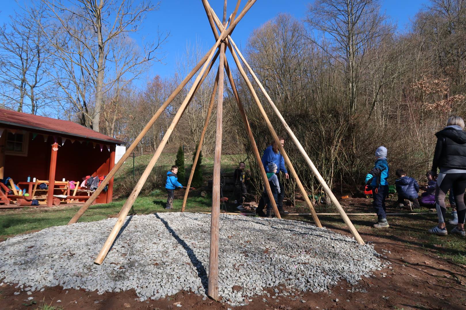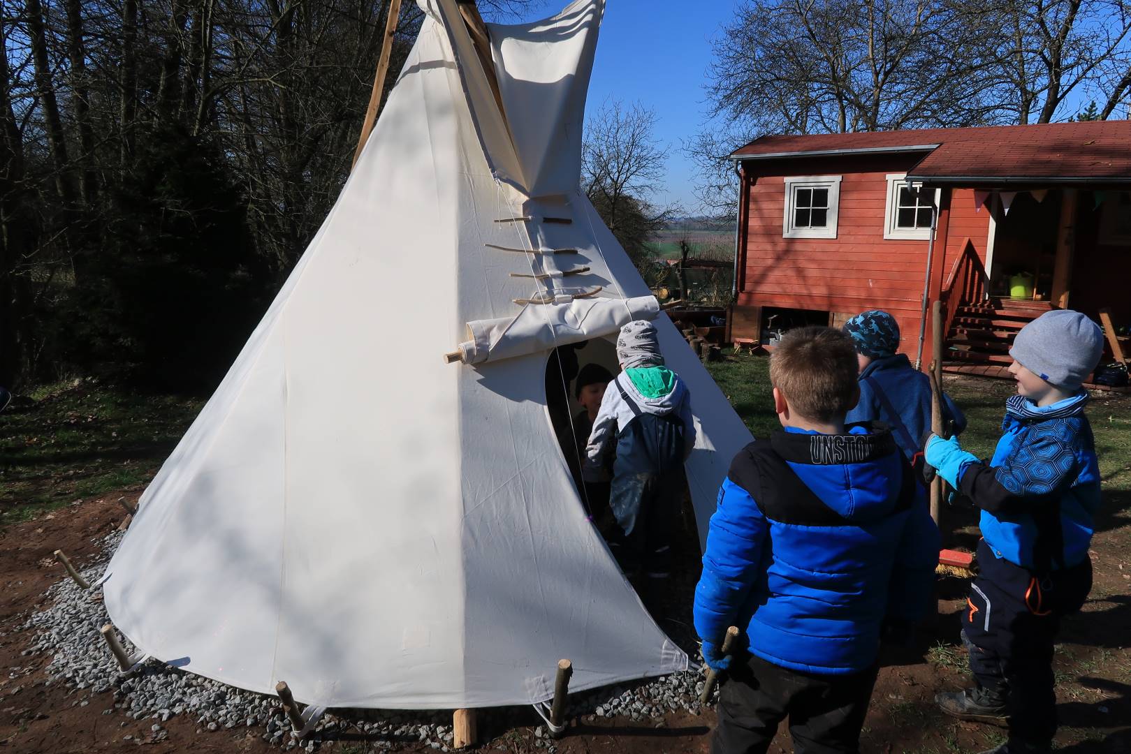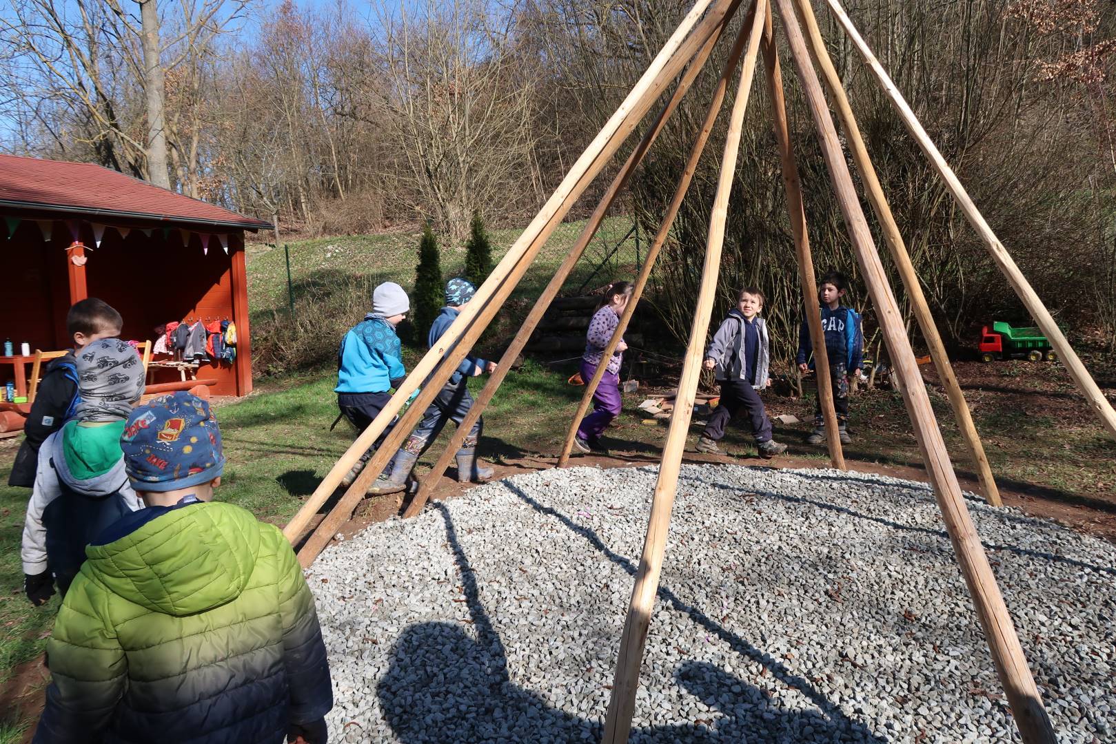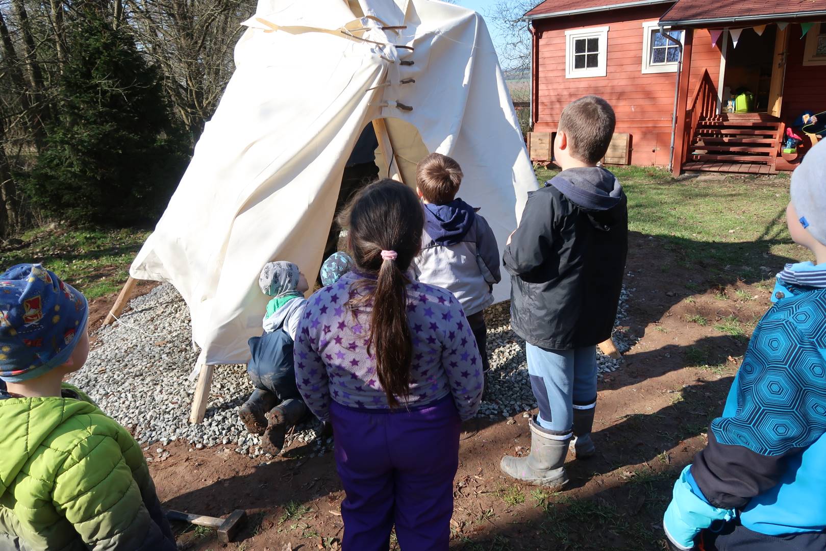 Domů Mateřská škola Aktuality Stavění týpí u maringotky