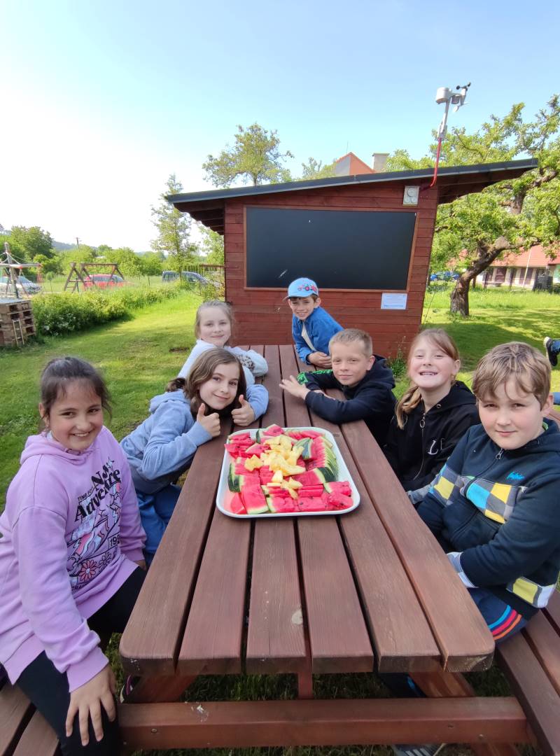Domů Základní škola Třídy 5. třída Archiv Fotogalerie Svačinka na zahradě