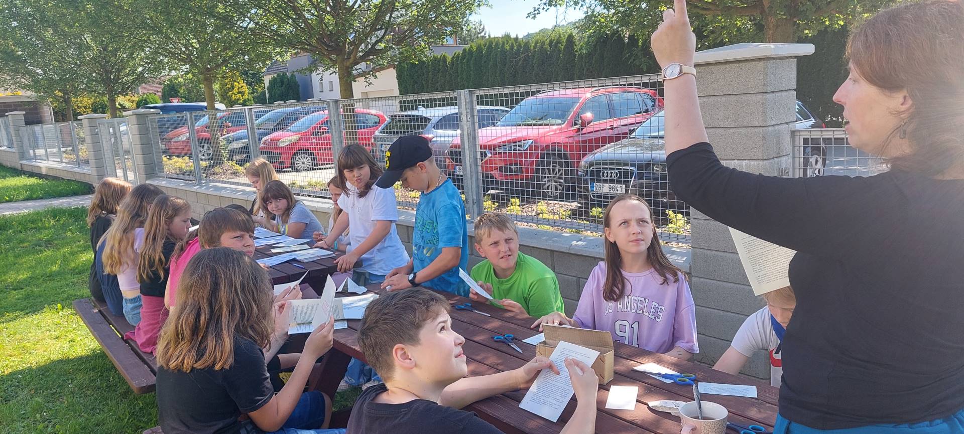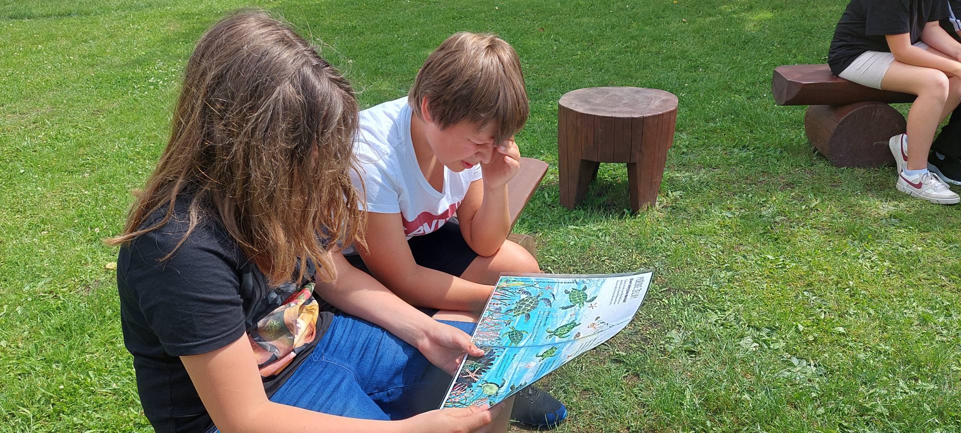 Domů Základní škola Třídy 6. třída Archiv Fotogalerie Téma voda v knihách (projekt na zahradě)