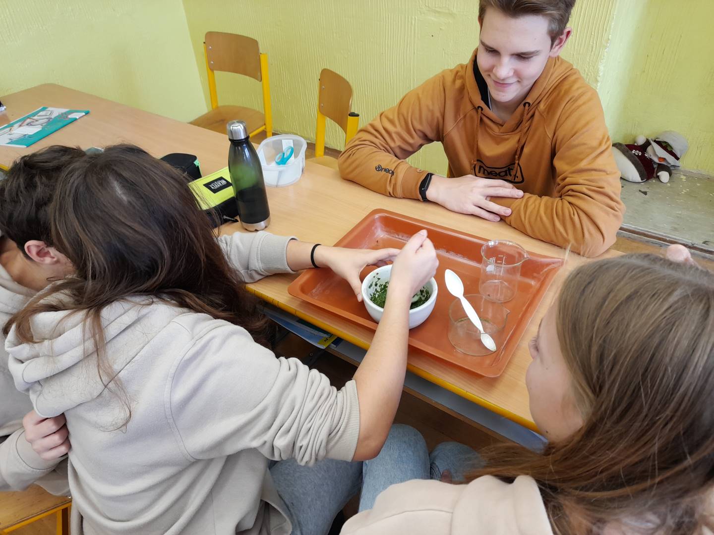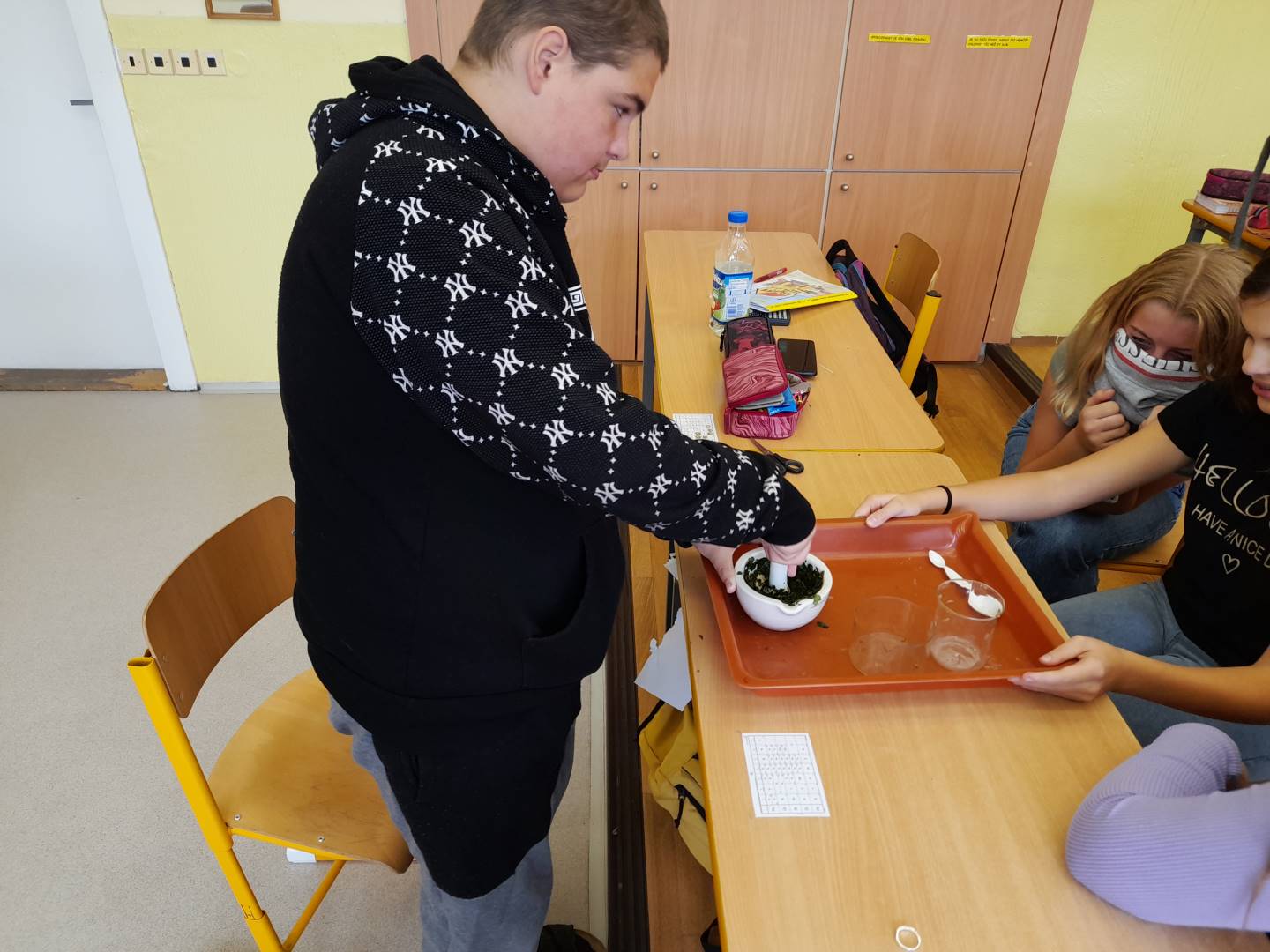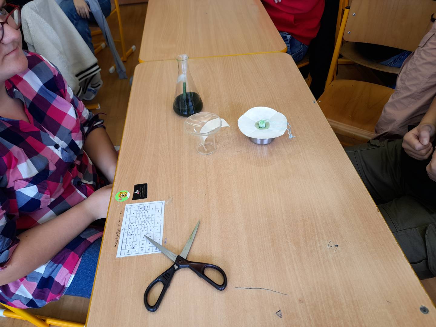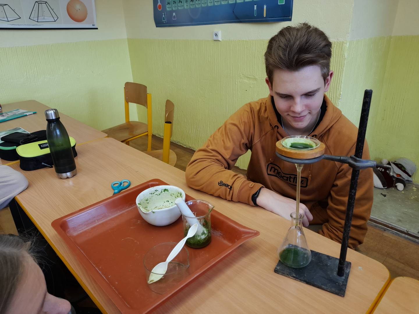 Fotografie z činností různých tříd najdete v jejich třídních fotogaleriích. Zde přikládáme fotografie žáků 9. třídy, kteří v hodinách přírodopisu, fyziky a chemie zjišťovali, proč listy stromů na podzim mění barvy - pomocí chromatografie rozdělovali listová barviva na jednotlivé složky.