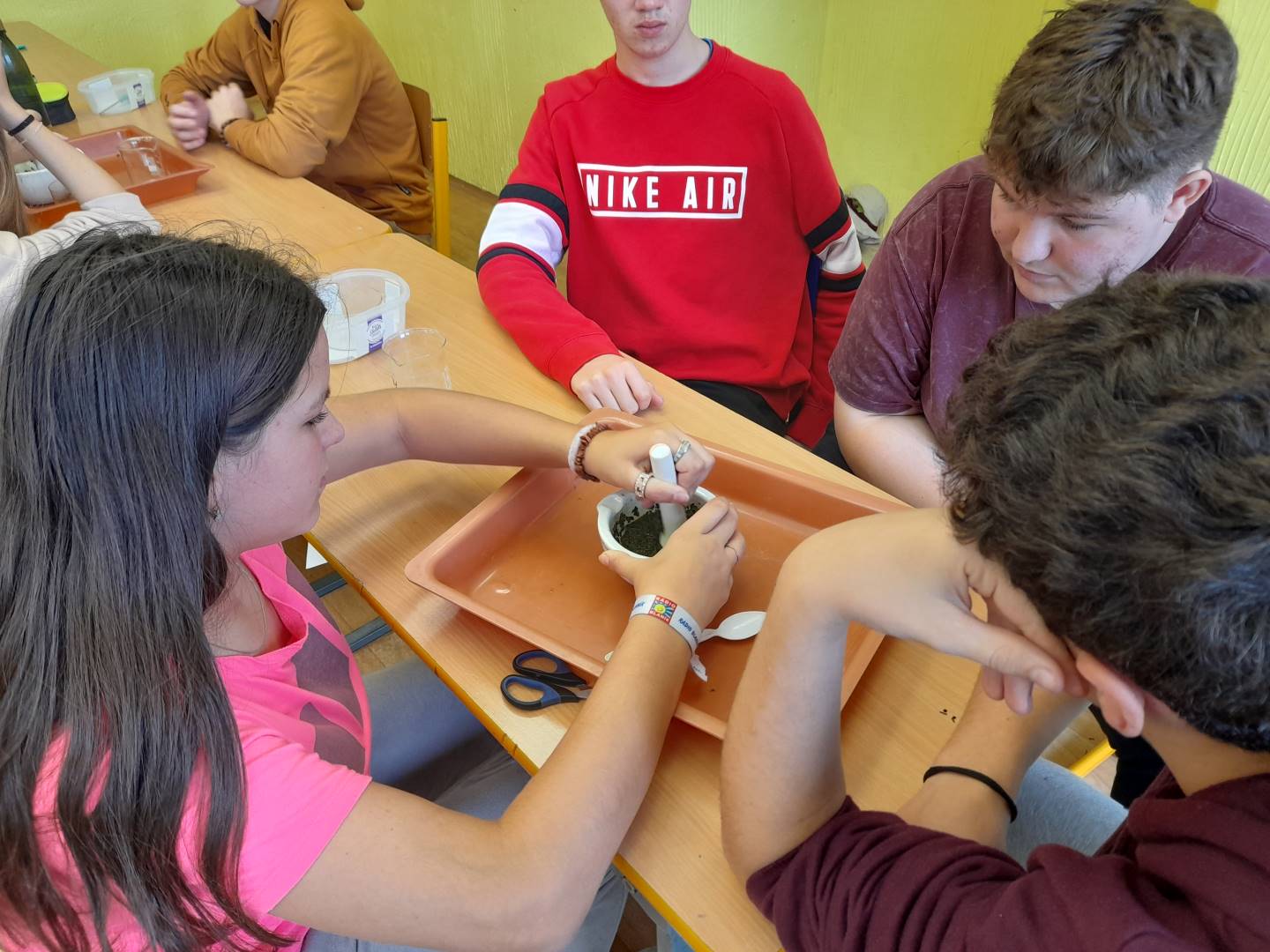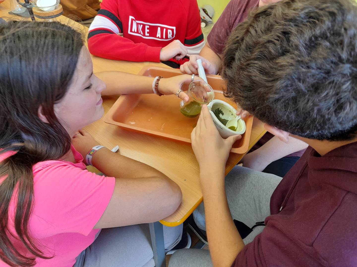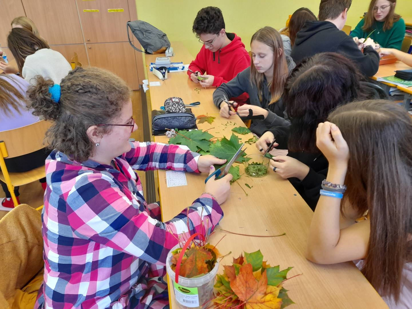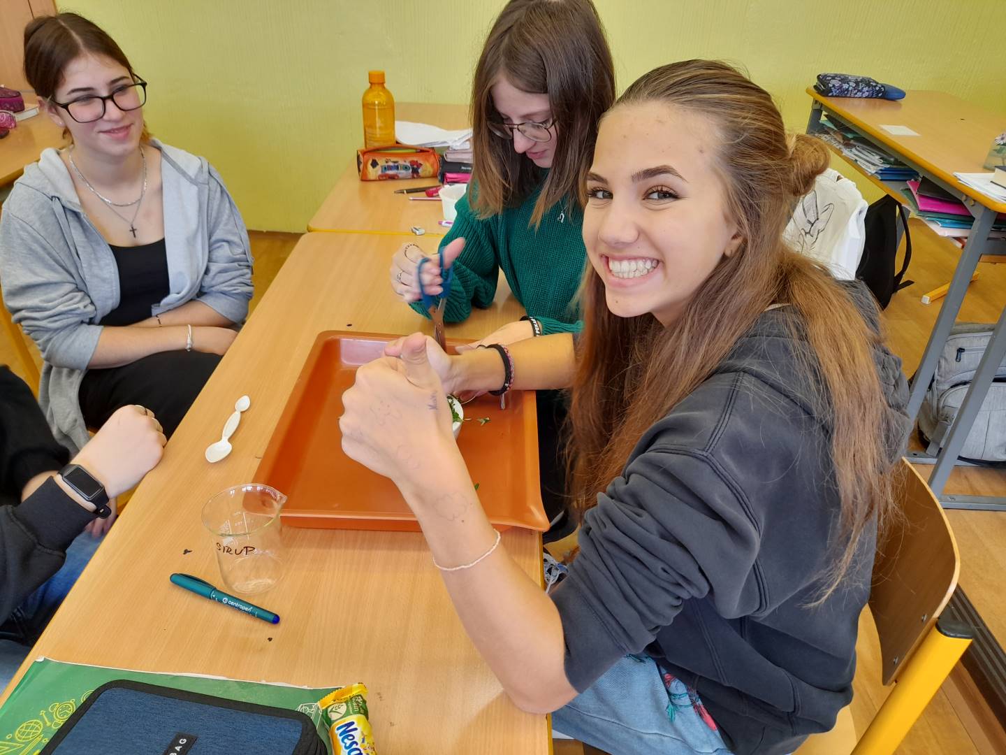 Fotografie z činností různých tříd najdete v jejich třídních fotogaleriích. Zde přikládáme fotografie žáků 9. třídy, kteří v hodinách přírodopisu, fyziky a chemie zjišťovali, proč listy stromů na podzim mění barvy - pomocí chromatografie rozdělovali listová barviva na jednotlivé složky.