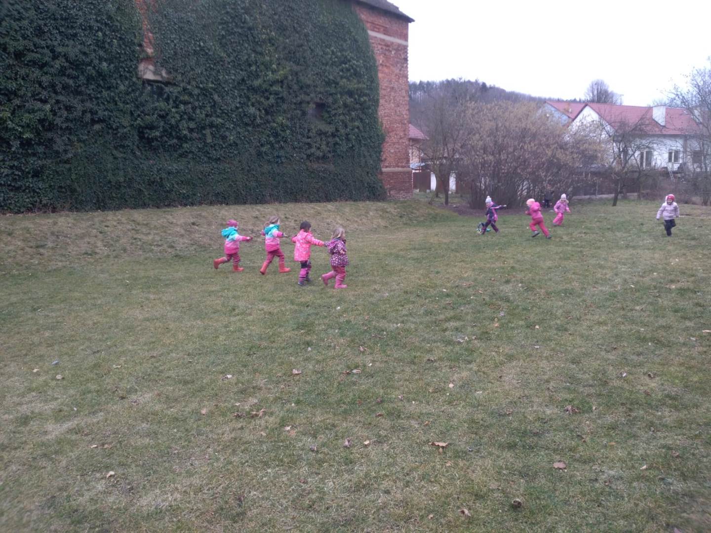 V úterý jsme se vydali na farní zahradu, kde jsme pozorovali první sněženky, počasí a přírodu. Děti válely sudy, hrály pohybové hry a dováděly na průlezkách.