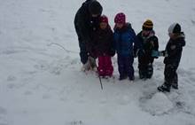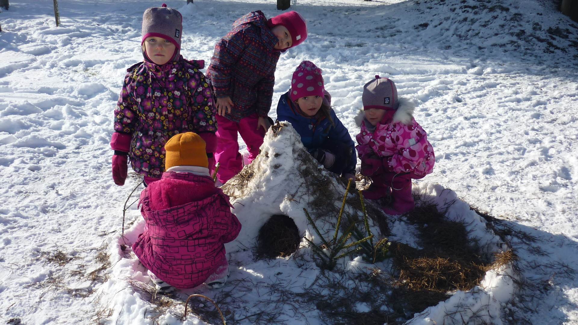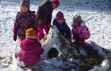 První únorový týden přinesl značnou sněhovou nadílku, ale i velkou nemocnost dětí. Z toho plynul i změněný režim tříd a střídání učitelek ve třídách. Od úterý byly obě skupinky Žabek spojeny a k maringotce se už nedostaly. Sníh jsme opravdu vychutnávali všemi smysly! Bobování, stavby ze sněhu, eskymácké honičky, barvení sněhu, dokonce jsme se s jeho pomocí seznámili i se Sluneční soustavou. Zahráli jsme si na pomyslnou návštěvu planetária, když už se kvůli nemocem to opravdické přesunulo na jindy, a ve třídě si pak jednotlivé planety namalovali, vystřihli a nalepili. Příští týden jsou prázdniny, tak snad se děti uzdraví a opět začne obvyklý režim!