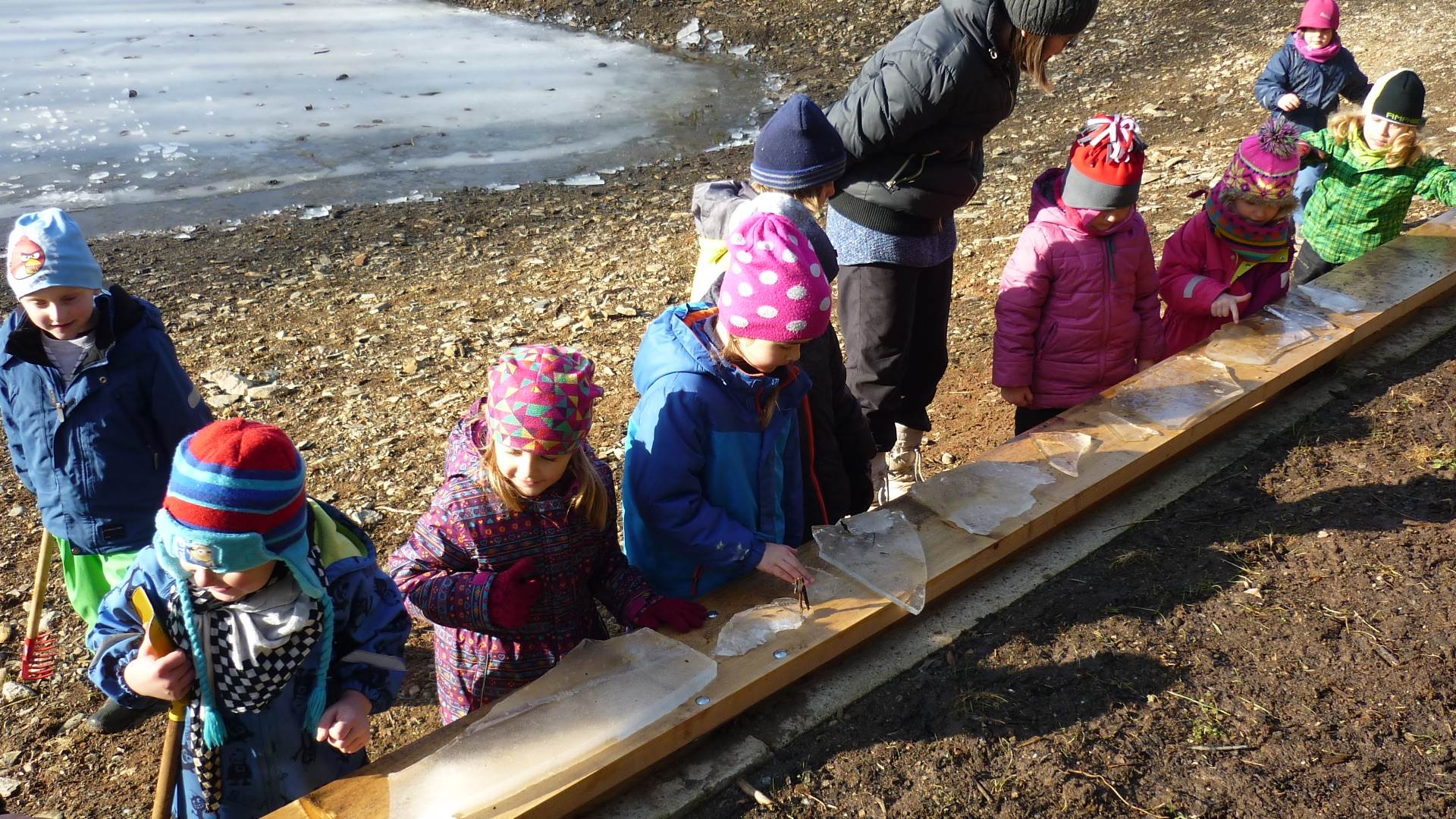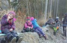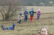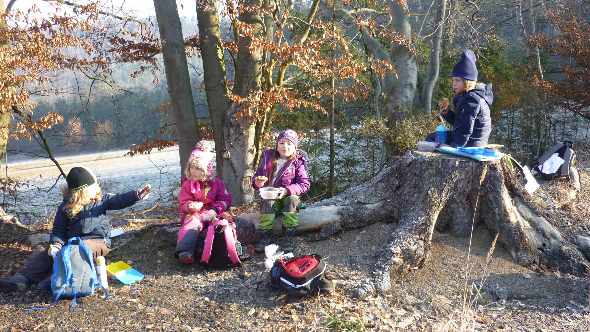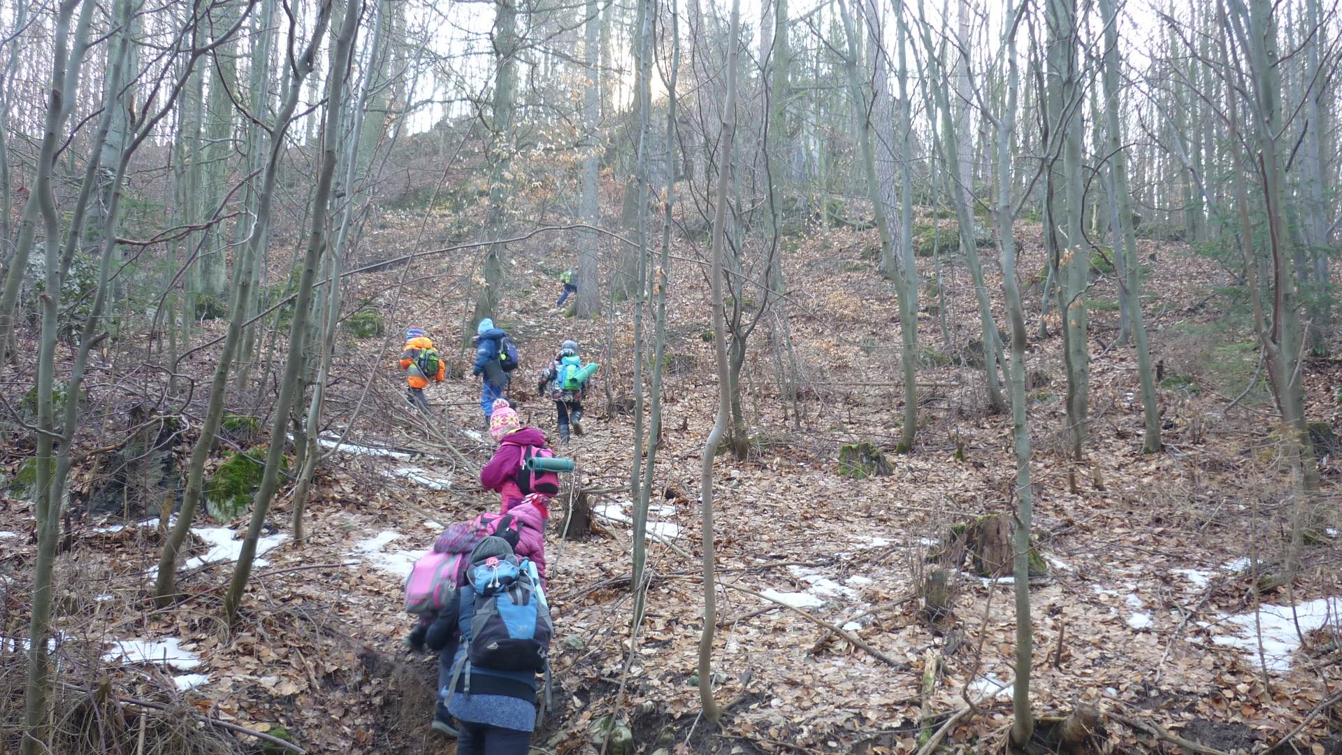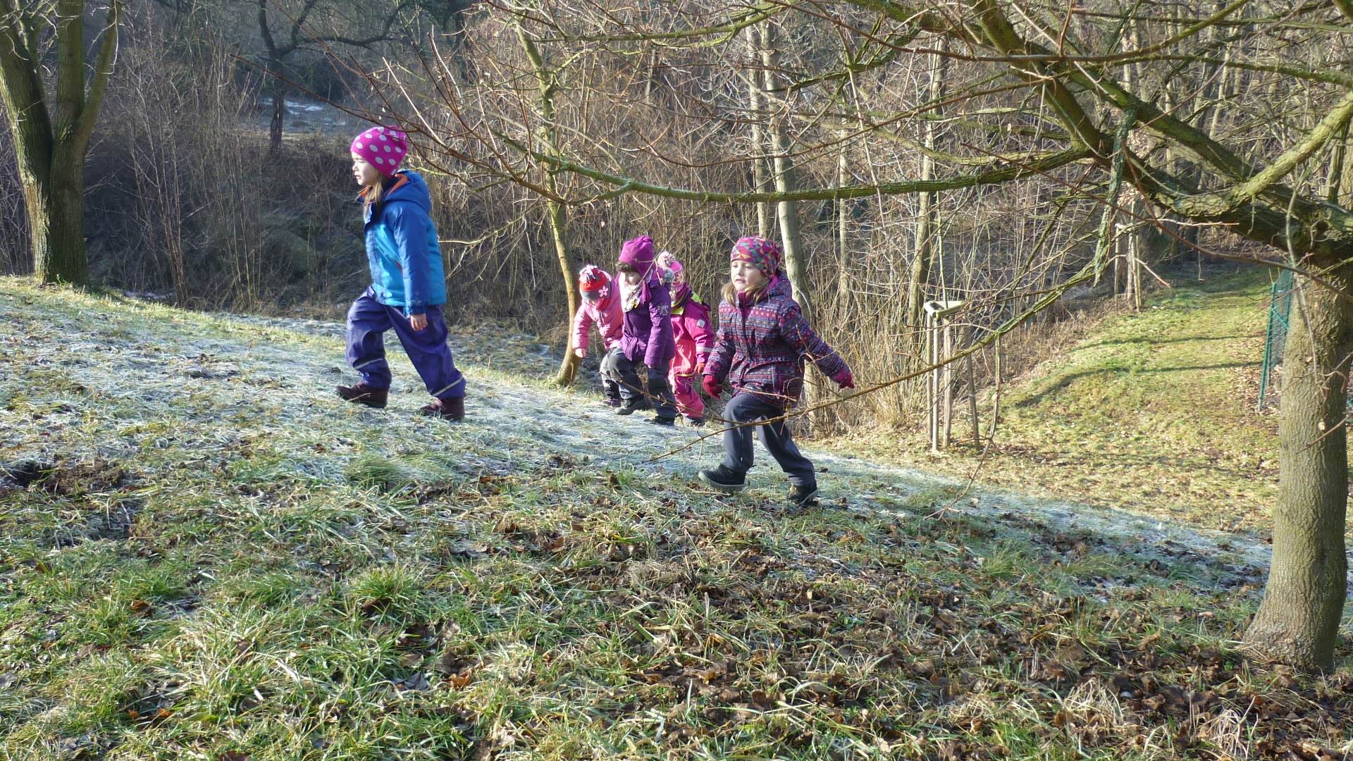 Je po prázdninách, děti se uzdravily a jsme zase v téměř plném stavu. Opět vyrážíme po skupinkách do lesa, zkontrolovat maringotku. Po sněhu už není téměř žádná památka. Ráno je ještě cesta pevná, ale v poledne už je pěkné bláto. Snažíme se mu vyhýbat, ale ne vždy to je možné. Rybník je ještě zčásti zamrzlý. Je pro nás neustálou zásobárnou ledů, a tak si z nich děláme výstavku. Necháme se inspirovat dětmi a vyrážíme na speleologickou výpravu. Vyprávíme si o zdraví a nemocech, zjišťujeme, jak je dobrý a zdravý přemrzlý šípek a hrajeme si na bacili. Když si pochutnáváme na svačinách, objevujeme, že si někdo pochutnával na mravencích. Že by divočáci? Jejich stop je všude plno. Není se co divit, žaludů a bukvic je tu docela dost. I s druhou skupinkou se vydáváme k šípku. Všímáme si reakcí těla na zvýšenou námahu, díváme se, zda už se probudily včelky a povídáme si o medu a o tom, jak je zdravý. Všimli jsme si, že vrba už má kočičky a formou her si opakujeme části lidského těla. Ve čtvrtek nás čeká sportovní den. Ráno využíváme ke sportu tělocvičnu, a pak se vydáváme protáhnout tělo na fotbalové hřiště.
