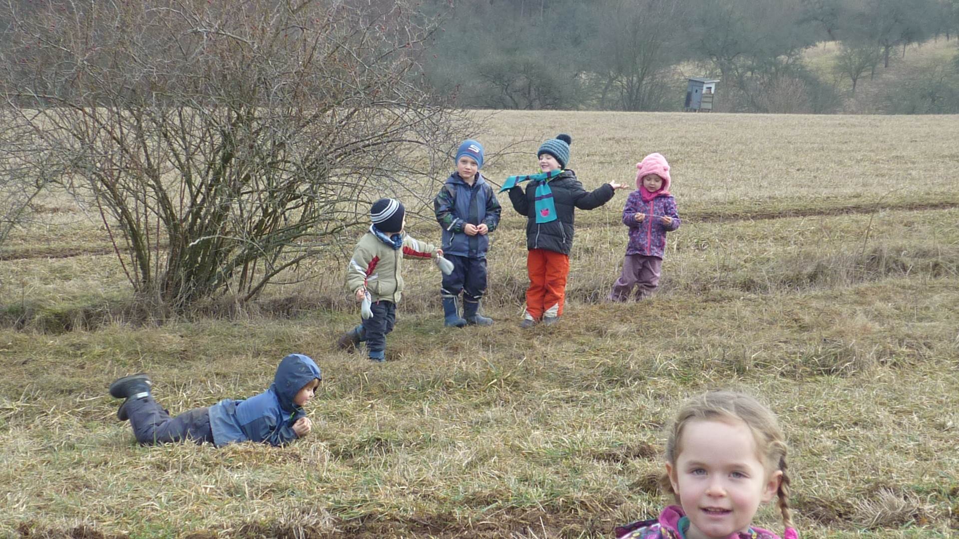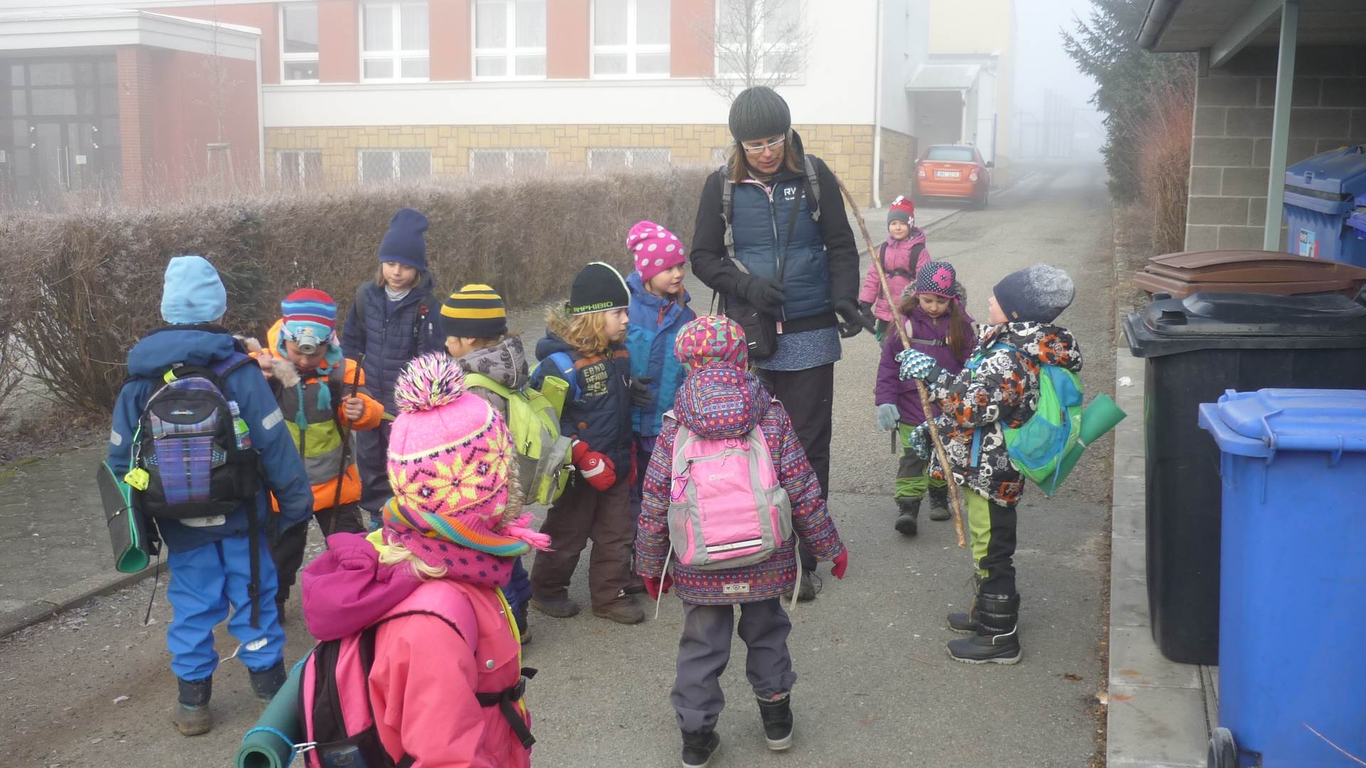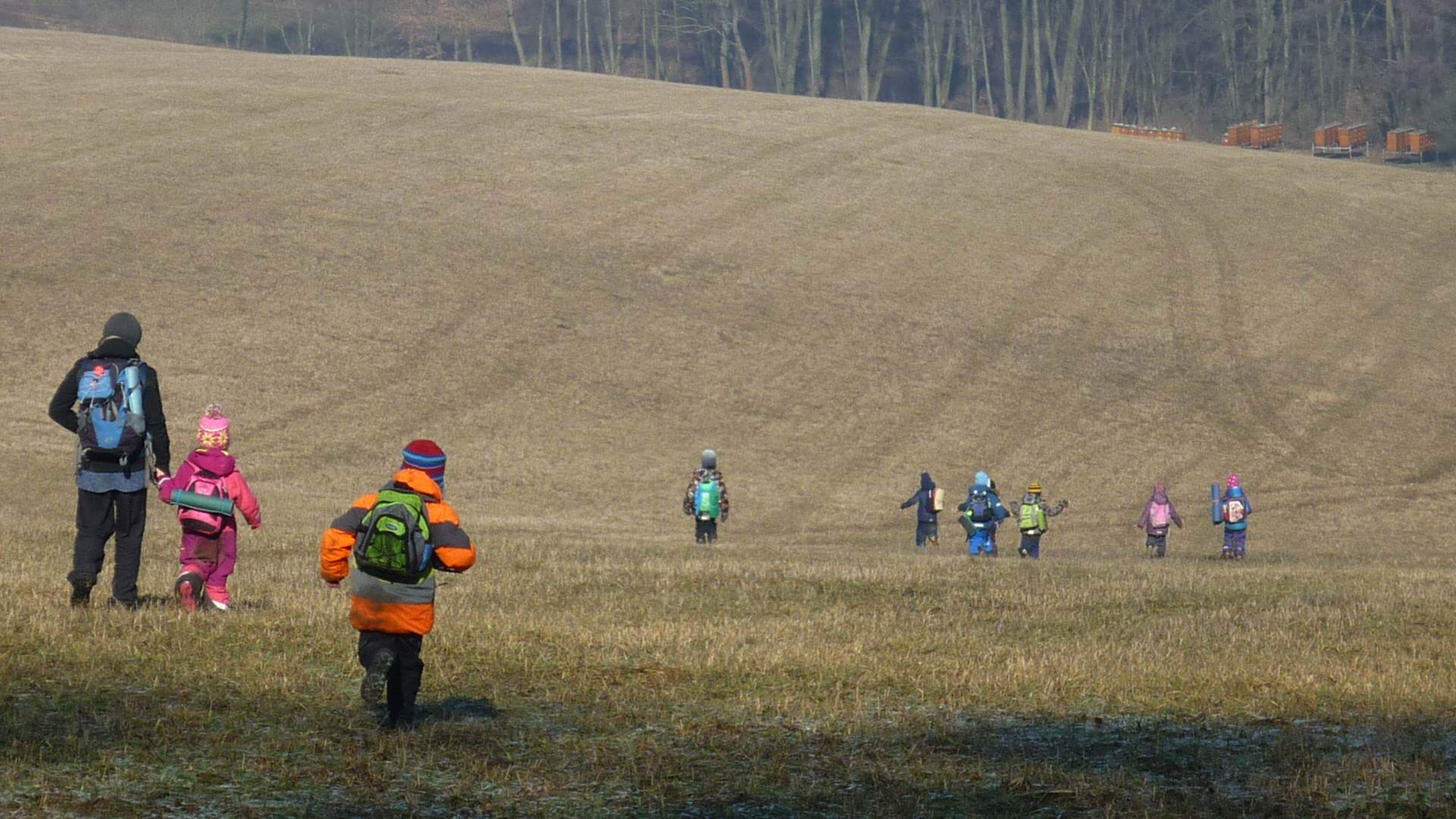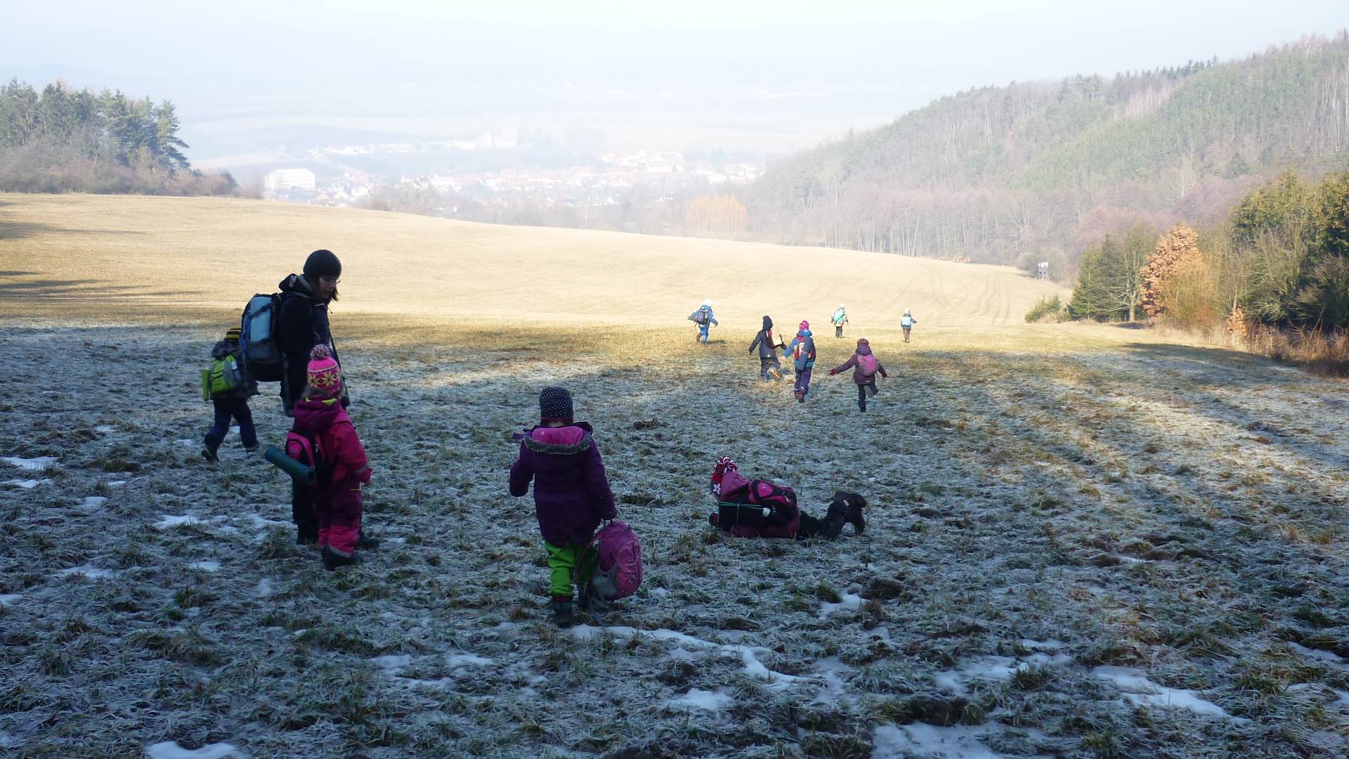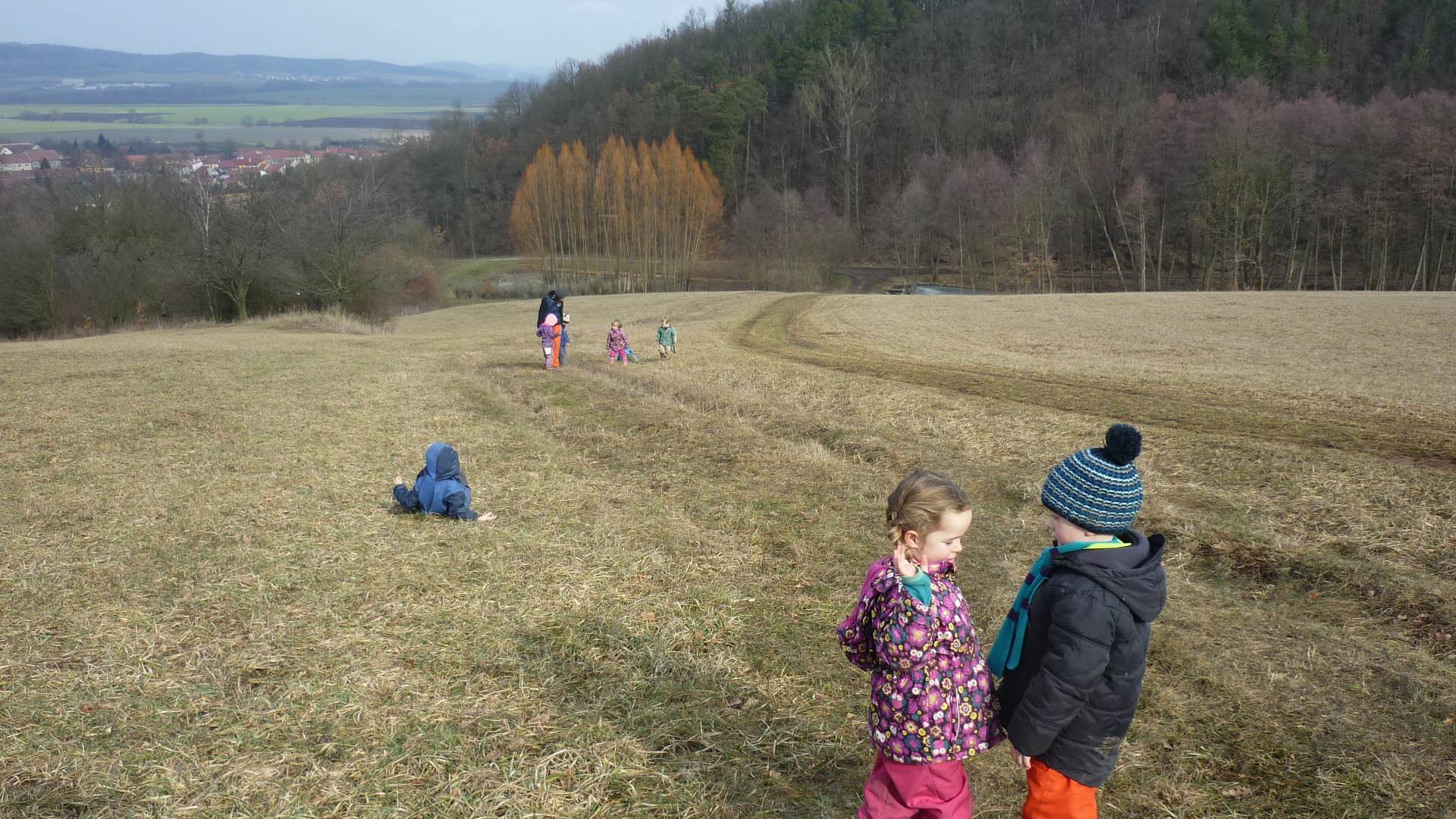 Je po prázdninách, děti se uzdravily a jsme zase v téměř plném stavu. Opět vyrážíme po skupinkách do lesa, zkontrolovat maringotku. Po sněhu už není téměř žádná památka. Ráno je ještě cesta pevná, ale v poledne už je pěkné bláto. Snažíme se mu vyhýbat, ale ne vždy to je možné. Rybník je ještě zčásti zamrzlý. Je pro nás neustálou zásobárnou ledů, a tak si z nich děláme výstavku. Necháme se inspirovat dětmi a vyrážíme na speleologickou výpravu. Vyprávíme si o zdraví a nemocech, zjišťujeme, jak je dobrý a zdravý přemrzlý šípek a hrajeme si na bacili. Když si pochutnáváme na svačinách, objevujeme, že si někdo pochutnával na mravencích. Že by divočáci? Jejich stop je všude plno. Není se co divit, žaludů a bukvic je tu docela dost. I s druhou skupinkou se vydáváme k šípku. Všímáme si reakcí těla na zvýšenou námahu, díváme se, zda už se probudily včelky a povídáme si o medu a o tom, jak je zdravý. Všimli jsme si, že vrba už má kočičky a formou her si opakujeme části lidského těla. Ve čtvrtek nás čeká sportovní den. Ráno využíváme ke sportu tělocvičnu, a pak se vydáváme protáhnout tělo na fotbalové hřiště.
