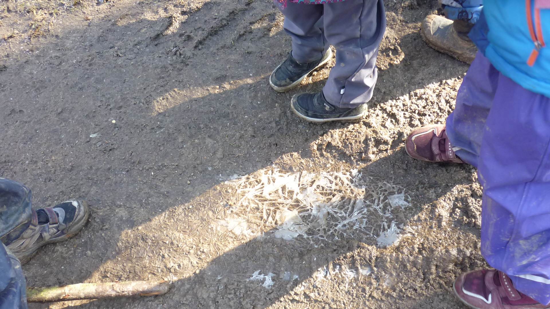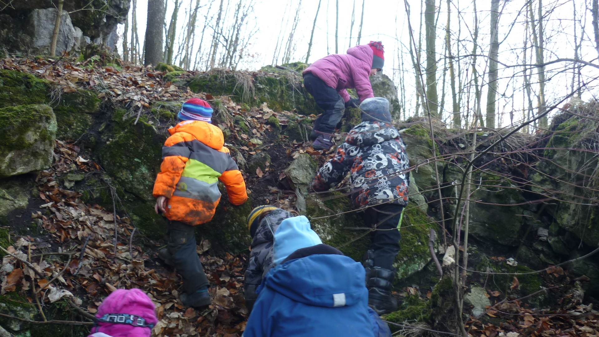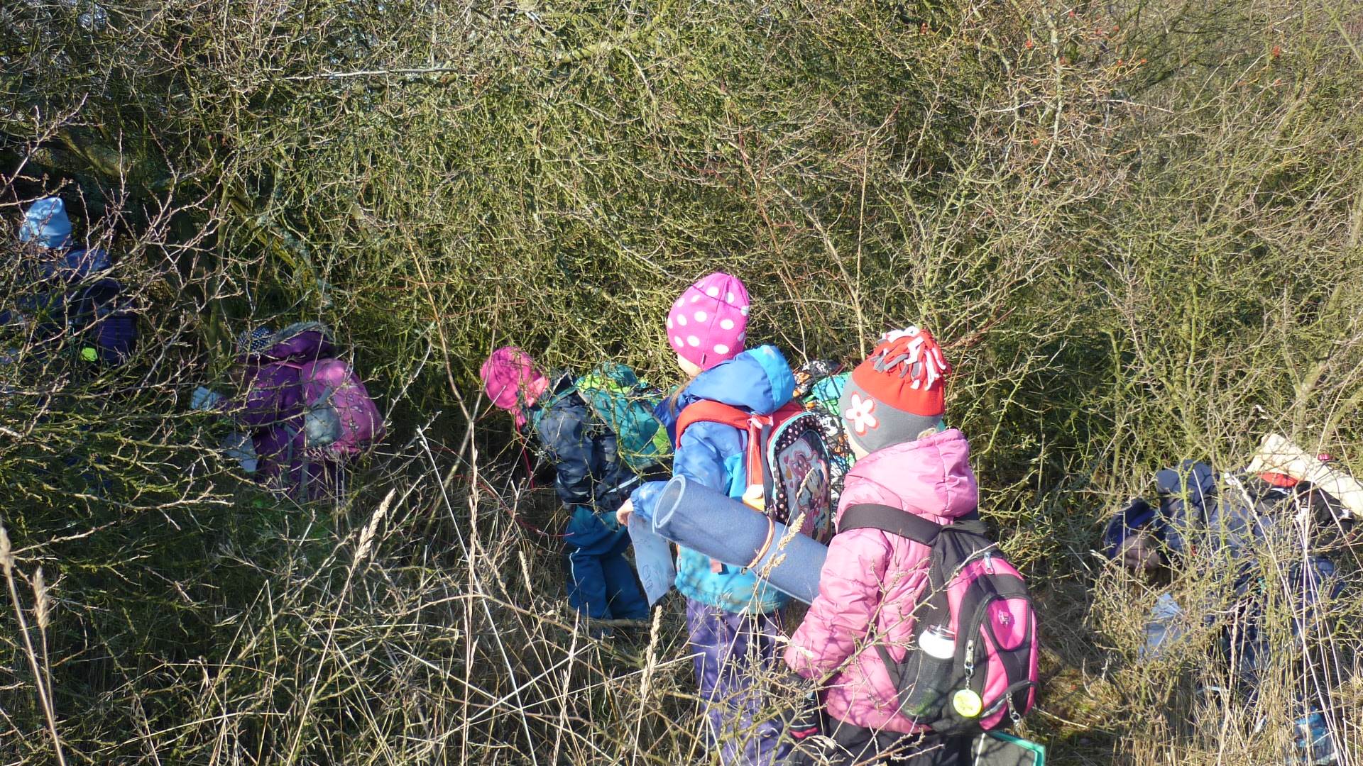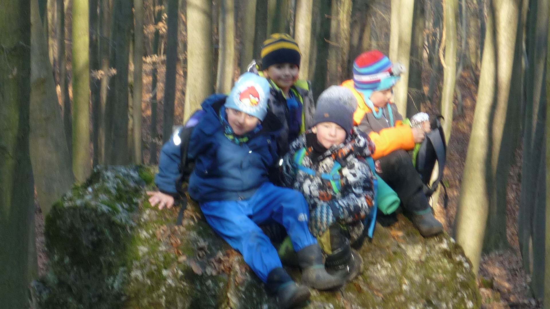 Je po prázdninách, děti se uzdravily a jsme zase v téměř plném stavu. Opět vyrážíme po skupinkách do lesa, zkontrolovat maringotku. Po sněhu už není téměř žádná památka. Ráno je ještě cesta pevná, ale v poledne už je pěkné bláto. Snažíme se mu vyhýbat, ale ne vždy to je možné. Rybník je ještě zčásti zamrzlý. Je pro nás neustálou zásobárnou ledů, a tak si z nich děláme výstavku. Necháme se inspirovat dětmi a vyrážíme na speleologickou výpravu. Vyprávíme si o zdraví a nemocech, zjišťujeme, jak je dobrý a zdravý přemrzlý šípek a hrajeme si na bacili. Když si pochutnáváme na svačinách, objevujeme, že si někdo pochutnával na mravencích. Že by divočáci? Jejich stop je všude plno. Není se co divit, žaludů a bukvic je tu docela dost. I s druhou skupinkou se vydáváme k šípku. Všímáme si reakcí těla na zvýšenou námahu, díváme se, zda už se probudily včelky a povídáme si o medu a o tom, jak je zdravý. Všimli jsme si, že vrba už má kočičky a formou her si opakujeme části lidského těla. Ve čtvrtek nás čeká sportovní den. Ráno využíváme ke sportu tělocvičnu, a pak se vydáváme protáhnout tělo na fotbalové hřiště.