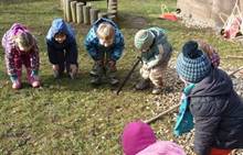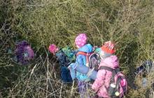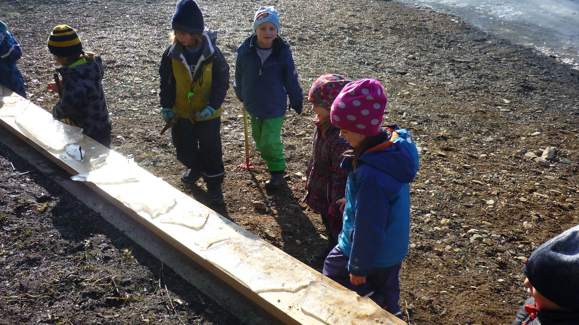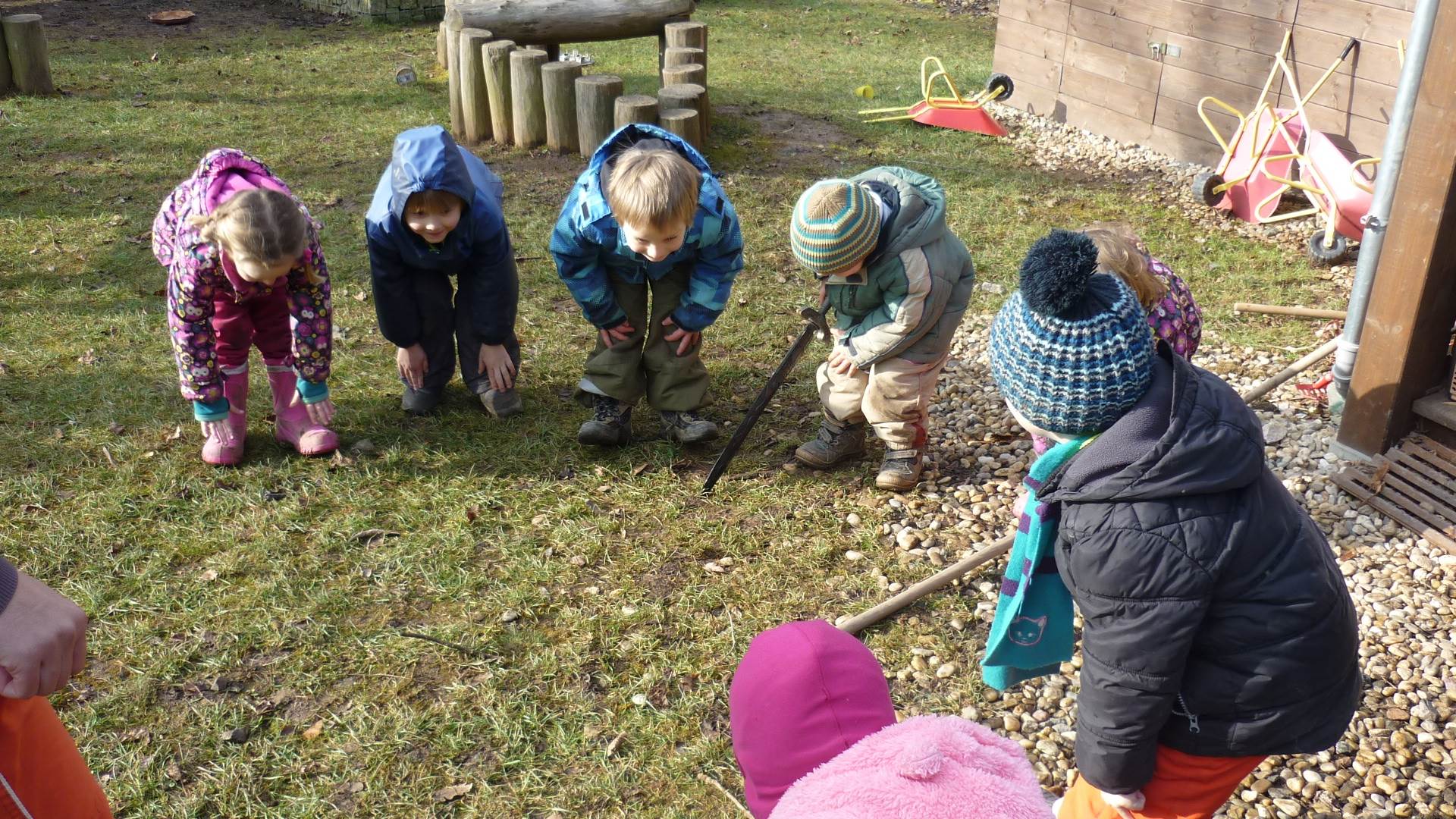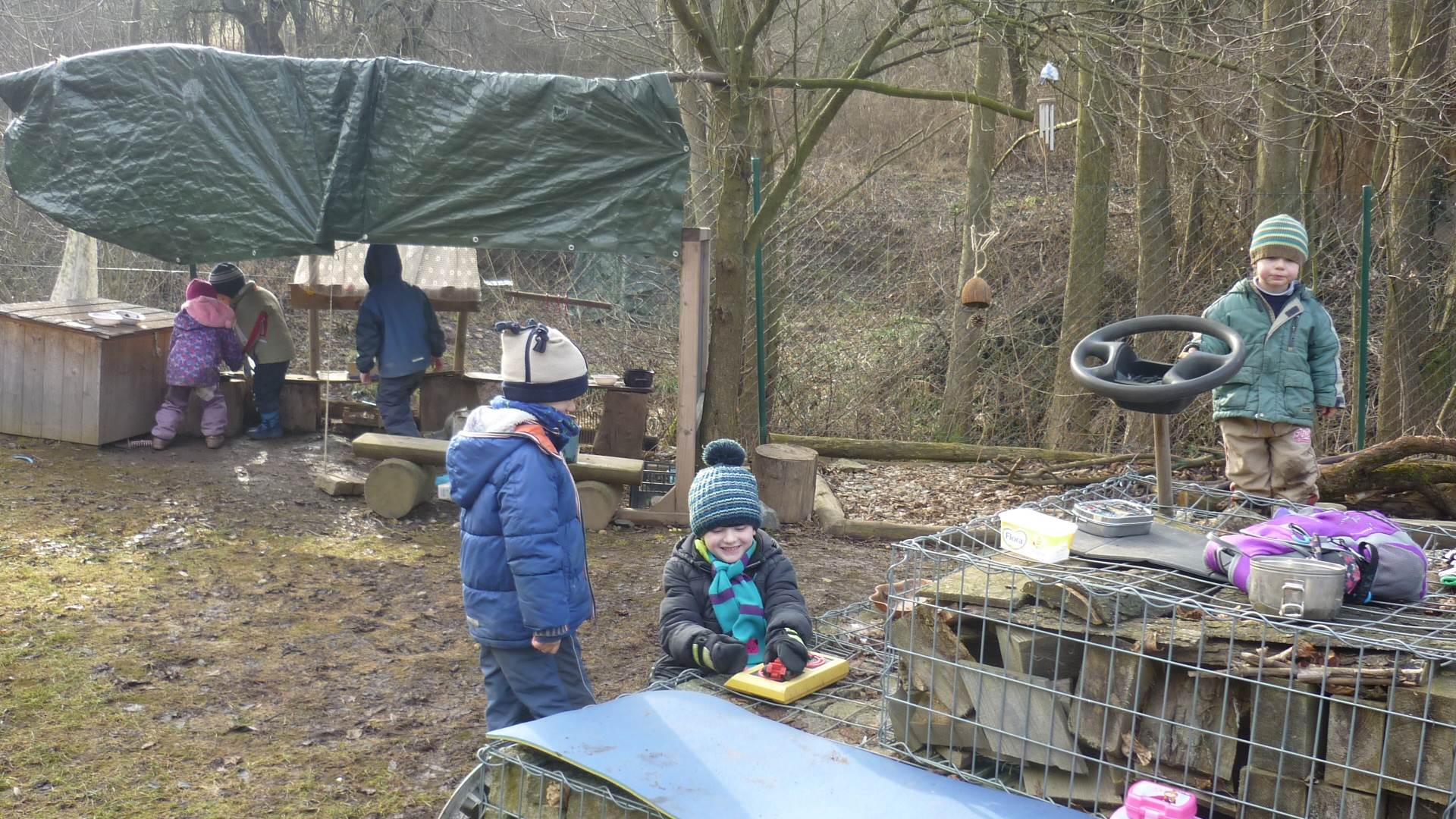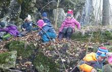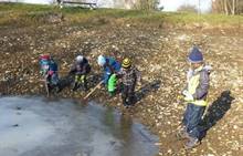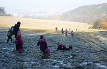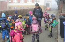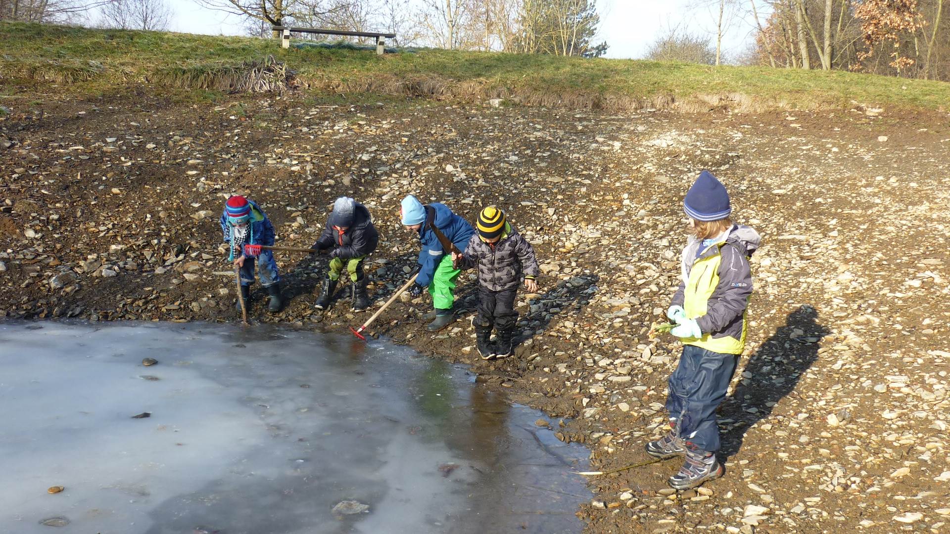 Je po prázdninách, děti se uzdravily a jsme zase v téměř plném stavu. Opět vyrážíme po skupinkách do lesa, zkontrolovat maringotku. Po sněhu už není téměř žádná památka. Ráno je ještě cesta pevná, ale v poledne už je pěkné bláto. Snažíme se mu vyhýbat, ale ne vždy to je možné. Rybník je ještě zčásti zamrzlý. Je pro nás neustálou zásobárnou ledů, a tak si z nich děláme výstavku. Necháme se inspirovat dětmi a vyrážíme na speleologickou výpravu. Vyprávíme si o zdraví a nemocech, zjišťujeme, jak je dobrý a zdravý přemrzlý šípek a hrajeme si na bacili. Když si pochutnáváme na svačinách, objevujeme, že si někdo pochutnával na mravencích. Že by divočáci? Jejich stop je všude plno. Není se co divit, žaludů a bukvic je tu docela dost. I s druhou skupinkou se vydáváme k šípku. Všímáme si reakcí těla na zvýšenou námahu, díváme se, zda už se probudily včelky a povídáme si o medu a o tom, jak je zdravý. Všimli jsme si, že vrba už má kočičky a formou her si opakujeme části lidského těla. Ve čtvrtek nás čeká sportovní den. Ráno využíváme ke sportu tělocvičnu, a pak se vydáváme protáhnout tělo na fotbalové hřiště.