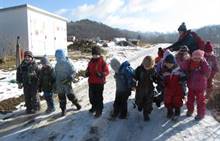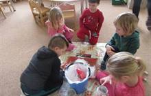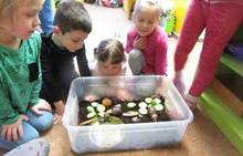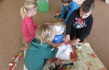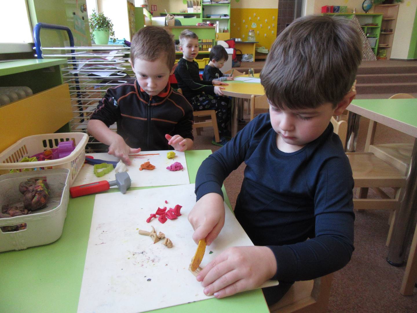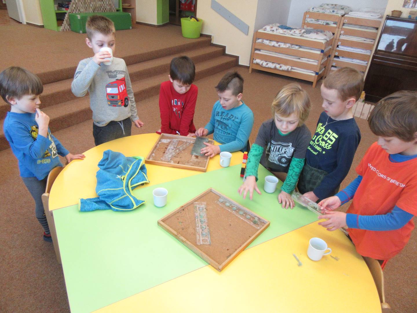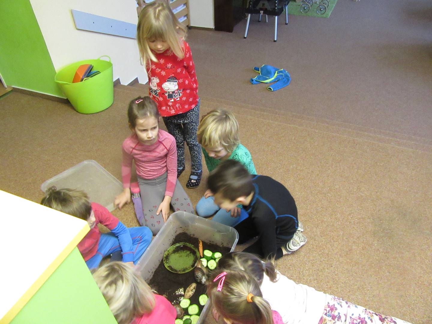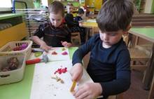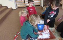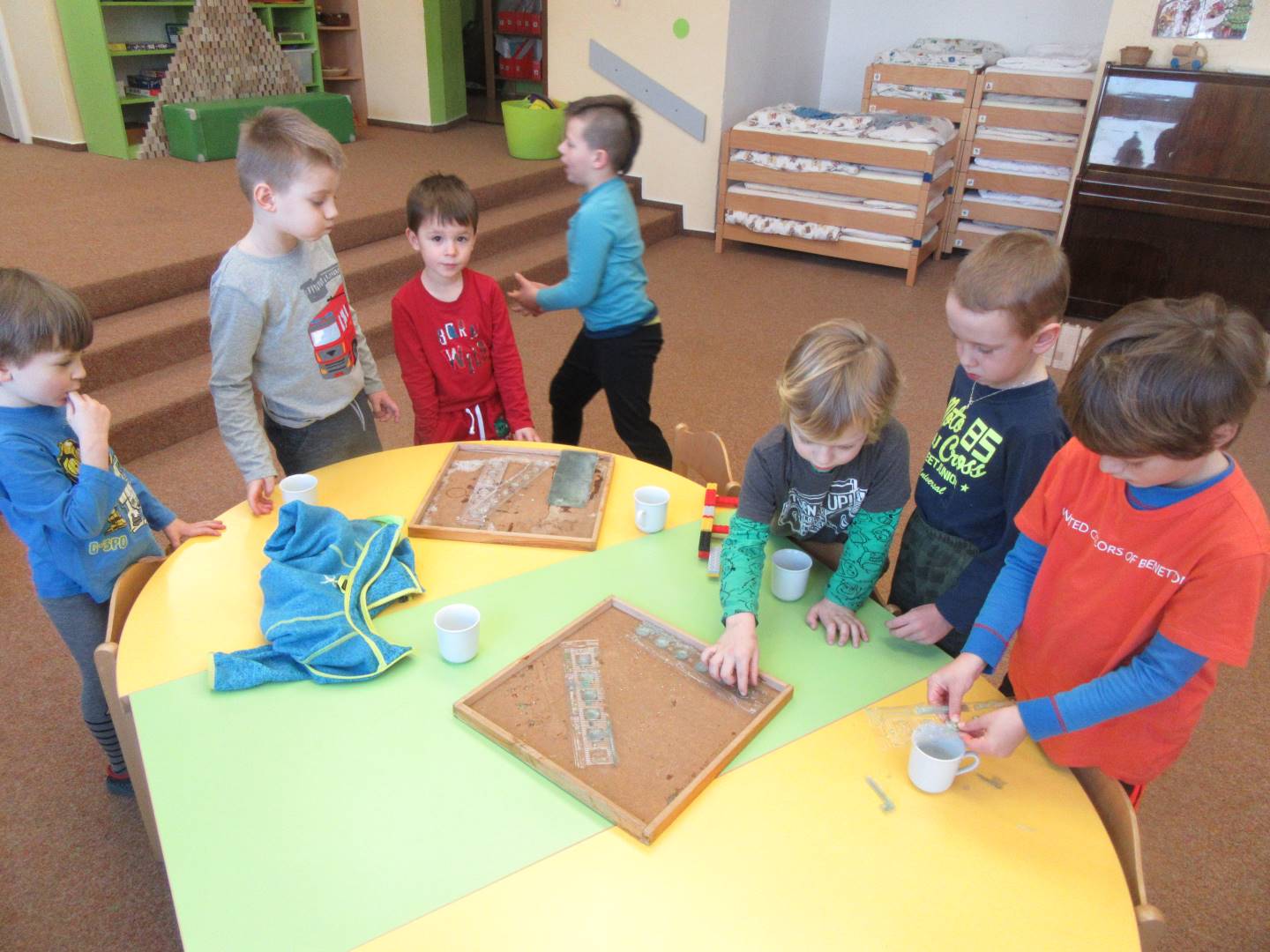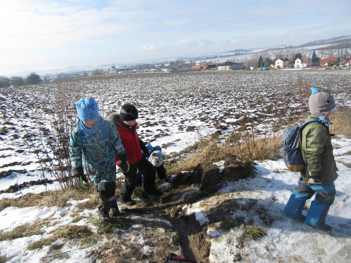 Máme za sebou opravdu mrazivý únor. Sníh a led si děti užívaly všemi smysly. Většinu měsíce jsme fungovali v běžném lesním režimu. Tedy středa a pátek program uvnitř a okolo školky, kdy jsme navštěvovali tělocvičnu, ve třídě jsme zpívali, tvořili a během dopoledních procházek jsme lépe poznávali okolí školky. Pondělí, úterý a čtvrtek jsme se točili kolem lesního zázemí.