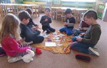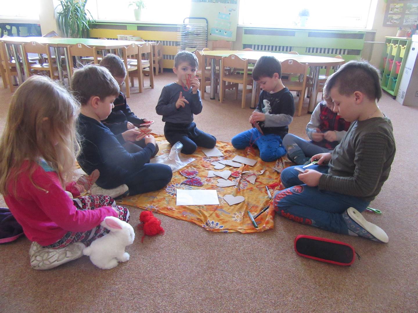 Měsícem nás tentokrát provázela zdravá stonožka. Povídali jsme si o zimních sportech, bezpečnosti. Potom jsme se posunuli ke zdraví, zdravému životnímu stylu a zdravé stravě. Ke každému tématu se pojilo tvoření. Děti společně stříhaly, barvily, lepily a zdobily velký plakát zimní krajiny s lyžaři, snowboardisty a bruslaři. Domů Žabky dostaly list, který jim mohl pomoci s pravidelným čištěním zubů. Vytvořili jsme myšlenkovou mapu "Co je to zdraví?" a společně jsme sestavili pyramidu potravin. Na sv. Valentýna připadlo povídání o tom, koho a co máme rádi a děti z bavlnek propletly kartonové srdce.