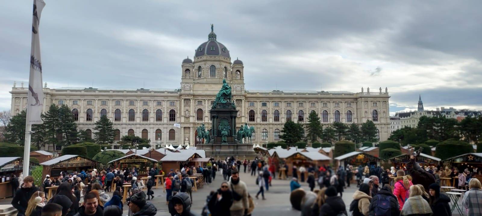 Poté jsme zamířili do centra samotné Vídně na náměstí Rathausplatz, kde se konají tradiční vánoční trhy. Zde byli žáci rozděleni do dvou skupinek, jedna zamířila do Muzea umění, které obsahuje předměty z pěti staletí: od dob starověkého Egypta až po konec 18. století, druhá skupinka se vydala do Přírodovědeckého muzea, kde se pod jednou střechou nachází sál dinosaurů, za vidění rozhodně stojí i nejstarší sbírka meteoritů na světě.