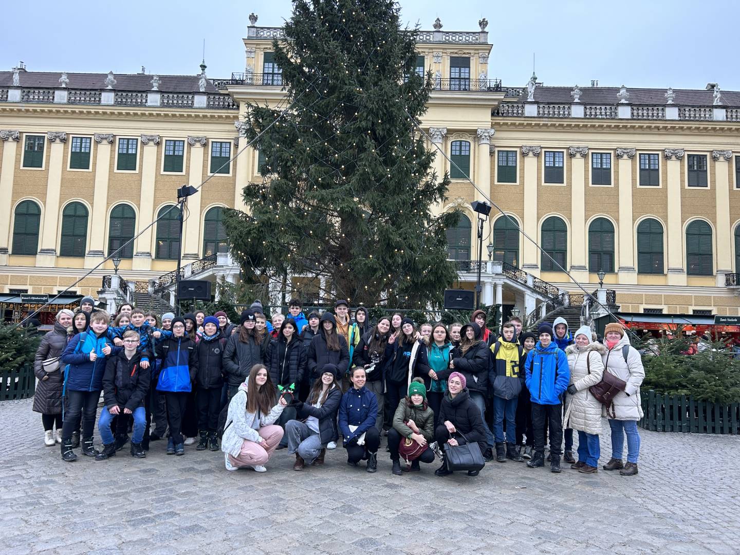 Ve středu dne 20. 12. 2023 jsme se s žáky 7. – 9. ročníku vydali v brzkých ranních hodinách na jednodenní návštěvu hlavního města Rakouska Vídně. Program byl opravdu nabitý. Hned po příjezdu jsme navštívili bývalé letní sídlo Habsburků zámek Schönbrunn, který se právem pyšní nádhernými zahradami a díky svému historickému významu patří do světového kulturního vybavení UNESCO. V tento adventní čas se před zámkem konají kulturní a vánoční trhy, které okouzlují návštěvníky svými kulisami císařského paláce.