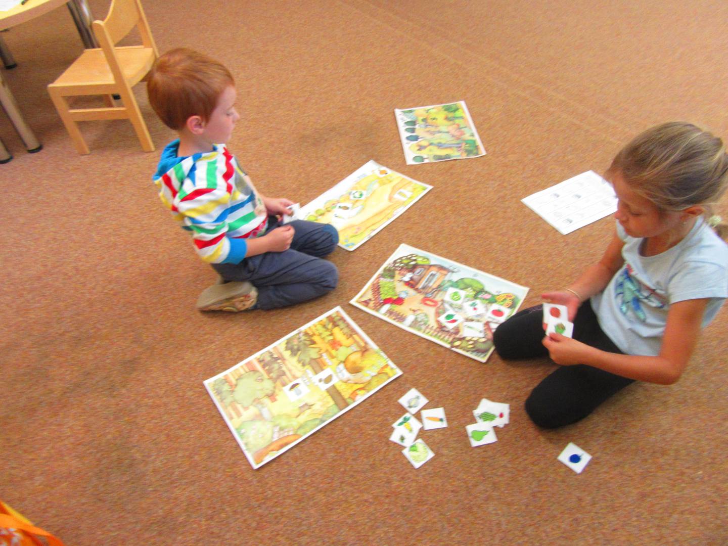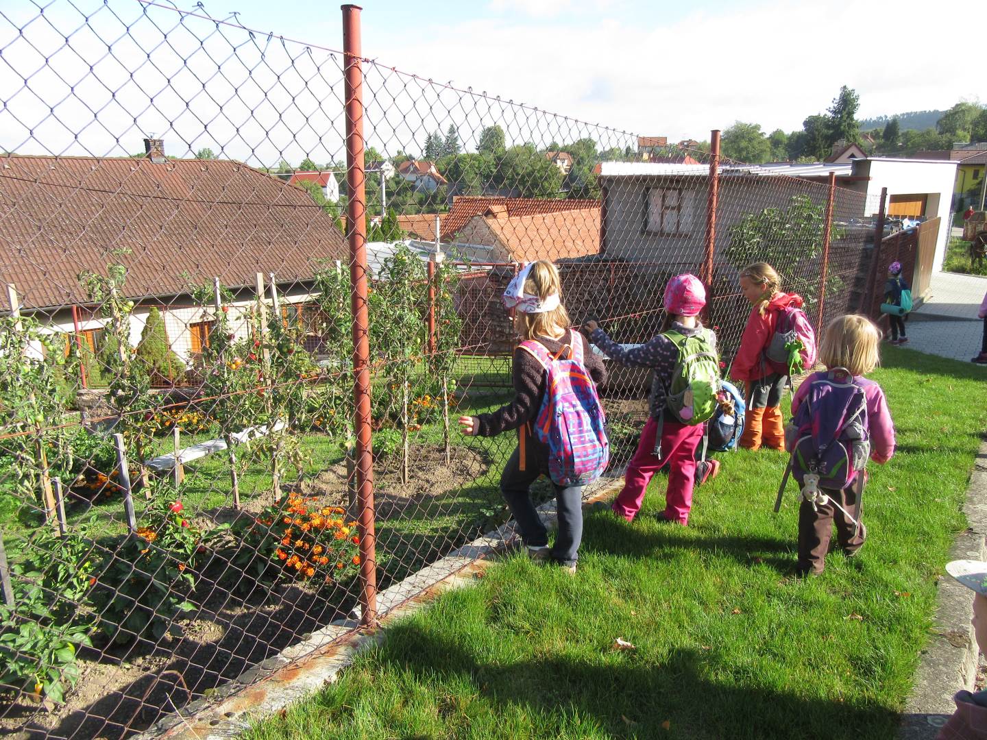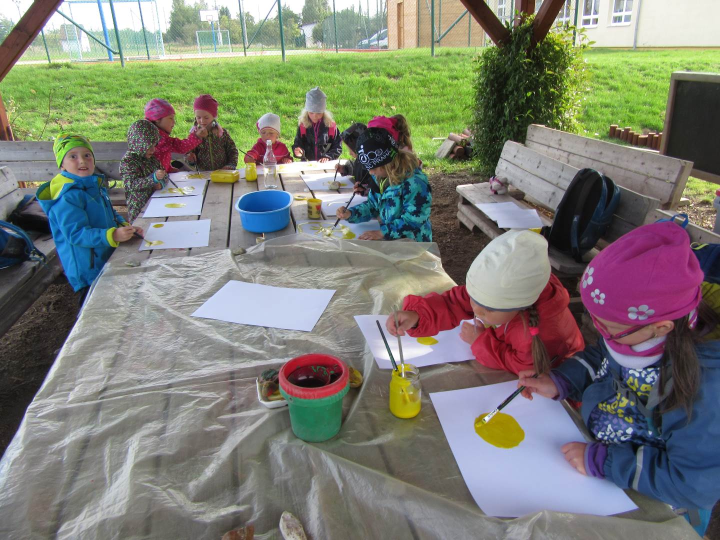Cestou na farní zahradu jsme přemýšleli, jak bychom znázornili podzimní slunce, které svítí malátně a s únavou. Každý ho znázorněl úplně jinak. Sluníčka byla malá, velká, světlá, tmavá. Na farní zahradě si děti hrály ve stromovém domečku, klouzaly se na skluzavce, honily se po zahradě, houpaly se na laně,... Tím jsme zakončili naše týdenní dobrodružství.