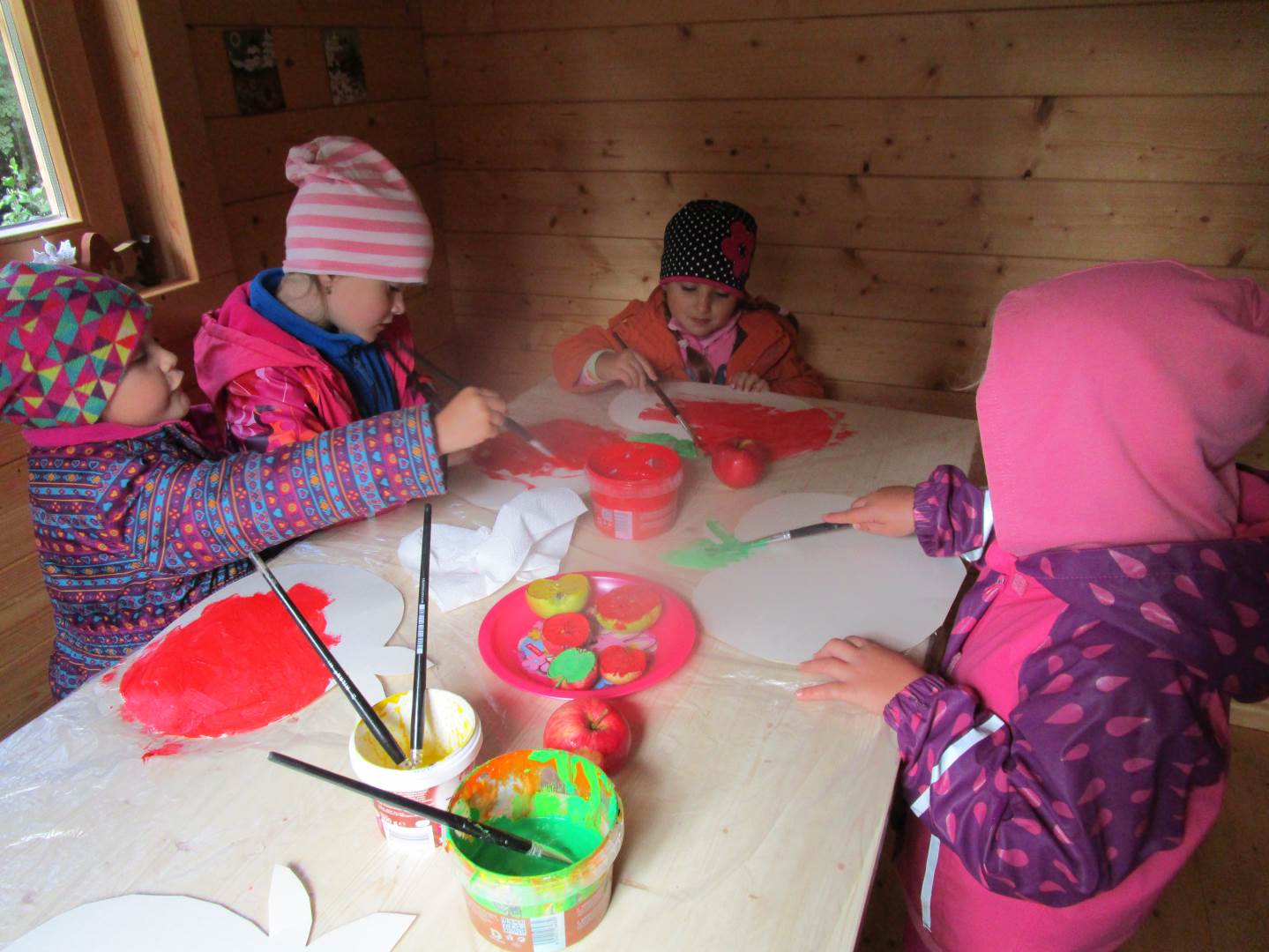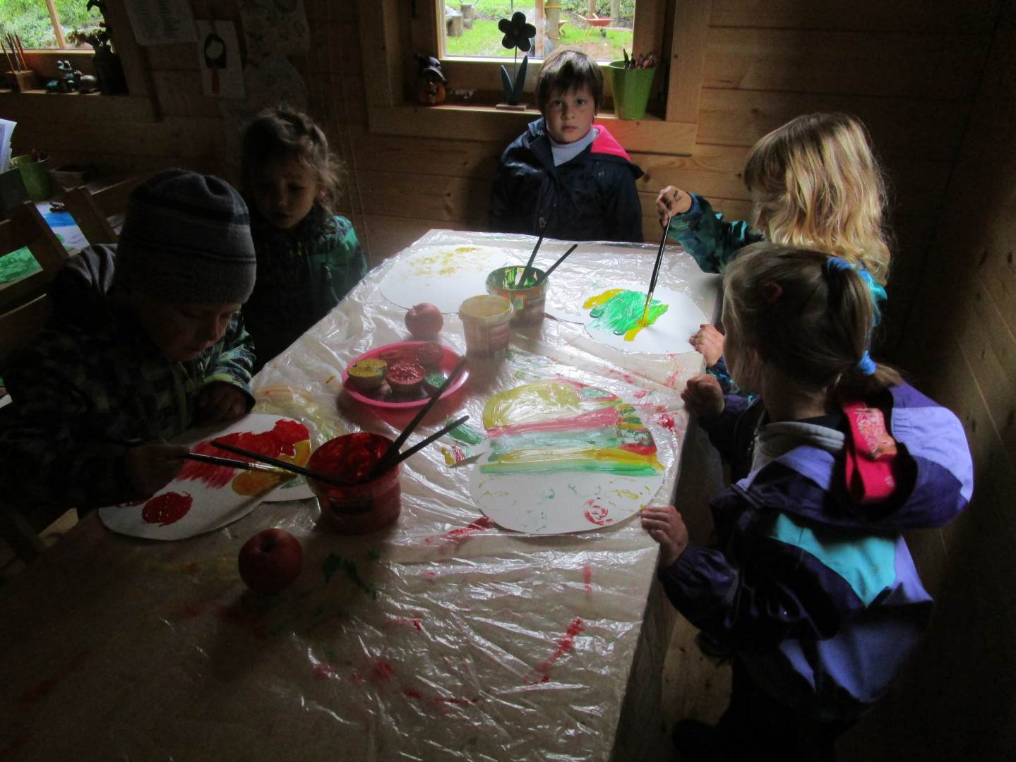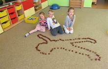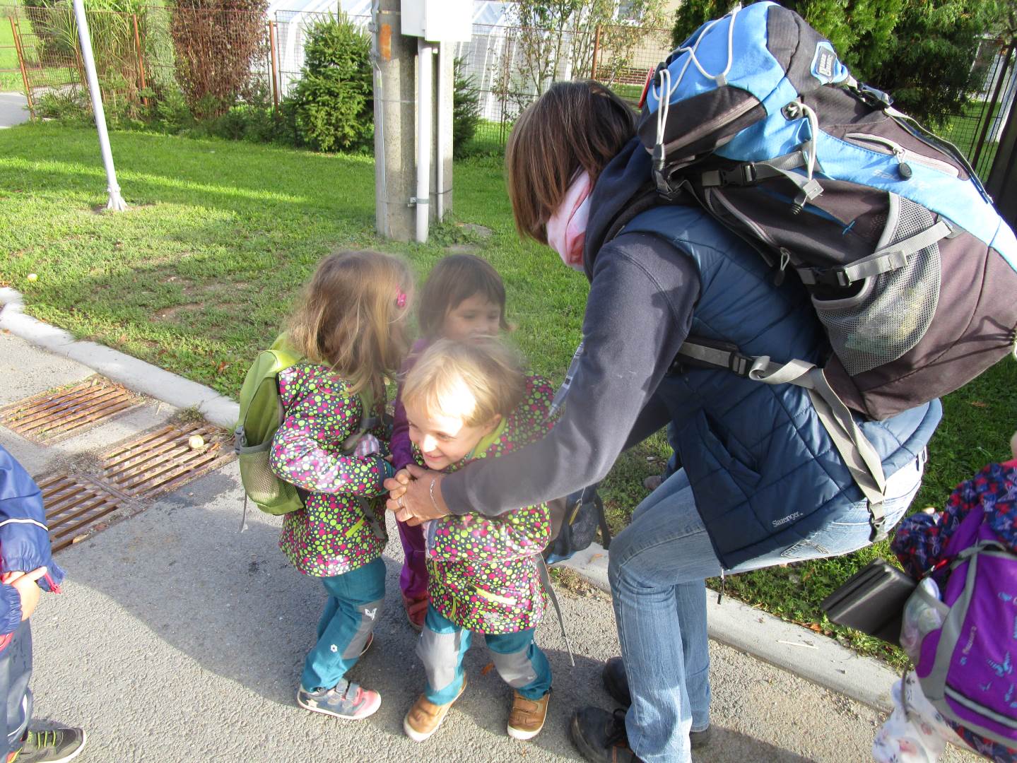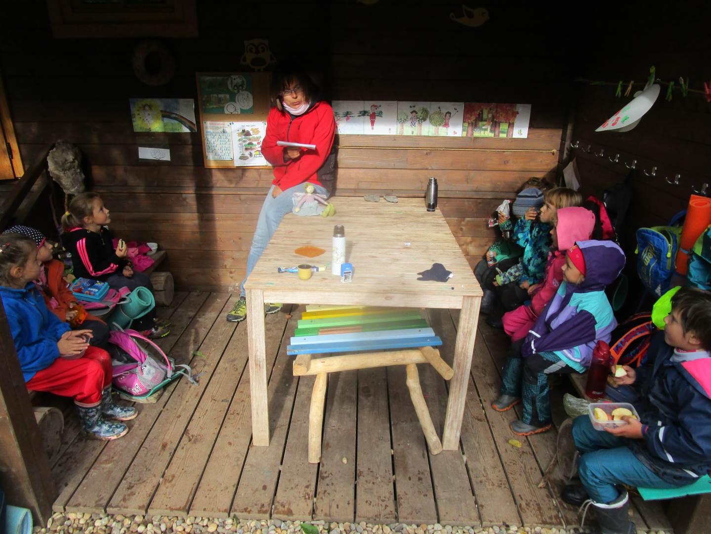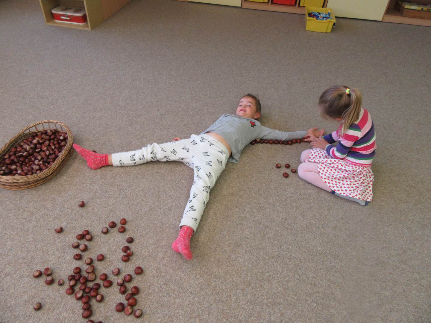 Babí léto skončilo a venku už je pěkná zima! V noci dokonce pršelo, a tak nás lákají potůčky na cestě. Jabloňová víla nám pověděla o svých kamarádkách a i tahle skupinka si maluje jablíčka. Zopakujeme si o jablíčku i říkanku a písničky a vyzkoušíme si, jak se dělá mošt. Při cestě zpět vidíme duhu! Další dny si povídáme o svatém Václavovi a připomínáme si Den české státnosti. Školáci z první třídy nás pozvali na výstavku podzimních plodin a na malou pohádku. Pak jdeme nasbírat kaštany, ať máme pro zvířátka na zimu. Zatím si s nim hrajeme. Děti ve třídě zase otiskují jablíčka do zavařovacích sklenic. Umíme také vylézt na strom. Připomínáme si odlet vlaštovek, nějaké si i vyrobíme, a pak si s nimi hrajeme. Hrajeme si i na Zlatou bránu a rádi hádáme hádnky. U maringotky si opakujeme pohádku O veliké řepě a pak si procvičujeme hmat i paměť, když hmatem poznáváme podzimní plody. Nakonec nás čekala výstava místních hasičů.