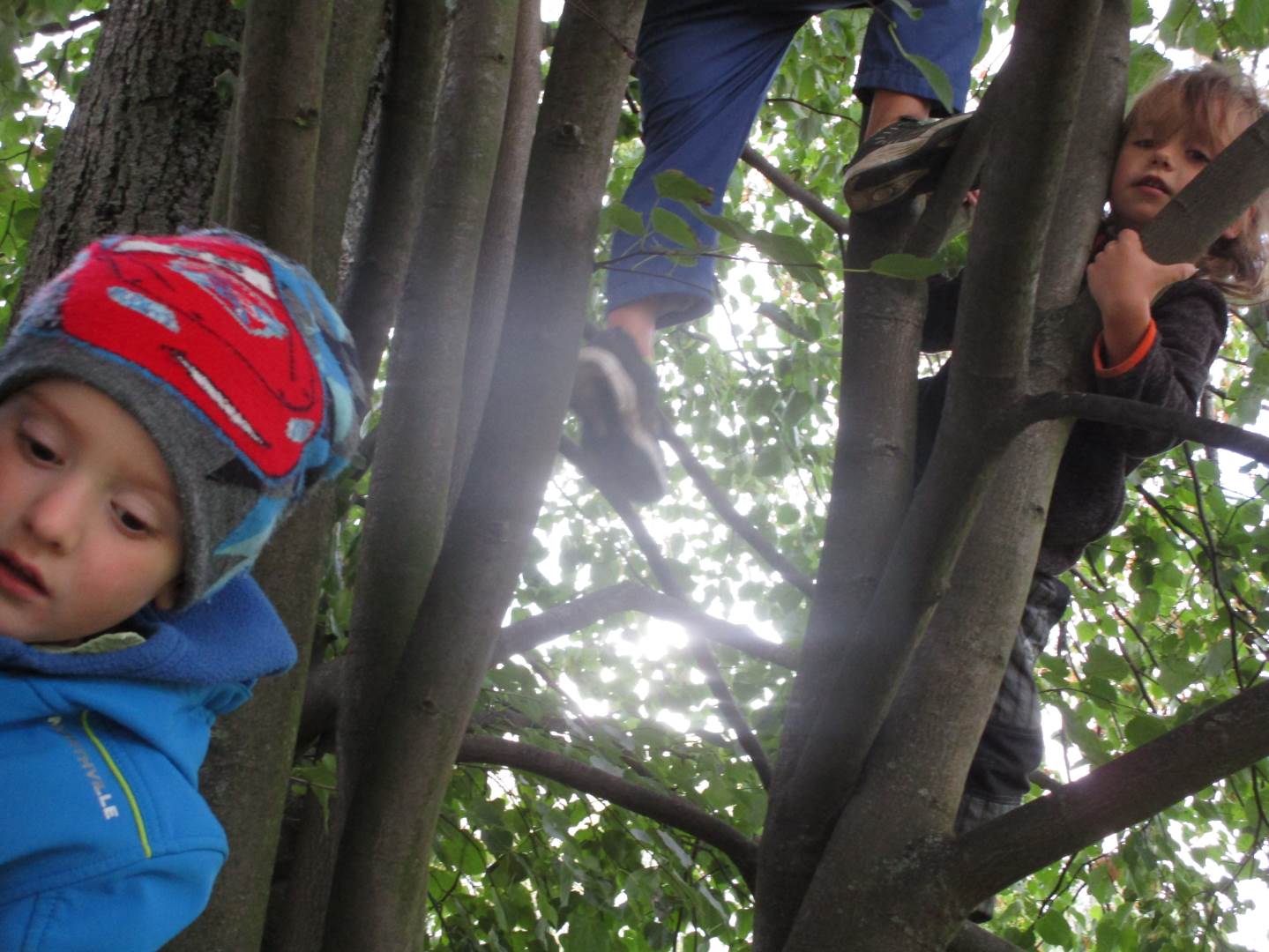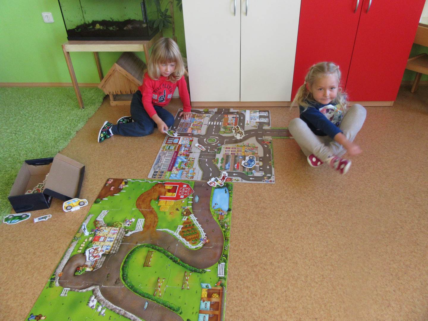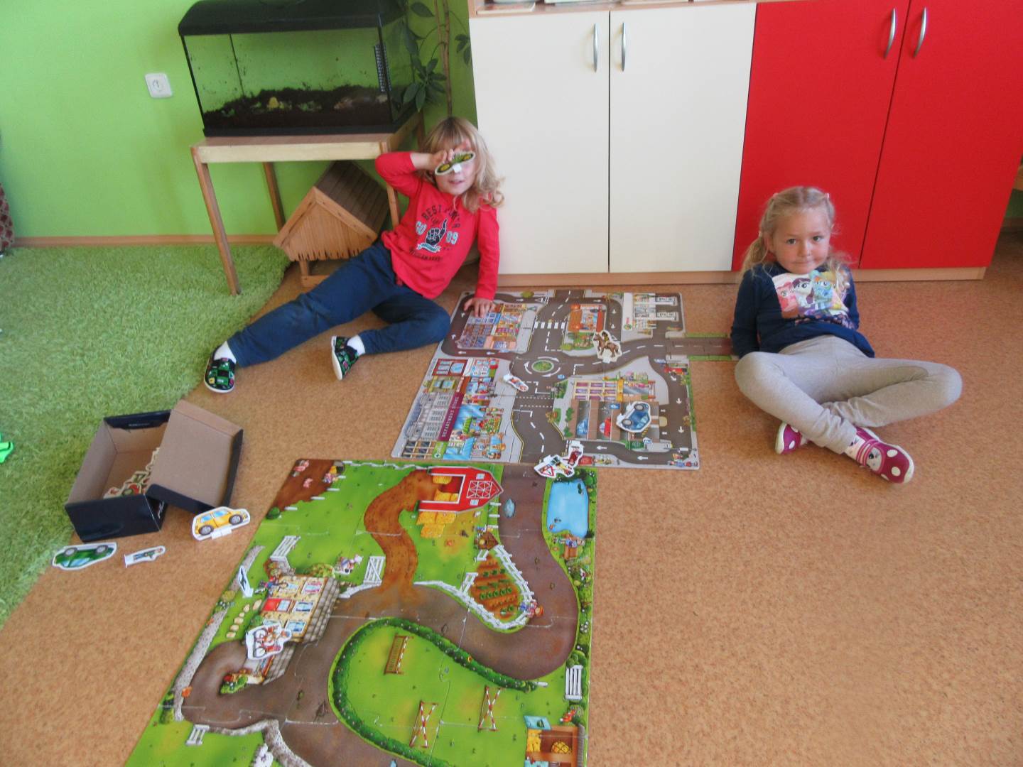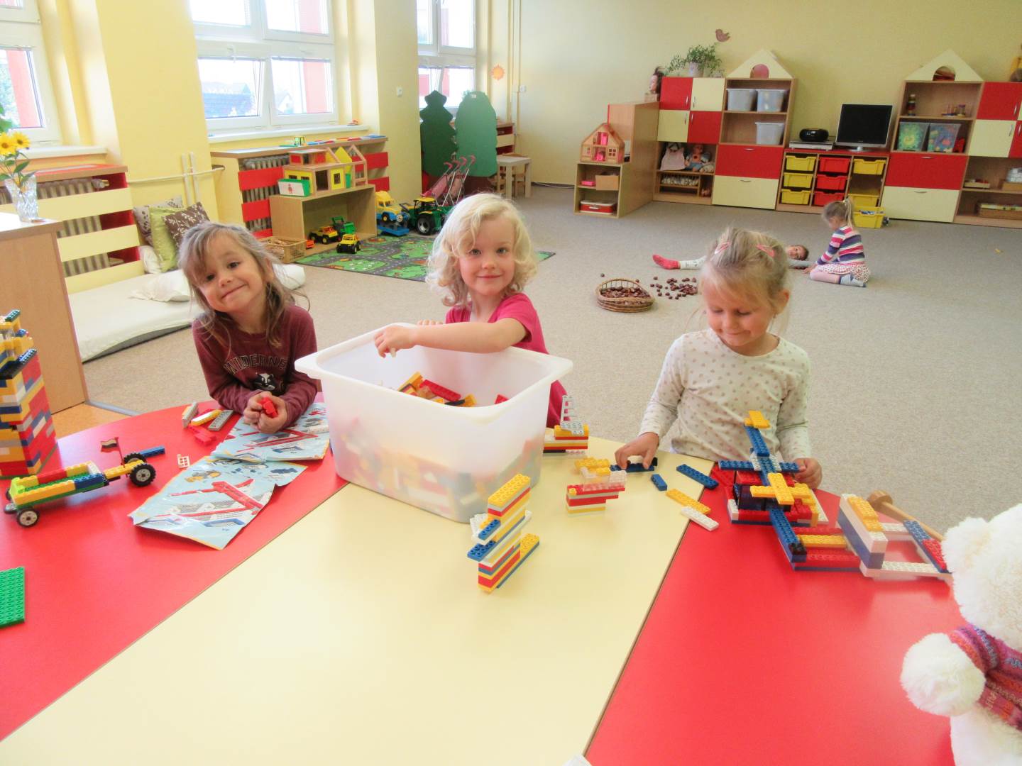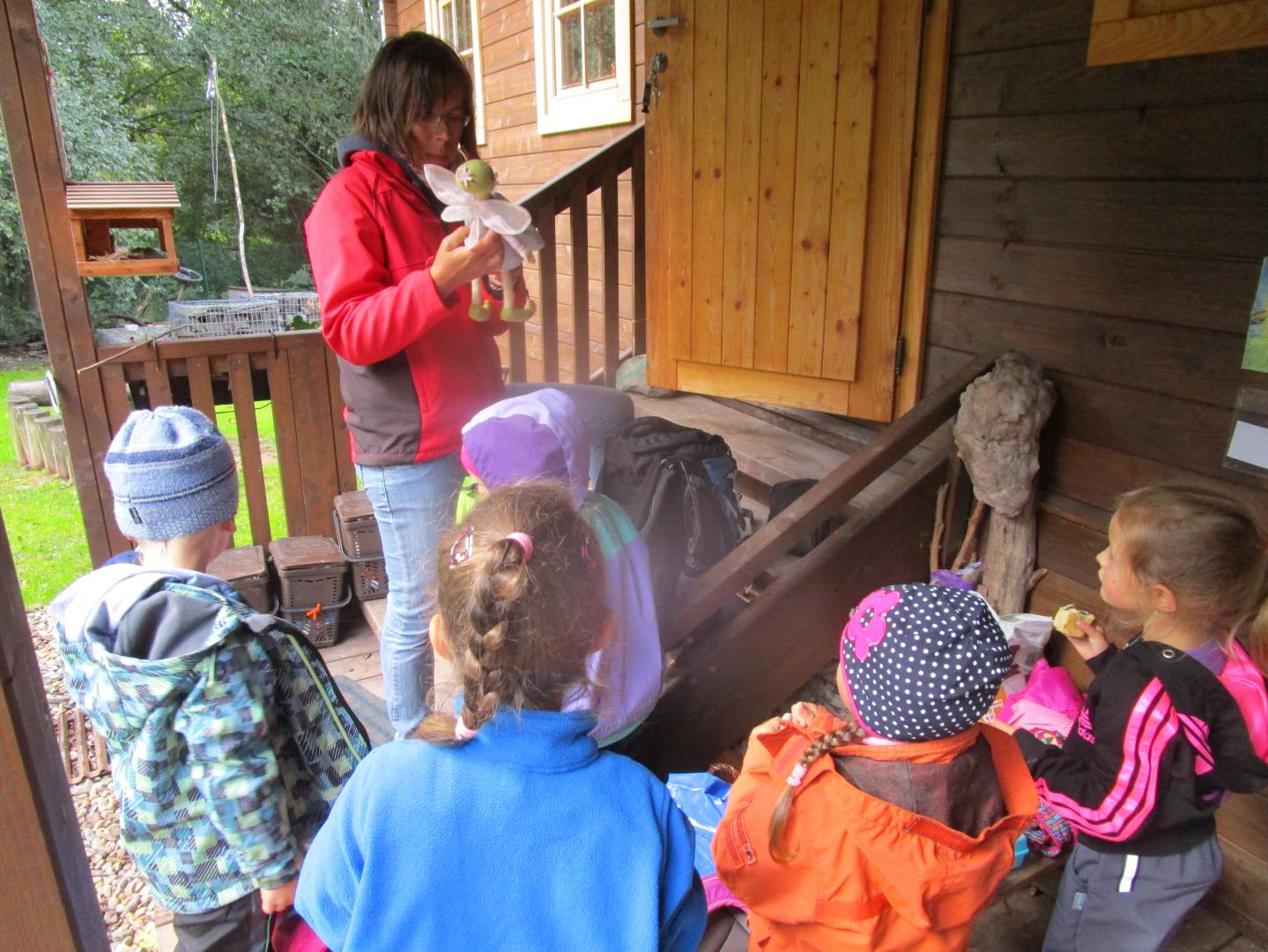 Babí léto skončilo a venku už je pěkná zima! V noci dokonce pršelo, a tak nás lákají potůčky na cestě. Jabloňová víla nám pověděla o svých kamarádkách a i tahle skupinka si maluje jablíčka. Zopakujeme si o jablíčku i říkanku a písničky a vyzkoušíme si, jak se dělá mošt. Při cestě zpět vidíme duhu! Další dny si povídáme o svatém Václavovi a připomínáme si Den české státnosti. Školáci z první třídy nás pozvali na výstavku podzimních plodin a na malou pohádku. Pak jdeme nasbírat kaštany, ať máme pro zvířátka na zimu. Zatím si s nim hrajeme. Děti ve třídě zase otiskují jablíčka do zavařovacích sklenic. Umíme také vylézt na strom. Připomínáme si odlet vlaštovek, nějaké si i vyrobíme, a pak si s nimi hrajeme. Hrajeme si i na Zlatou bránu a rádi hádáme hádnky. U maringotky si opakujeme pohádku O veliké řepě a pak si procvičujeme hmat i paměť, když hmatem poznáváme podzimní plody. Nakonec nás čekala výstava místních hasičů.