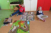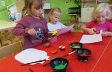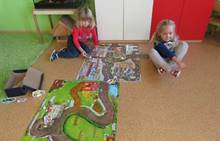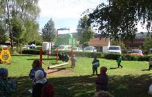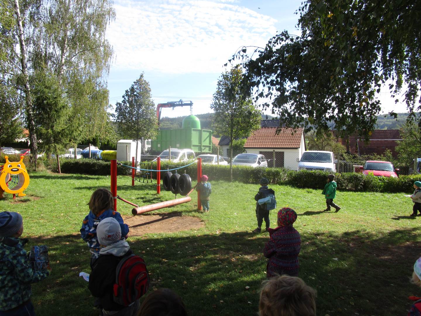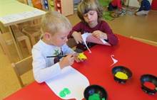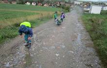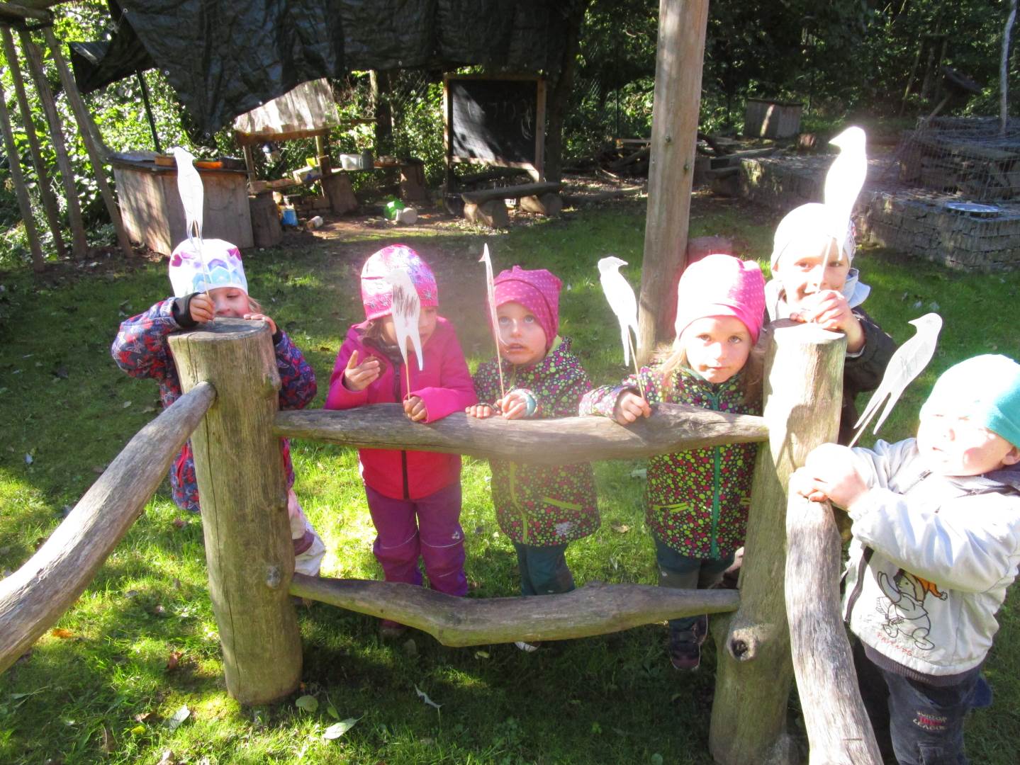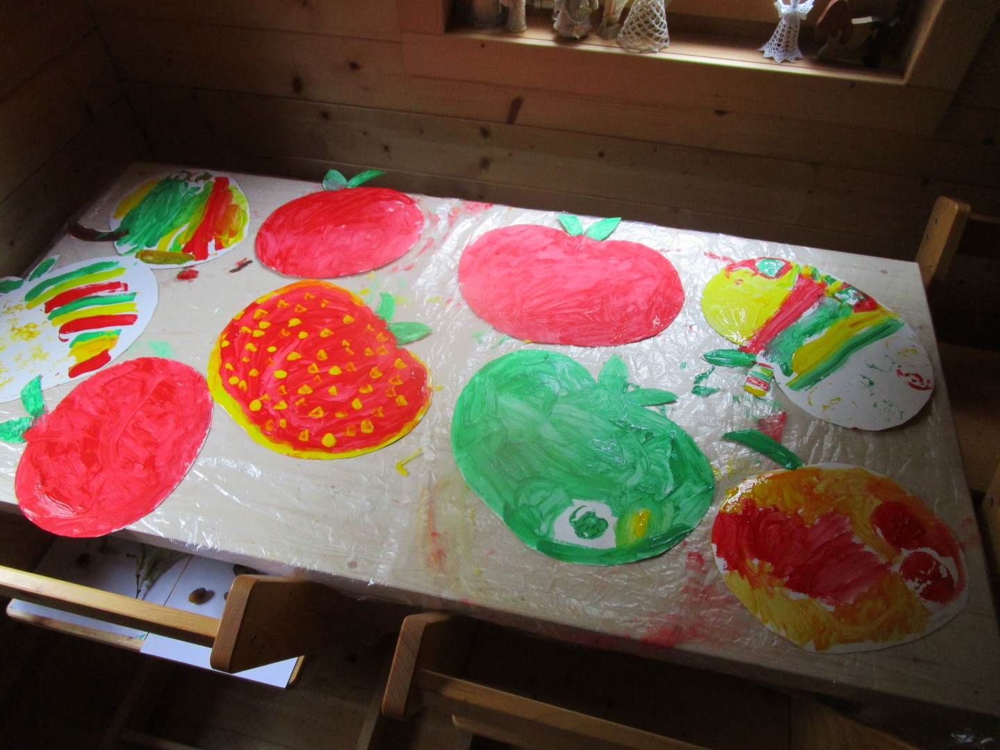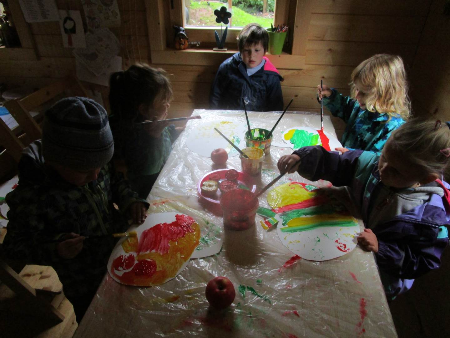 Babí léto skončilo a venku už je pěkná zima! V noci dokonce pršelo, a tak nás lákají potůčky na cestě. Jabloňová víla nám pověděla o svých kamarádkách a i tahle skupinka si maluje jablíčka. Zopakujeme si o jablíčku i říkanku a písničky a vyzkoušíme si, jak se dělá mošt. Při cestě zpět vidíme duhu! Další dny si povídáme o svatém Václavovi a připomínáme si Den české státnosti. Školáci z první třídy nás pozvali na výstavku podzimních plodin a na malou pohádku. Pak jdeme nasbírat kaštany, ať máme pro zvířátka na zimu. Zatím si s nim hrajeme. Děti ve třídě zase otiskují jablíčka do zavařovacích sklenic. Umíme také vylézt na strom. Připomínáme si odlet vlaštovek, nějaké si i vyrobíme, a pak si s nimi hrajeme. Hrajeme si i na Zlatou bránu a rádi hádáme hádnky. U maringotky si opakujeme pohádku O veliké řepě a pak si procvičujeme hmat i paměť, když hmatem poznáváme podzimní plody. Nakonec nás čekala výstava místních hasičů.