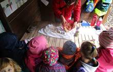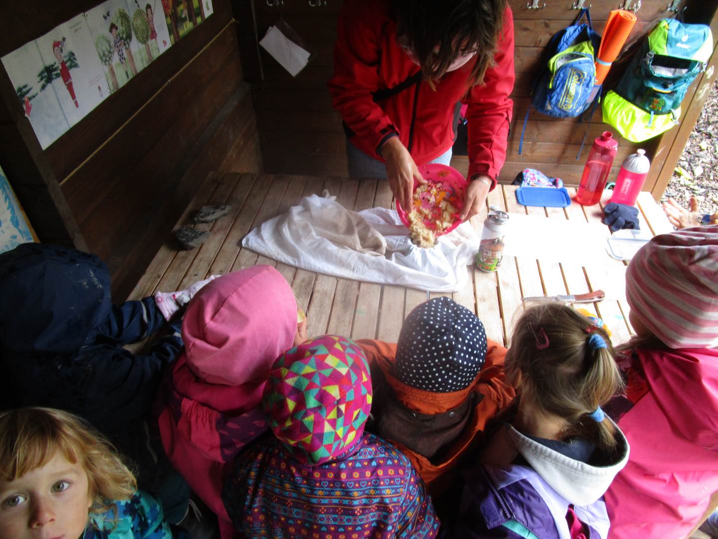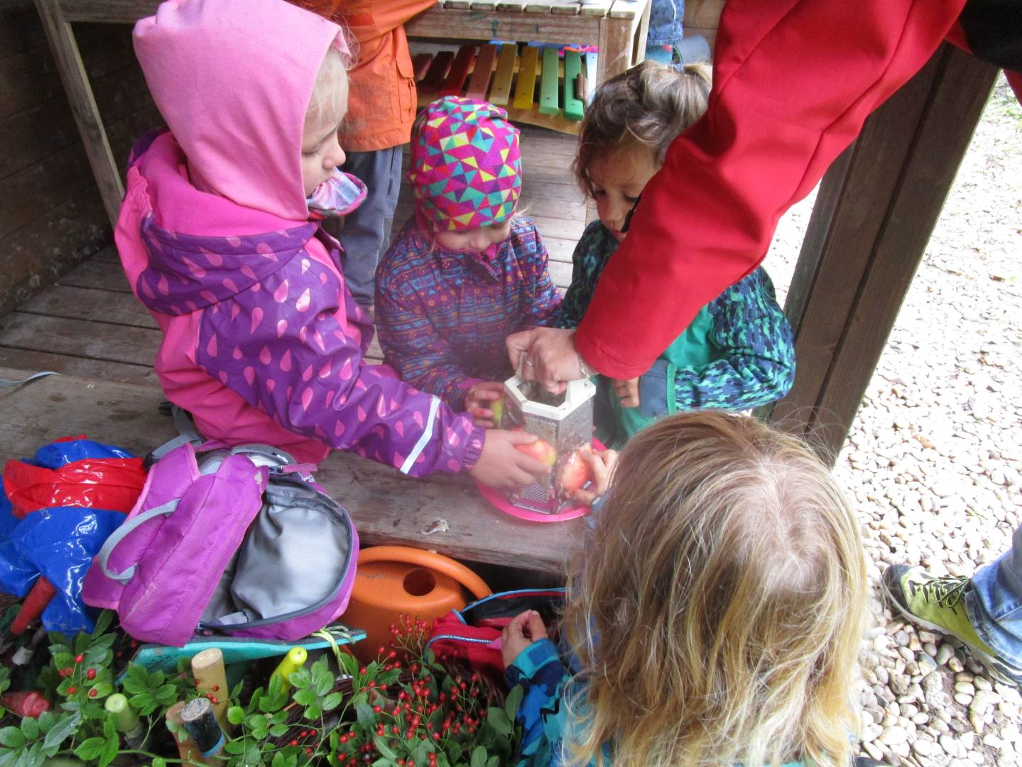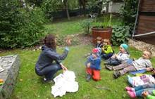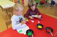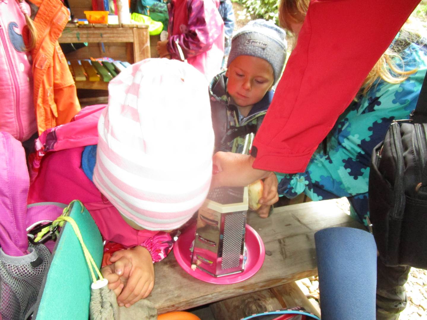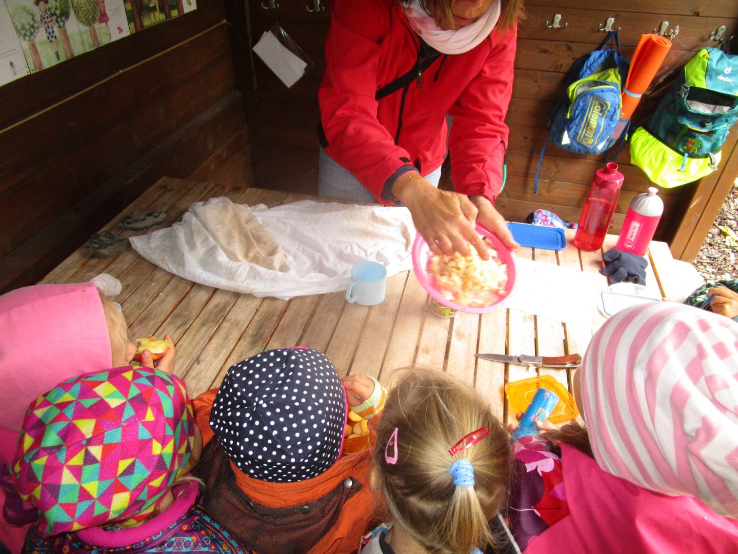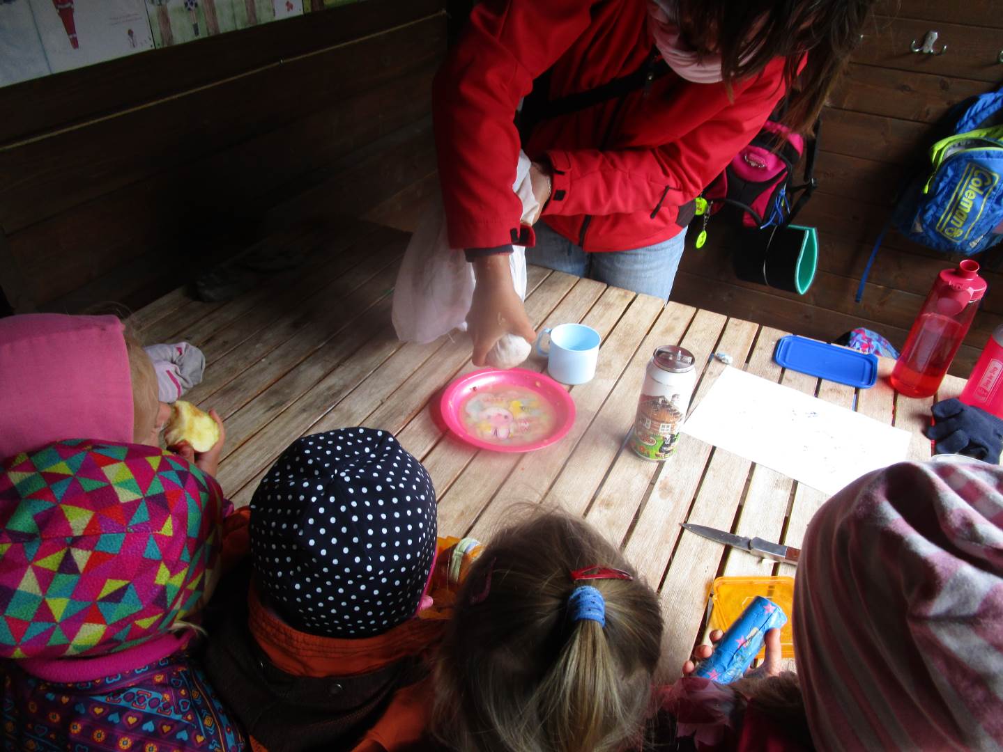 Babí léto skončilo a venku už je pěkná zima! V noci dokonce pršelo, a tak nás lákají potůčky na cestě. Jabloňová víla nám pověděla o svých kamarádkách a i tahle skupinka si maluje jablíčka. Zopakujeme si o jablíčku i říkanku a písničky a vyzkoušíme si, jak se dělá mošt. Při cestě zpět vidíme duhu! Další dny si povídáme o svatém Václavovi a připomínáme si Den české státnosti. Školáci z první třídy nás pozvali na výstavku podzimních plodin a na malou pohádku. Pak jdeme nasbírat kaštany, ať máme pro zvířátka na zimu. Zatím si s nim hrajeme. Děti ve třídě zase otiskují jablíčka do zavařovacích sklenic. Umíme také vylézt na strom. Připomínáme si odlet vlaštovek, nějaké si i vyrobíme, a pak si s nimi hrajeme. Hrajeme si i na Zlatou bránu a rádi hádáme hádnky. U maringotky si opakujeme pohádku O veliké řepě a pak si procvičujeme hmat i paměť, když hmatem poznáváme podzimní plody. Nakonec nás čekala výstava místních hasičů.