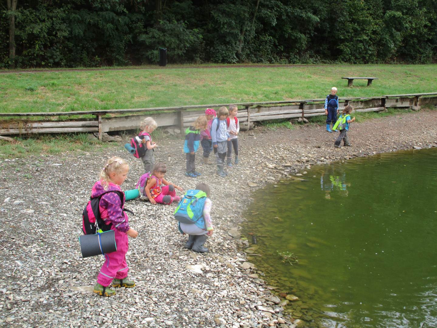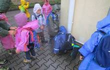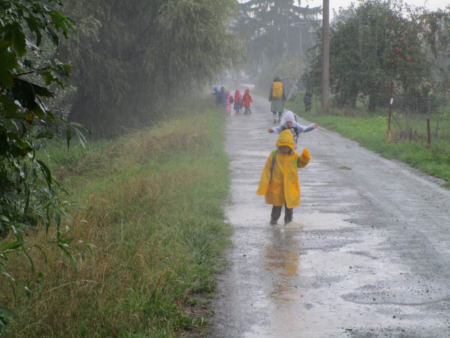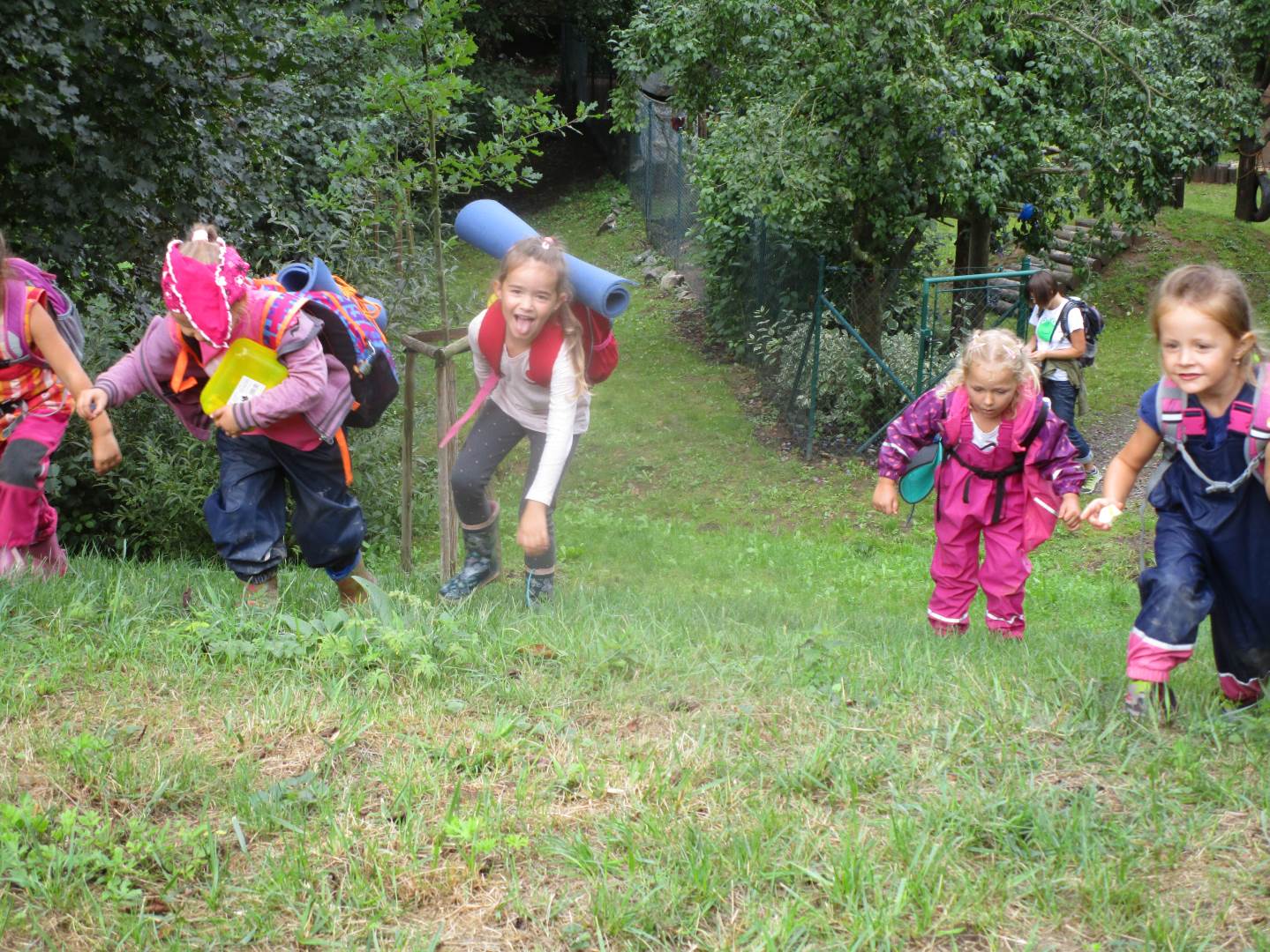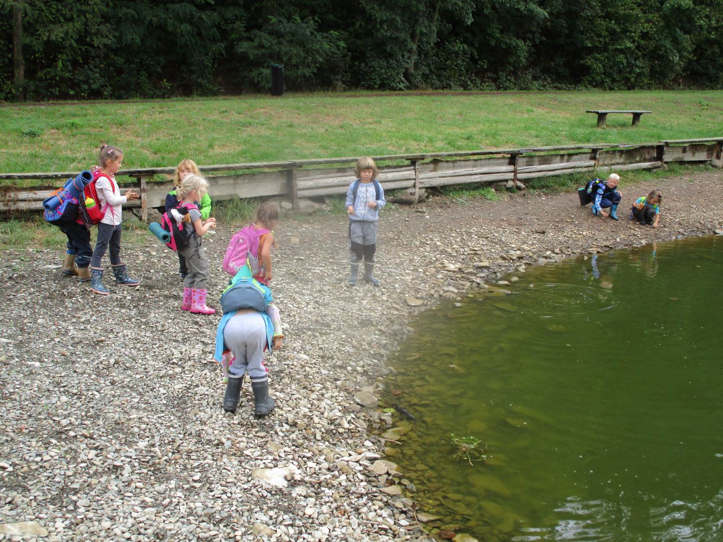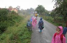 Tento týden je ve znamení seznamování se s kamarády, s prostředím školky i lesního zázemí a s pravidly. První, zkušenější skupinka, jde do lesa hned první den. Musíme zkontrolovat, v jakém stavu je po prázdninách maringotka a vůbec celý areál. V rybníčku není téměř žádná voda, má se tu brzy bagrovat. Všude je plno ovoce, hlavně švestek. Můžeme jíst, co hrdlo ráčí. Druhý den nás čeká zatěžkávací zkouška. Celý den prší. Co prší, leje jako z konve! Pláštěnku mají naštěstí všichni. Chvíli se schováváme na obecním úřadě, chvíli na autobusové zastávce, ale nakonec to vzdáváme a vracíme se kolem potoka zpět do školky. I tak jsme promočení až na kůži. Ale užili jsme si to!