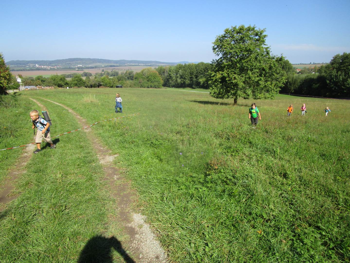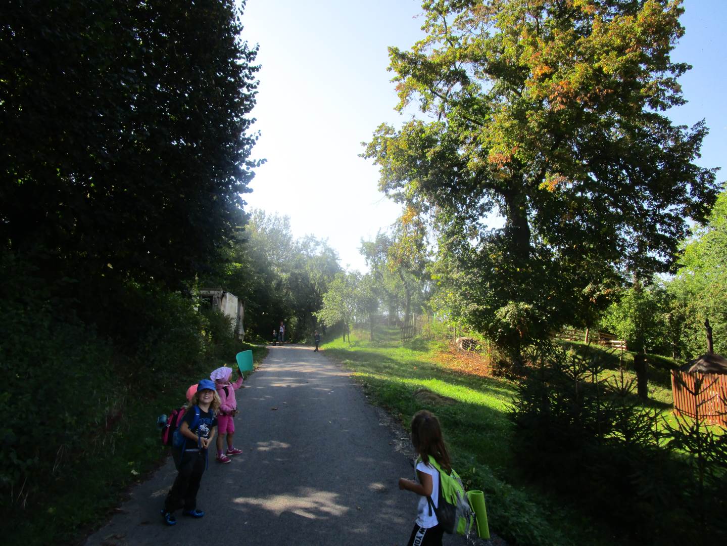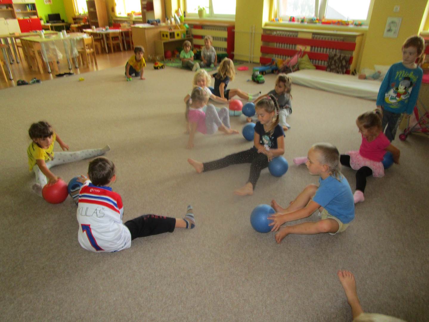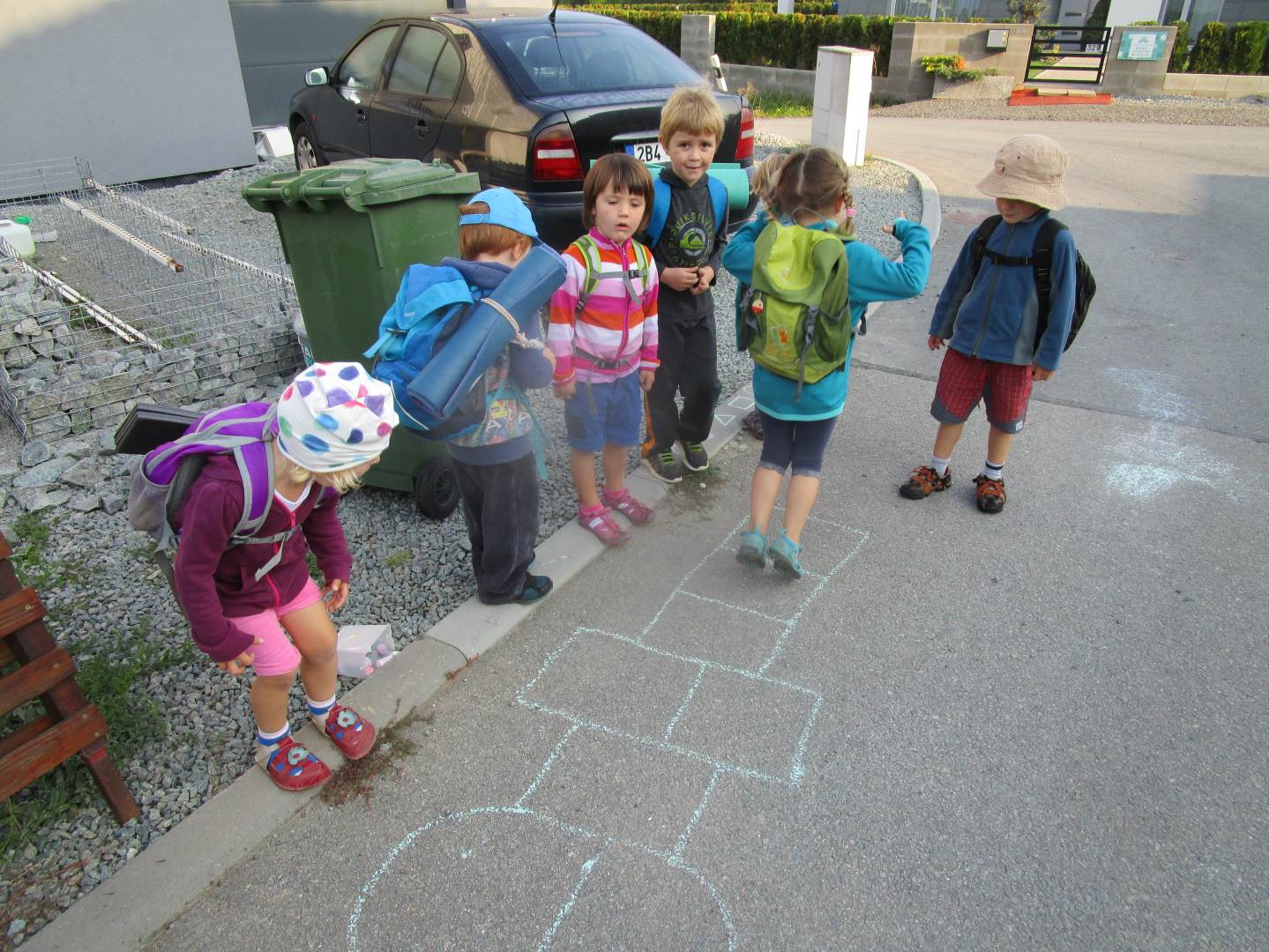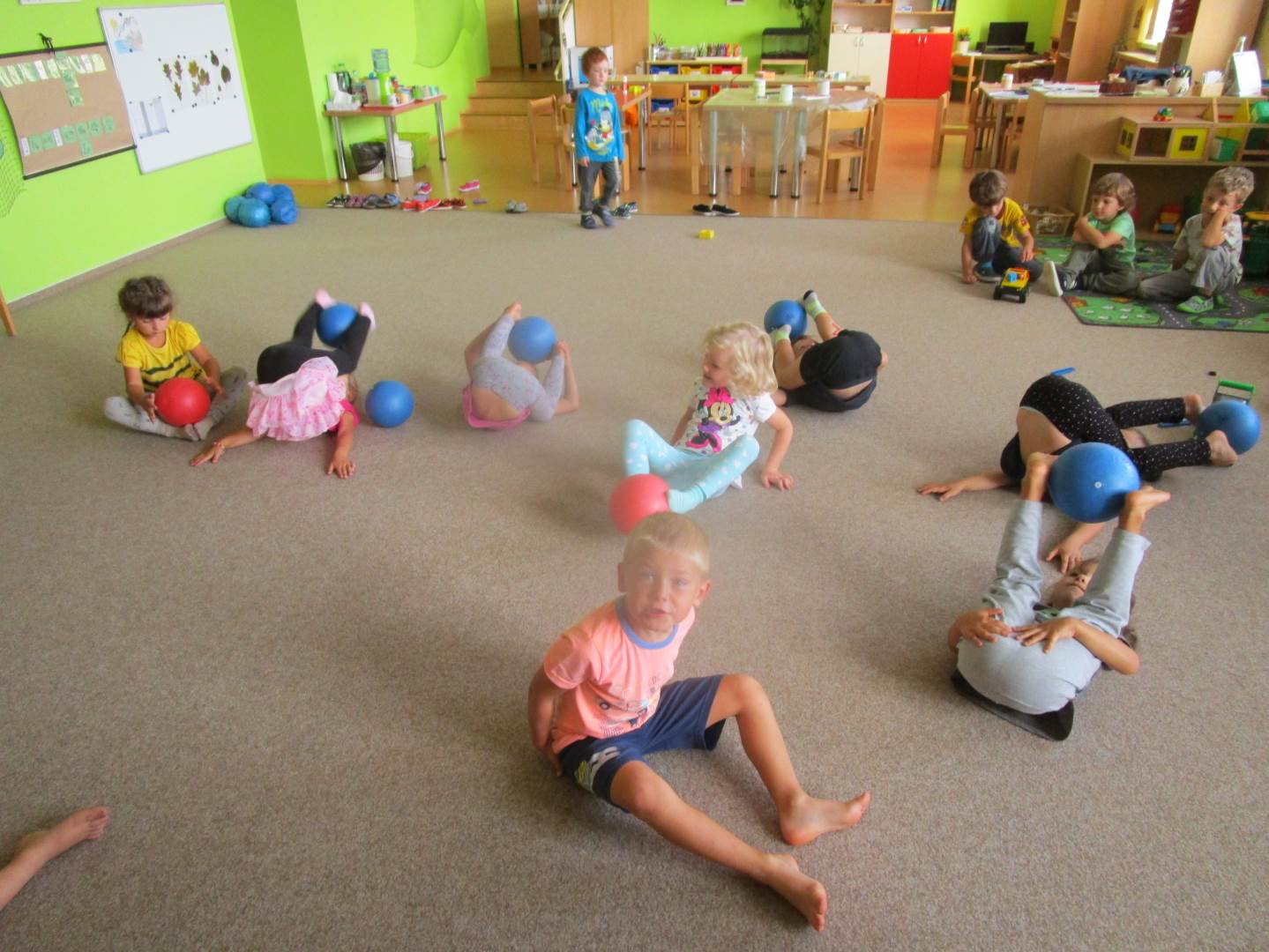 V pondělí se jdeme podívat, kde probíhaly sobotní cyklokrosové závody. Startujeme od kulturního domu a cesta nás vede kolem klád, různými lesními serpentinami až k ovečkám. Další dny si opakujeme písničky o jablíčku, počítáme je, porovnáváme velikost a barvu, zkoušíme je nosit na hlavě. Zjišťujeme, že jablíčka chutnají nejen nám, ale i zvířátkům a objevujeme, jak se z jablíček dělá mošt. Nakonec si jablíčka namalujem a vida, dá se s nimi i tisknout! Ve třídě rádi cvičíme, na elipse vytváříme pavučinu přátelství a své kamarády si namalujeme. Naučili jsme se hrát Zlatou bránu a skákat Panáka.