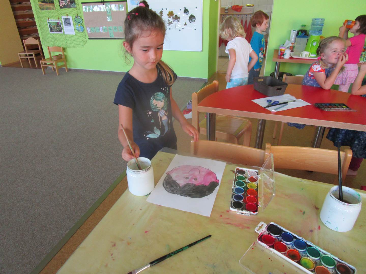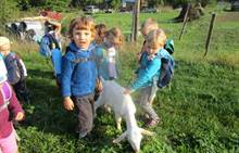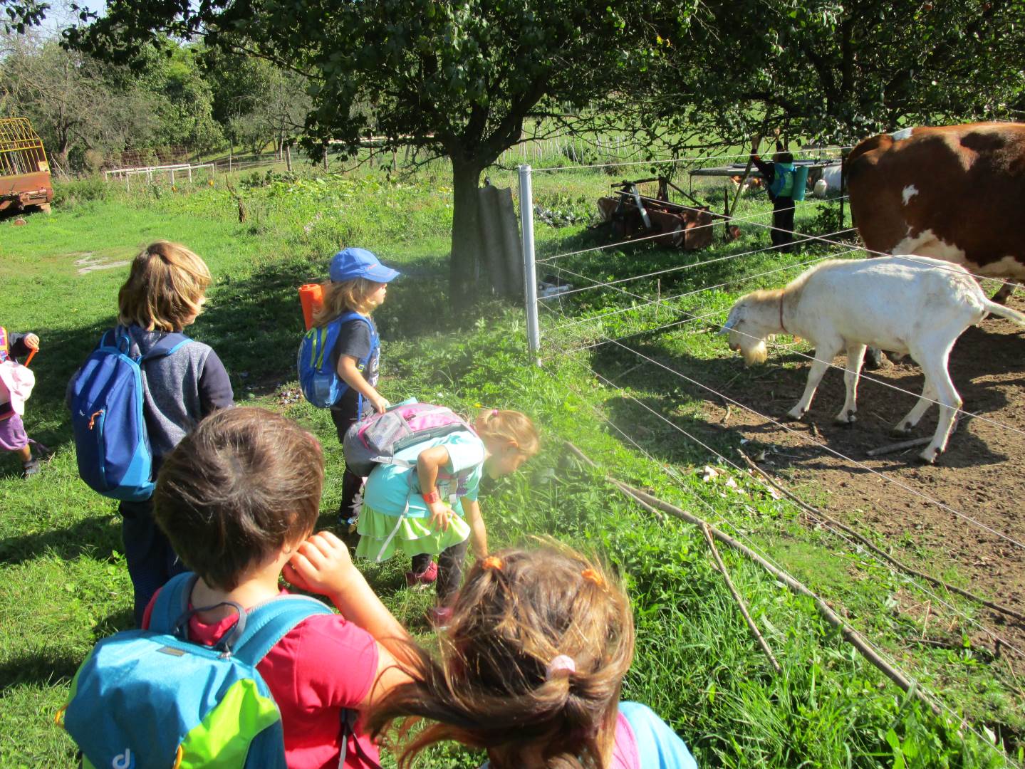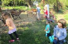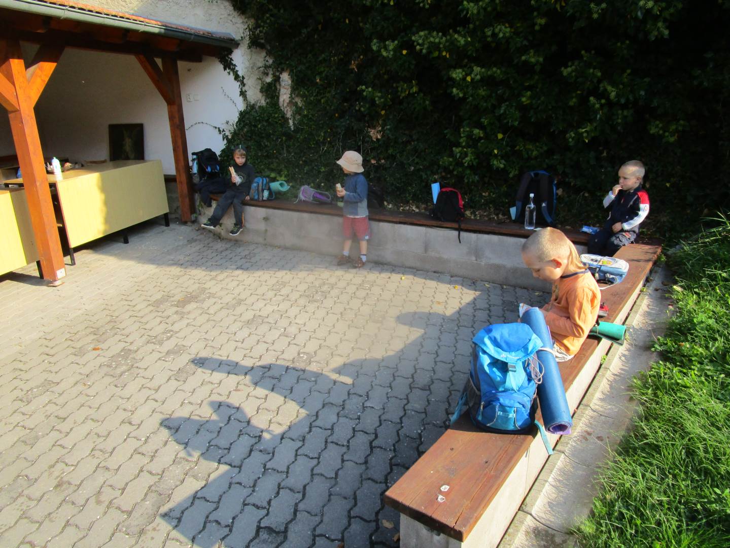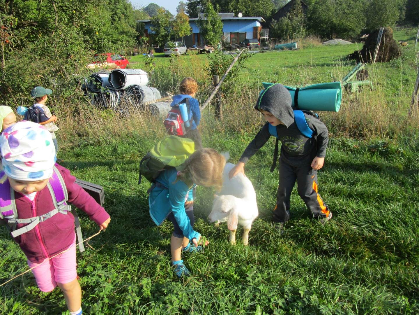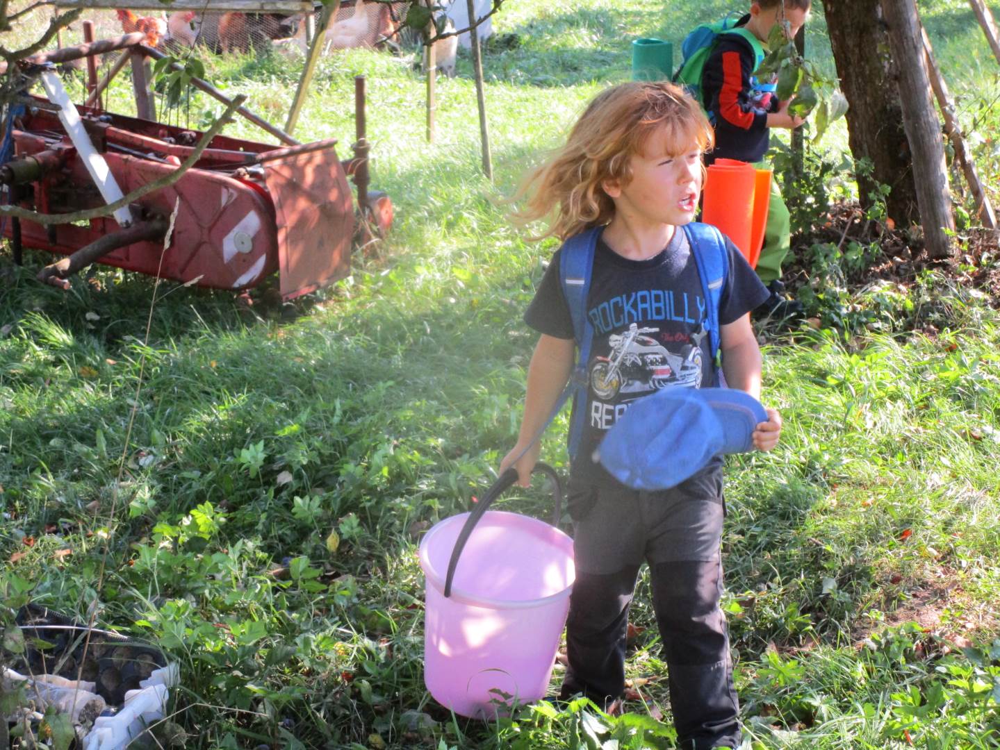 V pondělí se jdeme podívat, kde probíhaly sobotní cyklokrosové závody. Startujeme od kulturního domu a cesta nás vede kolem klád, různými lesními serpentinami až k ovečkám. Další dny si opakujeme písničky o jablíčku, počítáme je, porovnáváme velikost a barvu, zkoušíme je nosit na hlavě. Zjišťujeme, že jablíčka chutnají nejen nám, ale i zvířátkům a objevujeme, jak se z jablíček dělá mošt. Nakonec si jablíčka namalujem a vida, dá se s nimi i tisknout! Ve třídě rádi cvičíme, na elipse vytváříme pavučinu přátelství a své kamarády si namalujeme. Naučili jsme se hrát Zlatou bránu a skákat Panáka.