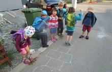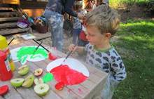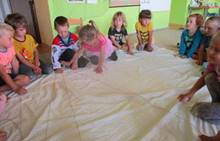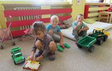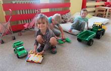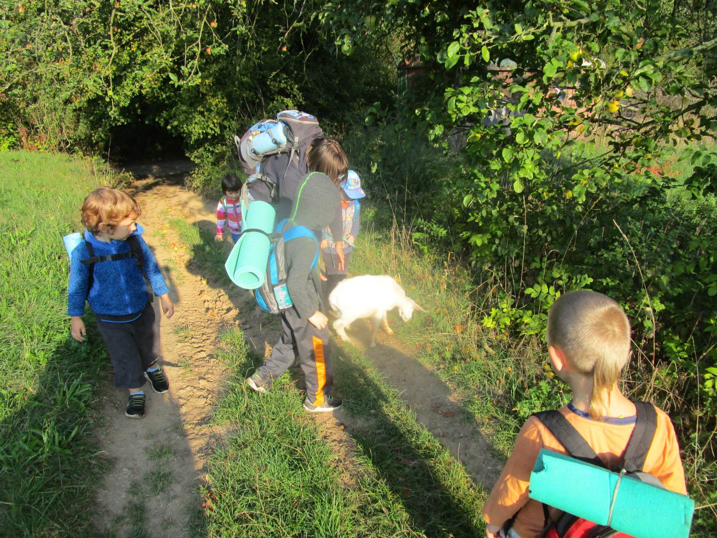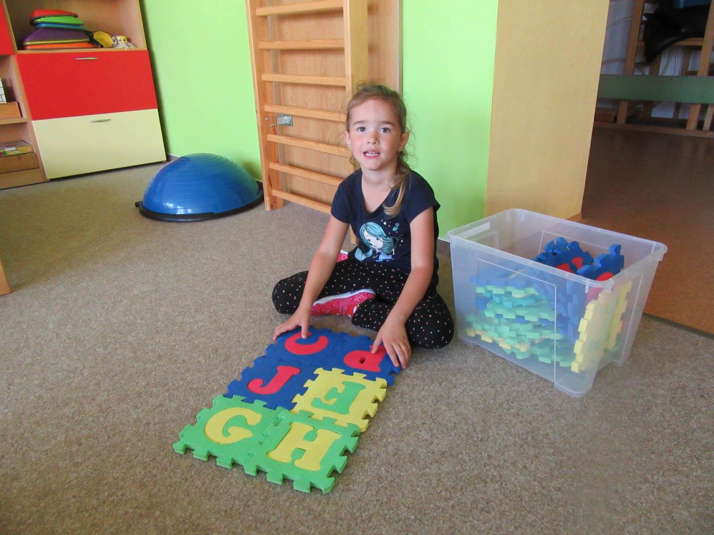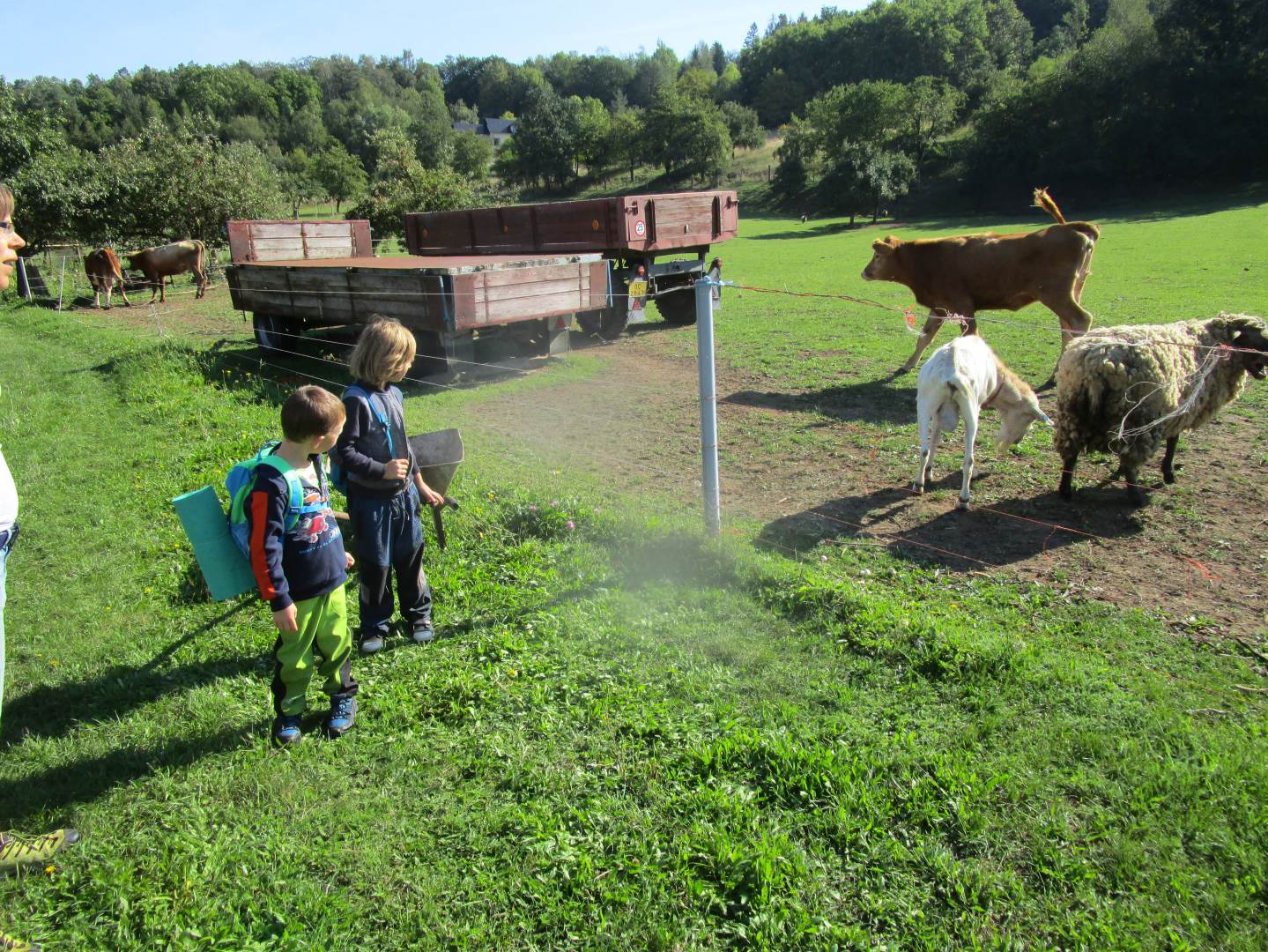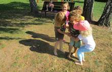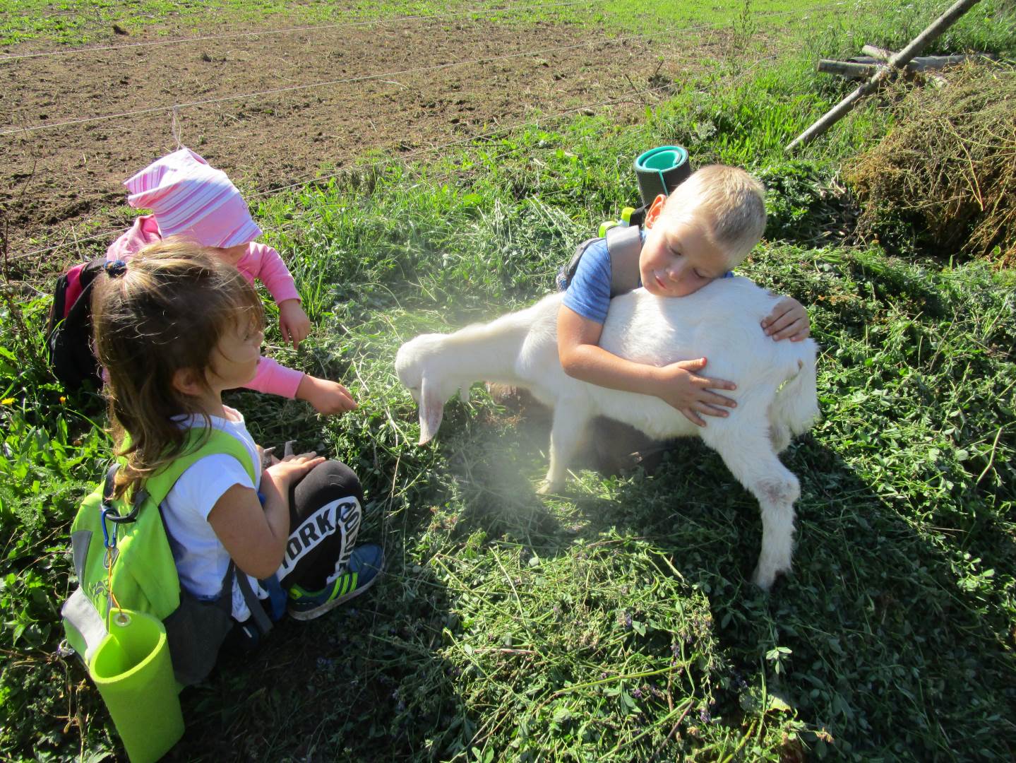 V pondělí se jdeme podívat, kde probíhaly sobotní cyklokrosové závody. Startujeme od kulturního domu a cesta nás vede kolem klád, různými lesními serpentinami až k ovečkám. Další dny si opakujeme písničky o jablíčku, počítáme je, porovnáváme velikost a barvu, zkoušíme je nosit na hlavě. Zjišťujeme, že jablíčka chutnají nejen nám, ale i zvířátkům a objevujeme, jak se z jablíček dělá mošt. Nakonec si jablíčka namalujem a vida, dá se s nimi i tisknout! Ve třídě rádi cvičíme, na elipse vytváříme pavučinu přátelství a své kamarády si namalujeme. Naučili jsme se hrát Zlatou bránu a skákat Panáka.