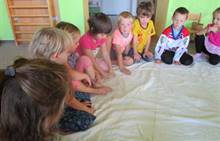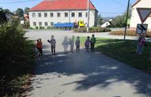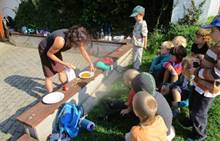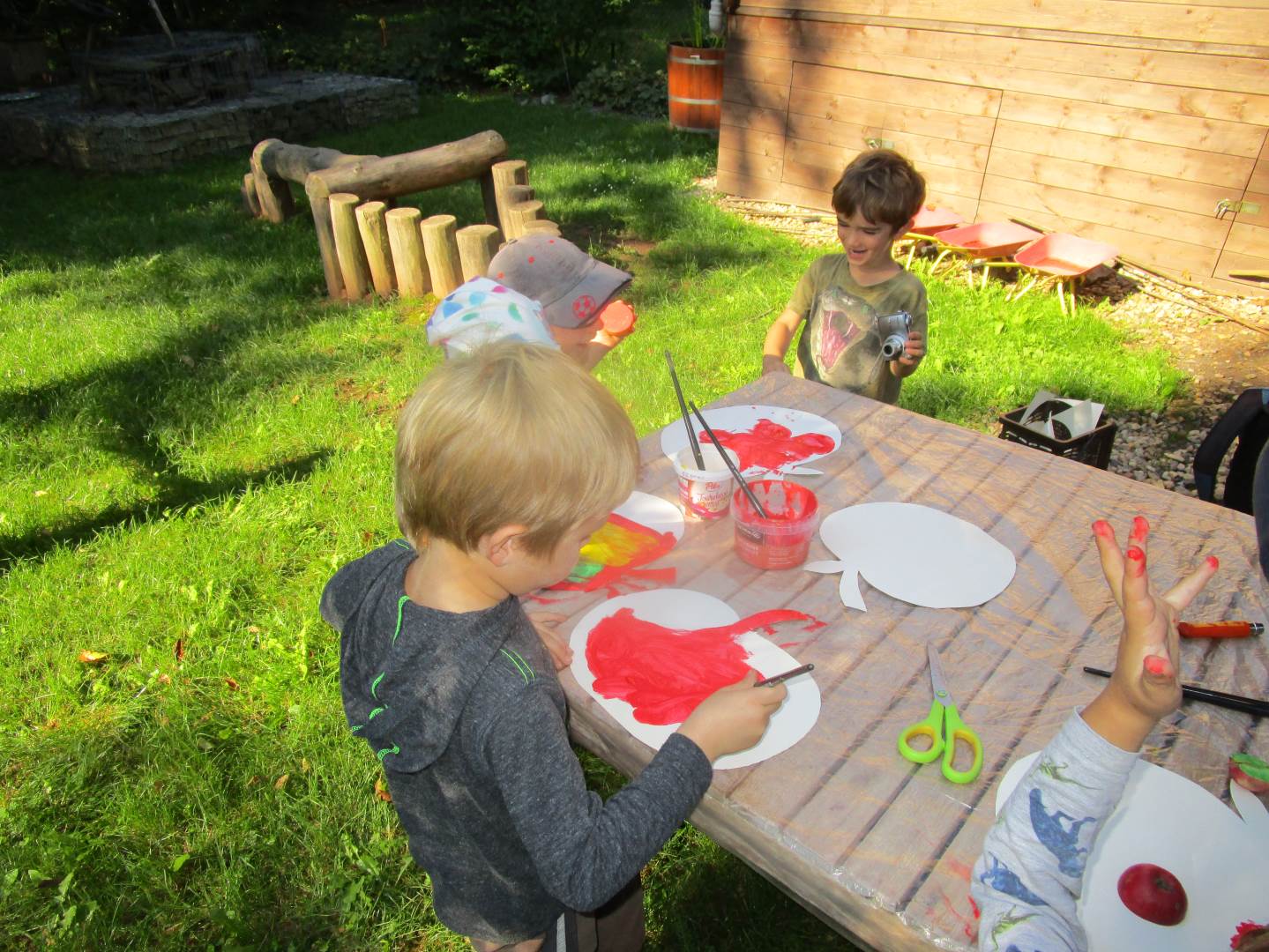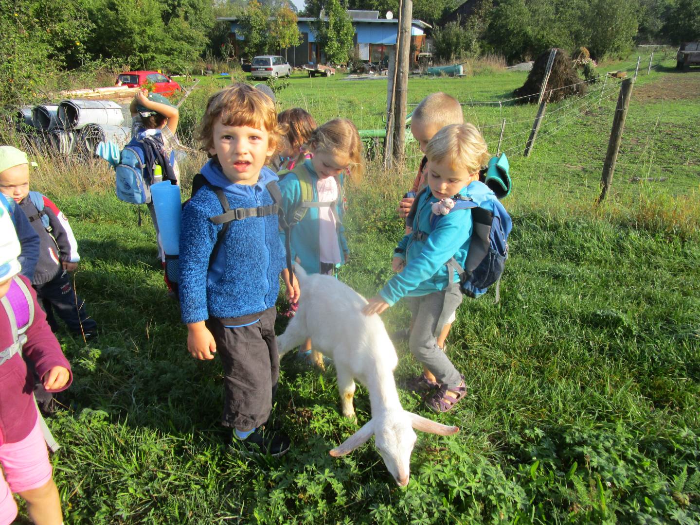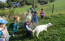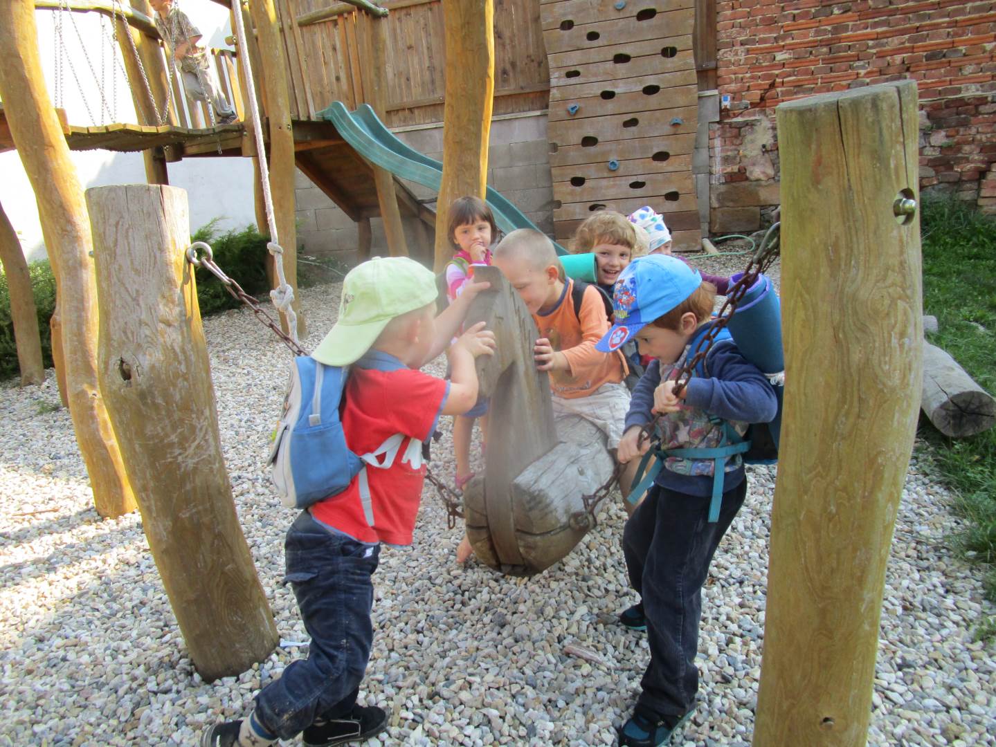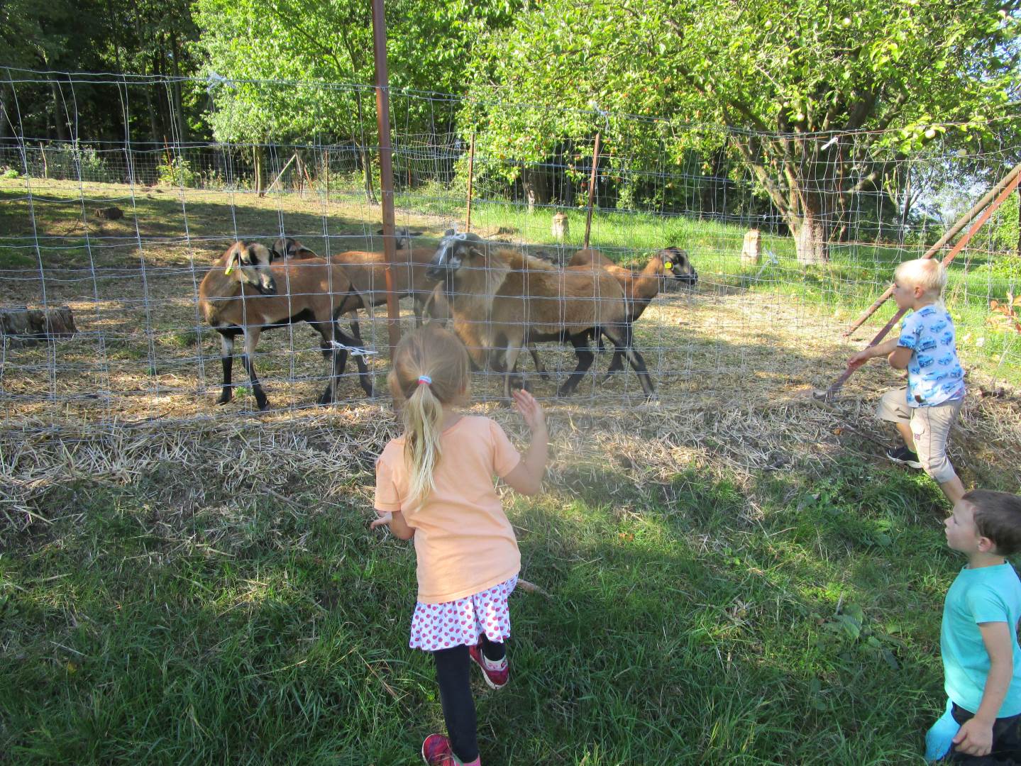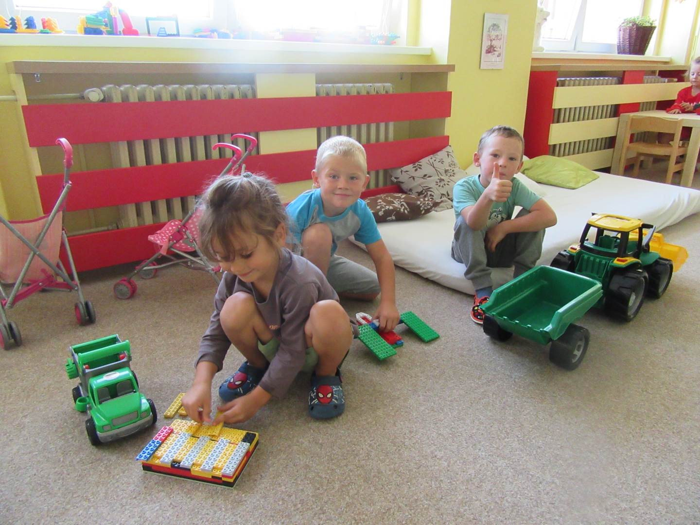 V pondělí se jdeme podívat, kde probíhaly sobotní cyklokrosové závody. Startujeme od kulturního domu a cesta nás vede kolem klád, různými lesními serpentinami až k ovečkám. Další dny si opakujeme písničky o jablíčku, počítáme je, porovnáváme velikost a barvu, zkoušíme je nosit na hlavě. Zjišťujeme, že jablíčka chutnají nejen nám, ale i zvířátkům a objevujeme, jak se z jablíček dělá mošt. Nakonec si jablíčka namalujem a vida, dá se s nimi i tisknout! Ve třídě rádi cvičíme, na elipse vytváříme pavučinu přátelství a své kamarády si namalujeme. Naučili jsme se hrát Zlatou bránu a skákat Panáka.