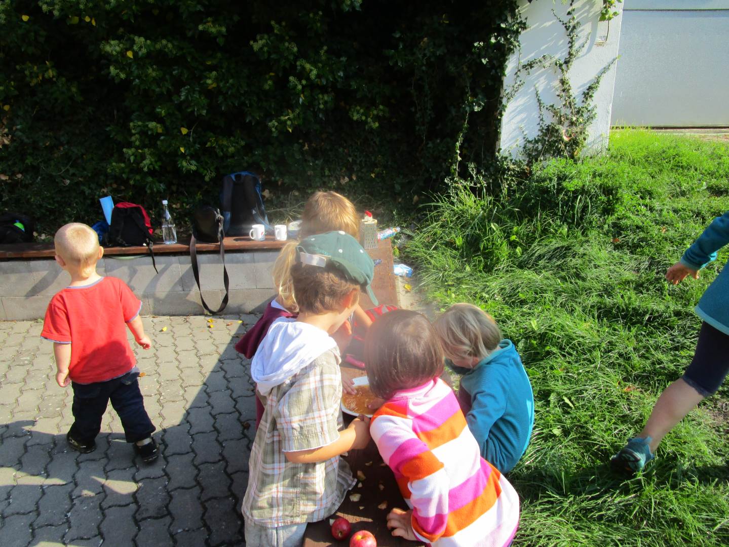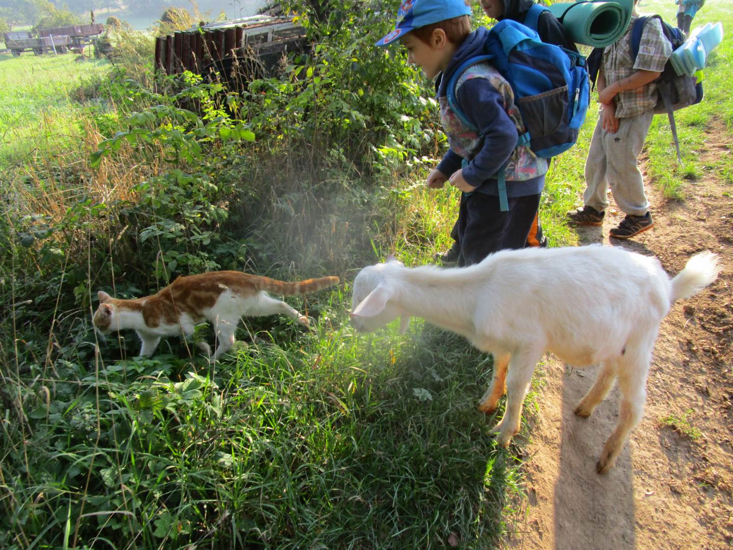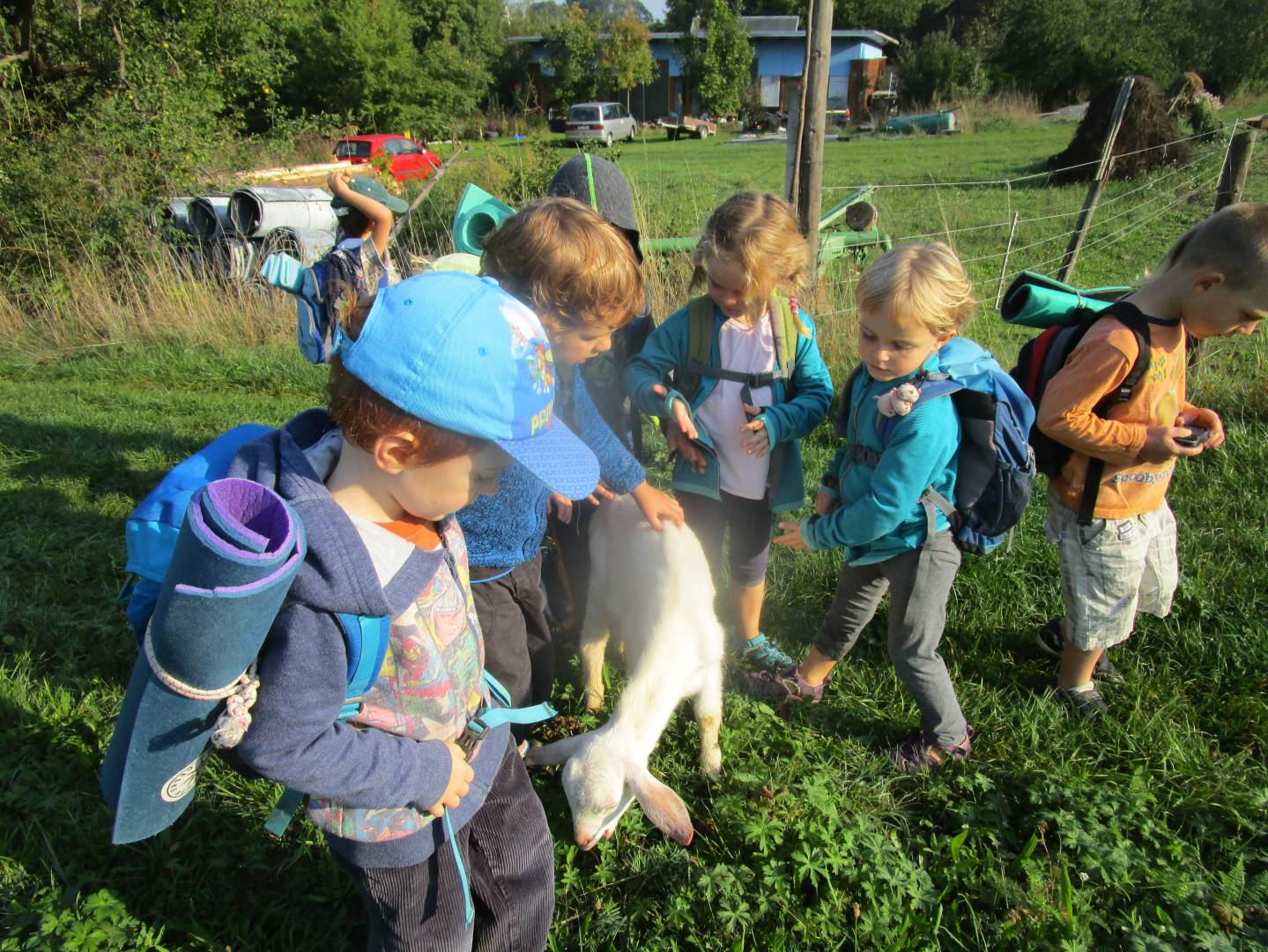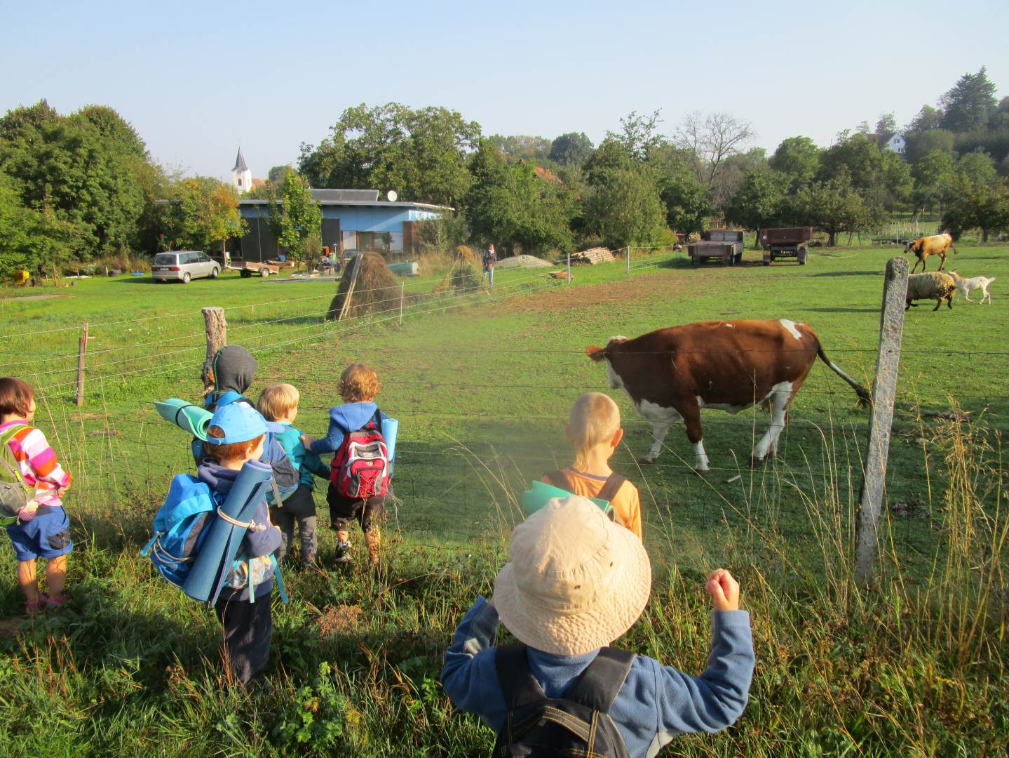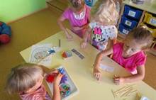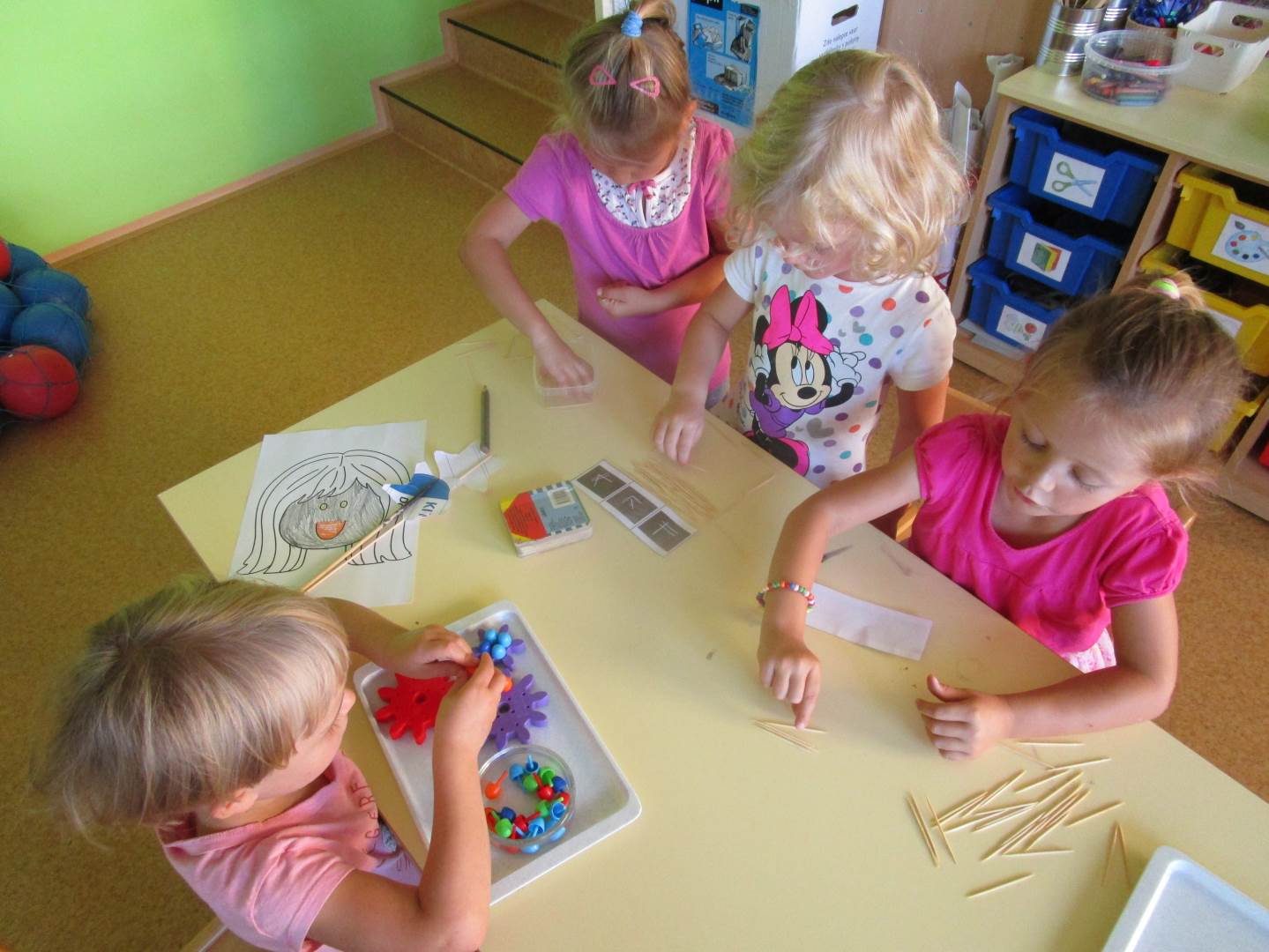 V pondělí se jdeme podívat, kde probíhaly sobotní cyklokrosové závody. Startujeme od kulturního domu a cesta nás vede kolem klád, různými lesními serpentinami až k ovečkám. Další dny si opakujeme písničky o jablíčku, počítáme je, porovnáváme velikost a barvu, zkoušíme je nosit na hlavě. Zjišťujeme, že jablíčka chutnají nejen nám, ale i zvířátkům a objevujeme, jak se z jablíček dělá mošt. Nakonec si jablíčka namalujem a vida, dá se s nimi i tisknout! Ve třídě rádi cvičíme, na elipse vytváříme pavučinu přátelství a své kamarády si namalujeme. Naučili jsme se hrát Zlatou bránu a skákat Panáka.