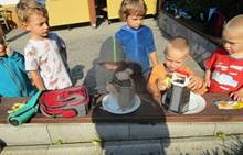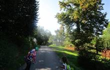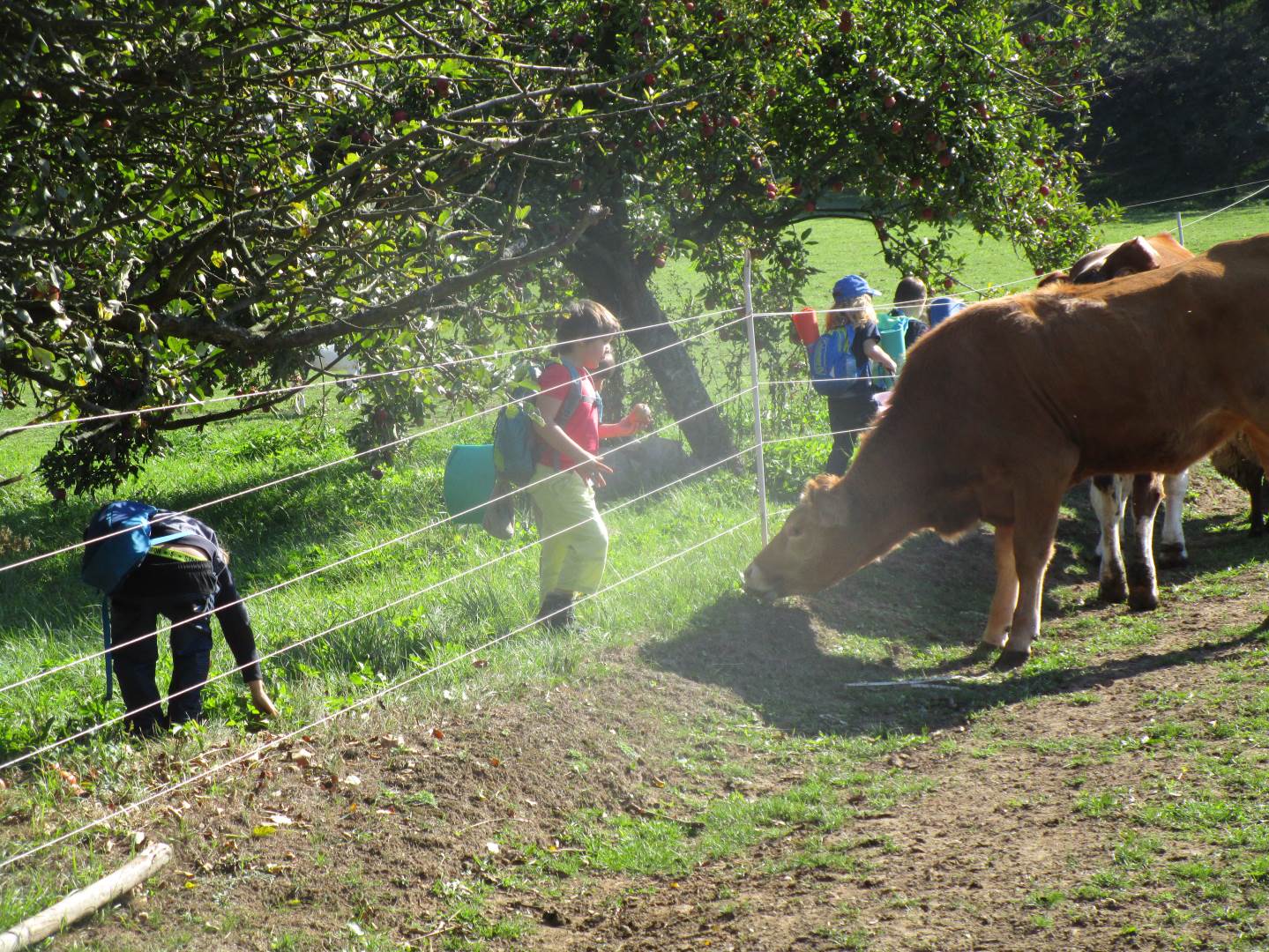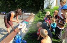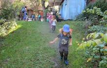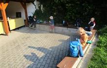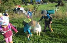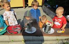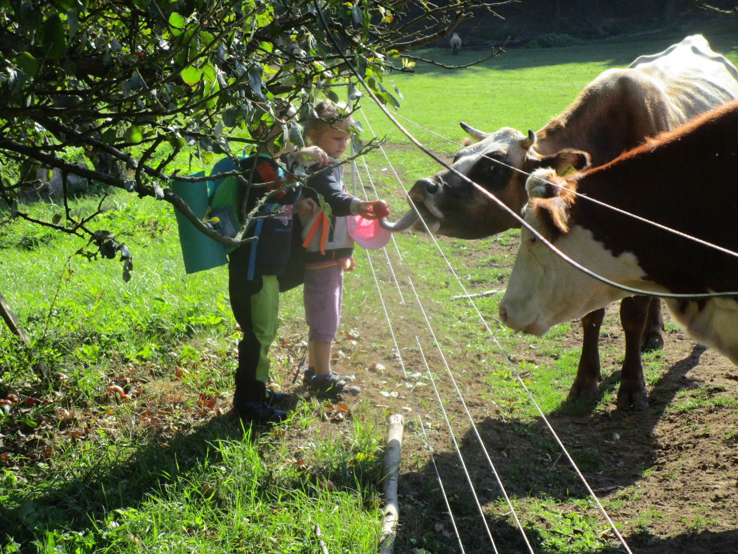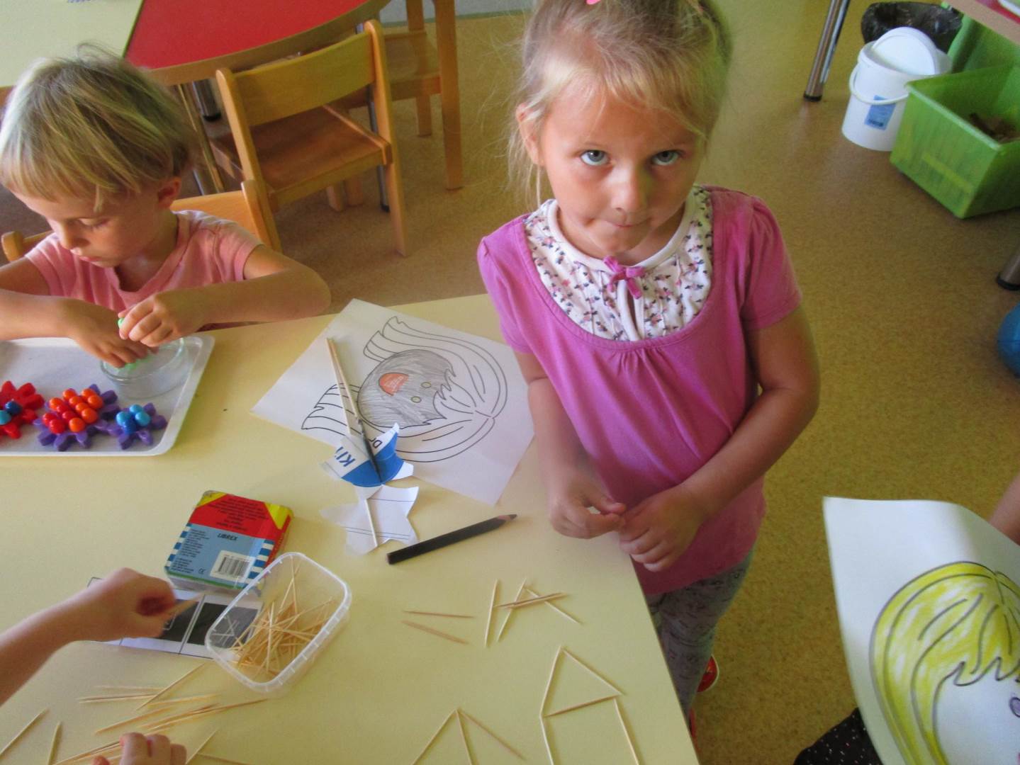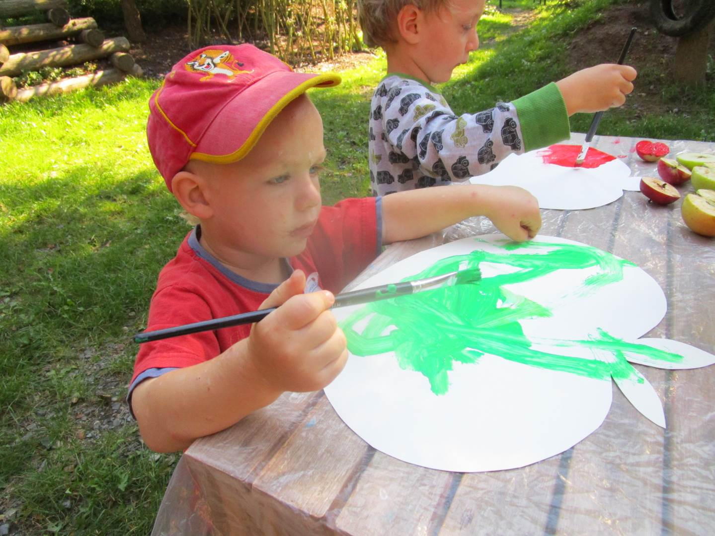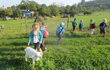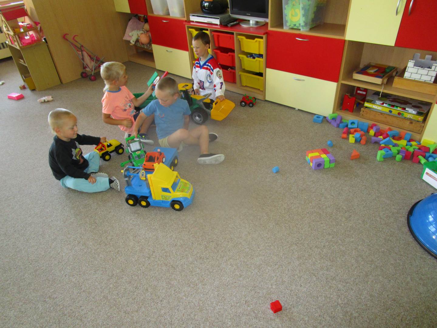 V pondělí se jdeme podívat, kde probíhaly sobotní cyklokrosové závody. Startujeme od kulturního domu a cesta nás vede kolem klád, různými lesními serpentinami až k ovečkám. Další dny si opakujeme písničky o jablíčku, počítáme je, porovnáváme velikost a barvu, zkoušíme je nosit na hlavě. Zjišťujeme, že jablíčka chutnají nejen nám, ale i zvířátkům a objevujeme, jak se z jablíček dělá mošt. Nakonec si jablíčka namalujem a vida, dá se s nimi i tisknout! Ve třídě rádi cvičíme, na elipse vytváříme pavučinu přátelství a své kamarády si namalujeme. Naučili jsme se hrát Zlatou bránu a skákat Panáka.