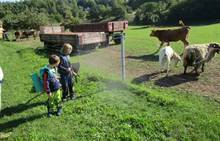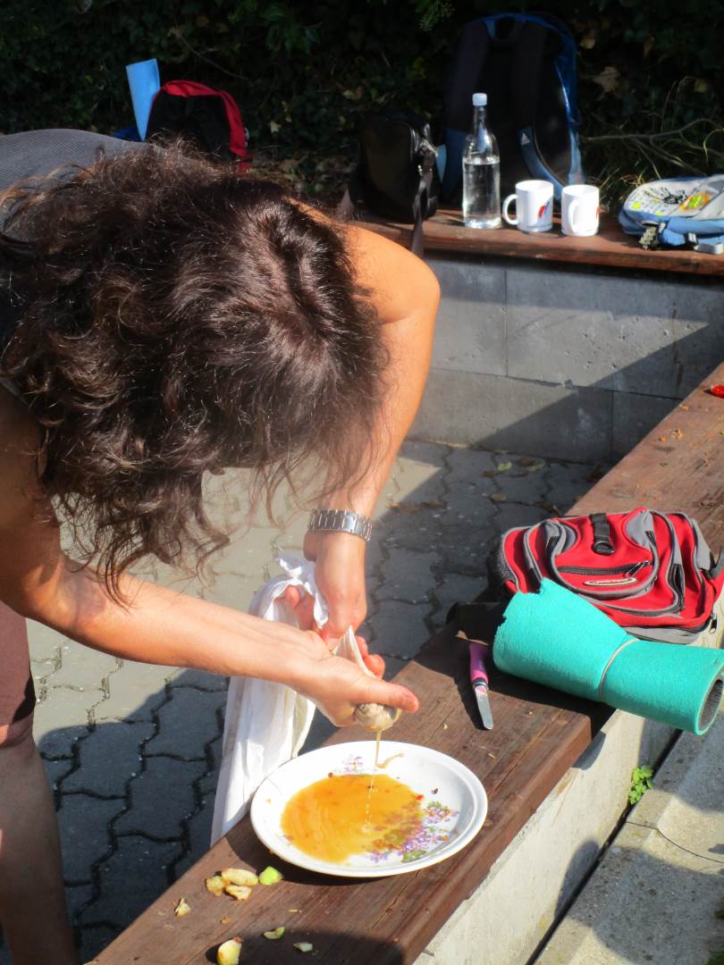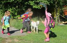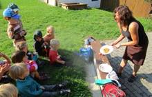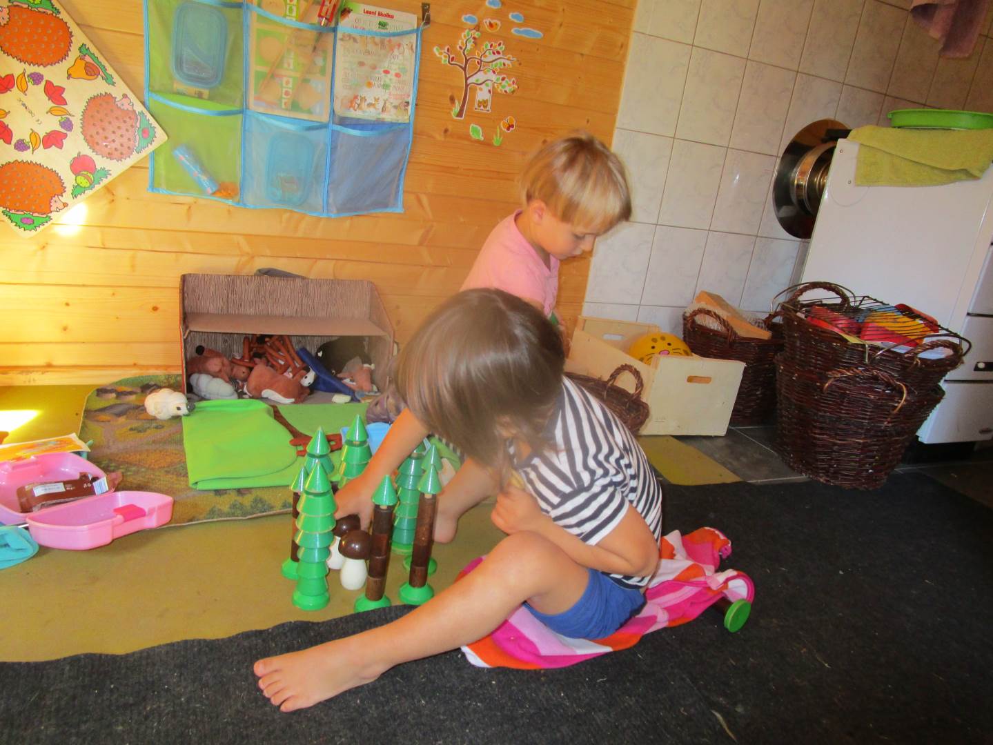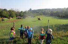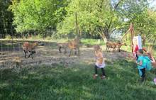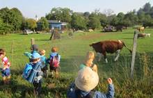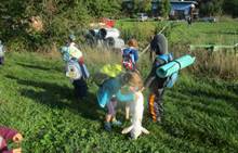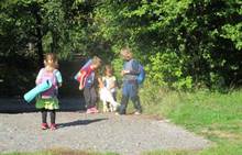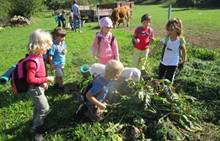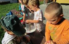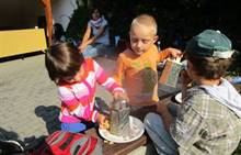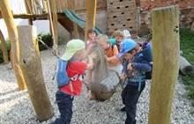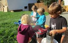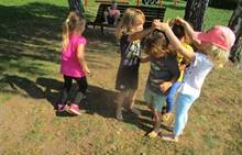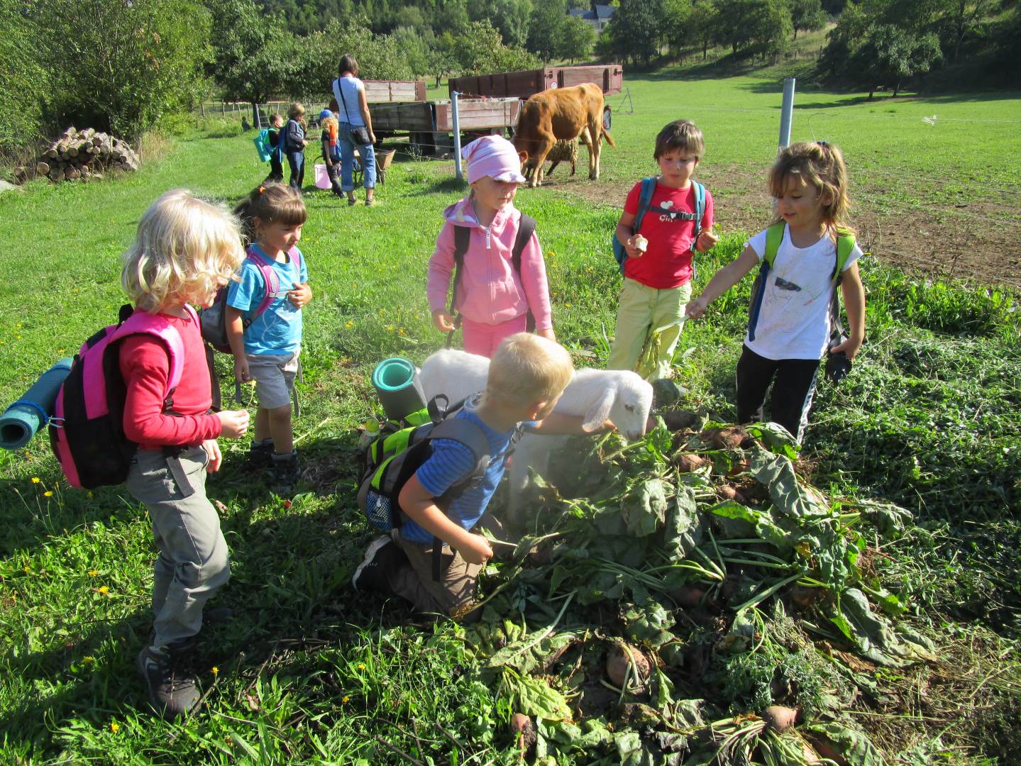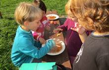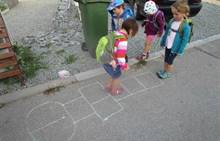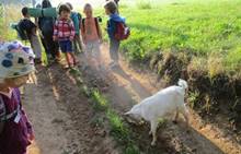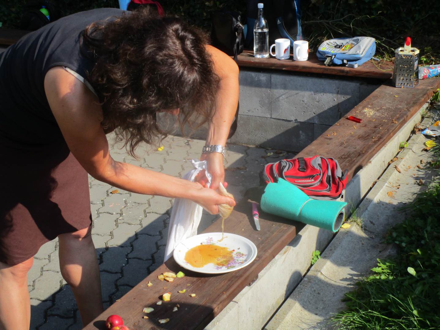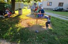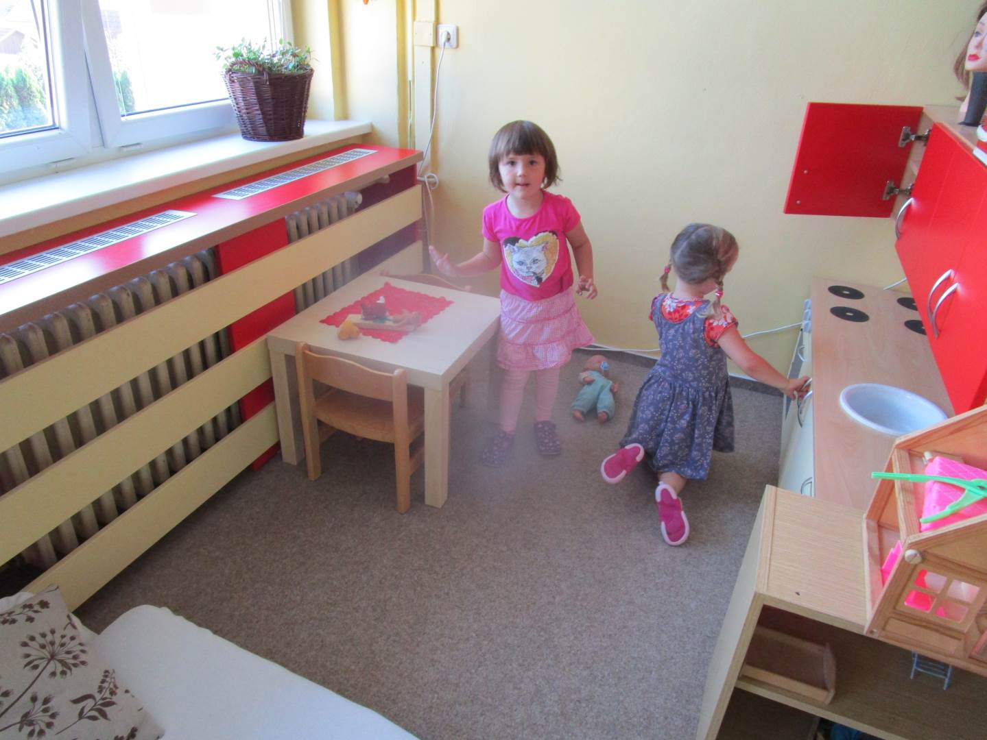 V pondělí se jdeme podívat, kde probíhaly sobotní cyklokrosové závody. Startujeme od kulturního domu a cesta nás vede kolem klád, různými lesními serpentinami až k ovečkám. Další dny si opakujeme písničky o jablíčku, počítáme je, porovnáváme velikost a barvu, zkoušíme je nosit na hlavě. Zjišťujeme, že jablíčka chutnají nejen nám, ale i zvířátkům a objevujeme, jak se z jablíček dělá mošt. Nakonec si jablíčka namalujem a vida, dá se s nimi i tisknout! Ve třídě rádi cvičíme, na elipse vytváříme pavučinu přátelství a své kamarády si namalujeme. Naučili jsme se hrát Zlatou bránu a skákat Panáka.