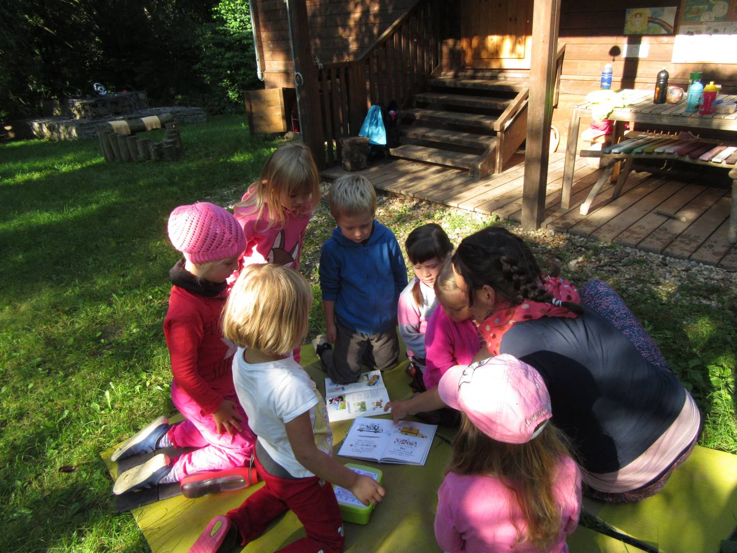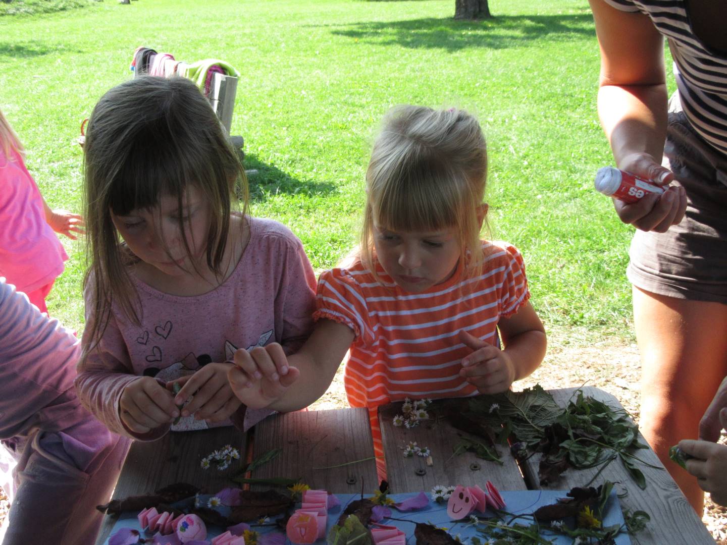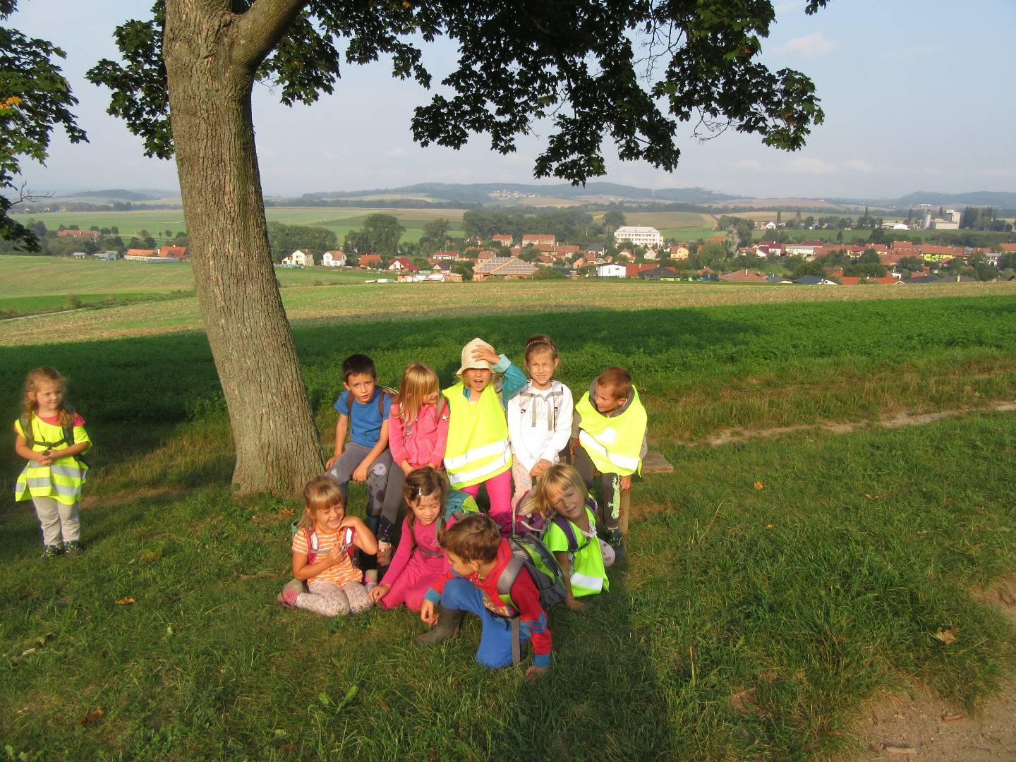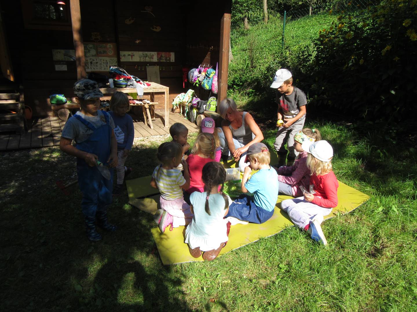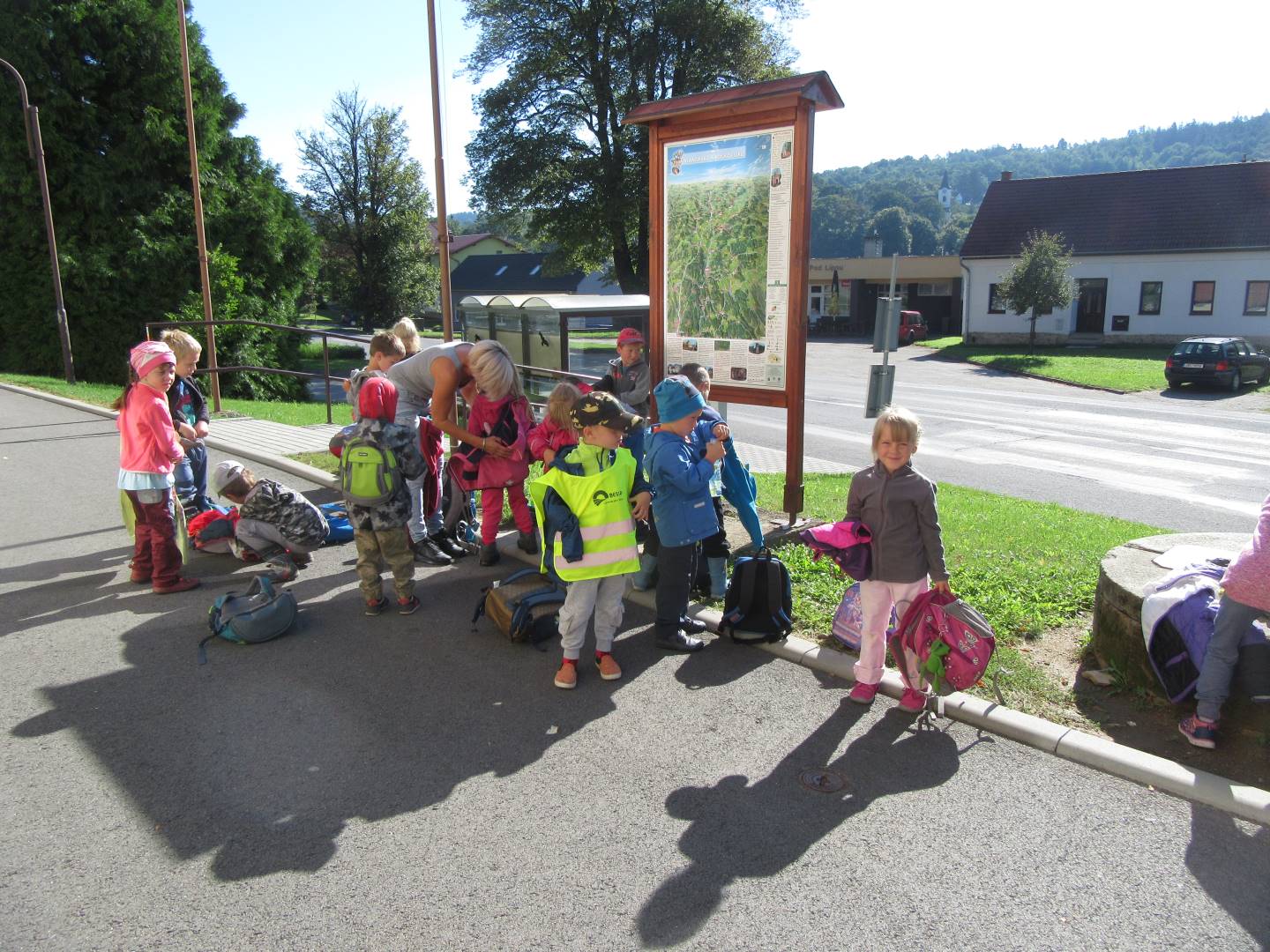 Zářím nás provedla "Žížala a její kamarádi". V dešti se nám několikrát podařilo pozorovat žížaly. Povídali jsme si o kompostu a velký obrázek kompostu si děti vytvoříly z papírových žížal a pířírodnin, které nám dala naše zahrada. Maringotku jsme vyzdobili žabičkami, které děti vybarvily trávou a listím. V půlce září jsme měli na zahradě canisterapii. Děti si vyzkoušely cvičení se psy, základní péči o srst a paní Adámková nám povídala o povolání veterináře. V pondělí 28.9. byl státní svátek a tak jsme si povídali o patronovi české země a děti vykreslily omalovánku sv. Václava. Na konci září se už ozval podzim a začaly radovánky v blátě, tvoření hrází a přehrad v lese, vaření v lesní blátivé kuchyni. Děti si oblíbily pohybové hry na kocoura a na myš a zvířecí přebíhanou. Několikrát týdně jsme zpívali za doprovodu klavíru. Kromě lidových písní jsme se naučili písničku "Srovnat hračky" a "Proč kopřiva pálí". Předškoláci dostali nové pracovní seštity, které začali vypracovávat.