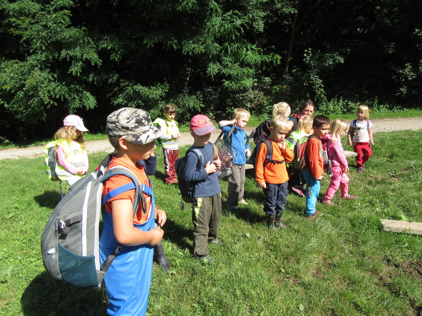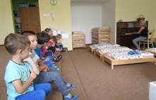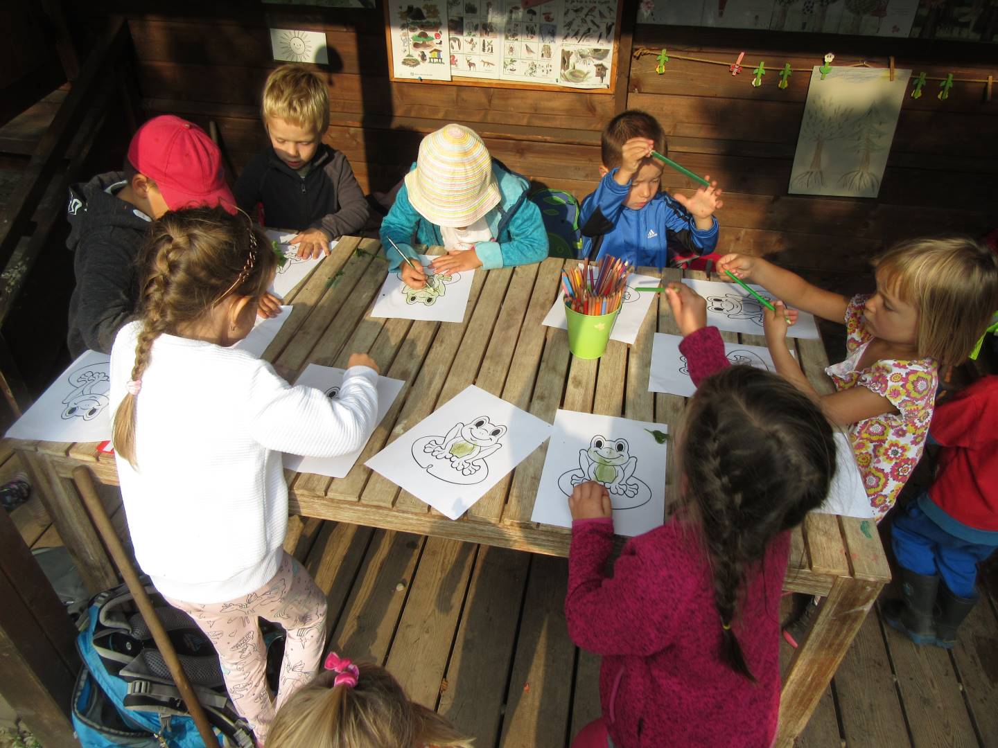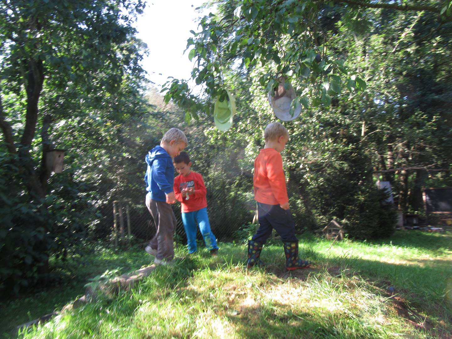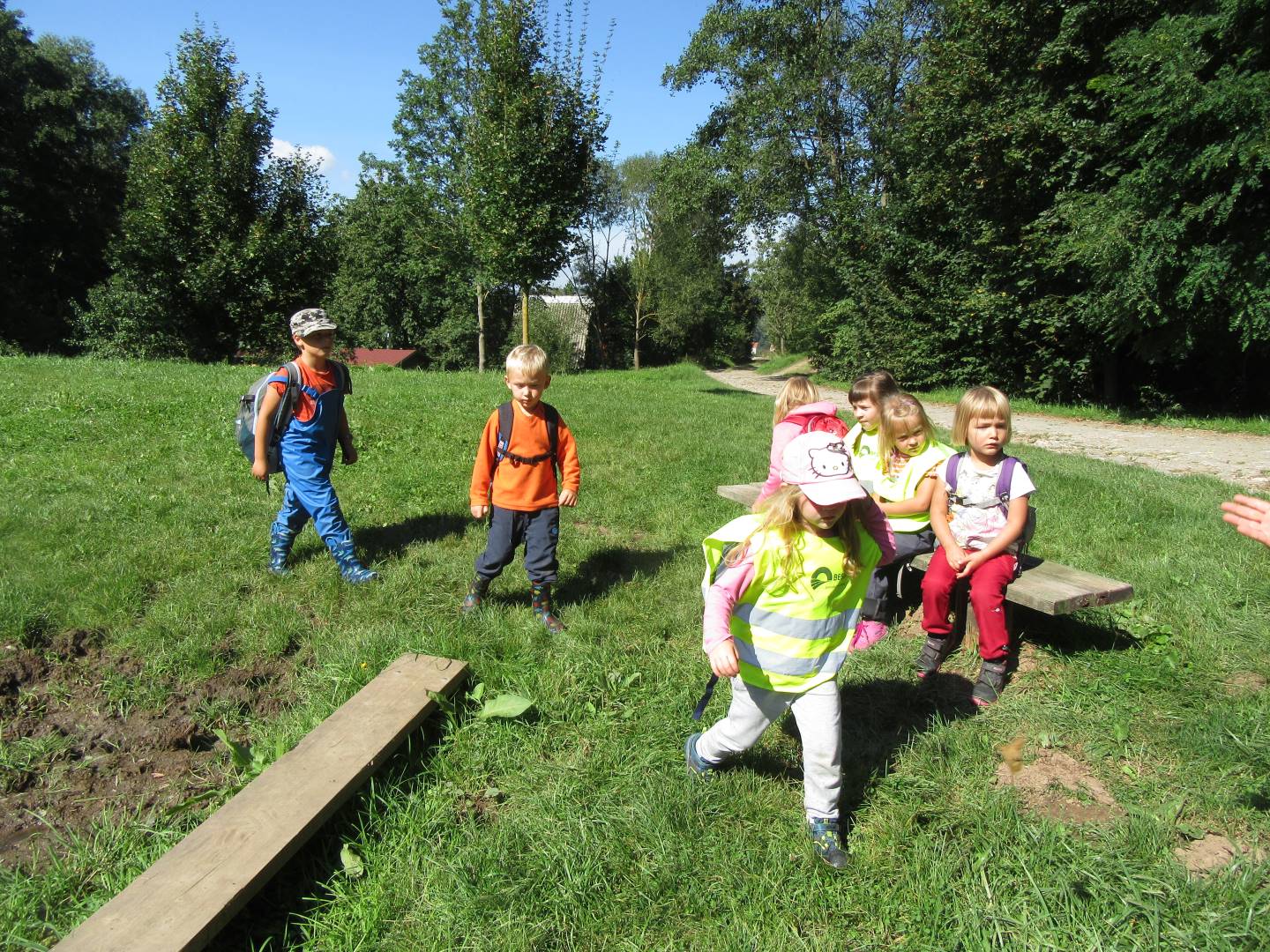 Zářím nás provedla "Žížala a její kamarádi". V dešti se nám několikrát podařilo pozorovat žížaly. Povídali jsme si o kompostu a velký obrázek kompostu si děti vytvoříly z papírových žížal a pířírodnin, které nám dala naše zahrada. Maringotku jsme vyzdobili žabičkami, které děti vybarvily trávou a listím. V půlce září jsme měli na zahradě canisterapii. Děti si vyzkoušely cvičení se psy, základní péči o srst a paní Adámková nám povídala o povolání veterináře. V pondělí 28.9. byl státní svátek a tak jsme si povídali o patronovi české země a děti vykreslily omalovánku sv. Václava. Na konci září se už ozval podzim a začaly radovánky v blátě, tvoření hrází a přehrad v lese, vaření v lesní blátivé kuchyni. Děti si oblíbily pohybové hry na kocoura a na myš a zvířecí přebíhanou. Několikrát týdně jsme zpívali za doprovodu klavíru. Kromě lidových písní jsme se naučili písničku "Srovnat hračky" a "Proč kopřiva pálí". Předškoláci dostali nové pracovní seštity, které začali vypracovávat.
