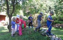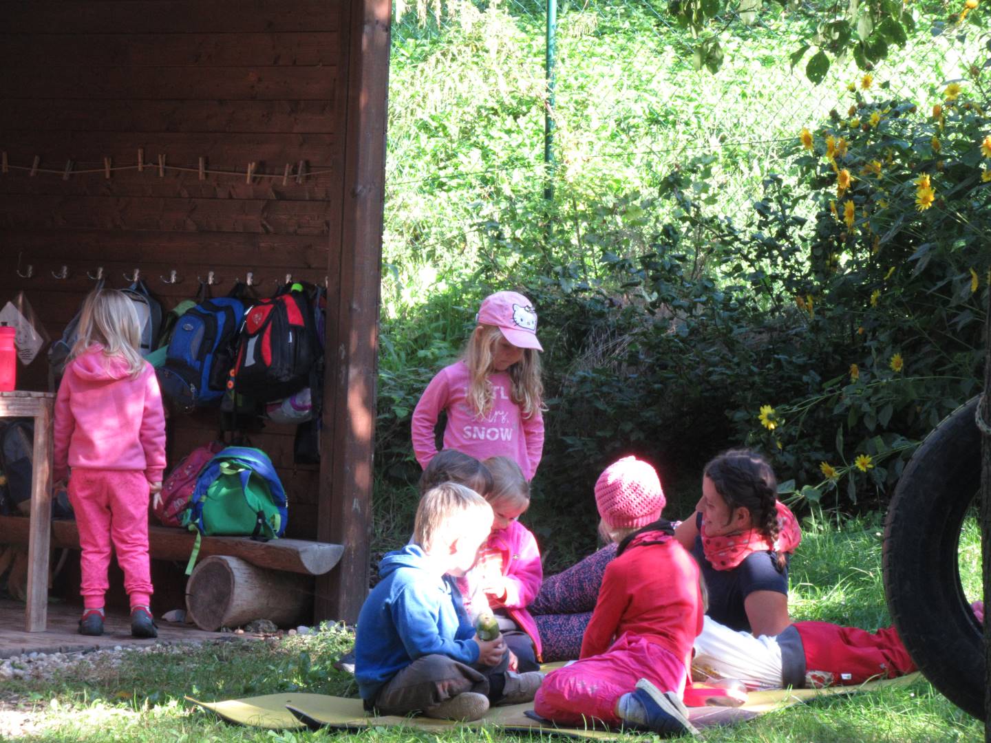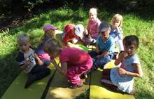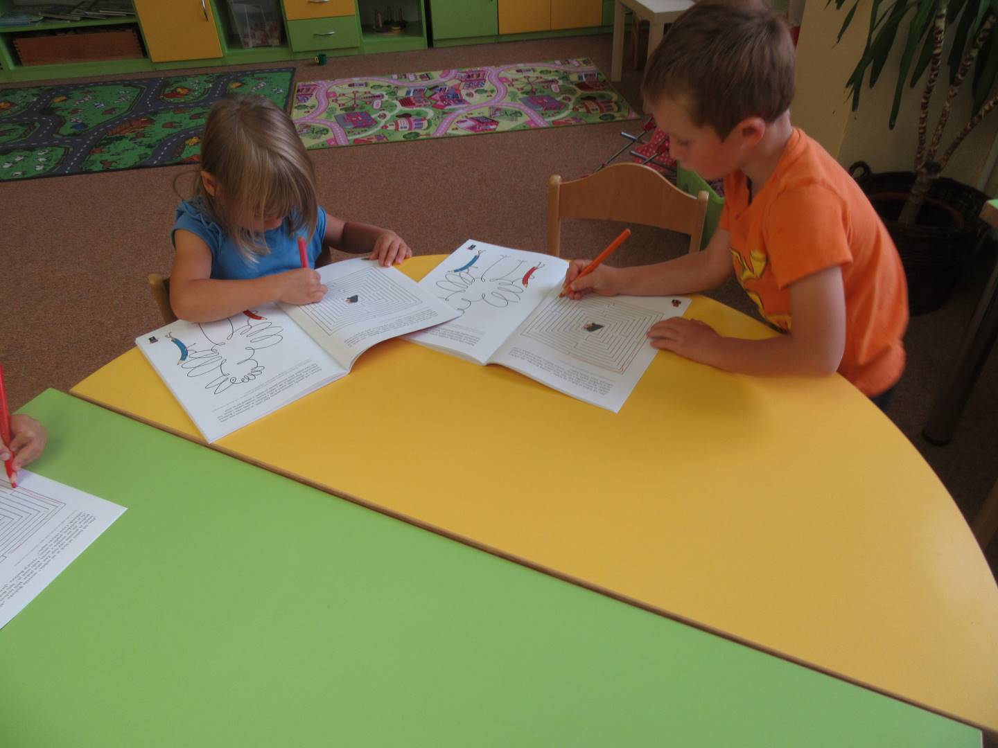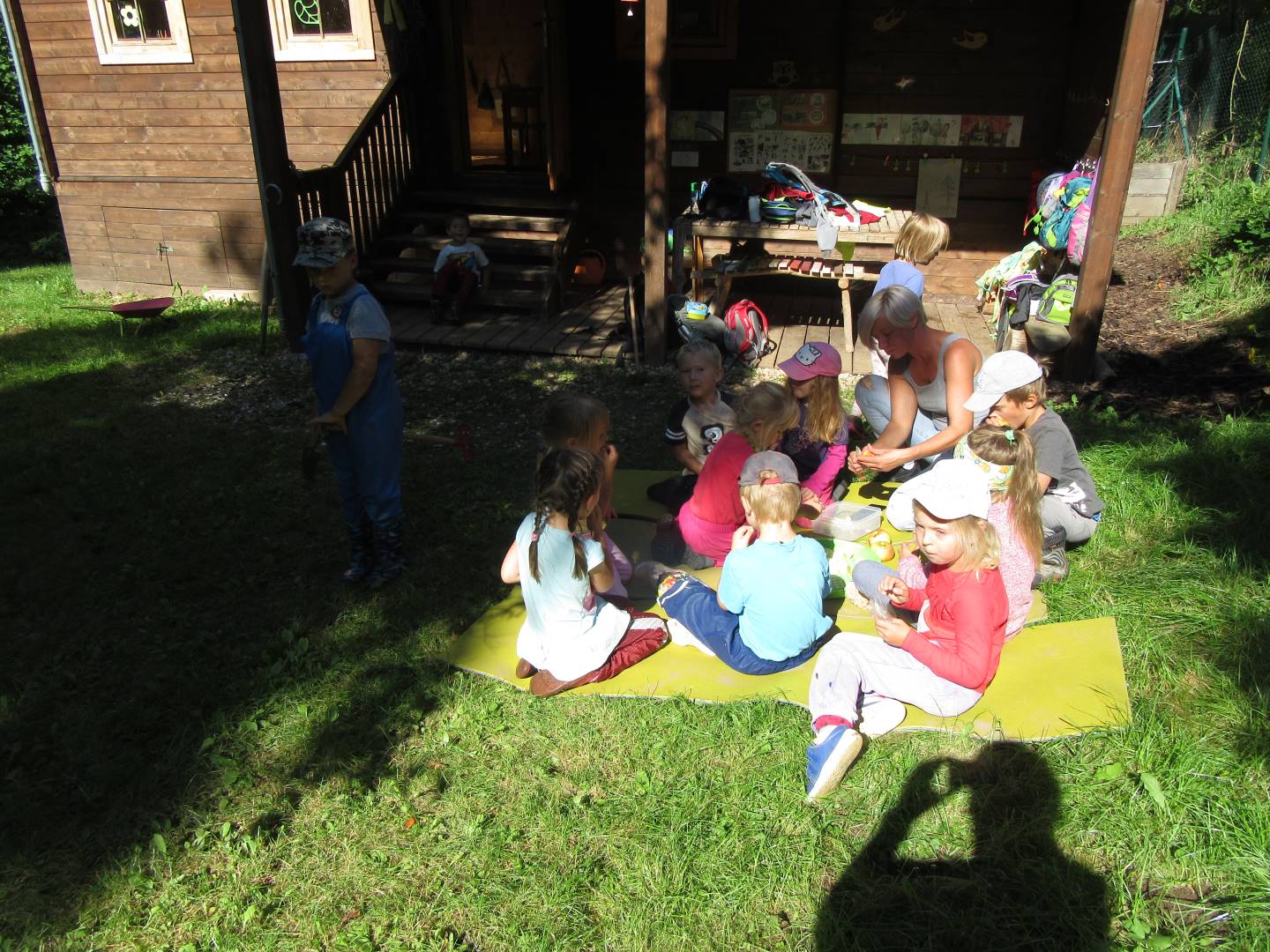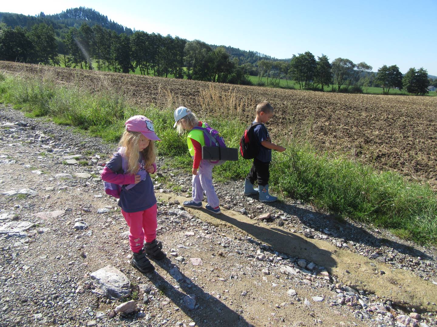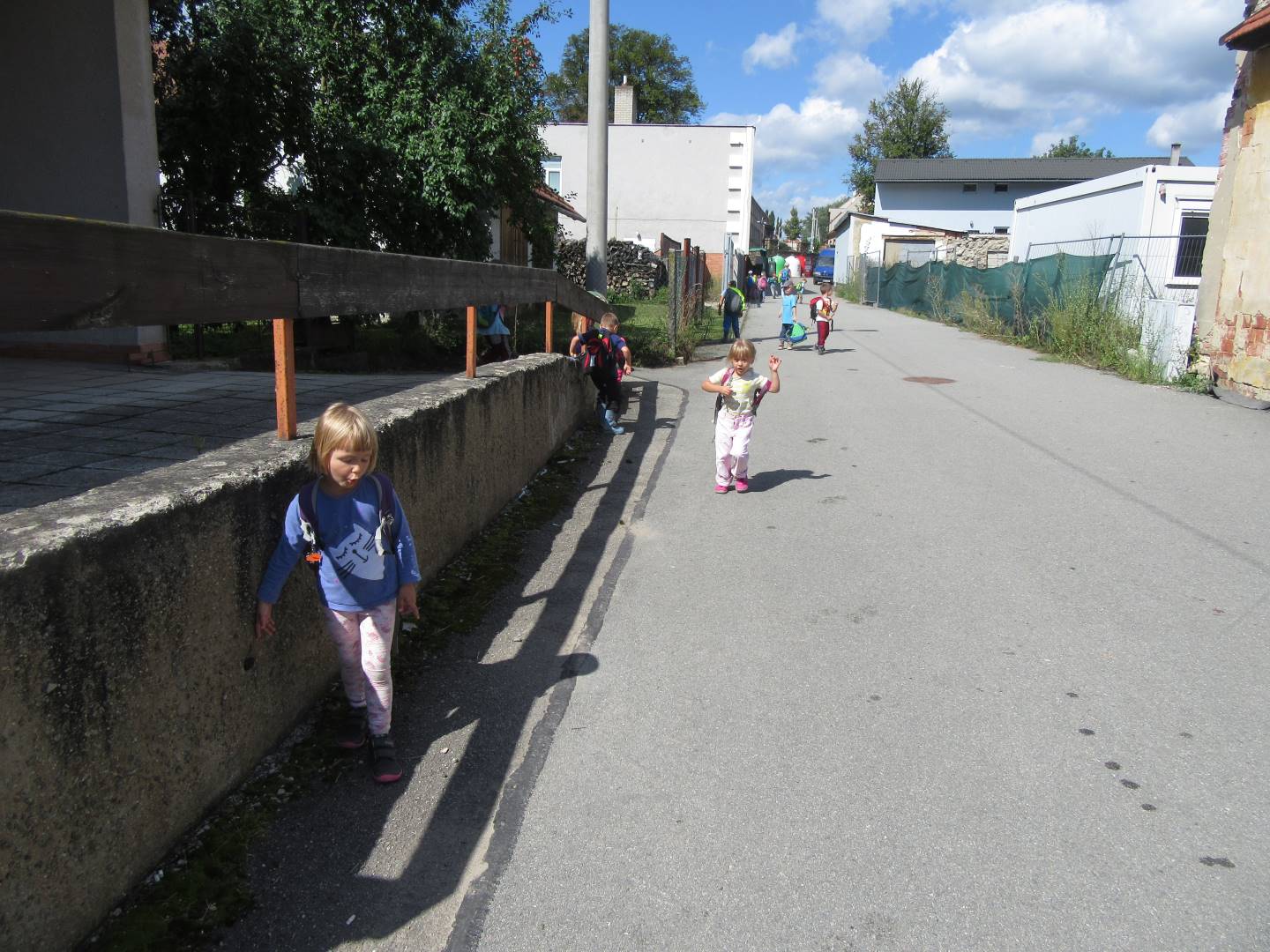 Zářím nás provedla "Žížala a její kamarádi". V dešti se nám několikrát podařilo pozorovat žížaly. Povídali jsme si o kompostu a velký obrázek kompostu si děti vytvoříly z papírových žížal a pířírodnin, které nám dala naše zahrada. Maringotku jsme vyzdobili žabičkami, které děti vybarvily trávou a listím. V půlce září jsme měli na zahradě canisterapii. Děti si vyzkoušely cvičení se psy, základní péči o srst a paní Adámková nám povídala o povolání veterináře. V pondělí 28.9. byl státní svátek a tak jsme si povídali o patronovi české země a děti vykreslily omalovánku sv. Václava. Na konci září se už ozval podzim a začaly radovánky v blátě, tvoření hrází a přehrad v lese, vaření v lesní blátivé kuchyni. Děti si oblíbily pohybové hry na kocoura a na myš a zvířecí přebíhanou. Několikrát týdně jsme zpívali za doprovodu klavíru. Kromě lidových písní jsme se naučili písničku "Srovnat hračky" a "Proč kopřiva pálí". Předškoláci dostali nové pracovní seštity, které začali vypracovávat.