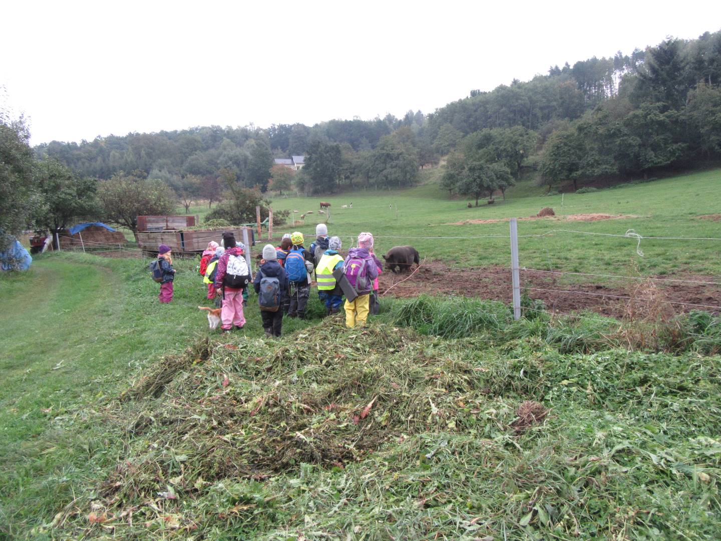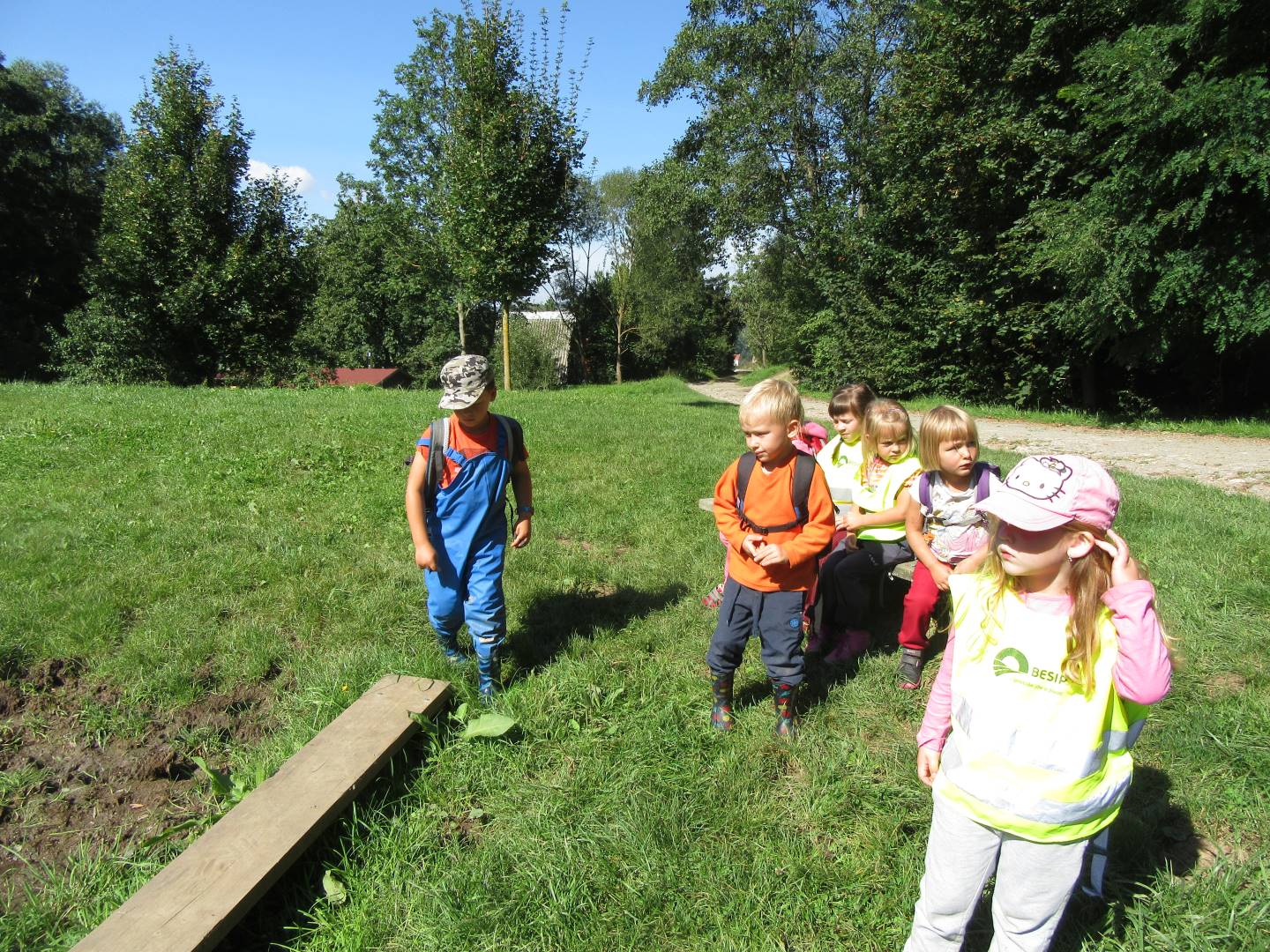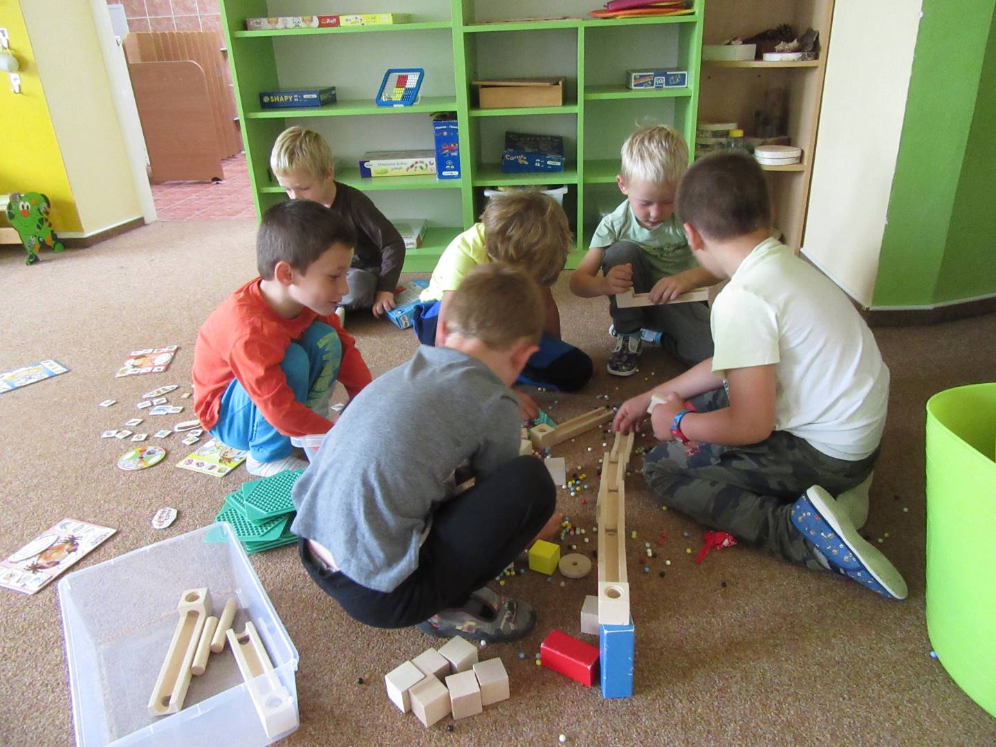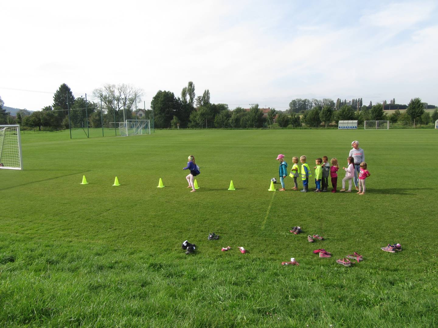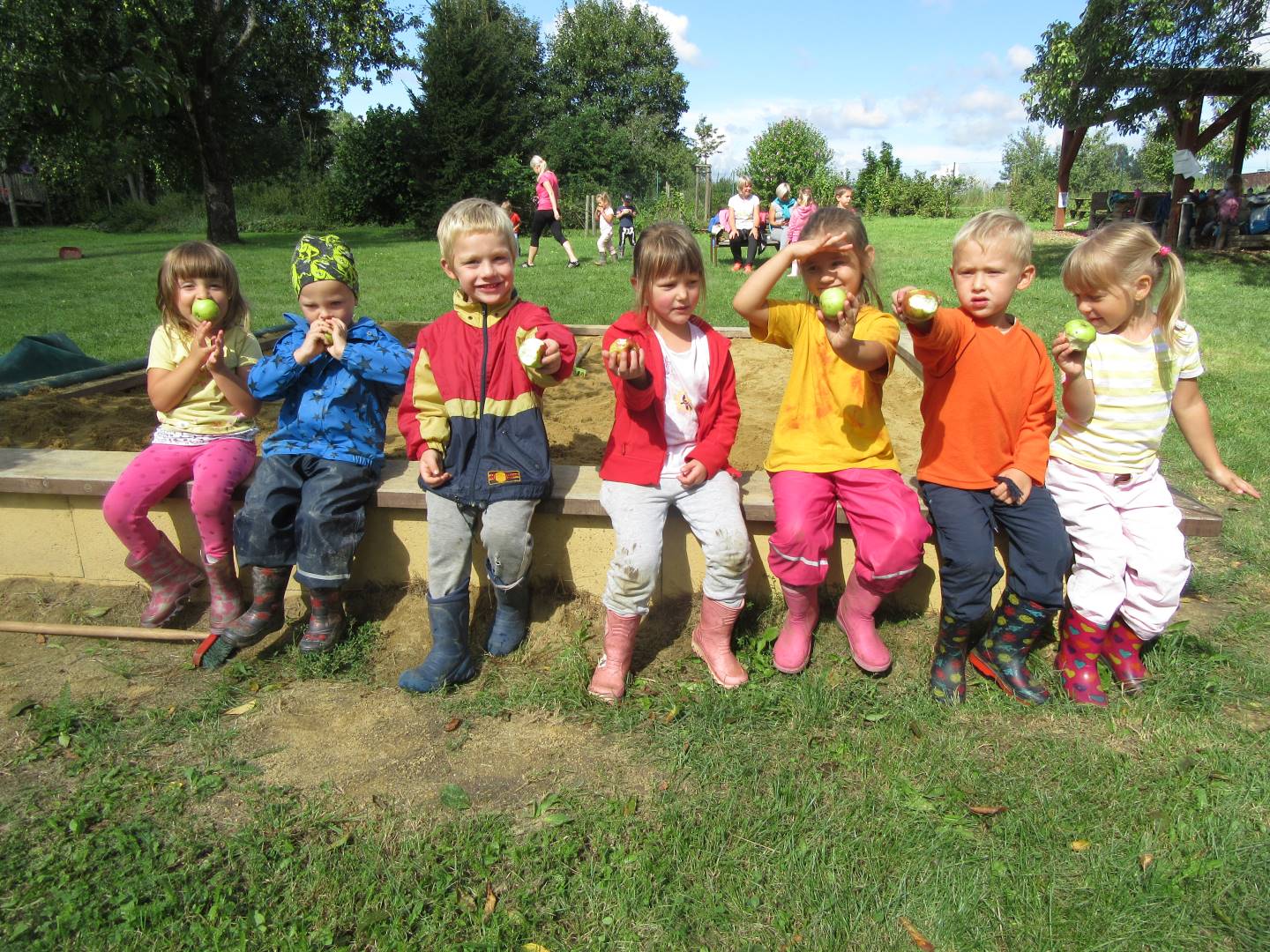 Zářím nás provedla "Žížala a její kamarádi". V dešti se nám několikrát podařilo pozorovat žížaly. Povídali jsme si o kompostu a velký obrázek kompostu si děti vytvoříly z papírových žížal a pířírodnin, které nám dala naše zahrada. Maringotku jsme vyzdobili žabičkami, které děti vybarvily trávou a listím. V půlce září jsme měli na zahradě canisterapii. Děti si vyzkoušely cvičení se psy, základní péči o srst a paní Adámková nám povídala o povolání veterináře. V pondělí 28.9. byl státní svátek a tak jsme si povídali o patronovi české země a děti vykreslily omalovánku sv. Václava. Na konci září se už ozval podzim a začaly radovánky v blátě, tvoření hrází a přehrad v lese, vaření v lesní blátivé kuchyni. Děti si oblíbily pohybové hry na kocoura a na myš a zvířecí přebíhanou. Několikrát týdně jsme zpívali za doprovodu klavíru. Kromě lidových písní jsme se naučili písničku "Srovnat hračky" a "Proč kopřiva pálí". Předškoláci dostali nové pracovní seštity, které začali vypracovávat.