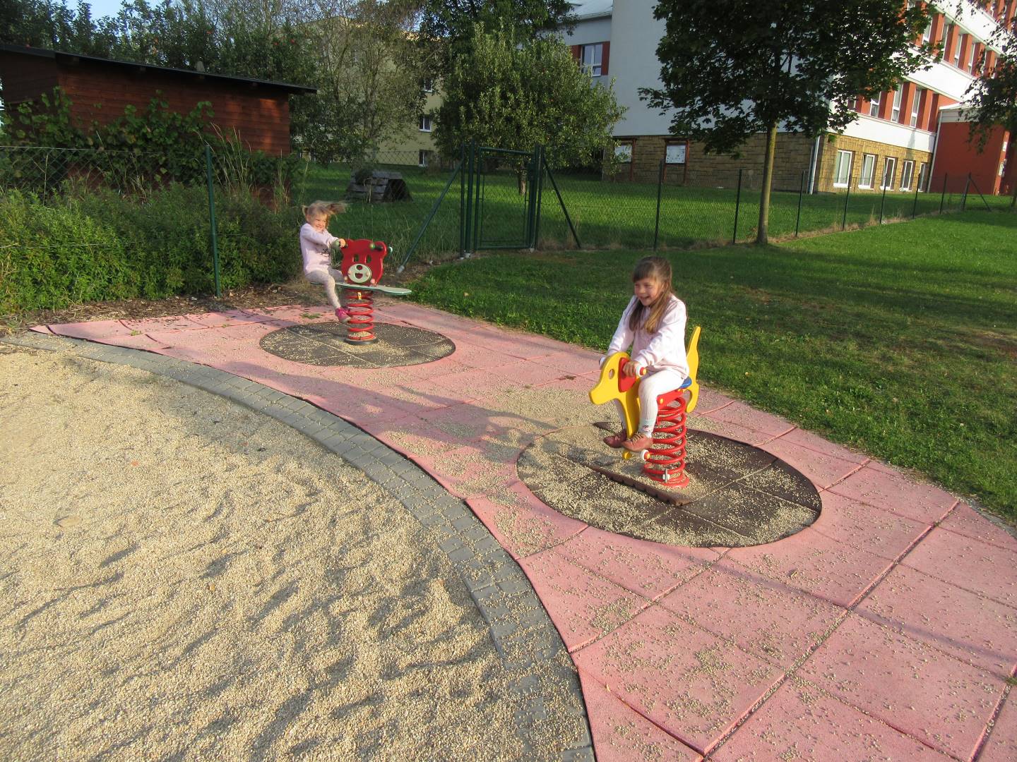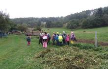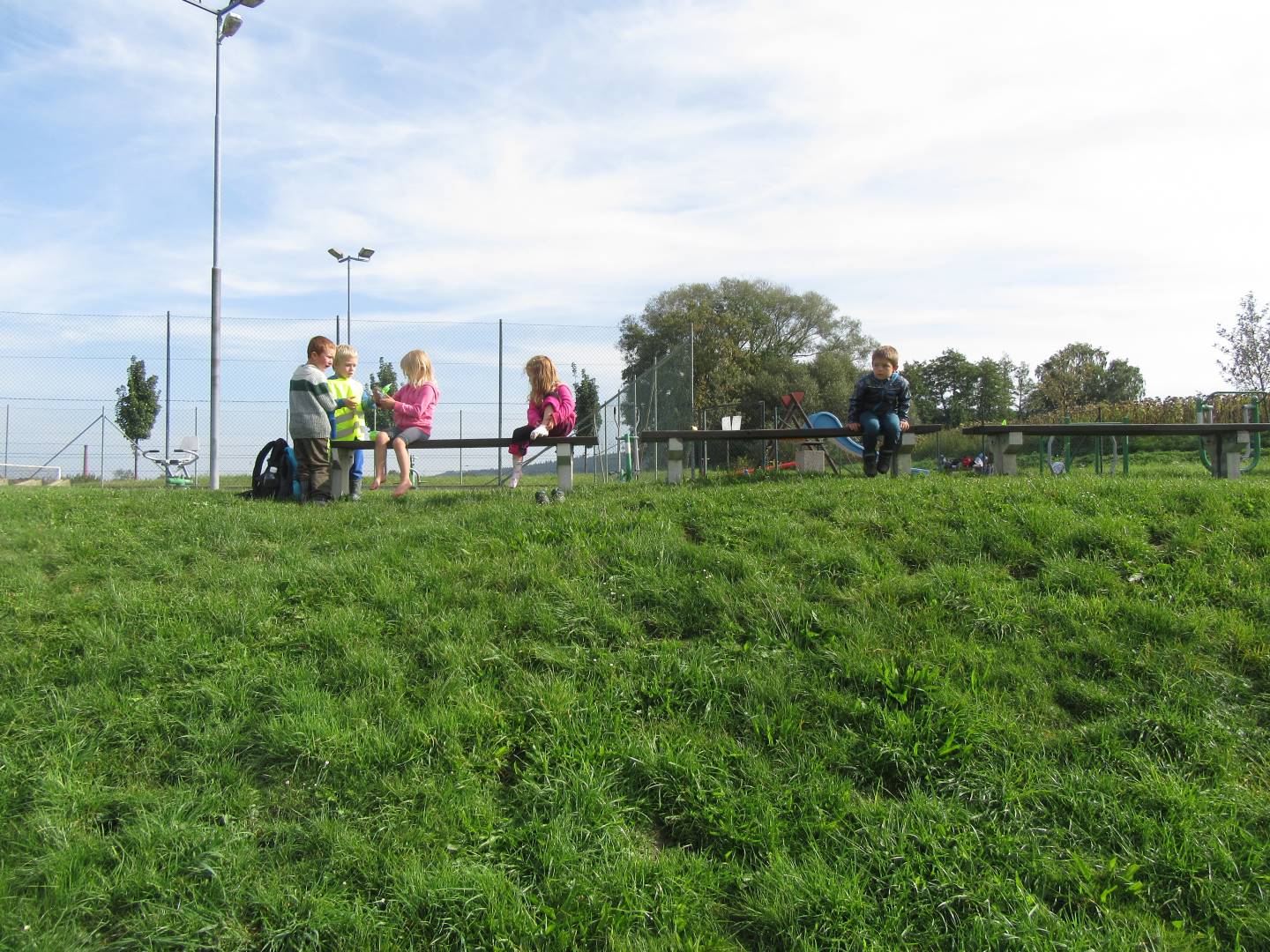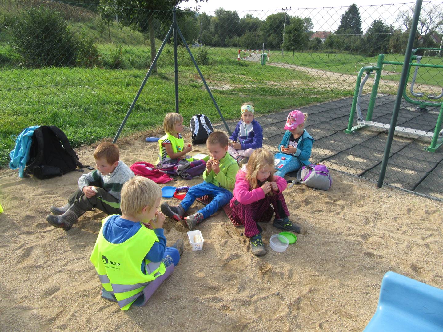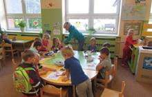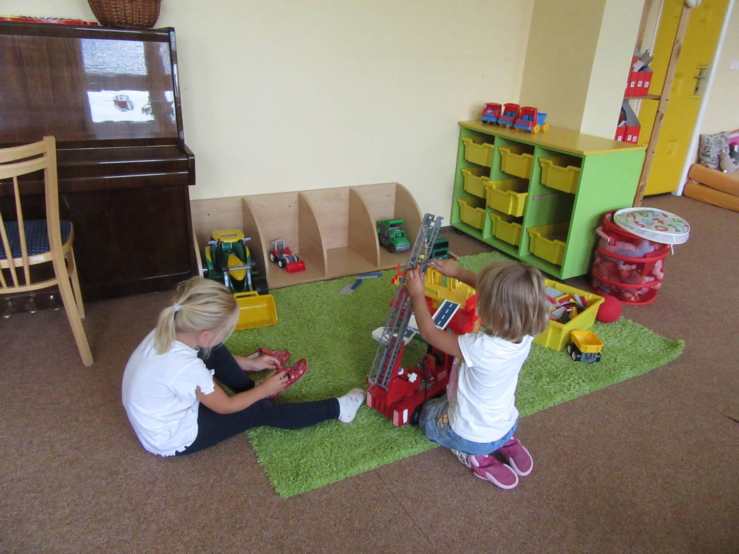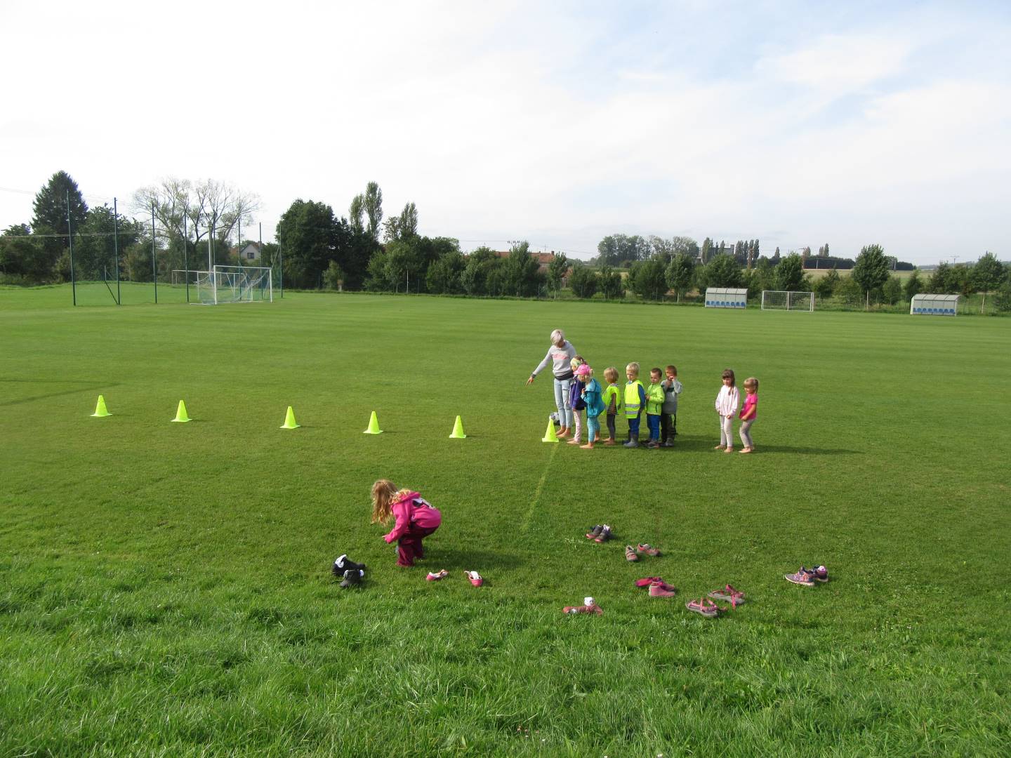 Zářím nás provedla "Žížala a její kamarádi". V dešti se nám několikrát podařilo pozorovat žížaly. Povídali jsme si o kompostu a velký obrázek kompostu si děti vytvoříly z papírových žížal a pířírodnin, které nám dala naše zahrada. Maringotku jsme vyzdobili žabičkami, které děti vybarvily trávou a listím. V půlce září jsme měli na zahradě canisterapii. Děti si vyzkoušely cvičení se psy, základní péči o srst a paní Adámková nám povídala o povolání veterináře. V pondělí 28.9. byl státní svátek a tak jsme si povídali o patronovi české země a děti vykreslily omalovánku sv. Václava. Na konci září se už ozval podzim a začaly radovánky v blátě, tvoření hrází a přehrad v lese, vaření v lesní blátivé kuchyni. Děti si oblíbily pohybové hry na kocoura a na myš a zvířecí přebíhanou. Několikrát týdně jsme zpívali za doprovodu klavíru. Kromě lidových písní jsme se naučili písničku "Srovnat hračky" a "Proč kopřiva pálí". Předškoláci dostali nové pracovní seštity, které začali vypracovávat.