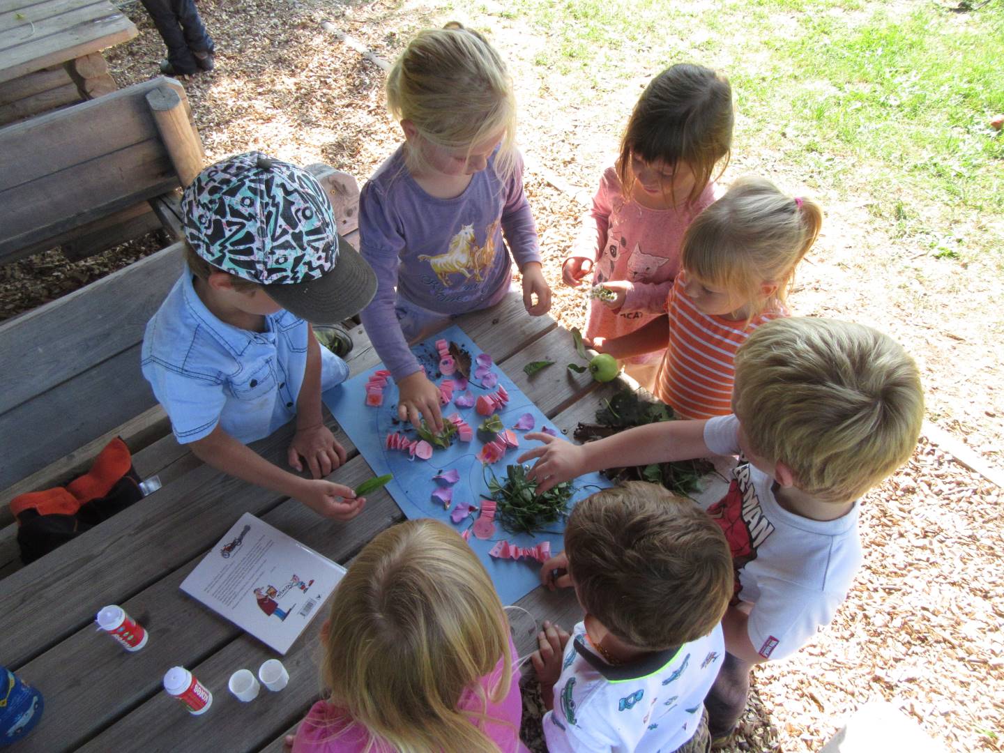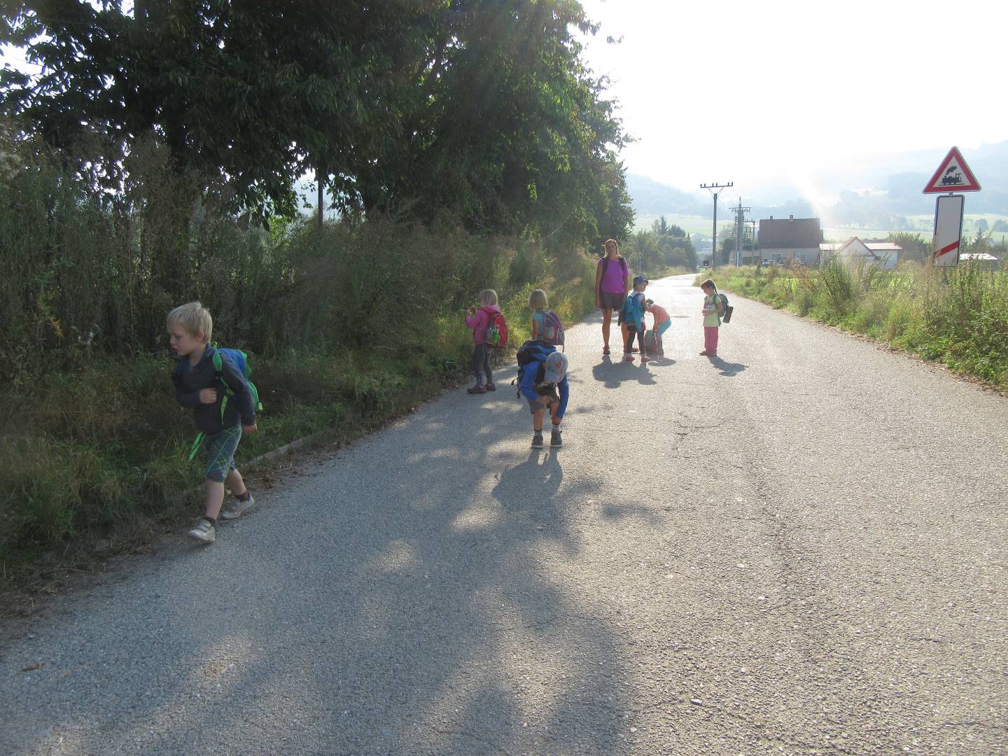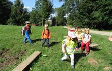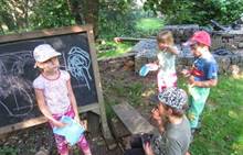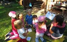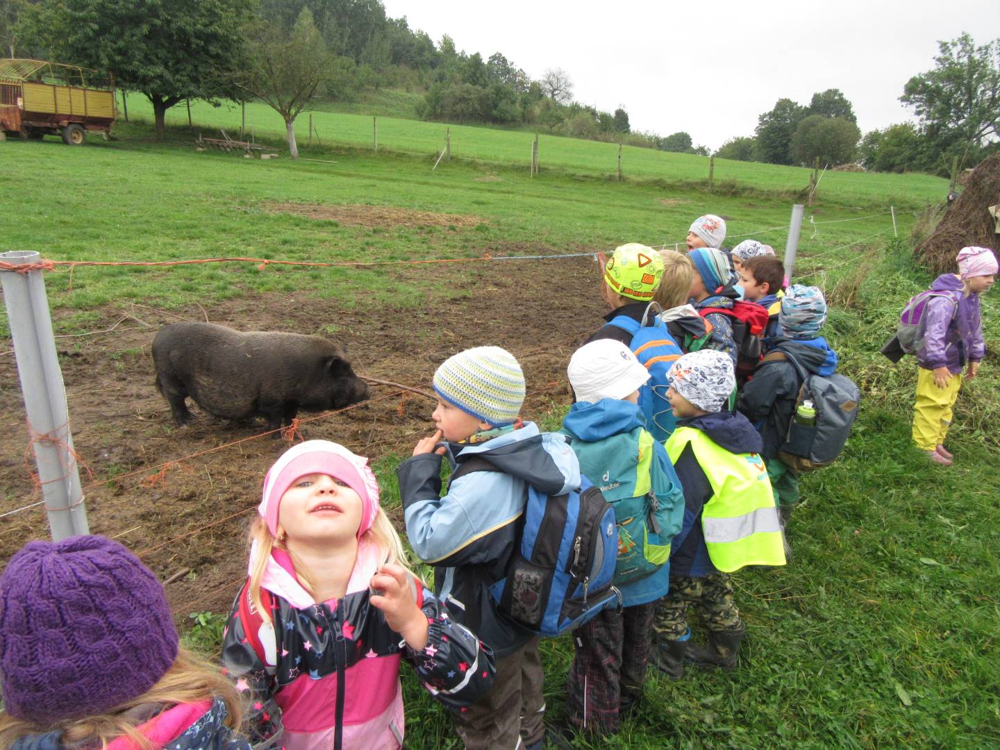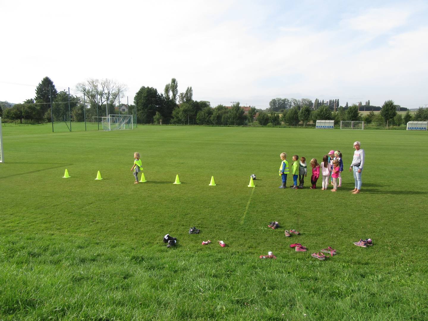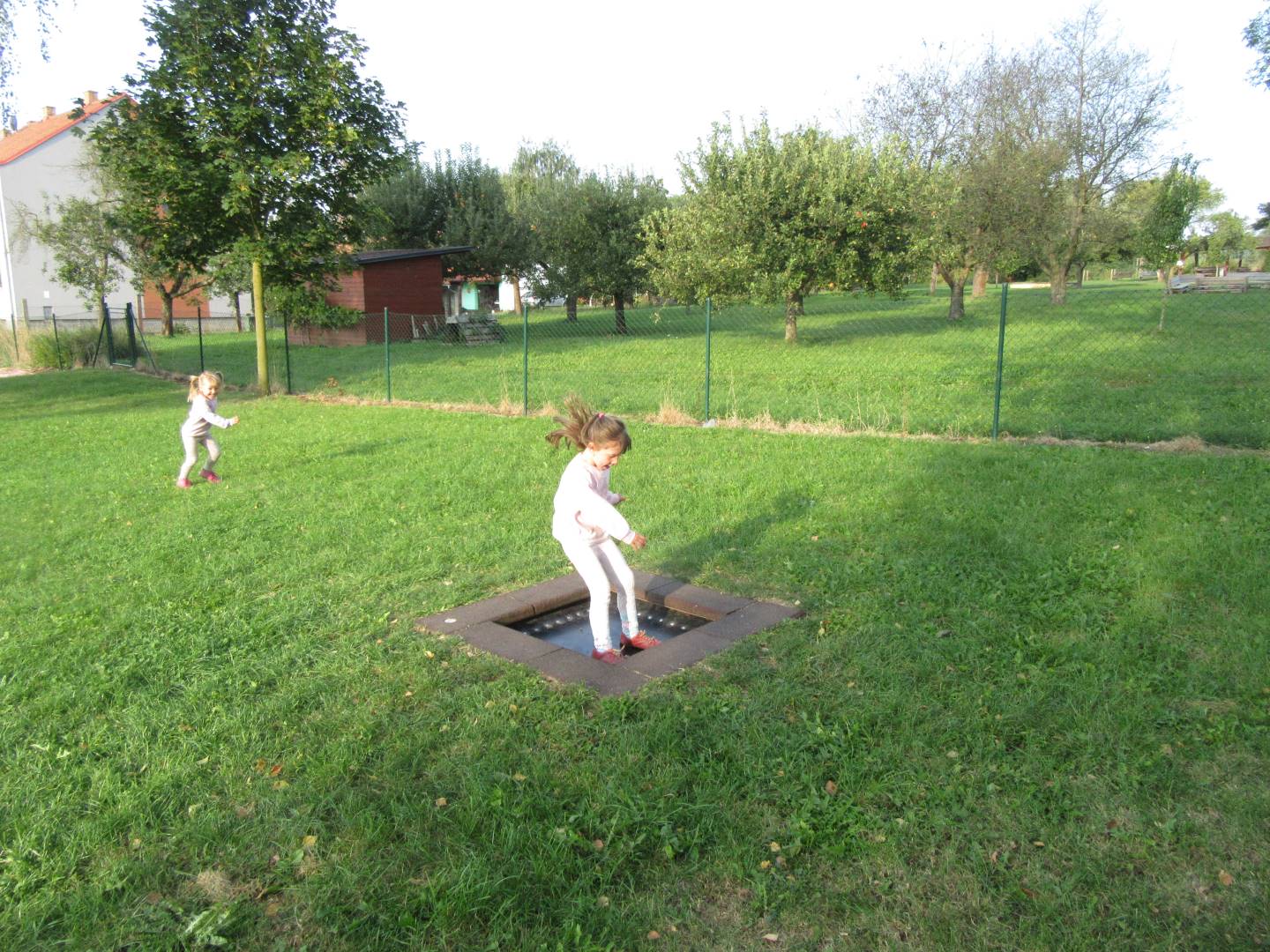 Zářím nás provedla "Žížala a její kamarádi". V dešti se nám několikrát podařilo pozorovat žížaly. Povídali jsme si o kompostu a velký obrázek kompostu si děti vytvoříly z papírových žížal a pířírodnin, které nám dala naše zahrada. Maringotku jsme vyzdobili žabičkami, které děti vybarvily trávou a listím. V půlce září jsme měli na zahradě canisterapii. Děti si vyzkoušely cvičení se psy, základní péči o srst a paní Adámková nám povídala o povolání veterináře. V pondělí 28.9. byl státní svátek a tak jsme si povídali o patronovi české země a děti vykreslily omalovánku sv. Václava. Na konci září se už ozval podzim a začaly radovánky v blátě, tvoření hrází a přehrad v lese, vaření v lesní blátivé kuchyni. Děti si oblíbily pohybové hry na kocoura a na myš a zvířecí přebíhanou. Několikrát týdně jsme zpívali za doprovodu klavíru. Kromě lidových písní jsme se naučili písničku "Srovnat hračky" a "Proč kopřiva pálí". Předškoláci dostali nové pracovní seštity, které začali vypracovávat.