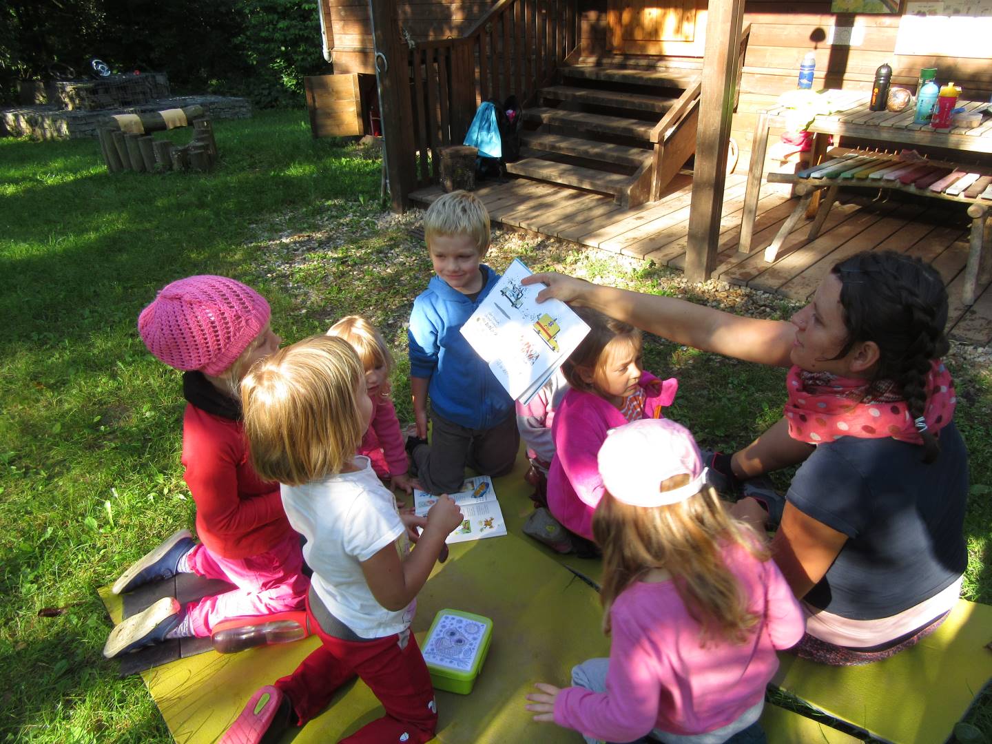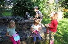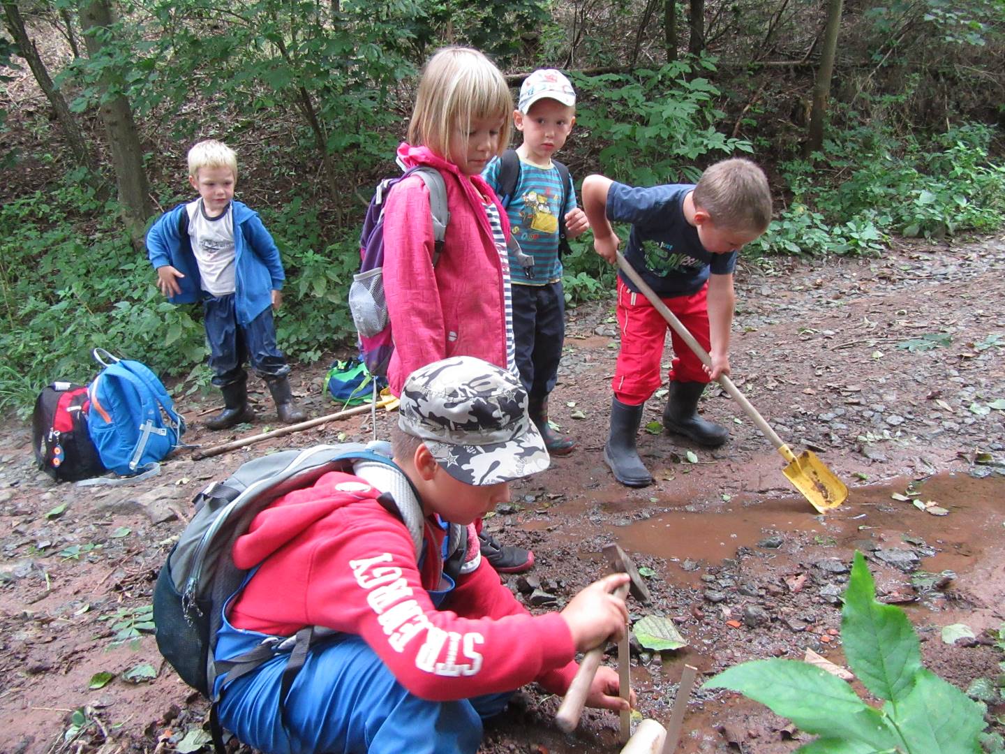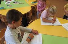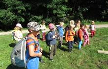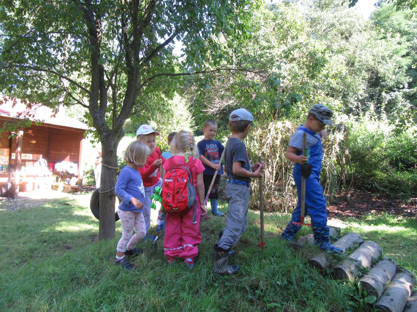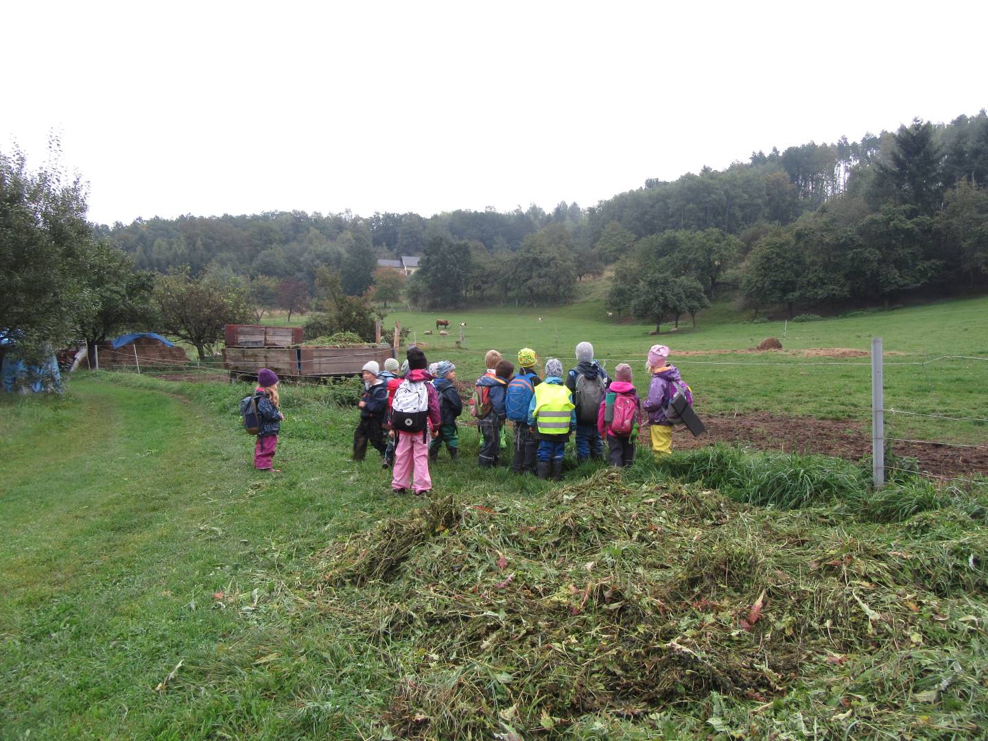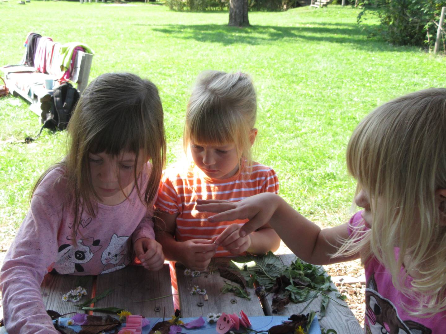 Zářím nás provedla "Žížala a její kamarádi". V dešti se nám několikrát podařilo pozorovat žížaly. Povídali jsme si o kompostu a velký obrázek kompostu si děti vytvoříly z papírových žížal a pířírodnin, které nám dala naše zahrada. Maringotku jsme vyzdobili žabičkami, které děti vybarvily trávou a listím. V půlce září jsme měli na zahradě canisterapii. Děti si vyzkoušely cvičení se psy, základní péči o srst a paní Adámková nám povídala o povolání veterináře. V pondělí 28.9. byl státní svátek a tak jsme si povídali o patronovi české země a děti vykreslily omalovánku sv. Václava. Na konci září se už ozval podzim a začaly radovánky v blátě, tvoření hrází a přehrad v lese, vaření v lesní blátivé kuchyni. Děti si oblíbily pohybové hry na kocoura a na myš a zvířecí přebíhanou. Několikrát týdně jsme zpívali za doprovodu klavíru. Kromě lidových písní jsme se naučili písničku "Srovnat hračky" a "Proč kopřiva pálí". Předškoláci dostali nové pracovní seštity, které začali vypracovávat.