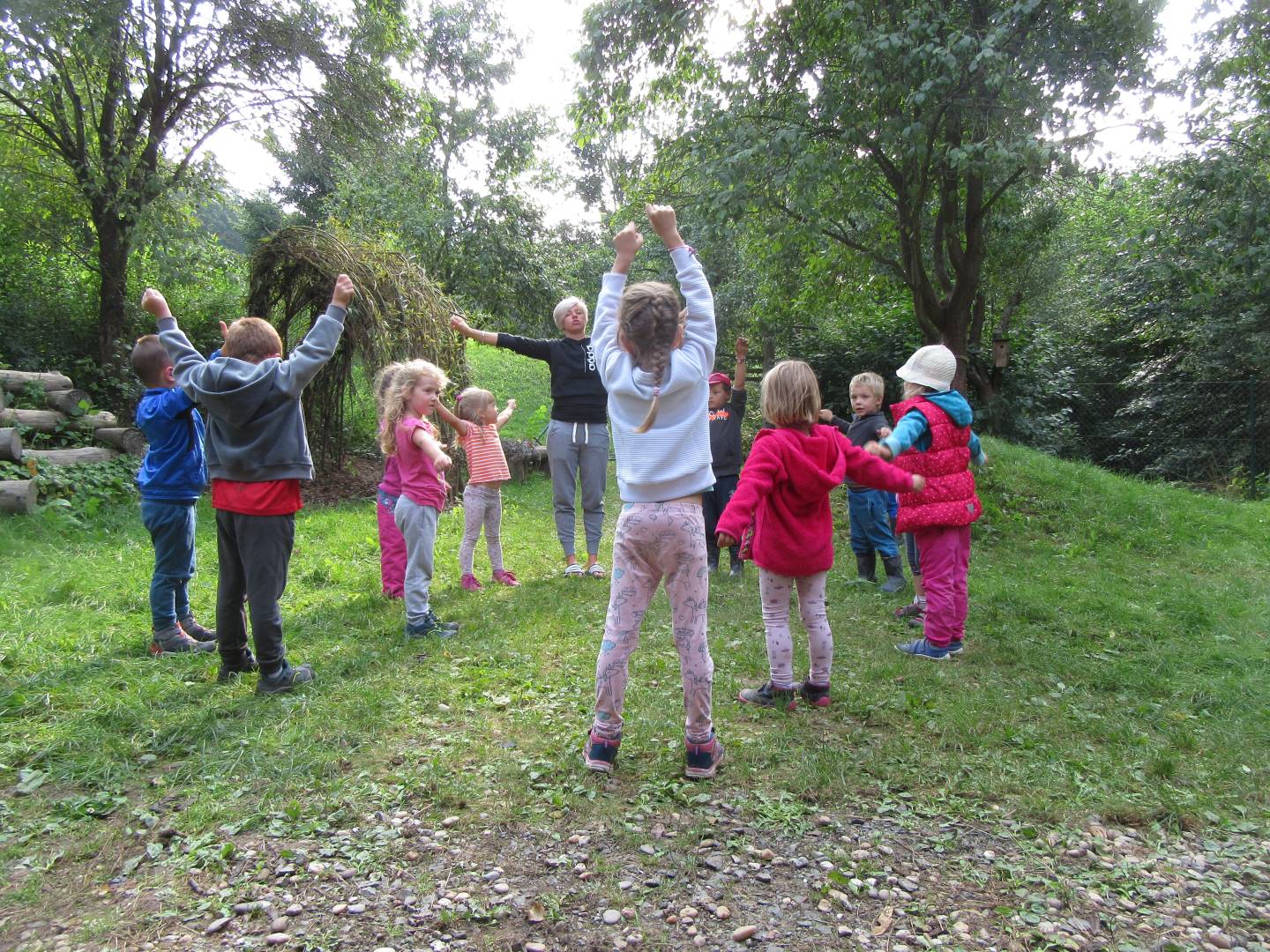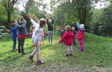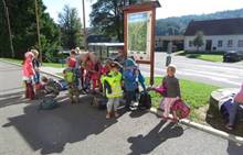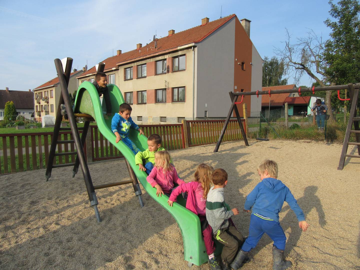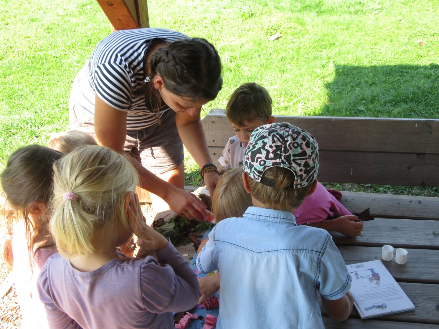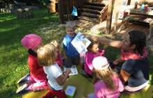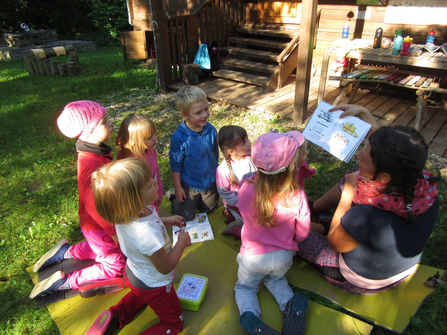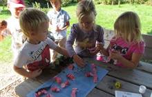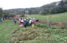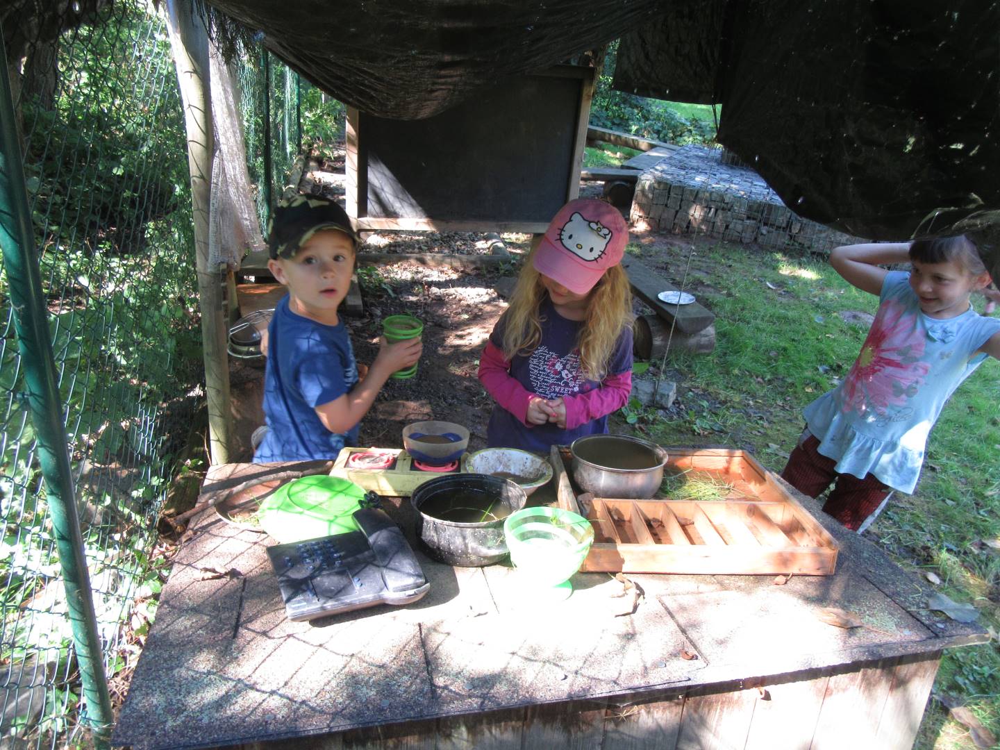 Zářím nás provedla "Žížala a její kamarádi". V dešti se nám několikrát podařilo pozorovat žížaly. Povídali jsme si o kompostu a velký obrázek kompostu si děti vytvoříly z papírových žížal a pířírodnin, které nám dala naše zahrada. Maringotku jsme vyzdobili žabičkami, které děti vybarvily trávou a listím. V půlce září jsme měli na zahradě canisterapii. Děti si vyzkoušely cvičení se psy, základní péči o srst a paní Adámková nám povídala o povolání veterináře. V pondělí 28.9. byl státní svátek a tak jsme si povídali o patronovi české země a děti vykreslily omalovánku sv. Václava. Na konci září se už ozval podzim a začaly radovánky v blátě, tvoření hrází a přehrad v lese, vaření v lesní blátivé kuchyni. Děti si oblíbily pohybové hry na kocoura a na myš a zvířecí přebíhanou. Několikrát týdně jsme zpívali za doprovodu klavíru. Kromě lidových písní jsme se naučili písničku "Srovnat hračky" a "Proč kopřiva pálí". Předškoláci dostali nové pracovní seštity, které začali vypracovávat.