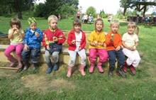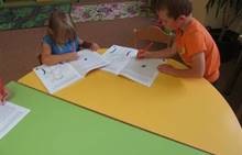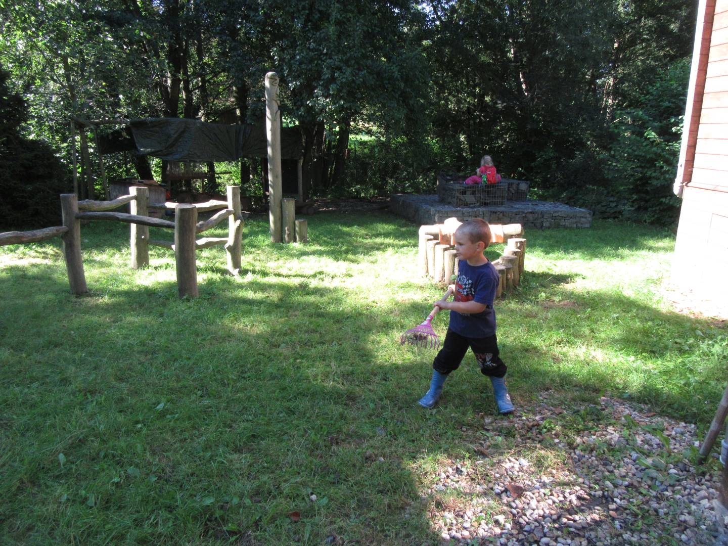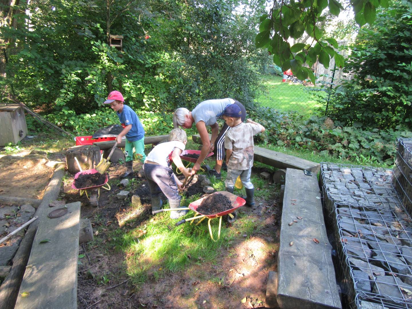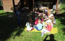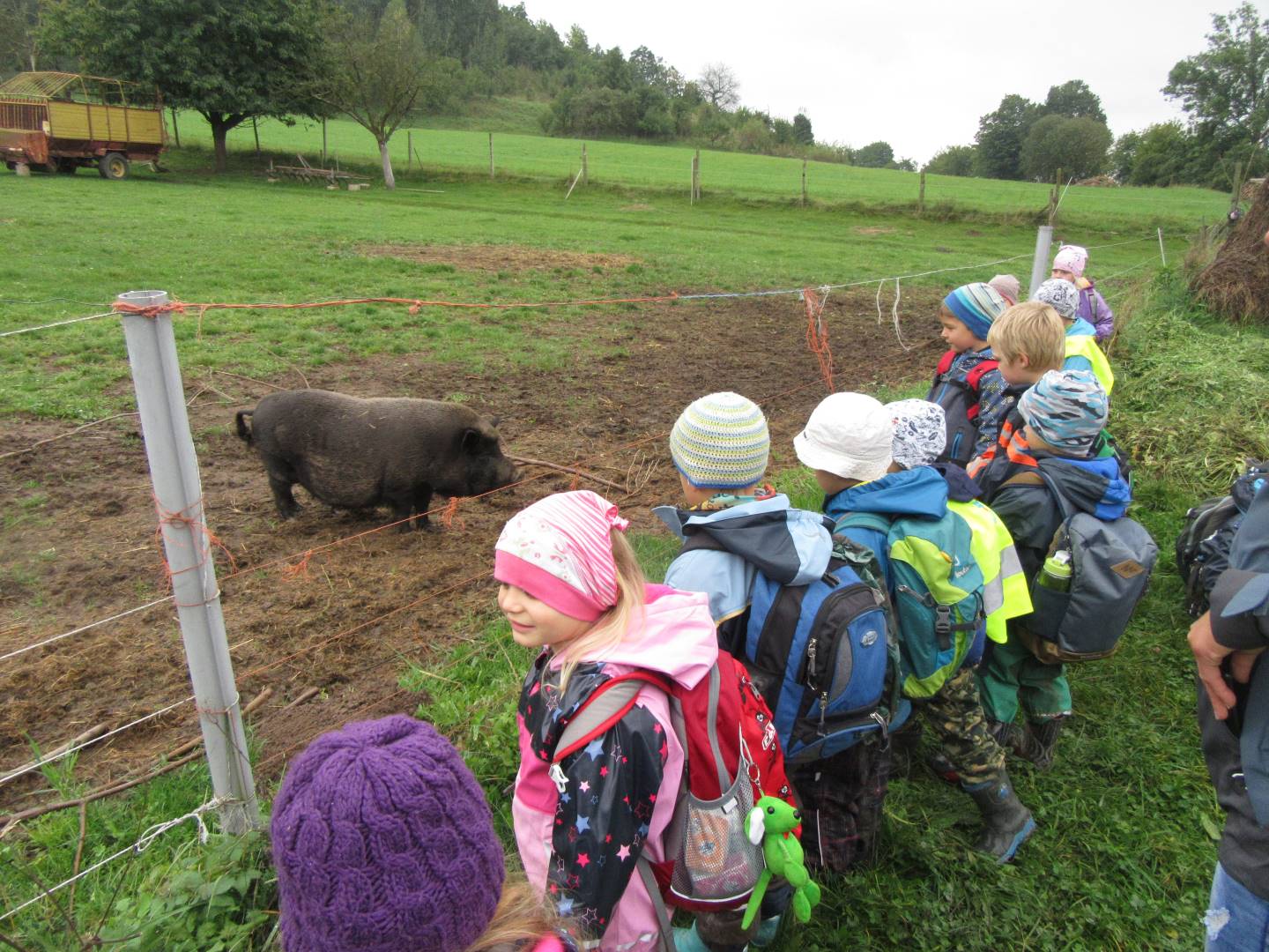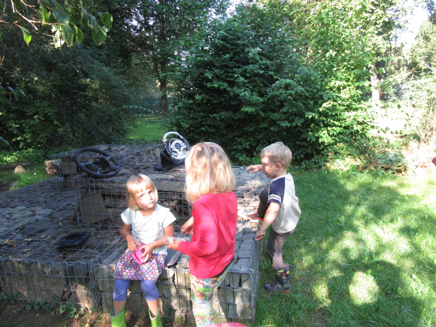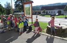 Zářím nás provedla "Žížala a její kamarádi". V dešti se nám několikrát podařilo pozorovat žížaly. Povídali jsme si o kompostu a velký obrázek kompostu si děti vytvoříly z papírových žížal a pířírodnin, které nám dala naše zahrada. Maringotku jsme vyzdobili žabičkami, které děti vybarvily trávou a listím. V půlce září jsme měli na zahradě canisterapii. Děti si vyzkoušely cvičení se psy, základní péči o srst a paní Adámková nám povídala o povolání veterináře. V pondělí 28.9. byl státní svátek a tak jsme si povídali o patronovi české země a děti vykreslily omalovánku sv. Václava. Na konci září se už ozval podzim a začaly radovánky v blátě, tvoření hrází a přehrad v lese, vaření v lesní blátivé kuchyni. Děti si oblíbily pohybové hry na kocoura a na myš a zvířecí přebíhanou. Několikrát týdně jsme zpívali za doprovodu klavíru. Kromě lidových písní jsme se naučili písničku "Srovnat hračky" a "Proč kopřiva pálí". Předškoláci dostali nové pracovní seštity, které začali vypracovávat.