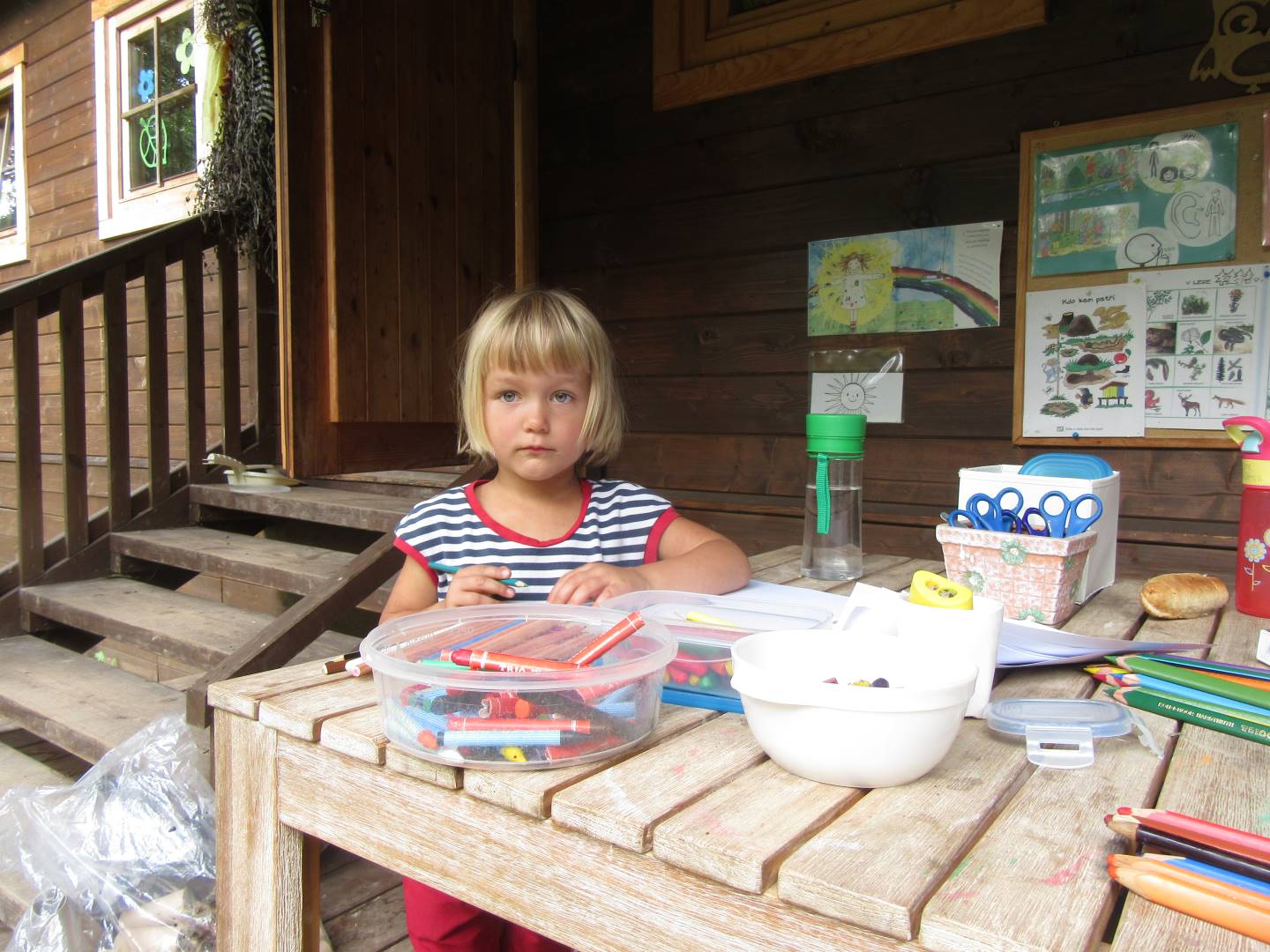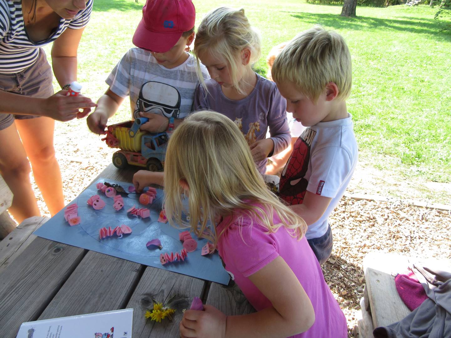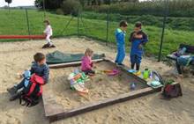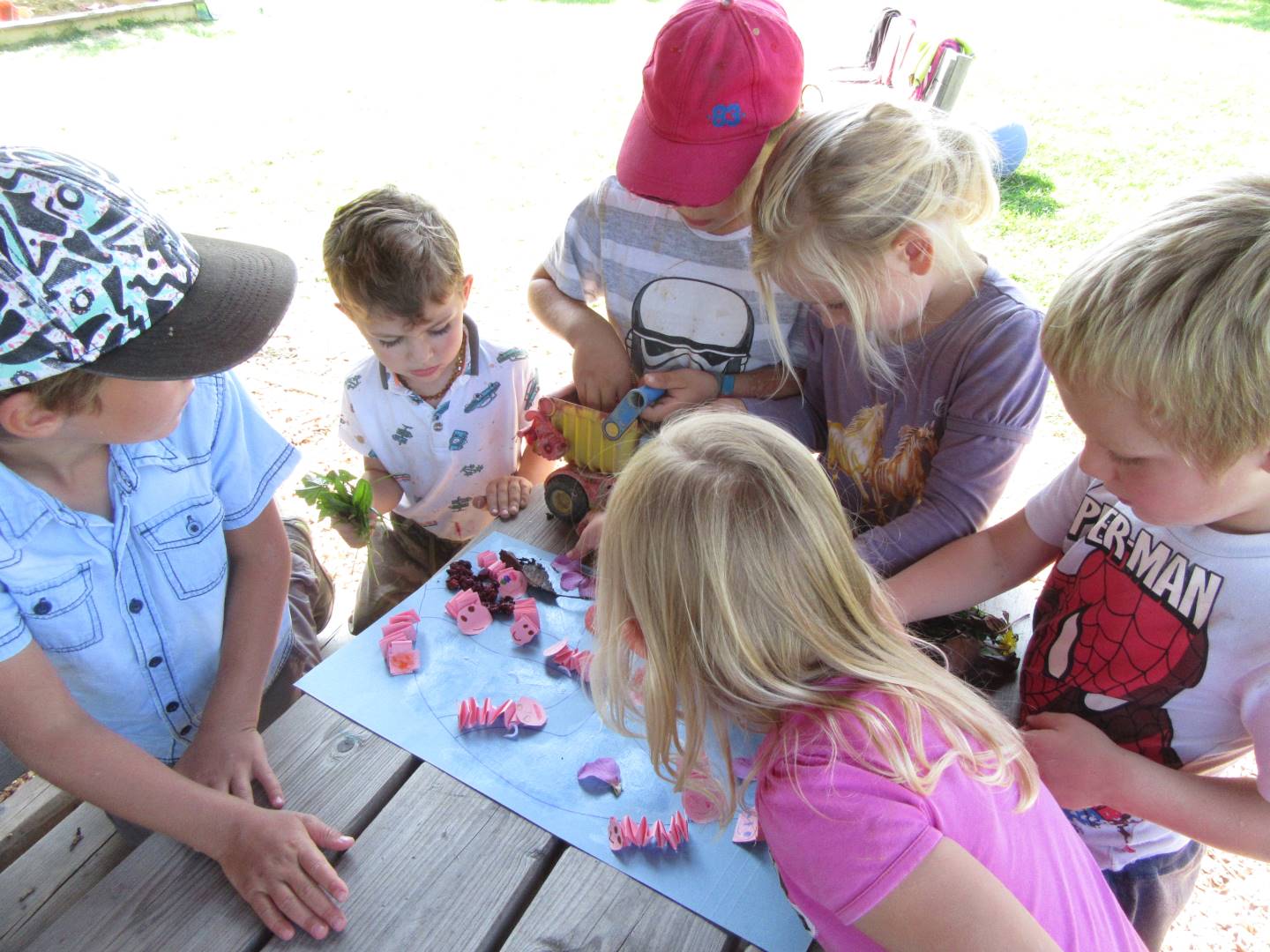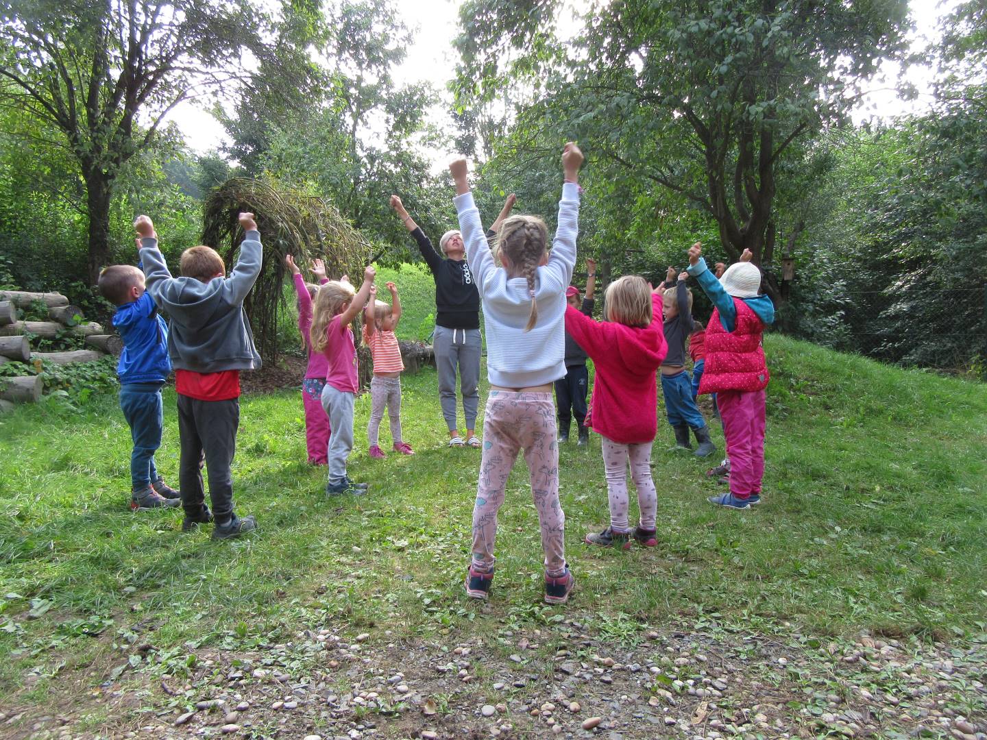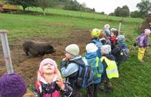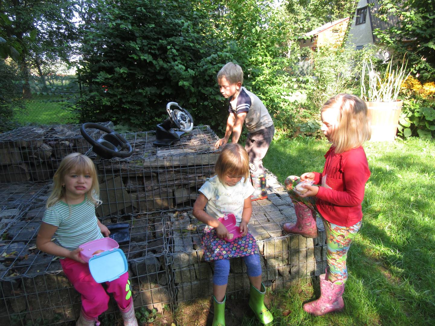 Zářím nás provedla "Žížala a její kamarádi". V dešti se nám několikrát podařilo pozorovat žížaly. Povídali jsme si o kompostu a velký obrázek kompostu si děti vytvoříly z papírových žížal a pířírodnin, které nám dala naše zahrada. Maringotku jsme vyzdobili žabičkami, které děti vybarvily trávou a listím. V půlce září jsme měli na zahradě canisterapii. Děti si vyzkoušely cvičení se psy, základní péči o srst a paní Adámková nám povídala o povolání veterináře. V pondělí 28.9. byl státní svátek a tak jsme si povídali o patronovi české země a děti vykreslily omalovánku sv. Václava. Na konci září se už ozval podzim a začaly radovánky v blátě, tvoření hrází a přehrad v lese, vaření v lesní blátivé kuchyni. Děti si oblíbily pohybové hry na kocoura a na myš a zvířecí přebíhanou. Několikrát týdně jsme zpívali za doprovodu klavíru. Kromě lidových písní jsme se naučili písničku "Srovnat hračky" a "Proč kopřiva pálí". Předškoláci dostali nové pracovní seštity, které začali vypracovávat.