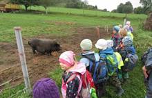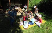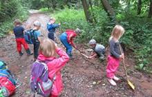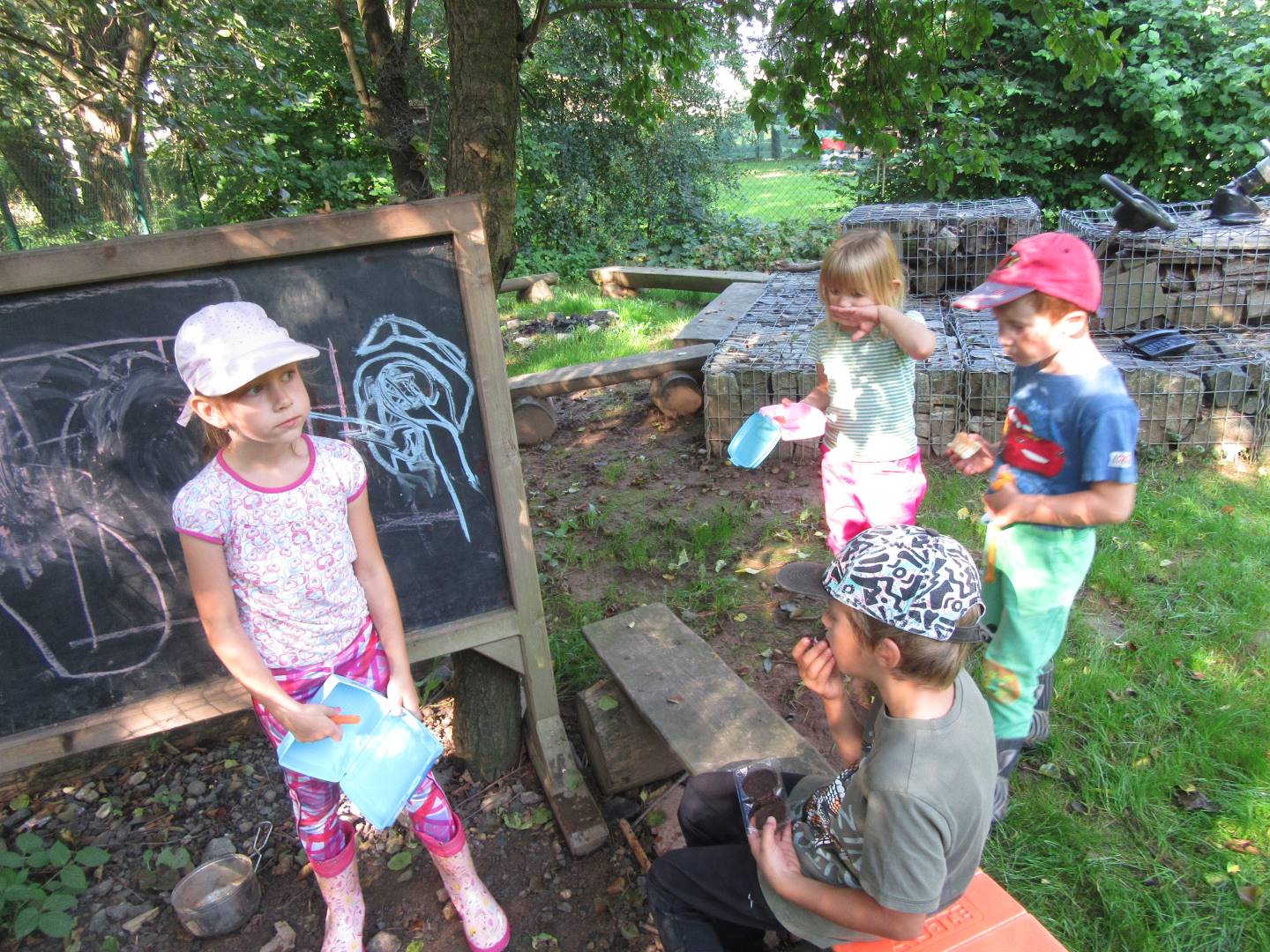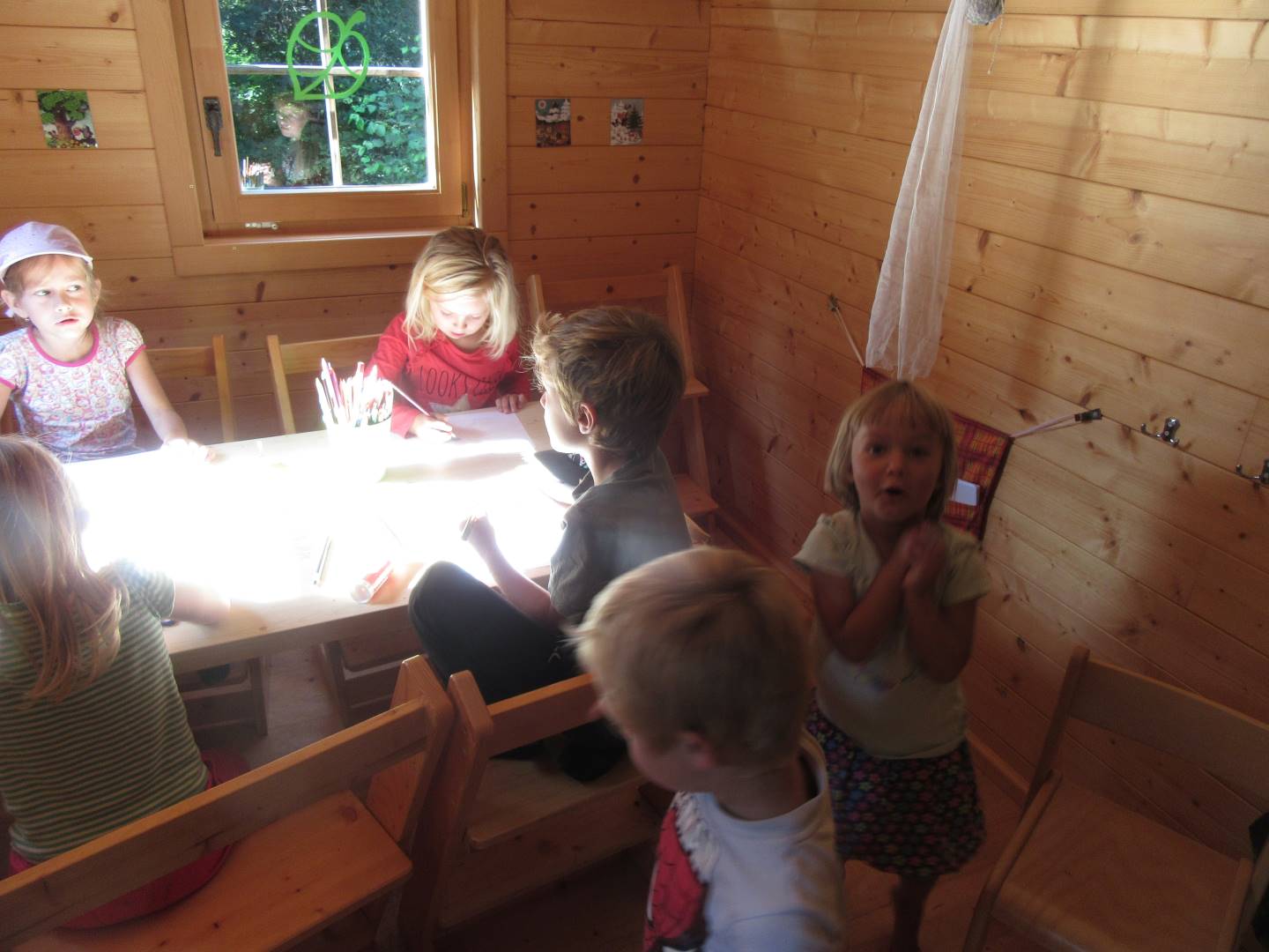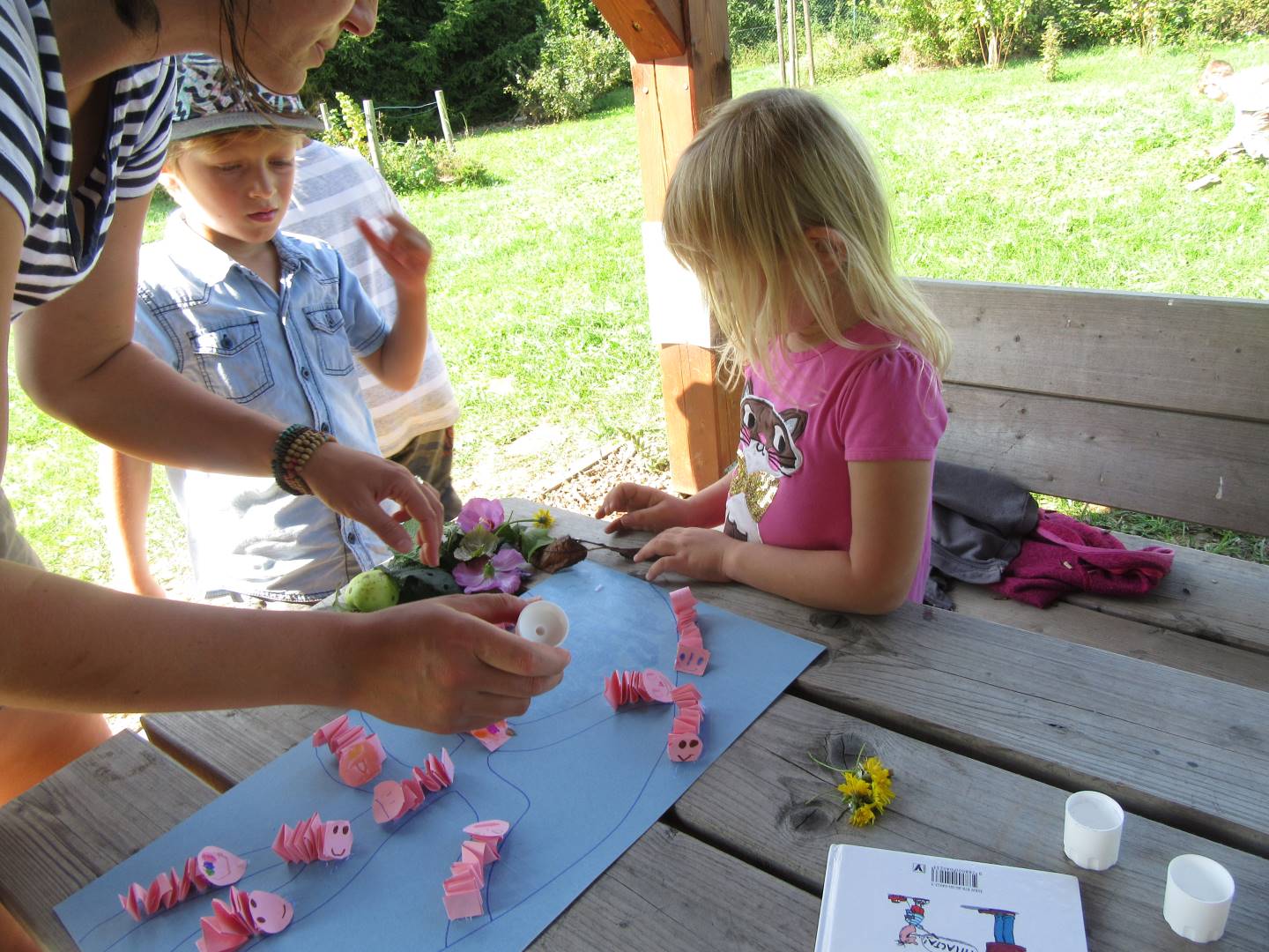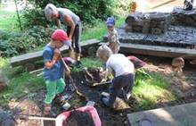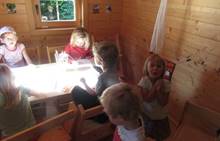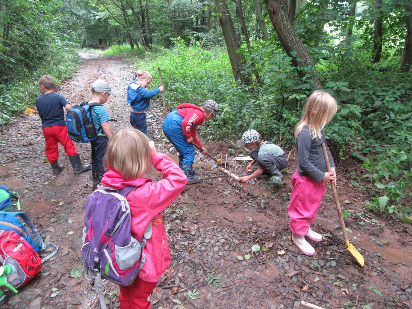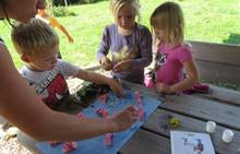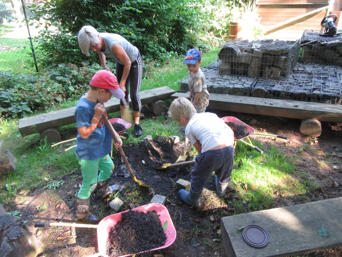 Zářím nás provedla "Žížala a její kamarádi". V dešti se nám několikrát podařilo pozorovat žížaly. Povídali jsme si o kompostu a velký obrázek kompostu si děti vytvoříly z papírových žížal a pířírodnin, které nám dala naše zahrada. Maringotku jsme vyzdobili žabičkami, které děti vybarvily trávou a listím. V půlce září jsme měli na zahradě canisterapii. Děti si vyzkoušely cvičení se psy, základní péči o srst a paní Adámková nám povídala o povolání veterináře. V pondělí 28.9. byl státní svátek a tak jsme si povídali o patronovi české země a děti vykreslily omalovánku sv. Václava. Na konci září se už ozval podzim a začaly radovánky v blátě, tvoření hrází a přehrad v lese, vaření v lesní blátivé kuchyni. Děti si oblíbily pohybové hry na kocoura a na myš a zvířecí přebíhanou. Několikrát týdně jsme zpívali za doprovodu klavíru. Kromě lidových písní jsme se naučili písničku "Srovnat hračky" a "Proč kopřiva pálí". Předškoláci dostali nové pracovní seštity, které začali vypracovávat.