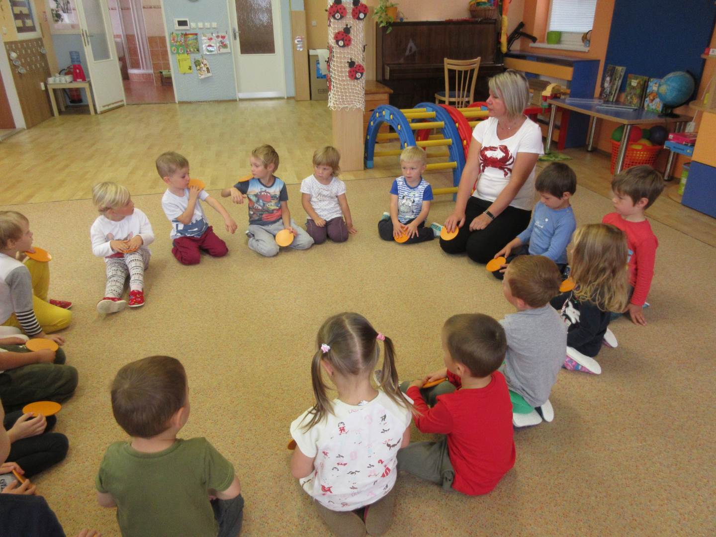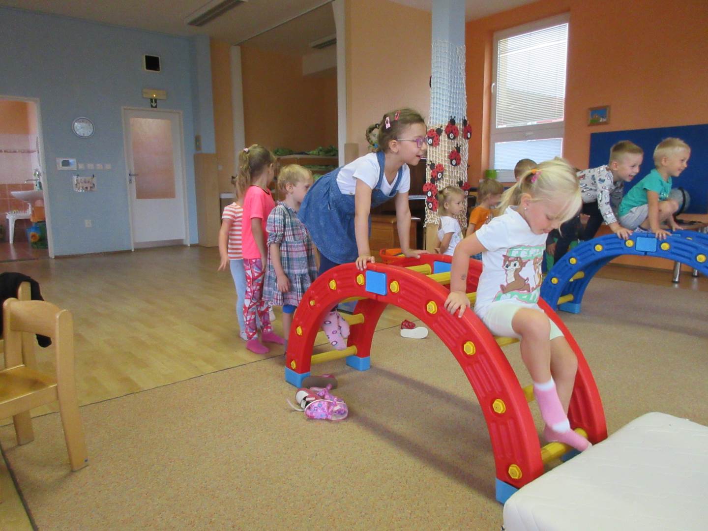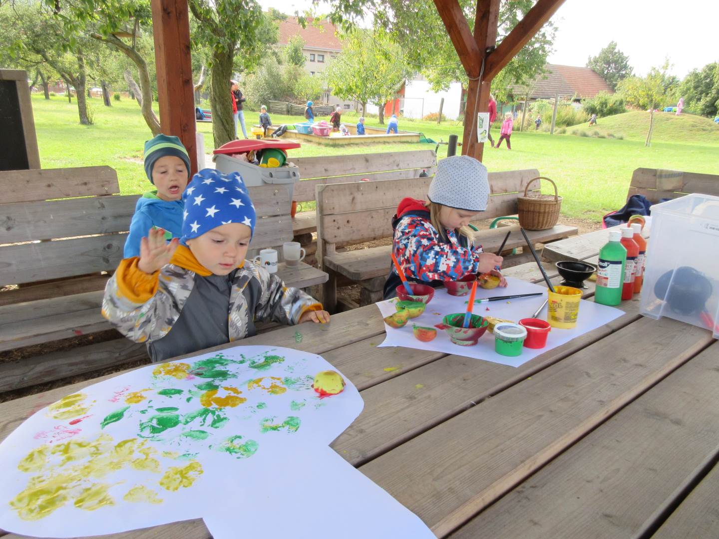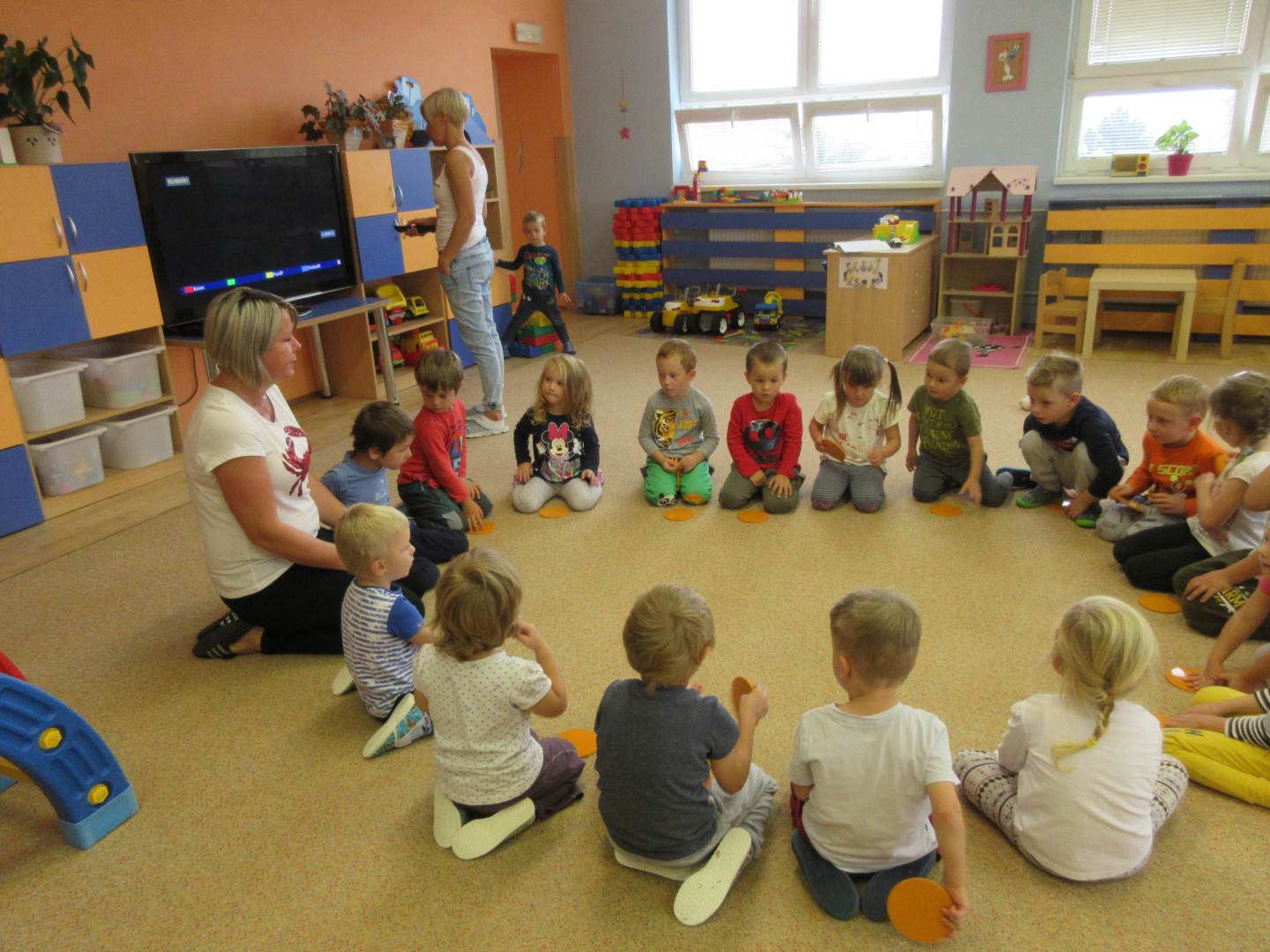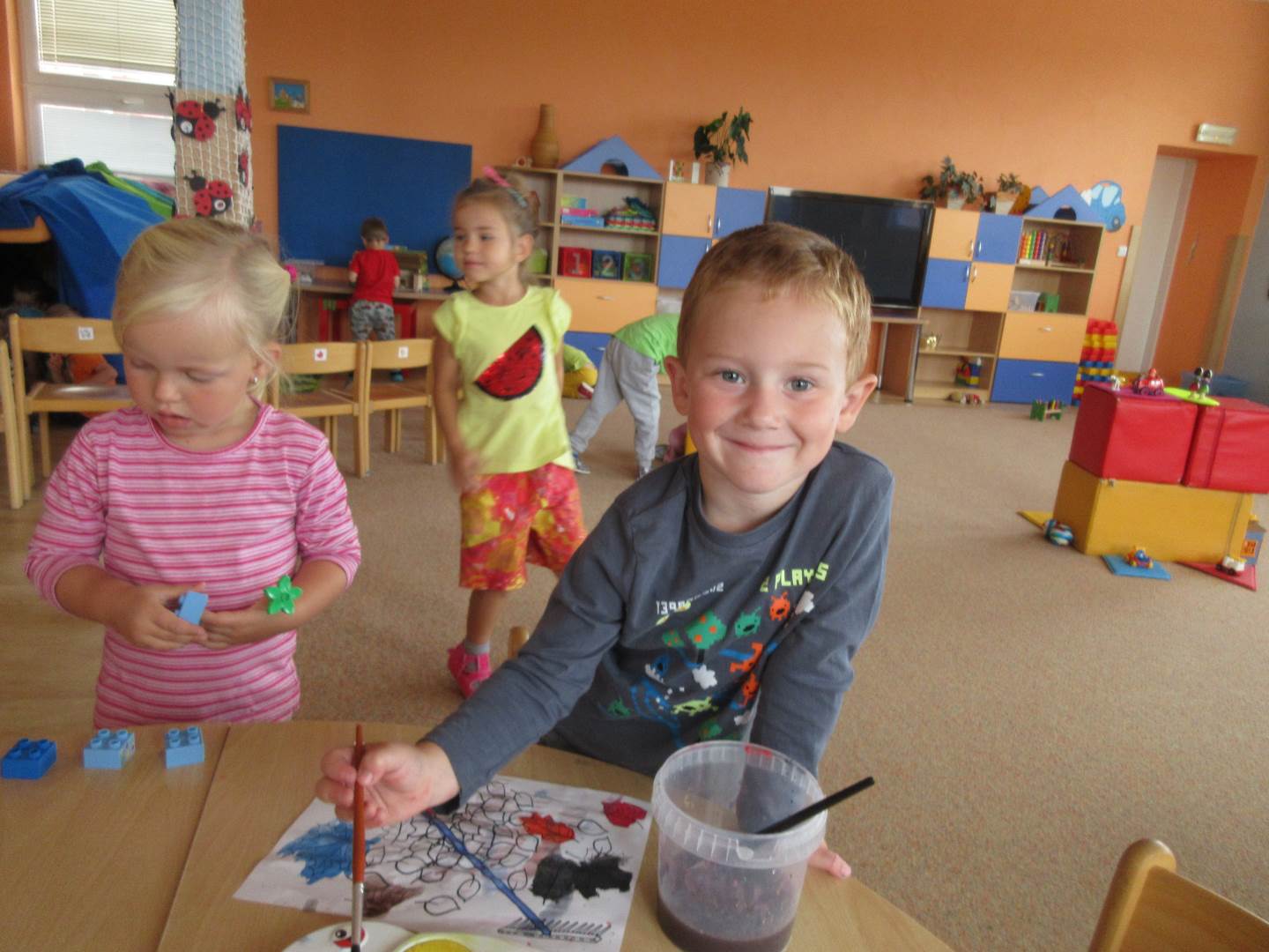 V měsíci září jsme se zaměřili na pravidla ve třídě - ve třídě neběháme, uklízíme hračky, umýváme se ruce a neubližujeme kamarádům. Nové děti si zvykaly na nové prostředí a nové učitelky a to se neobešlo bez slziček. Počasí nám přálo a dalo se podnikat spoustu věcí. Zaběhali jsme a cvičili na školním hřišti, šli jsme se podívat k rybníku do zázemí u maringotky, ve třídě jsme zpívali, cvičili jsme Lali jógu a a nechyběli ani výtvarné a pracovní činnosti. Předškoláci si udělali už několik pracovních listů a vyprávěli jsme si o začínajícím podzimu.