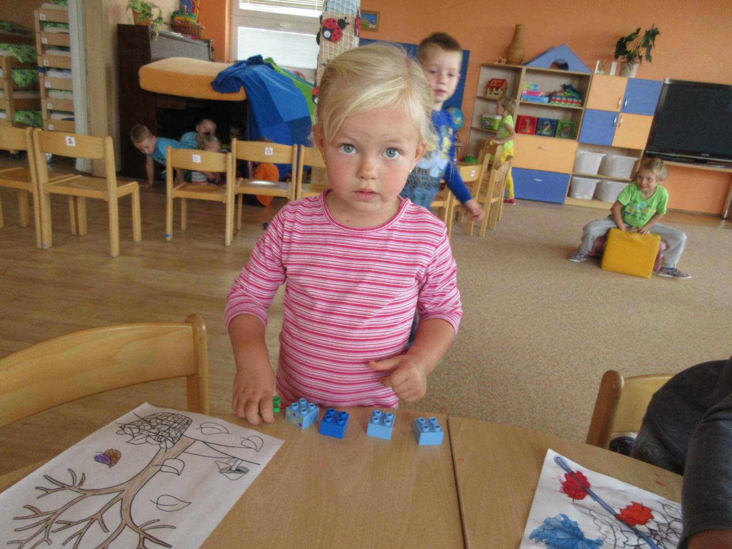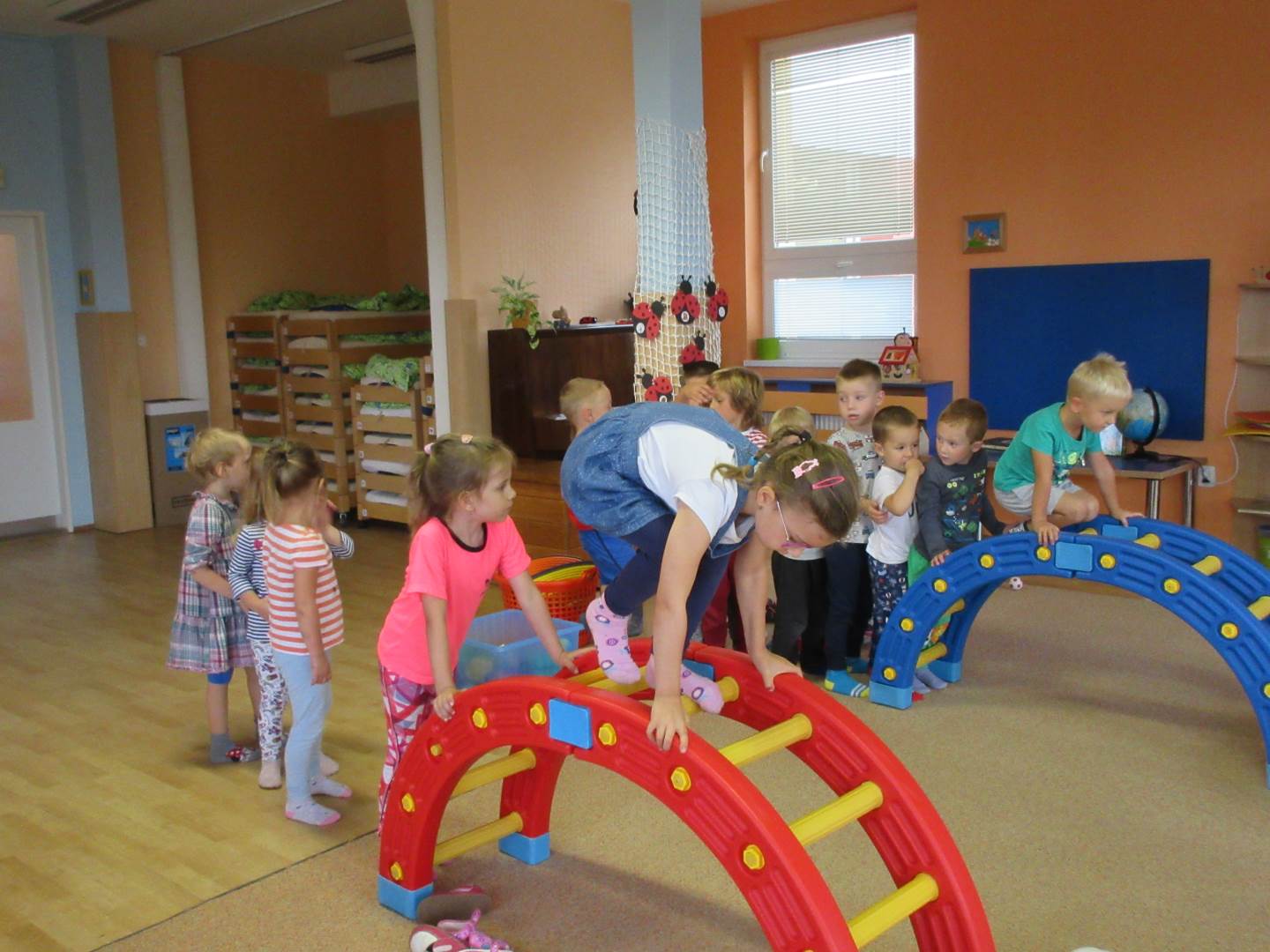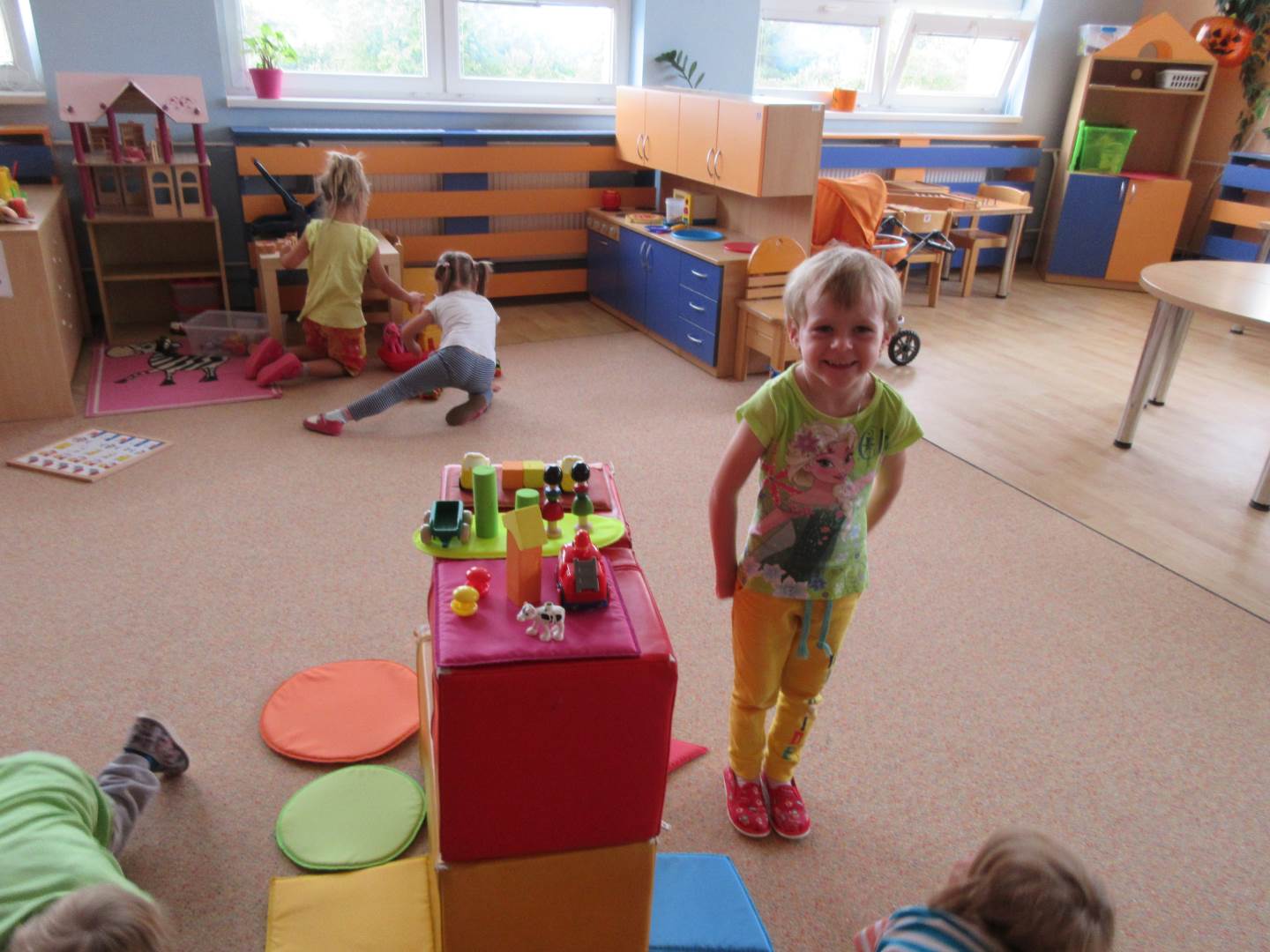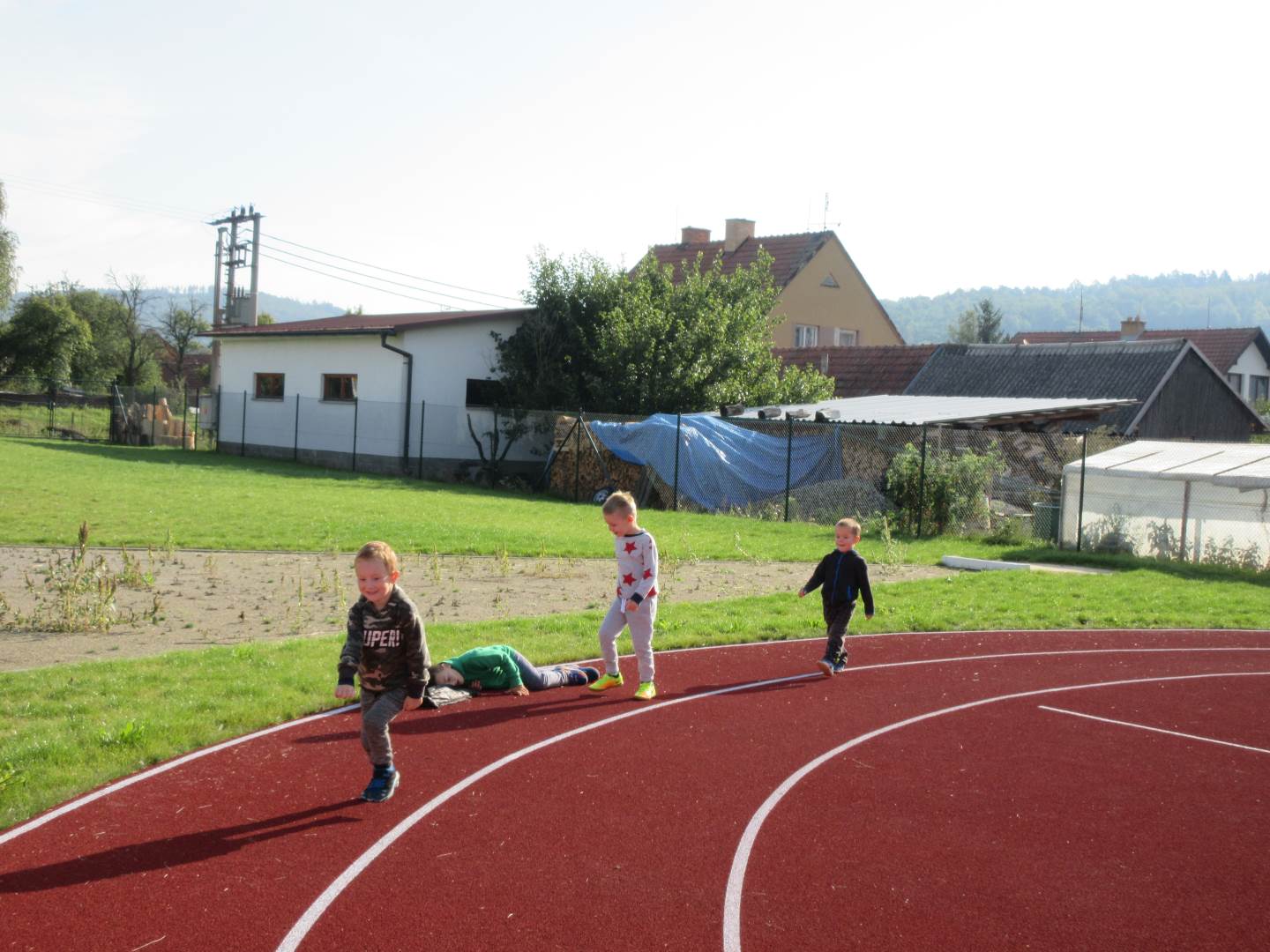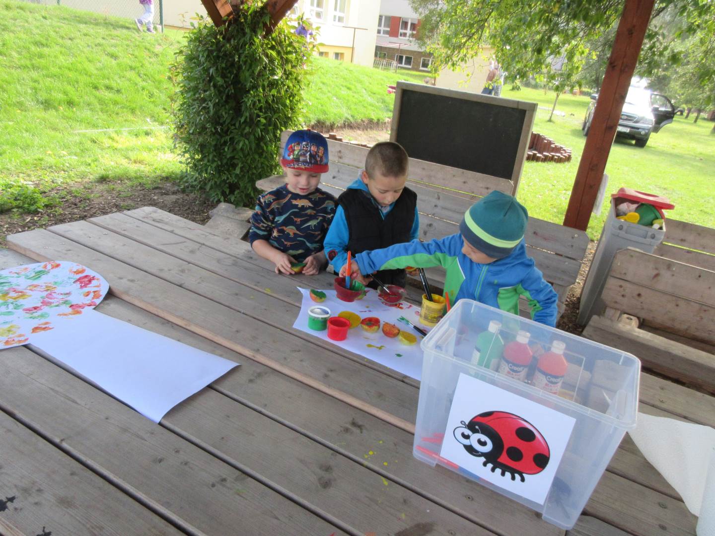 V měsíci září jsme se zaměřili na pravidla ve třídě - ve třídě neběháme, uklízíme hračky, umýváme se ruce a neubližujeme kamarádům. Nové děti si zvykaly na nové prostředí a nové učitelky a to se neobešlo bez slziček. Počasí nám přálo a dalo se podnikat spoustu věcí. Zaběhali jsme a cvičili na školním hřišti, šli jsme se podívat k rybníku do zázemí u maringotky, ve třídě jsme zpívali, cvičili jsme Lali jógu a a nechyběli ani výtvarné a pracovní činnosti. Předškoláci si udělali už několik pracovních listů a vyprávěli jsme si o začínajícím podzimu.