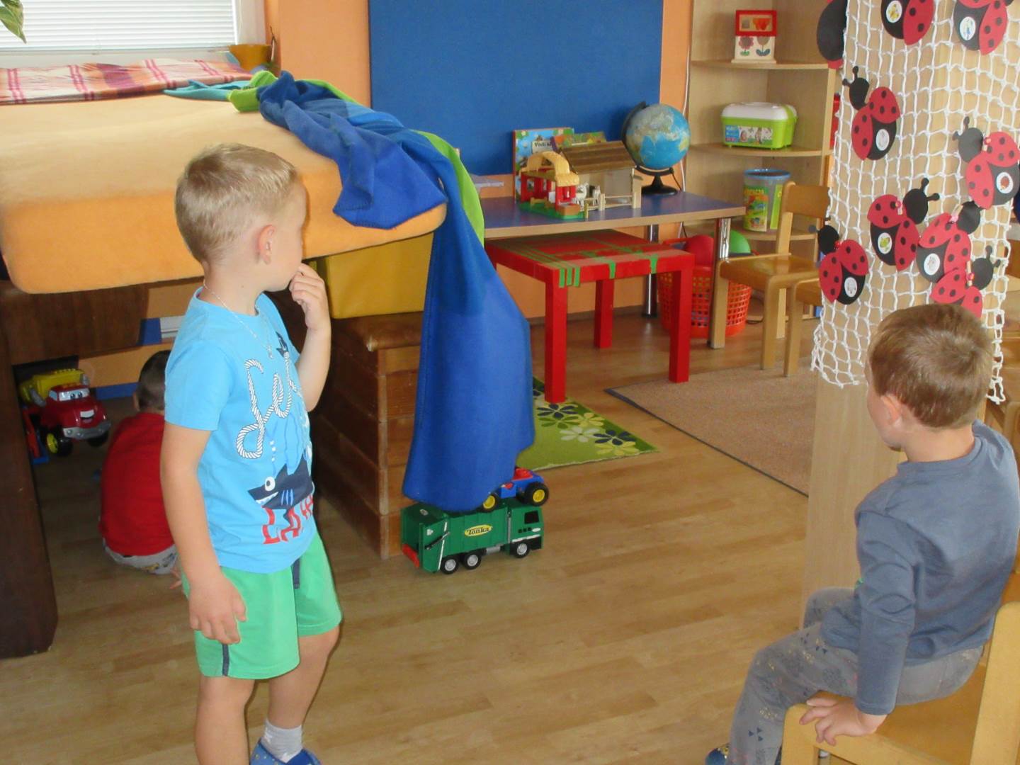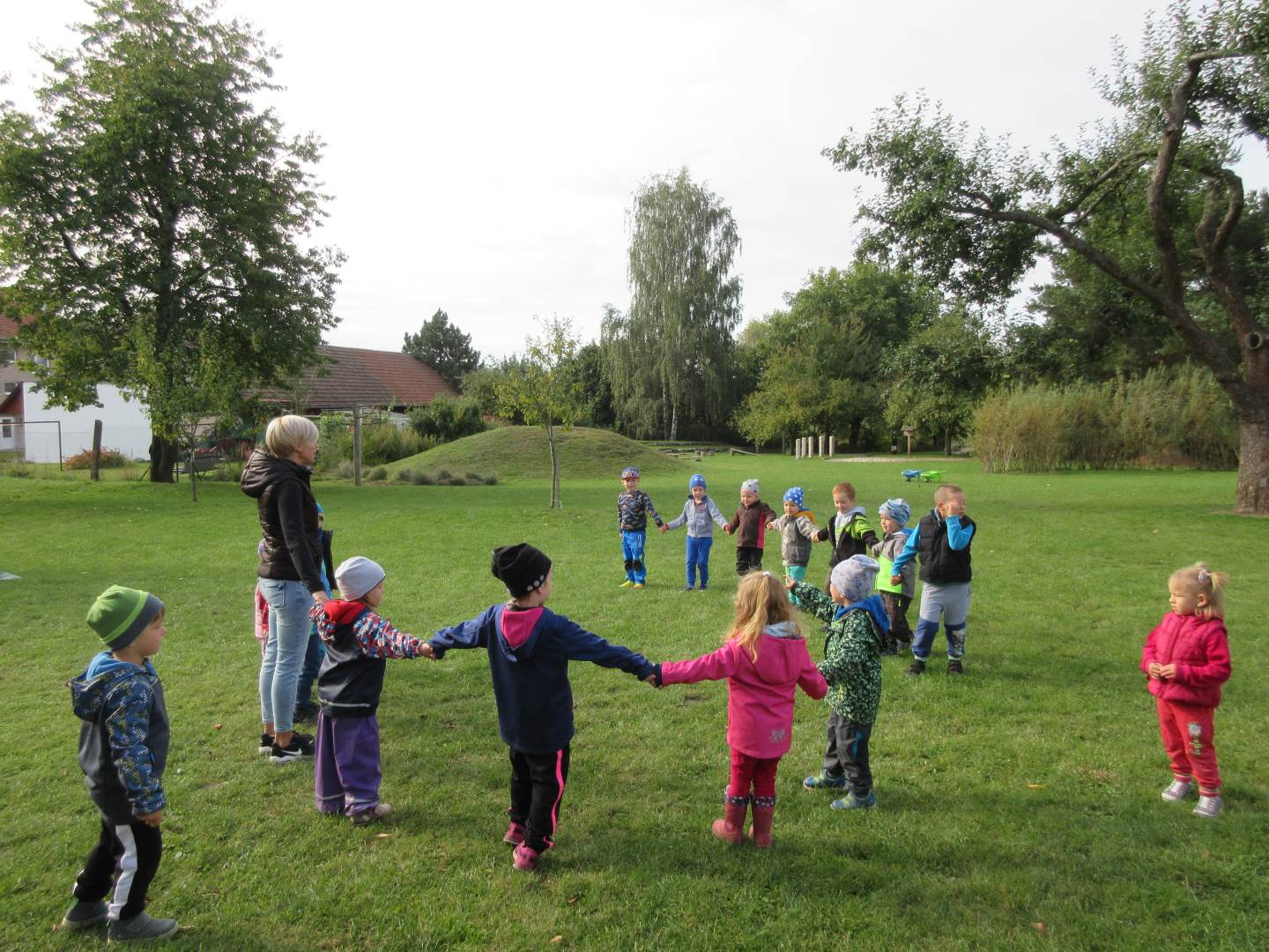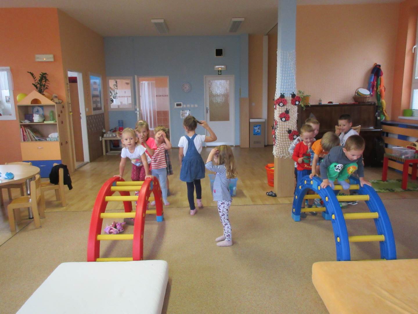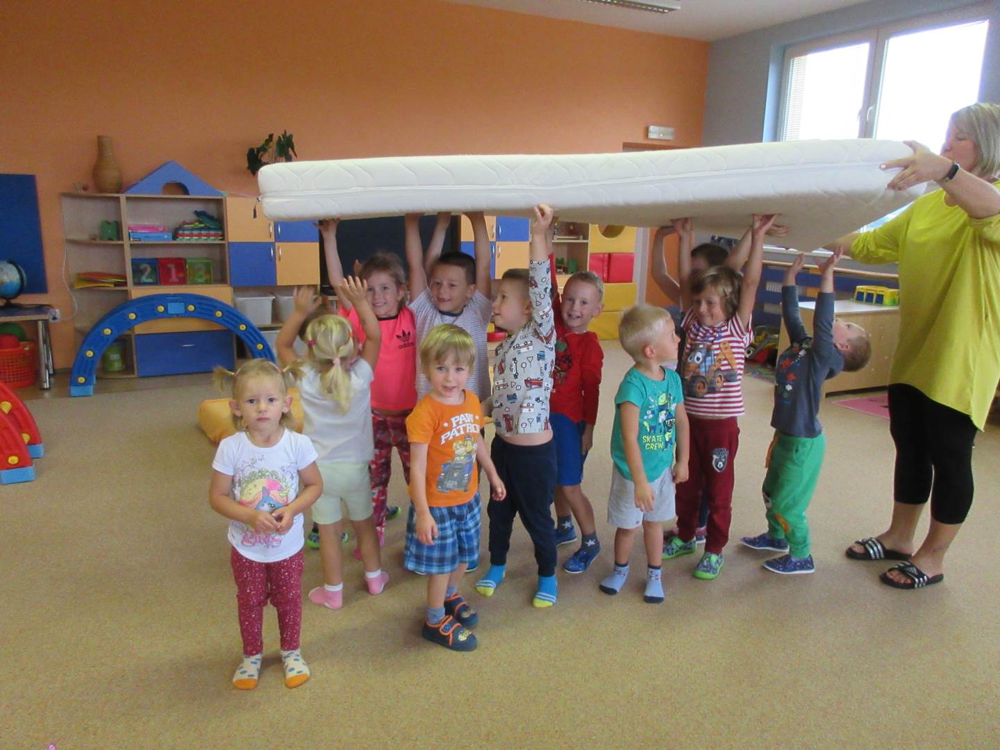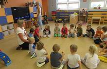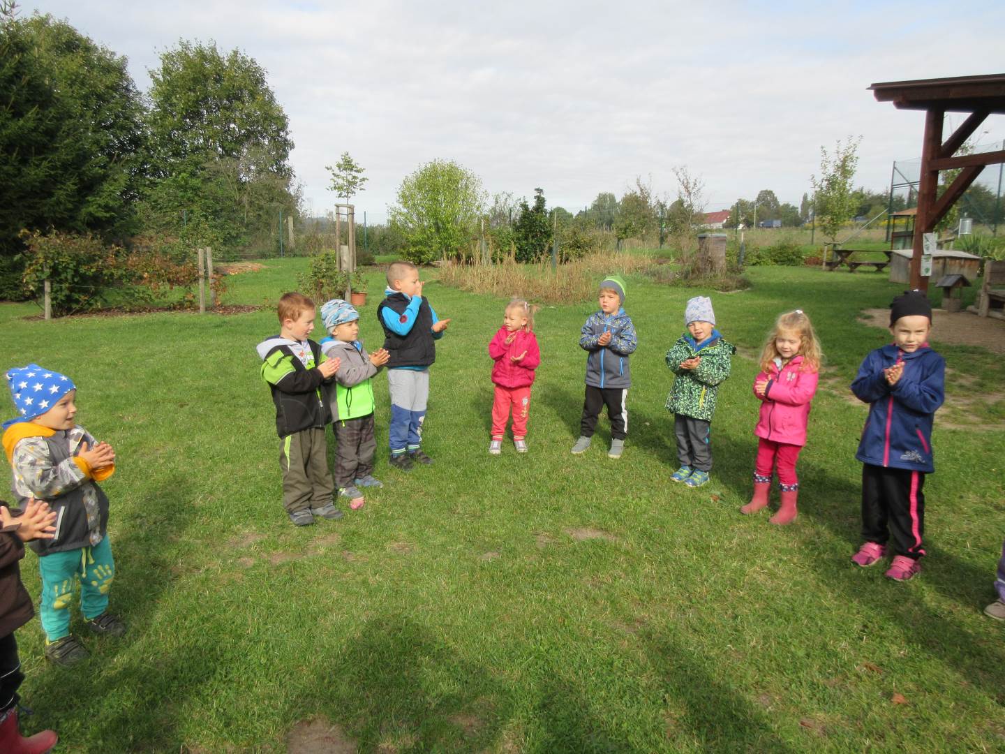 V měsíci září jsme se zaměřili na pravidla ve třídě - ve třídě neběháme, uklízíme hračky, umýváme se ruce a neubližujeme kamarádům. Nové děti si zvykaly na nové prostředí a nové učitelky a to se neobešlo bez slziček. Počasí nám přálo a dalo se podnikat spoustu věcí. Zaběhali jsme a cvičili na školním hřišti, šli jsme se podívat k rybníku do zázemí u maringotky, ve třídě jsme zpívali, cvičili jsme Lali jógu a a nechyběli ani výtvarné a pracovní činnosti. Předškoláci si udělali už několik pracovních listů a vyprávěli jsme si o začínajícím podzimu.